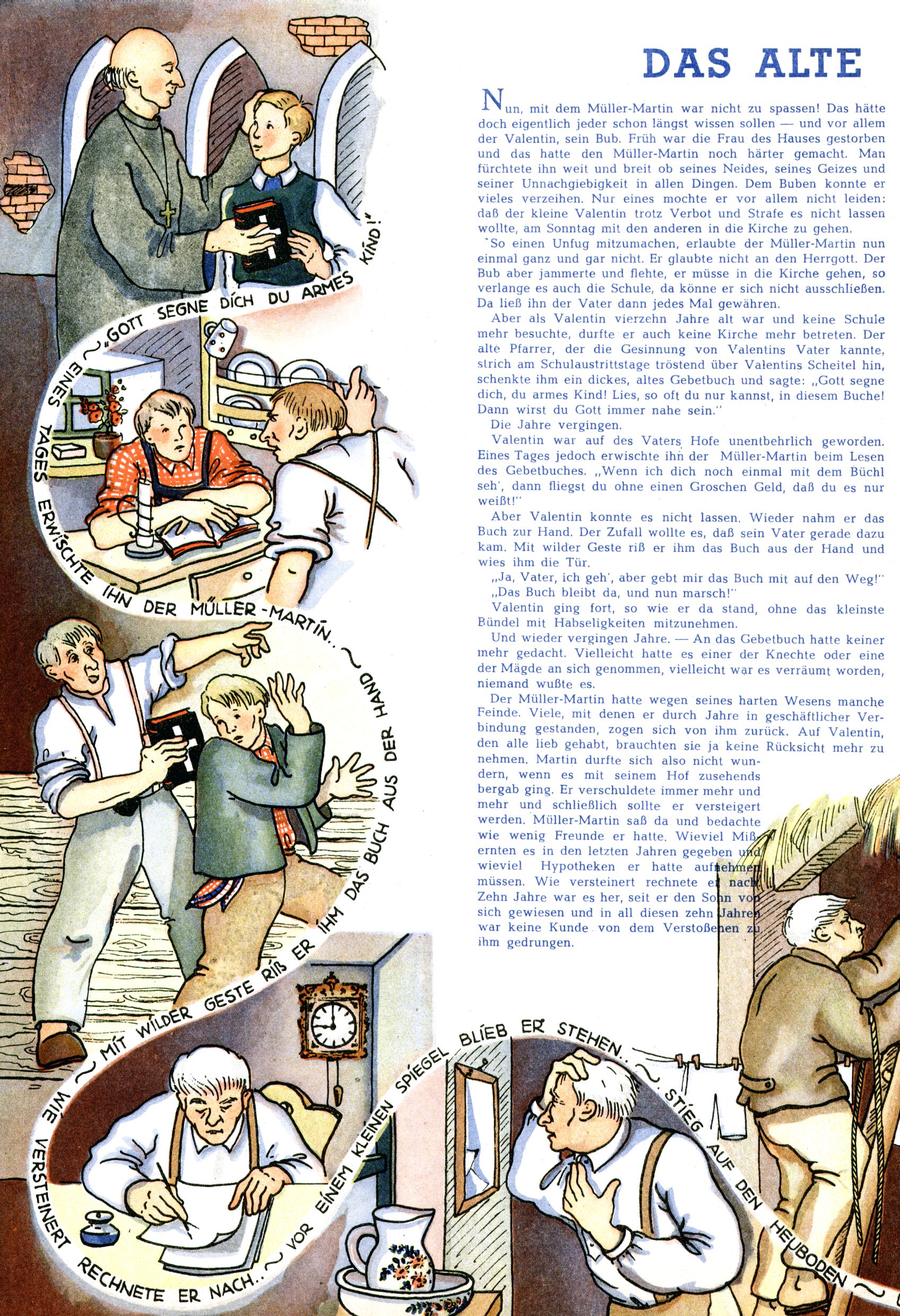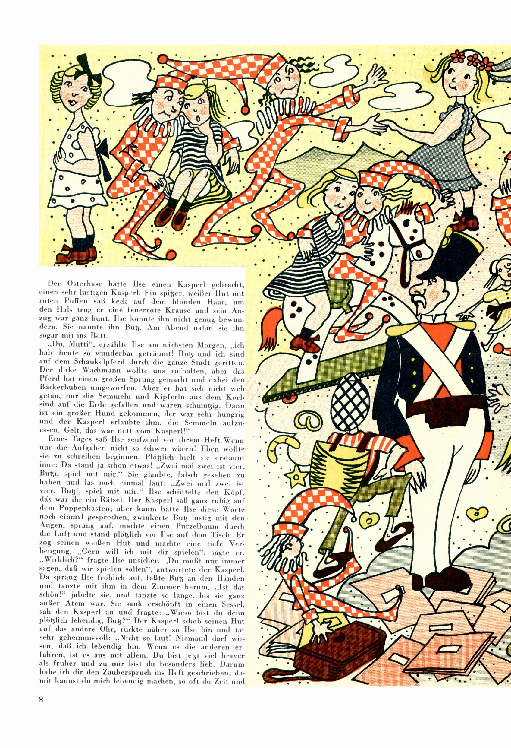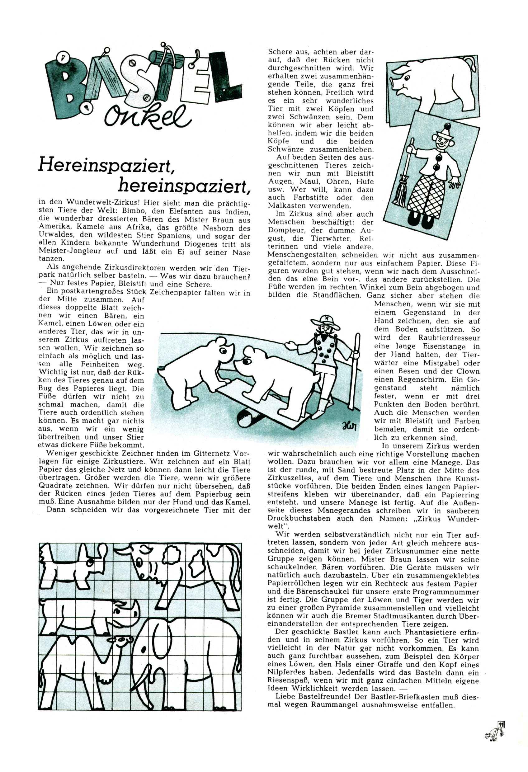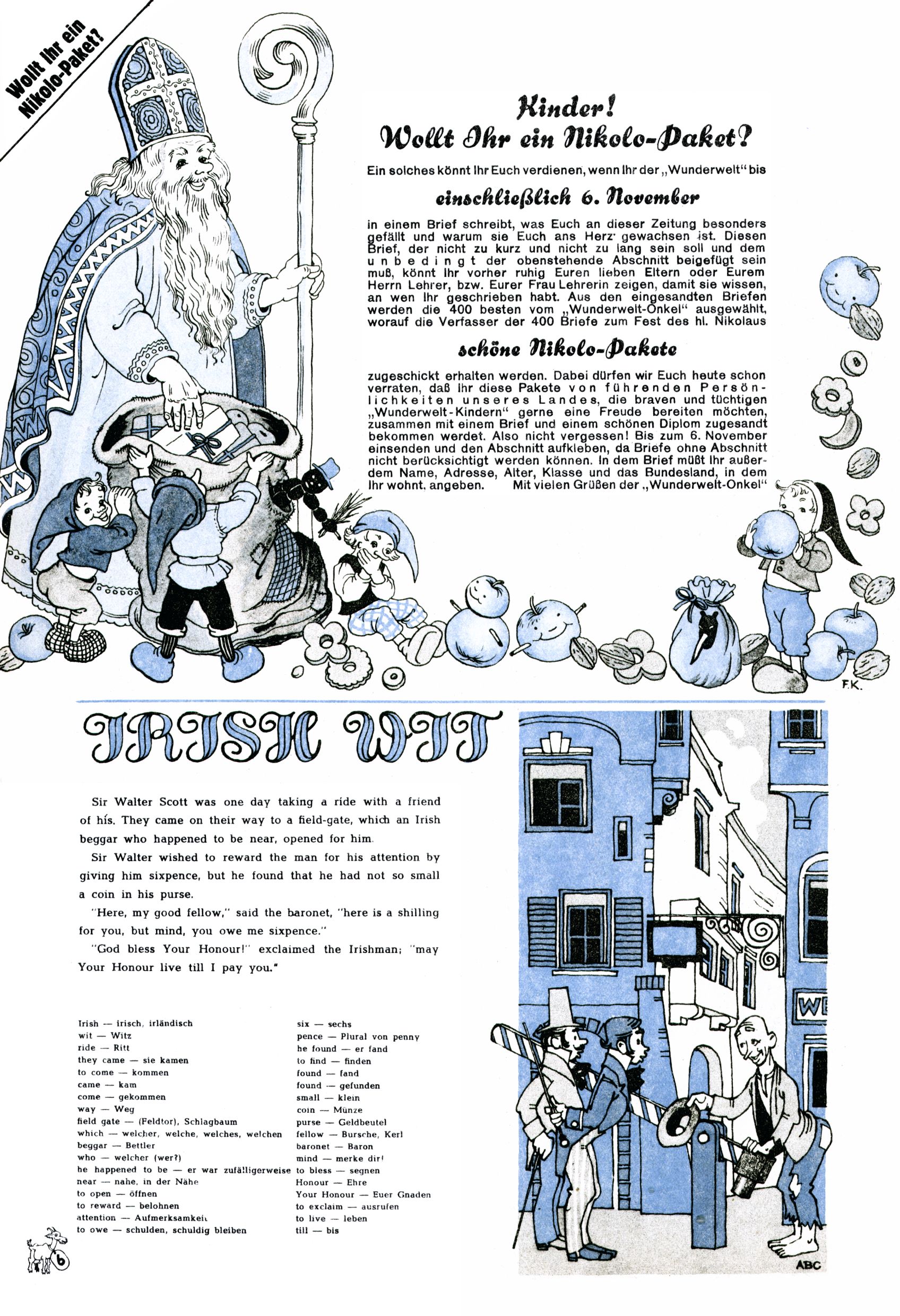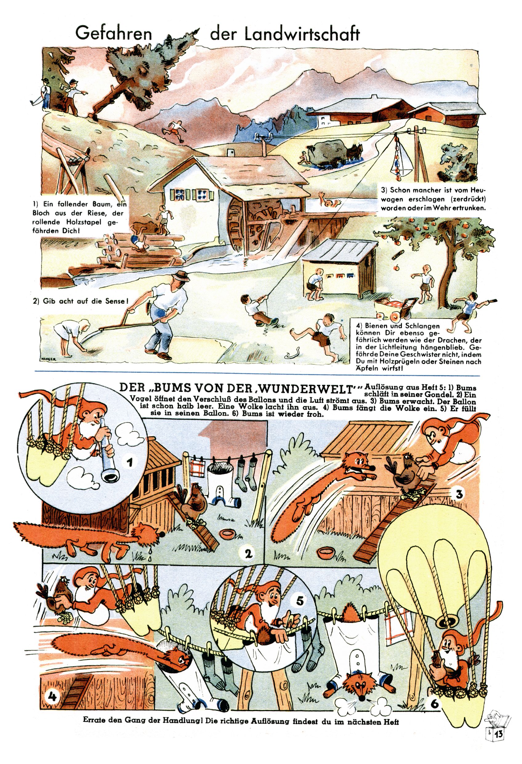 Das Gründungsjahr 1948 – Zeit der Experimente Als der Hauptschullehrer JD Josef Domany zu Ostern 1948 die Idee für eine neue Kinderzeitung umsetzte, war dies nicht nur ein großes finanzielles Risiko in einer ungewissen Zeit, sondern auch ein Schuss ins Blaue. Von den zu diesem Zeitpunkt existierenden österreichischen Kinderzeitungen Kinderpost und Unsere Zeitung suchte JD sich einen geeigneten Mix aus Geschichten, Comics und Aktivseiten heraus, definierte das Grundprinzip der Gewaltfreiheit, des Schönen und des Guten und zusammen mit Hans Weinhappel entwarf er ein Layout, das kostengünstig umgesetzt werden konnte. Ob dieses konservative Konzept Erfolg haben würde in einer Zeit, in der in einem wesentlichen Teil von Österreich die Kommunisten das Sagen hatten, war zunächst mehr als ungewiss. Dennoch wurde es eine erfolgreiche Geburt der Wunderwelt-Zeitung. Trotz häufiger kleinerer Umstellungen im ersten Jahr blieb das festgelegte Grundprinzip ab dem 2. Heft der Wunderwelt mehr als 20 Jahre lang praktisch unverändert: Die Comic-Geschichte als Aufhänger hinten, ein reizendes Titelbild als Blickfang vorne, in der Heftmitte das bunt gestaltete Mittelmächen und rundherum wurden weitere Geschichten, Informatives, Rätsel und Bastelbeiträge gruppiert. Die Abenteuer von Diogenes waren gleich im 1. Heft schon die erste Comicserie der Wunderwelt. Abgelöst wurde Diogenes durch Hokus und Willibald im 10. Heft 1948. Das war der erste wirkliche Geniestreich. Die einfallsreichen und kreativ umgesetzten Abenteuer des Zauberlehrlings Willibald waren mehr als ein Jahrzehnt lang am Höhenflug der Zeitung beteiligt. Zwerg Bumsti hatte 1948 noch nicht das Licht der Welt erblickt. Aber Wichtelmännlein auf Froschjagd im 16. Heft war die erste Vorgängergeschichte zu Bumstis Abenteuer. Weiters trugen die lieblichen Mittelmärchen und die Bastelideen von Hans Weinhappel bereits maßgeblich zum wachsenden Erfolg der Wunderwelt bei. Das einzige Standbein der Zeitung, das 1948 noch fehlte, waren die Ausschneidebögen. Ende 1948 war dann die Liste der meisten großen Namen unter den Zeichnern der Wunderwelt des ersten Jahrzehnts komplett: Peter Paul Prinz, Teja Aicher, Rosl Warzilek, Felicitas Kuhn und Lisbeth Hölzl. Bei den Pädagogen und Textern kam es abgesehen von Hans Weinhappel noch zu umfangreicheren Umstellungen. Kurt Kluger, der die ersten Technik- und Rätselbeiträge der Zeitung