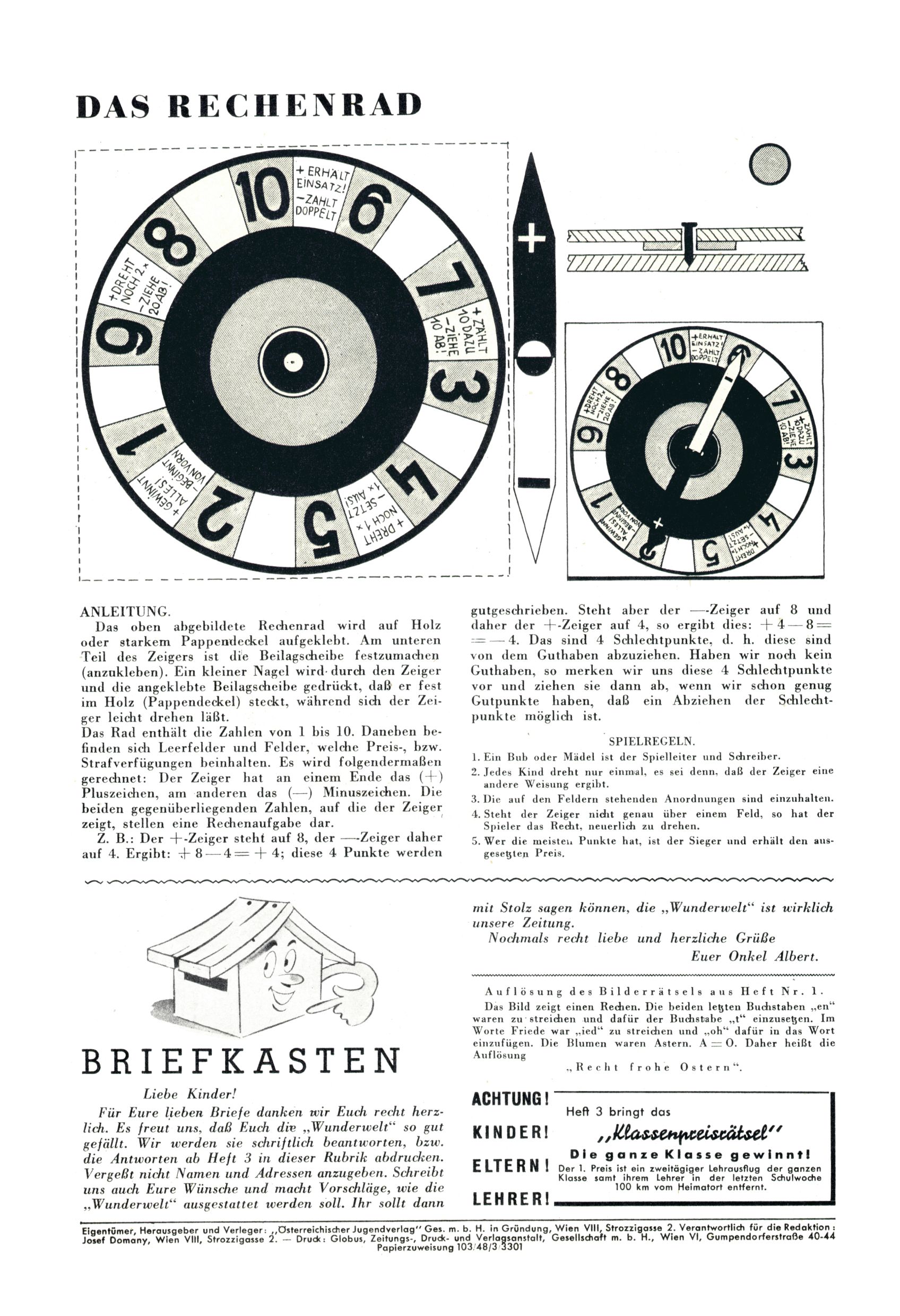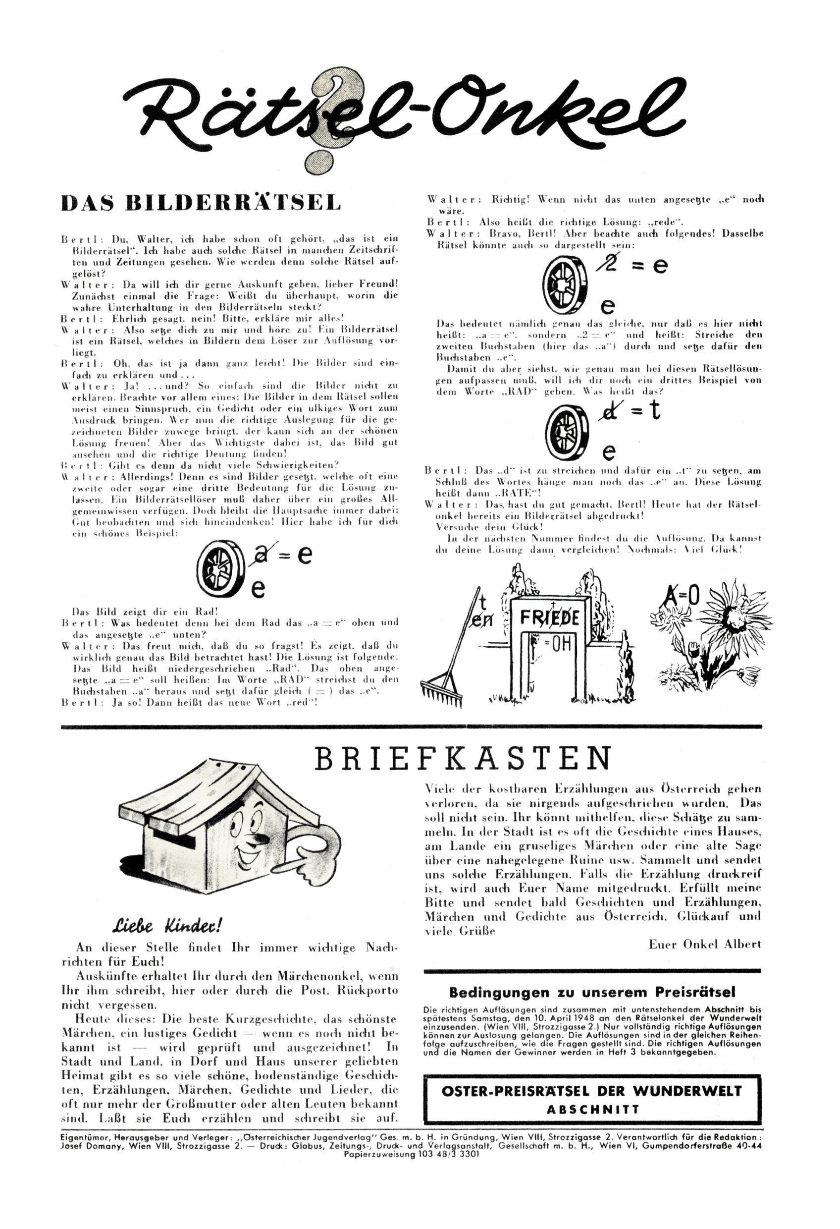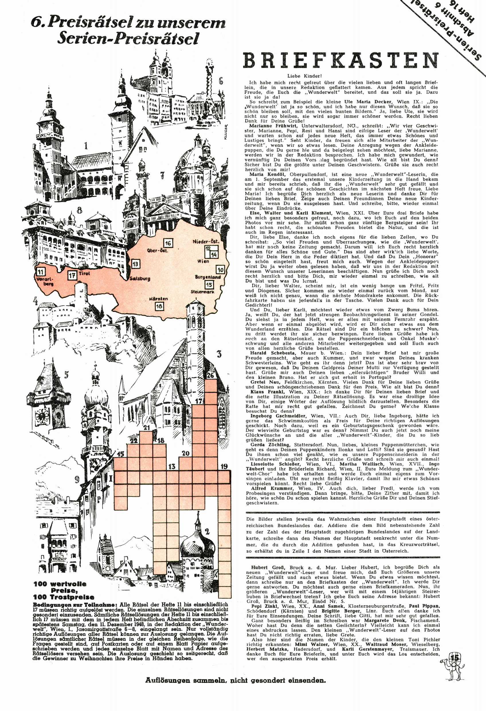 6. Preisrätsel / Briefkasten (K. Kluger) |
