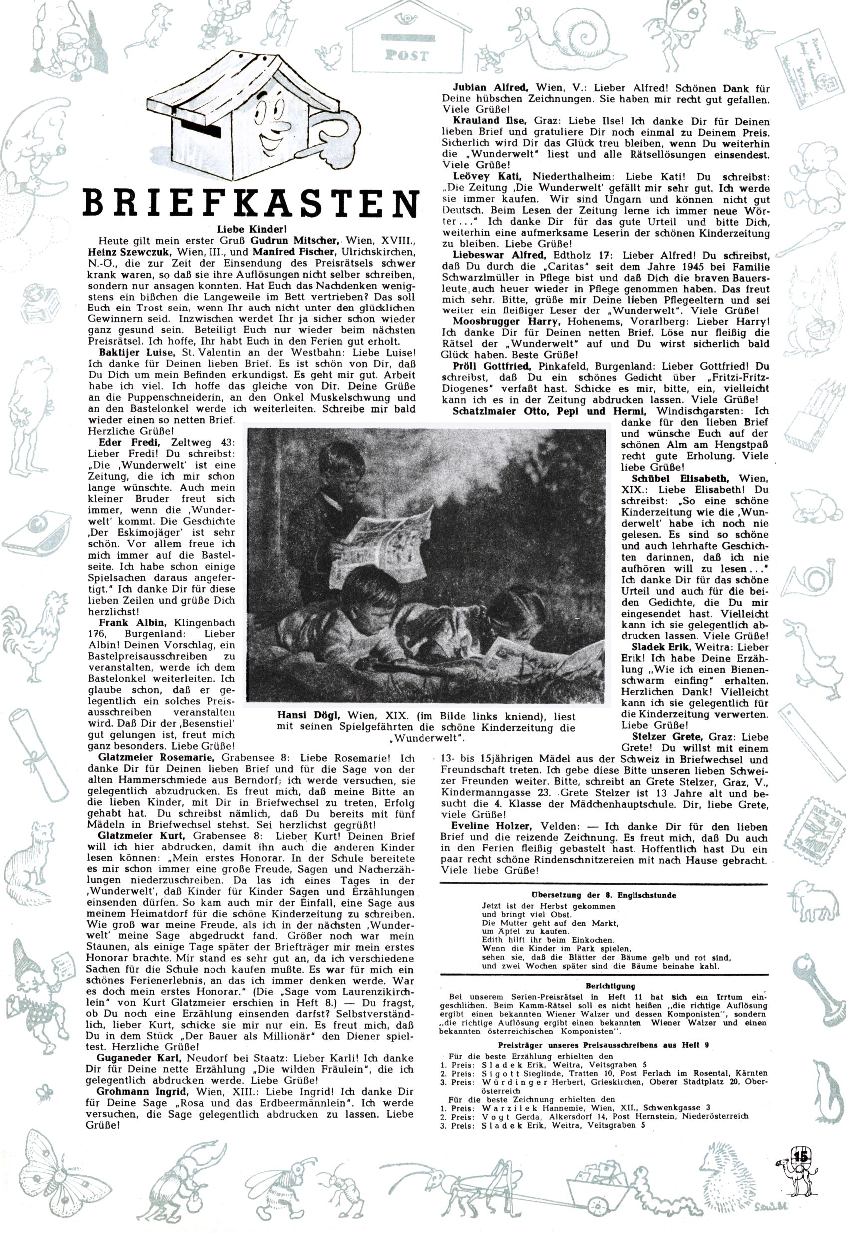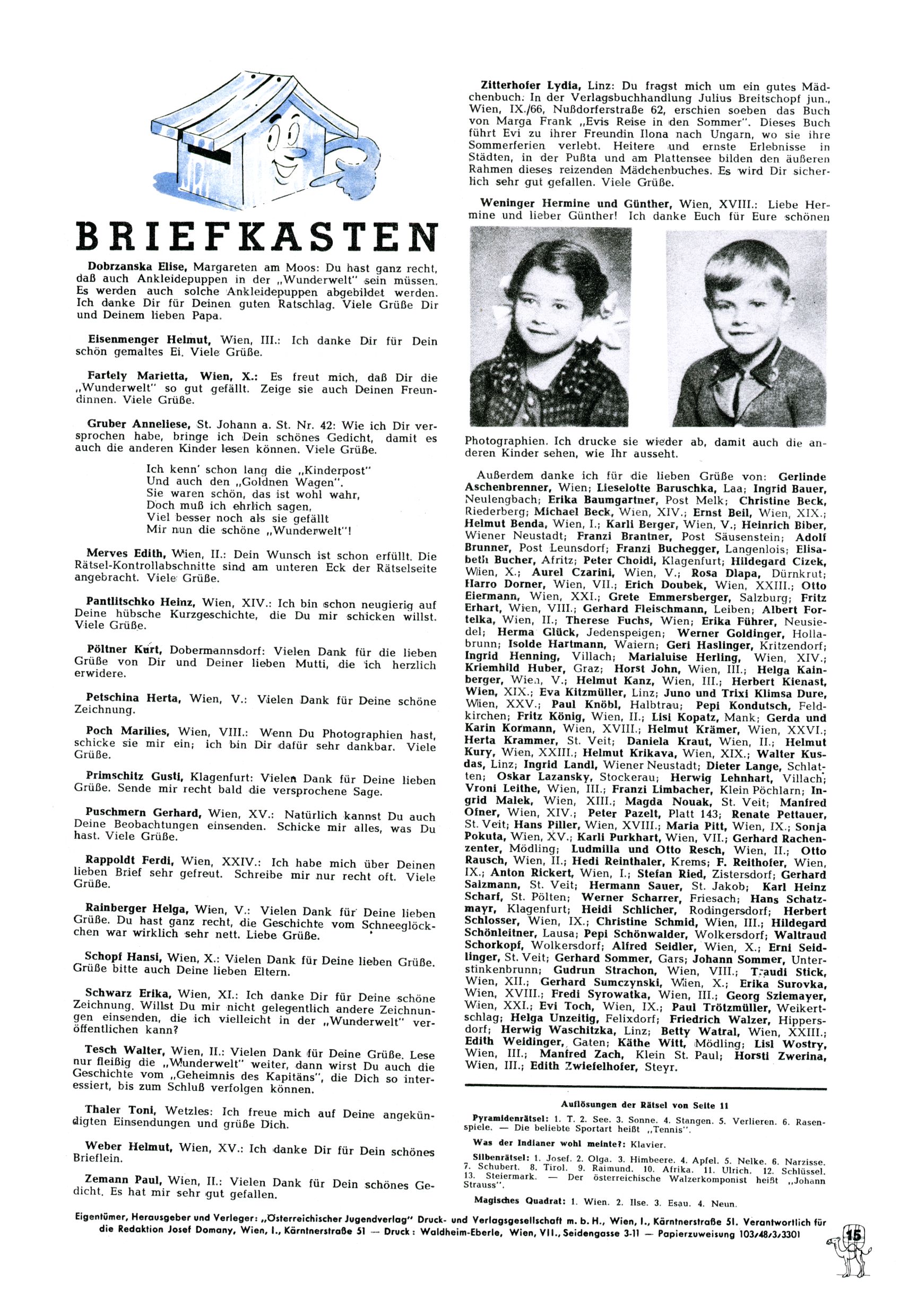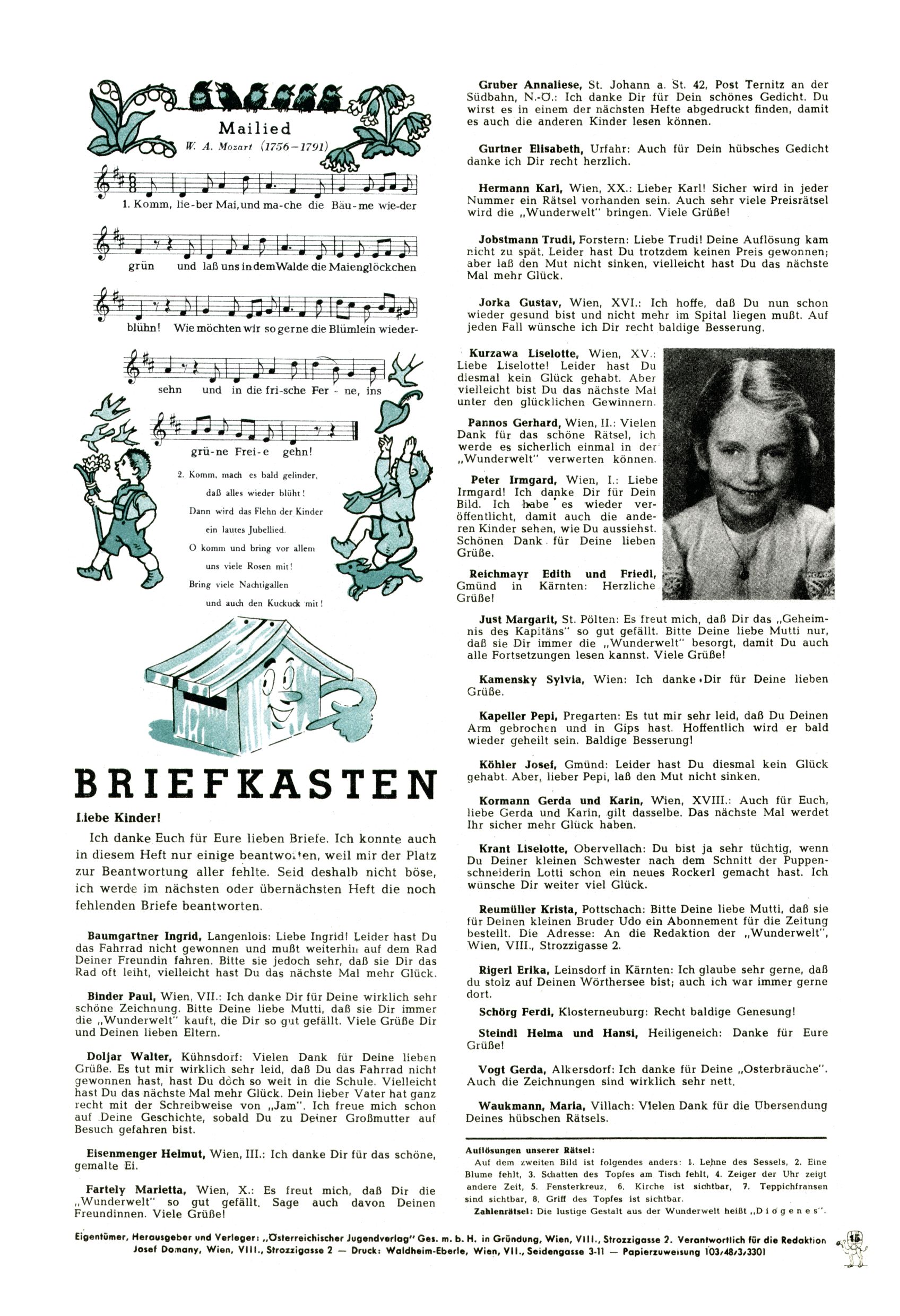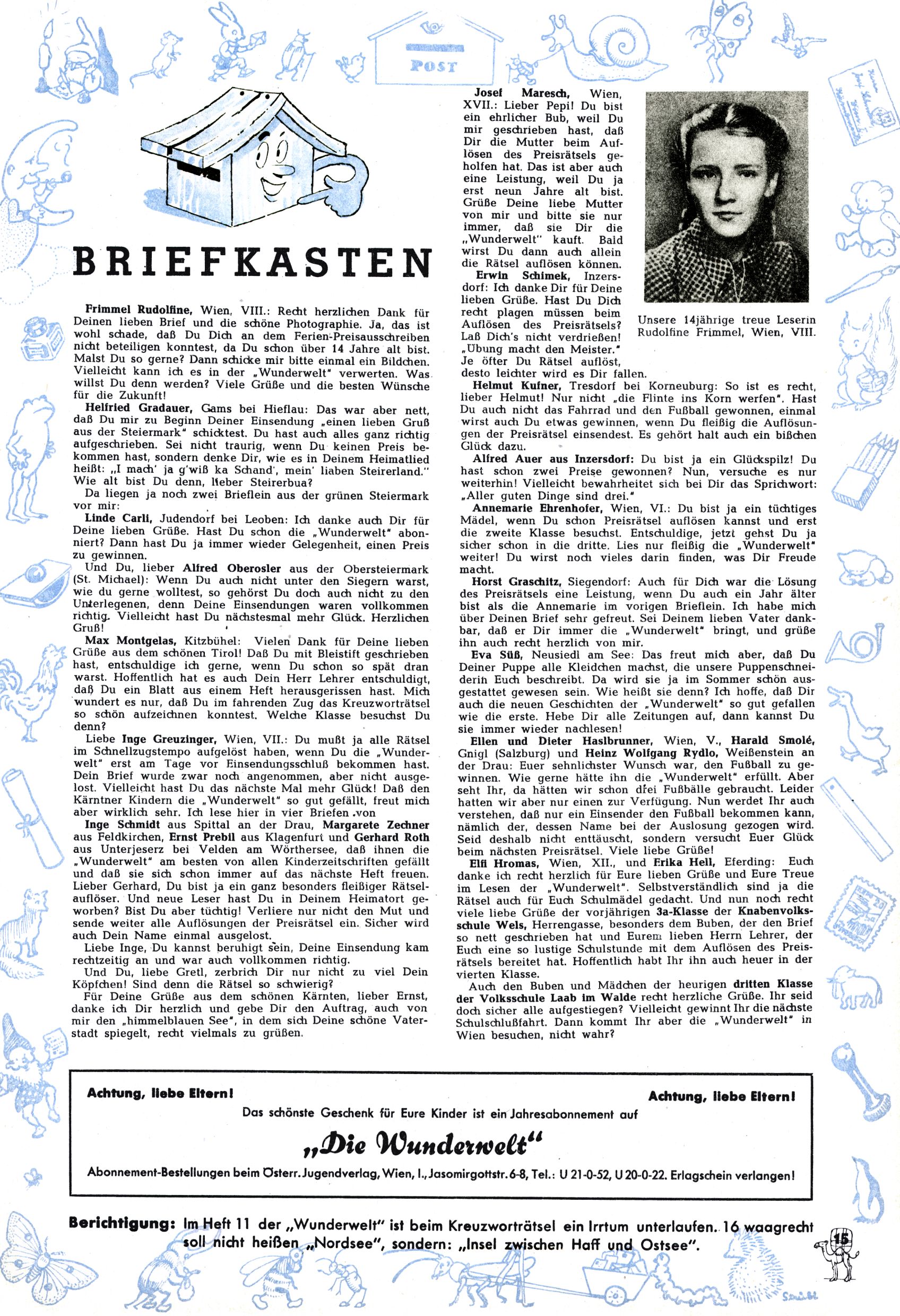 6. Preisrätsel / Briefkasten (K. Kluger) |