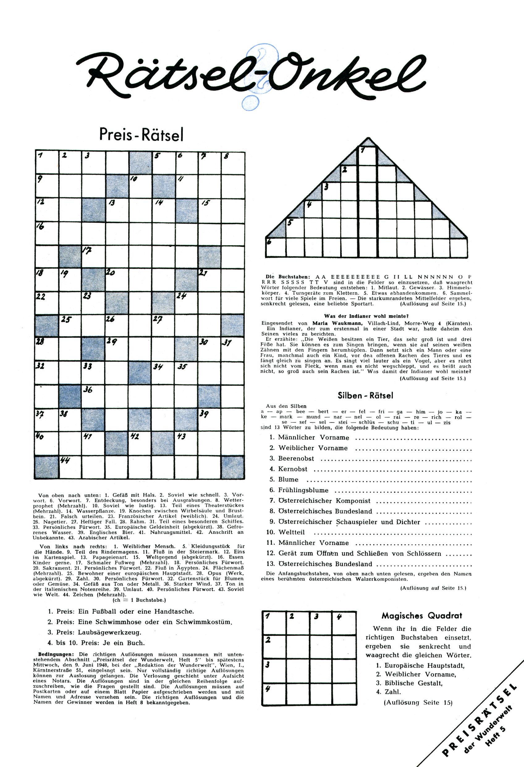 5. Preisrätsel (K. Kluger) |