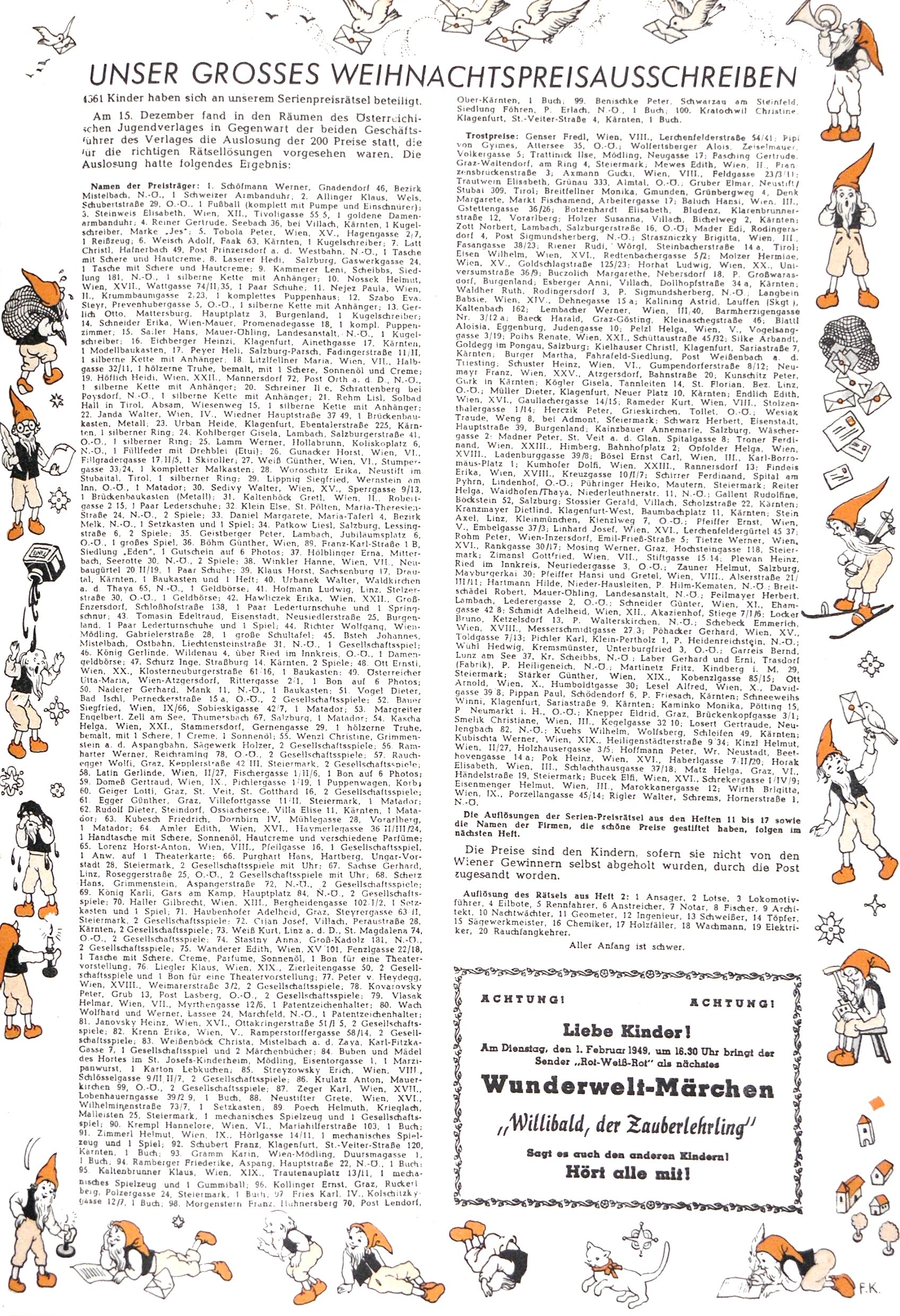 Gewinner Weihnachtspreisausschreiben (FK) |