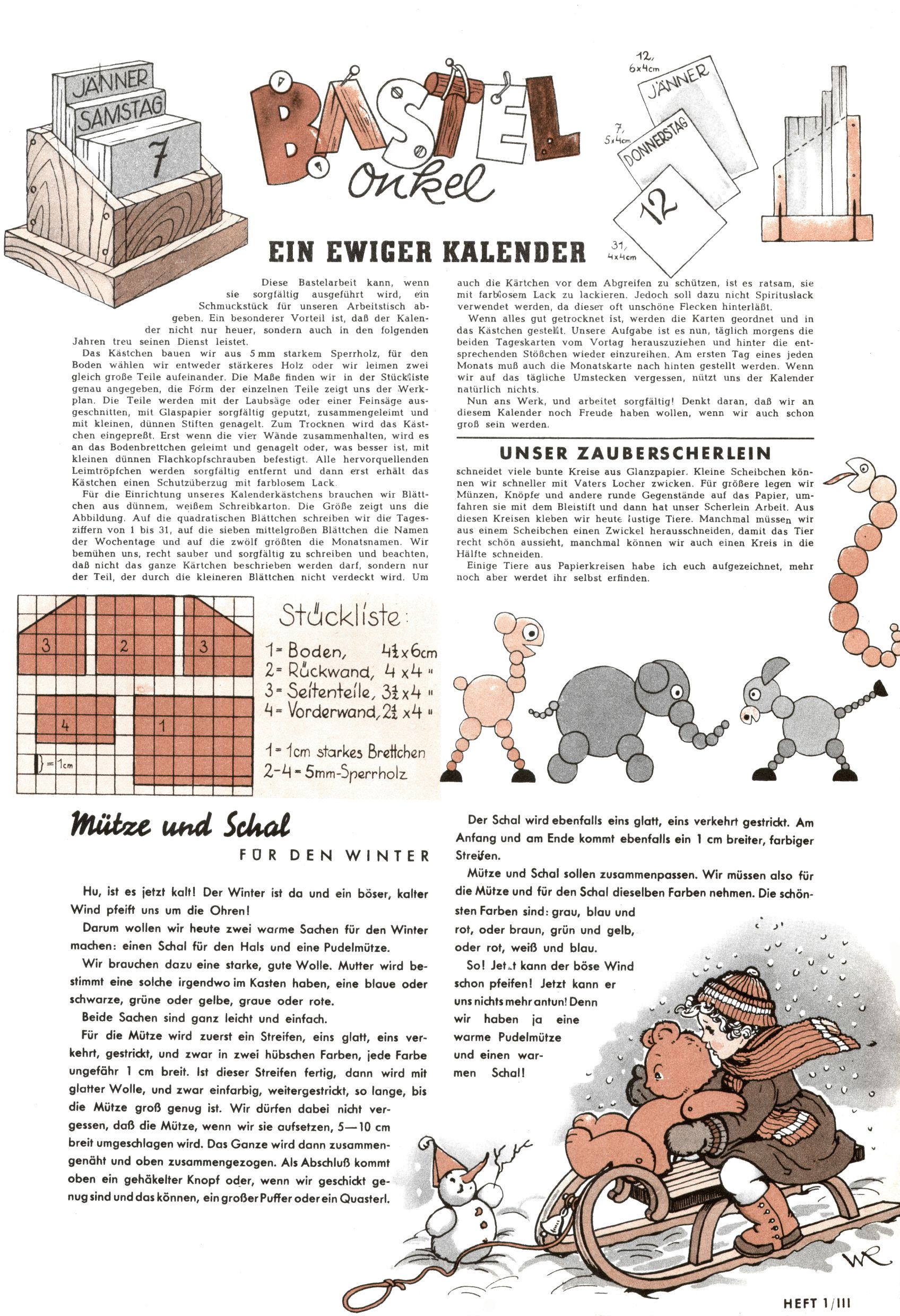 Bastelonkel - Ewiger Kalender / Mütze + Schal für den Winter (HW / WR) |