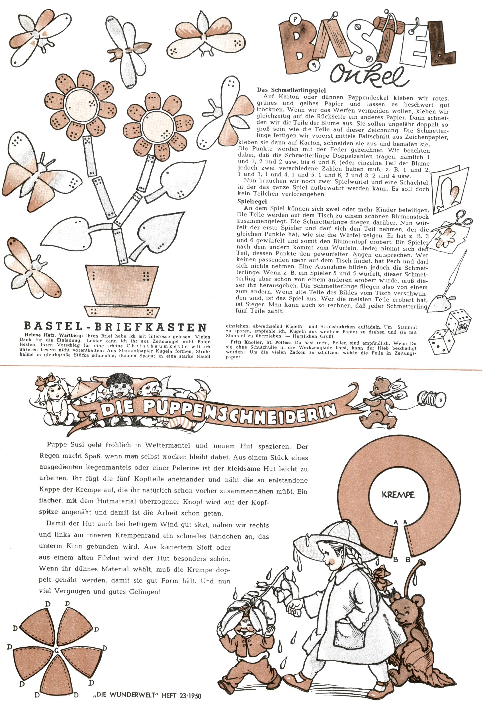 Bastelonkel – Schmetterlingsspiel / Briefkasten / Die Puppenschneiderin (HW / WR) |