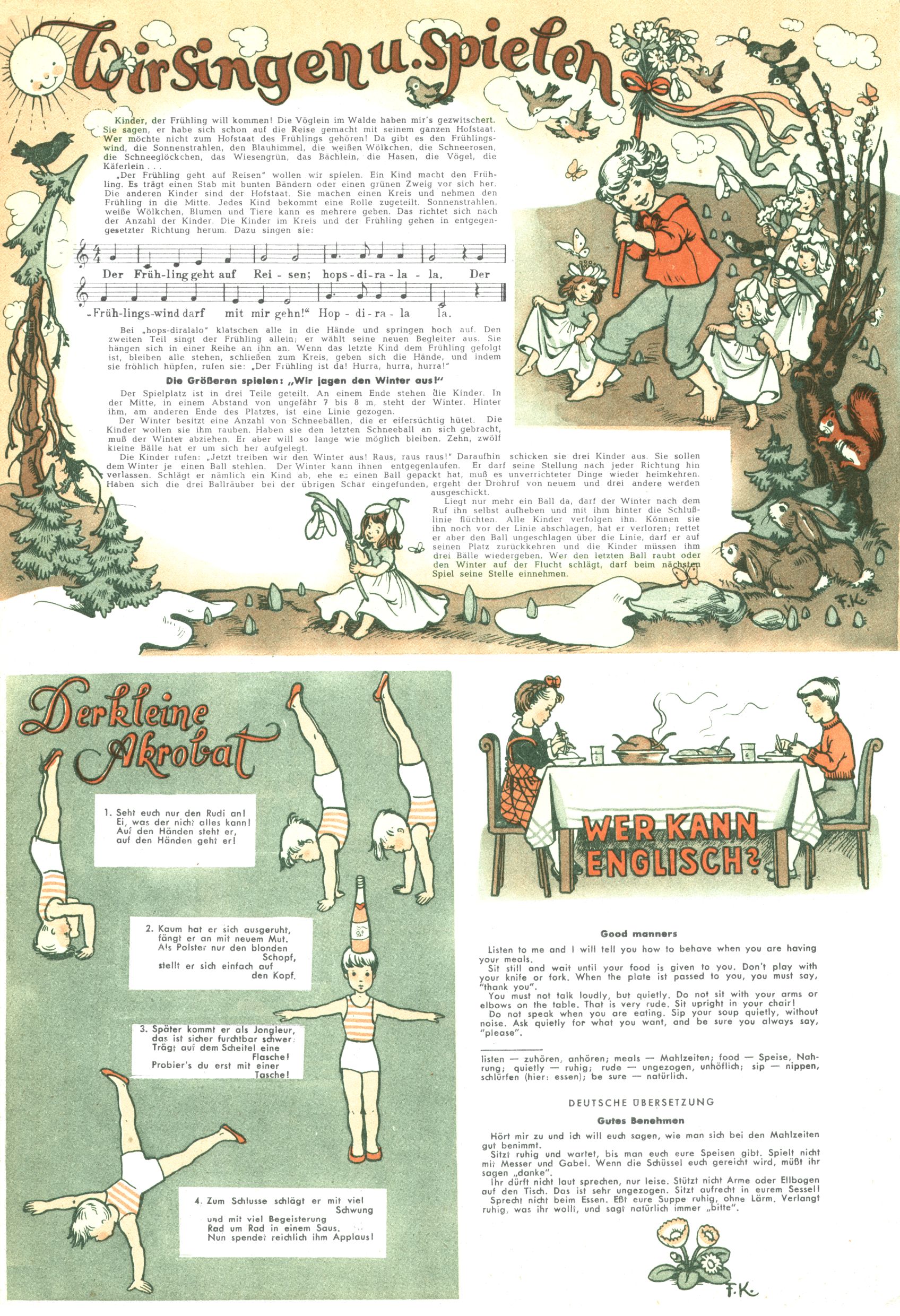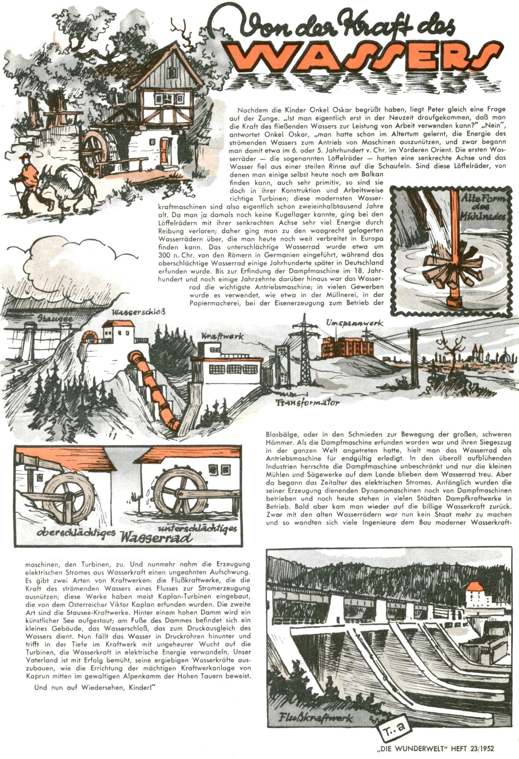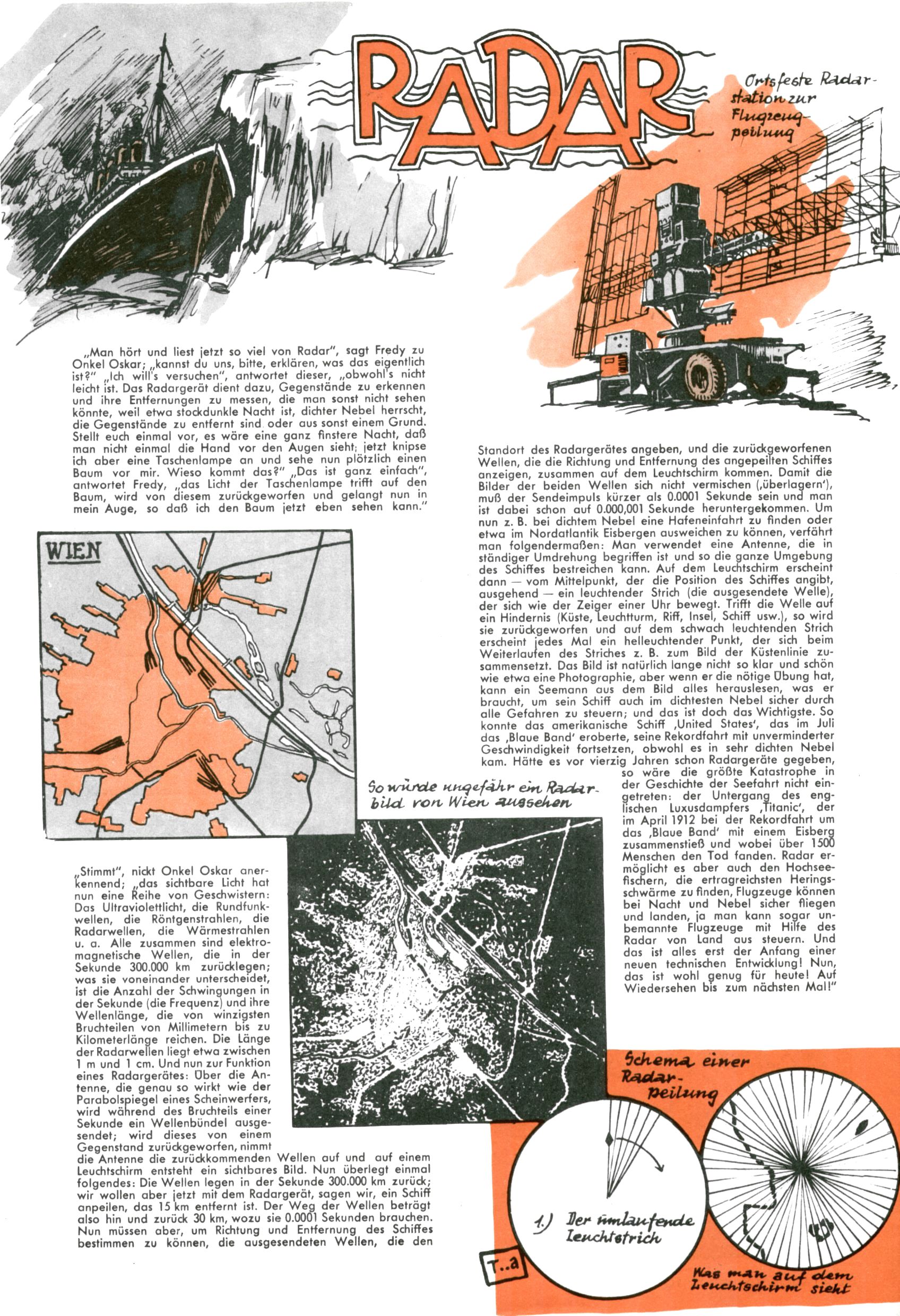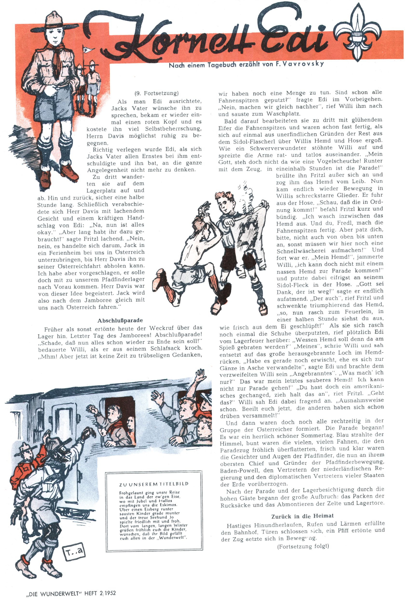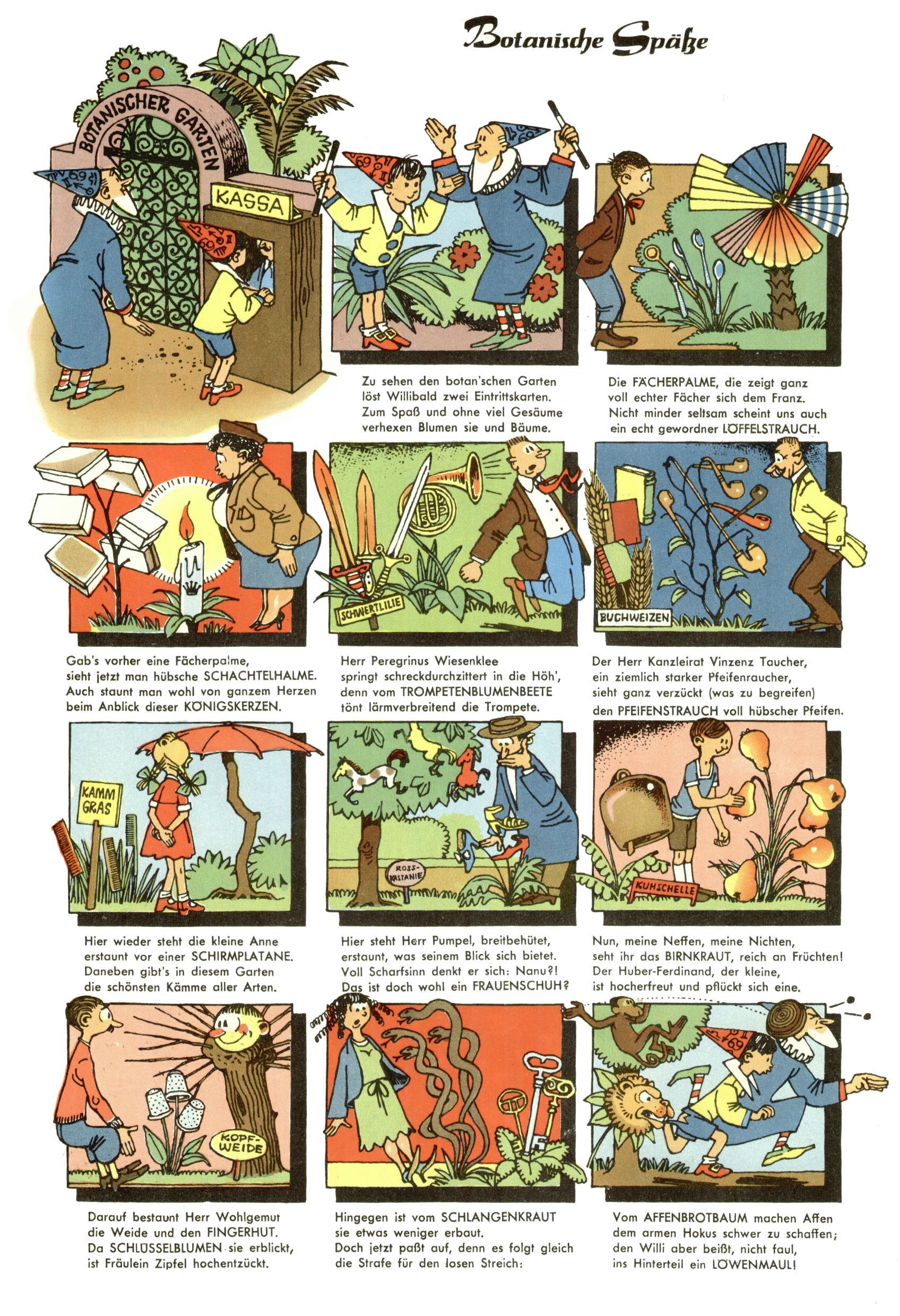 1952 – Der Erfolg hält an Wem Erfolg zuteil wird, der hat wenig Anlass, sein Konzept zu ändern. Und das war in gewisser Weise auch gut so bei allen inhaltlichen Schwächen der Beiträge in der Wunderwelt 1952. Der Erfolg der Zeitung wurde in erster Linie von der grafischen Umsetzung getragen; die lieblichen Bilder einer heilen Märchenwelt ließen über die oft flauen, pädagogisch teilweise sogar fragwürdigen Texte hinwegsehen. Elfriede Vavrovsky schrieb fast alle Texte und Rosl Warzilek zeichnete immer mehr Titelbilder und Mittelmärchen. ABC Peter Paul Prinz hatte Ende 1951 Meister Hokus als komischen Widerpart vom Zauberlehrling Willibald entdeckt und perfektionierte diesen Dualismus nun immer mehr. Meister Hokus avancierte zur regelmäßigen Lachnummer. Dafür überließ ABC vorübergehend Teja Aicher die Gestaltung der technischen Seite, dessen Zwerg Bumsti ebenfalls bereits untrennbar mit der Wunderwelt verbunden schien und längst zum Markenzeichen aufgestiegen war. Seine ko(s)mischen Superhelden Piff und Paff hatten jedoch allmählich genug von den Menschen und kehrten der Erde den Rücken zu. Für den Einsatz im Schulunterricht wurden weiterhin von Elfriede Vavrovsky erstellte politische und geografische Daten und Karten gedruckt, was gerne angenommen wurde, denn teure Atlanten gab es 1952 noch wenige, als viele politische Grenzen gar nicht endgültig geklärt schienen. |