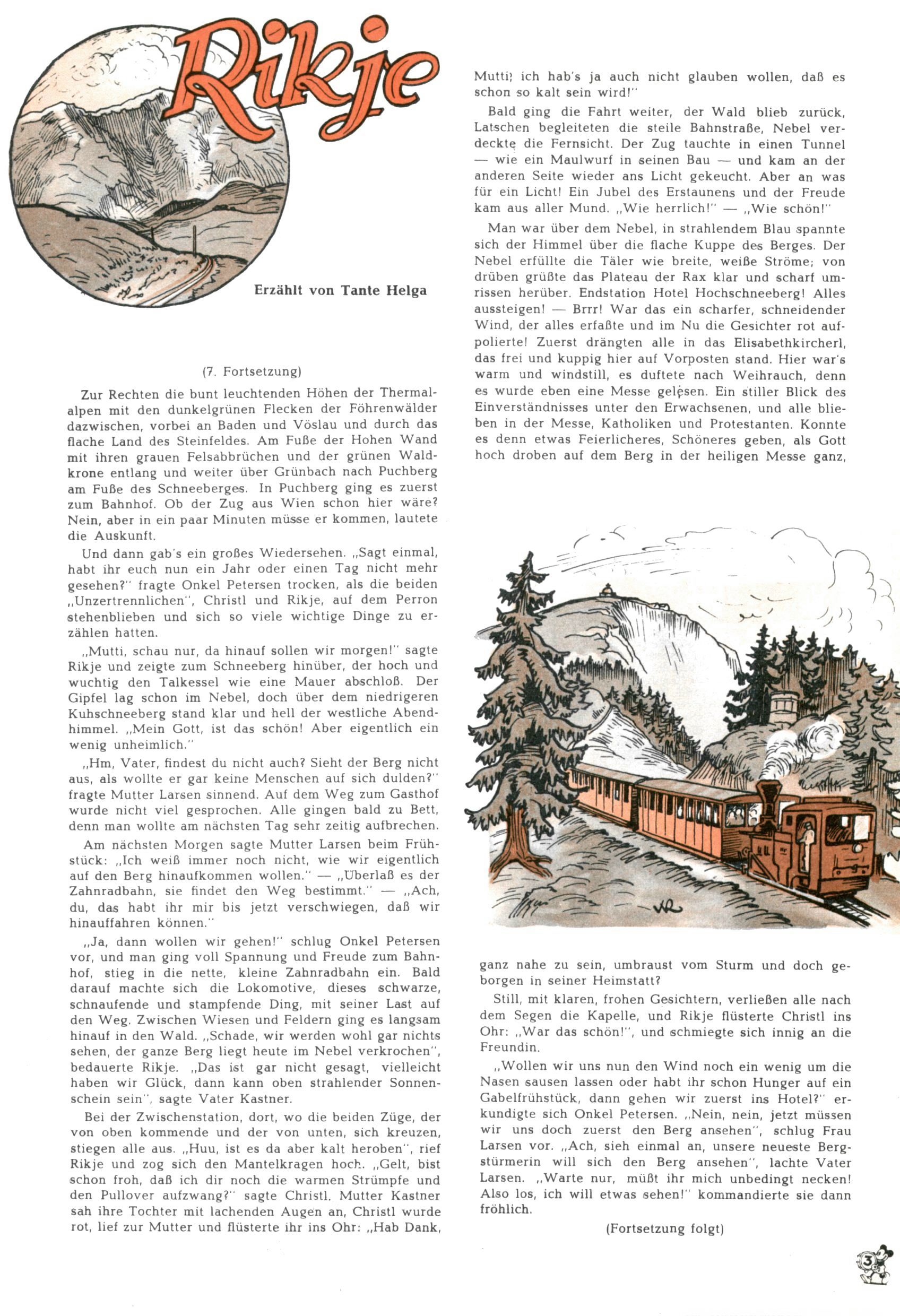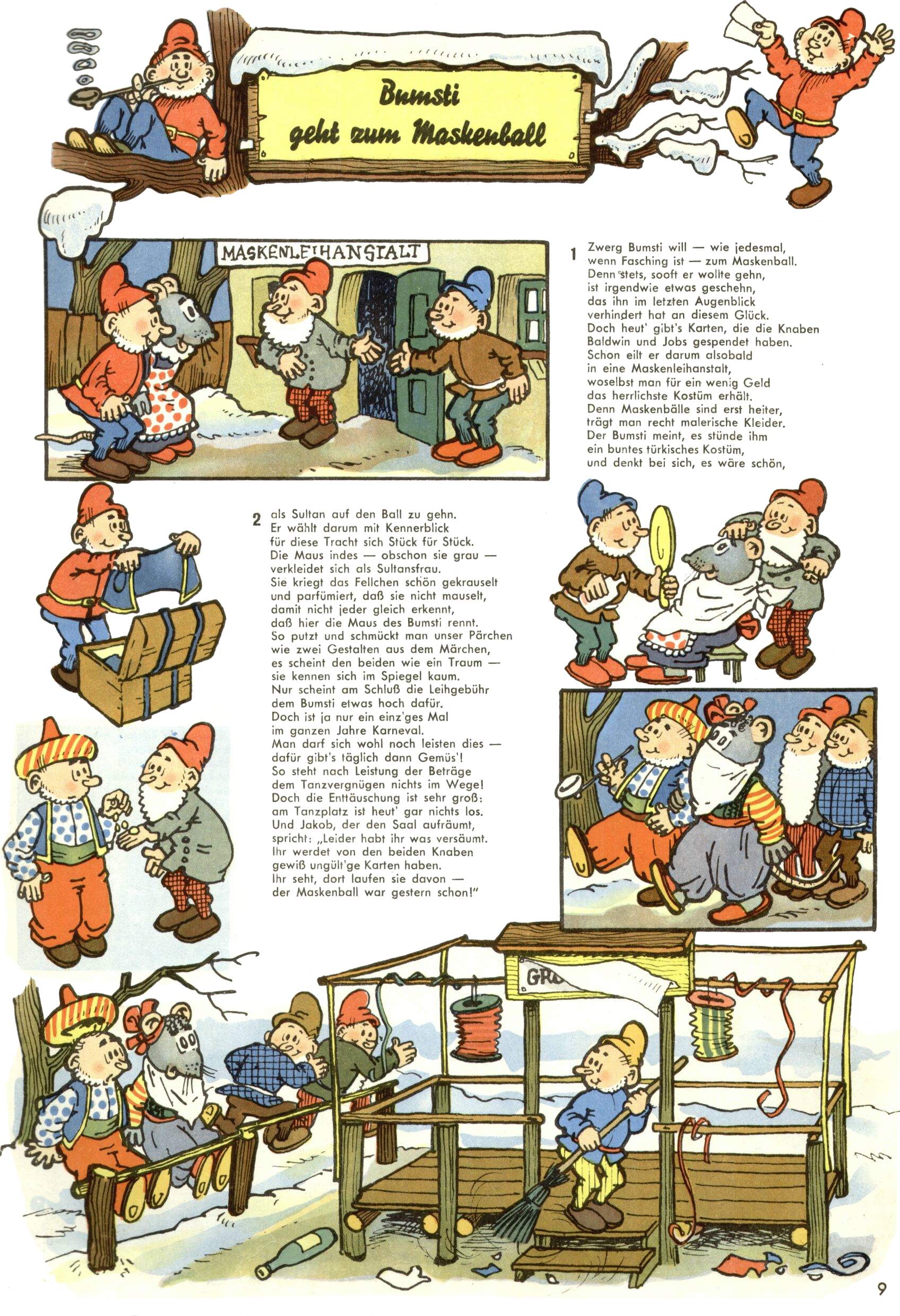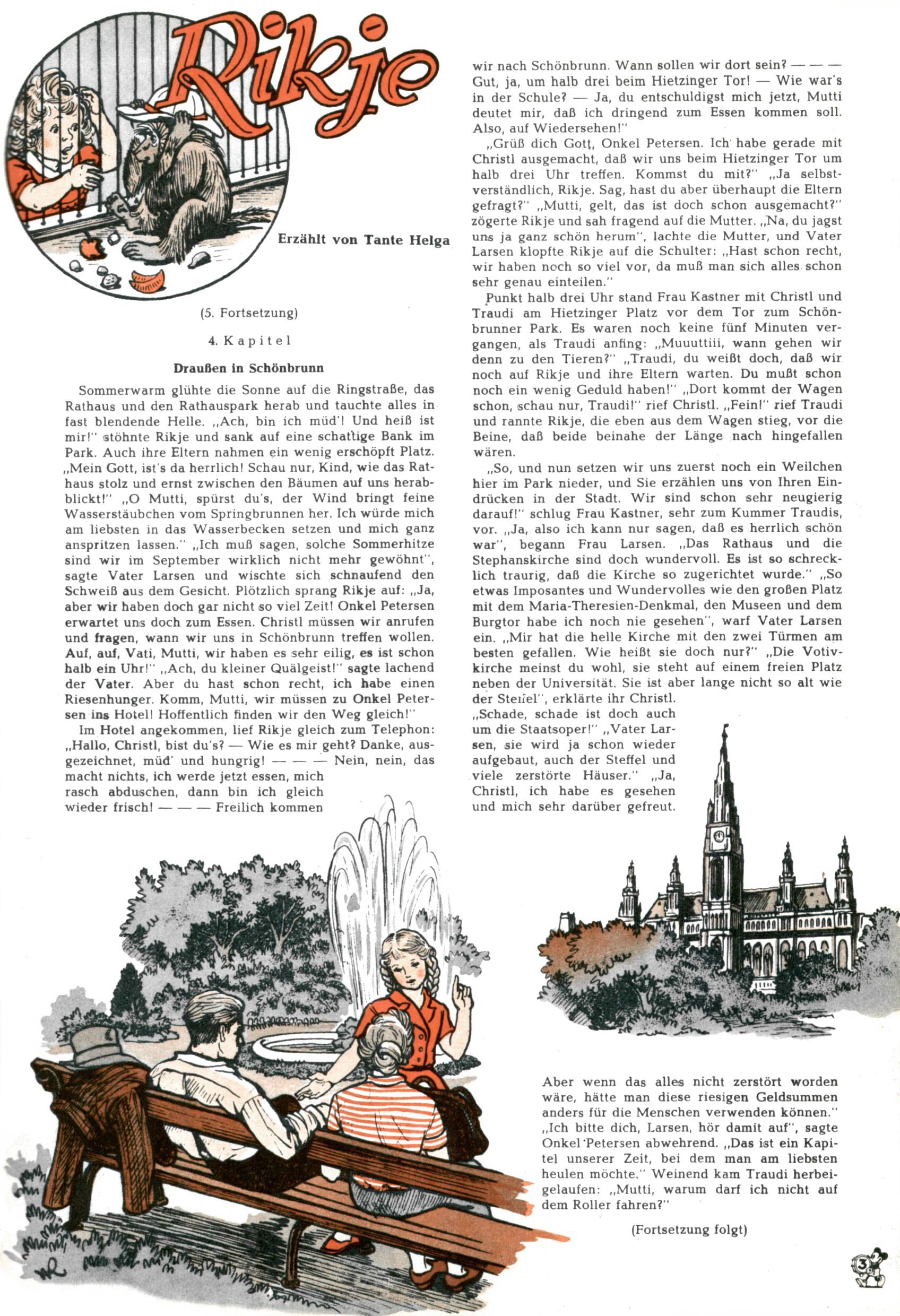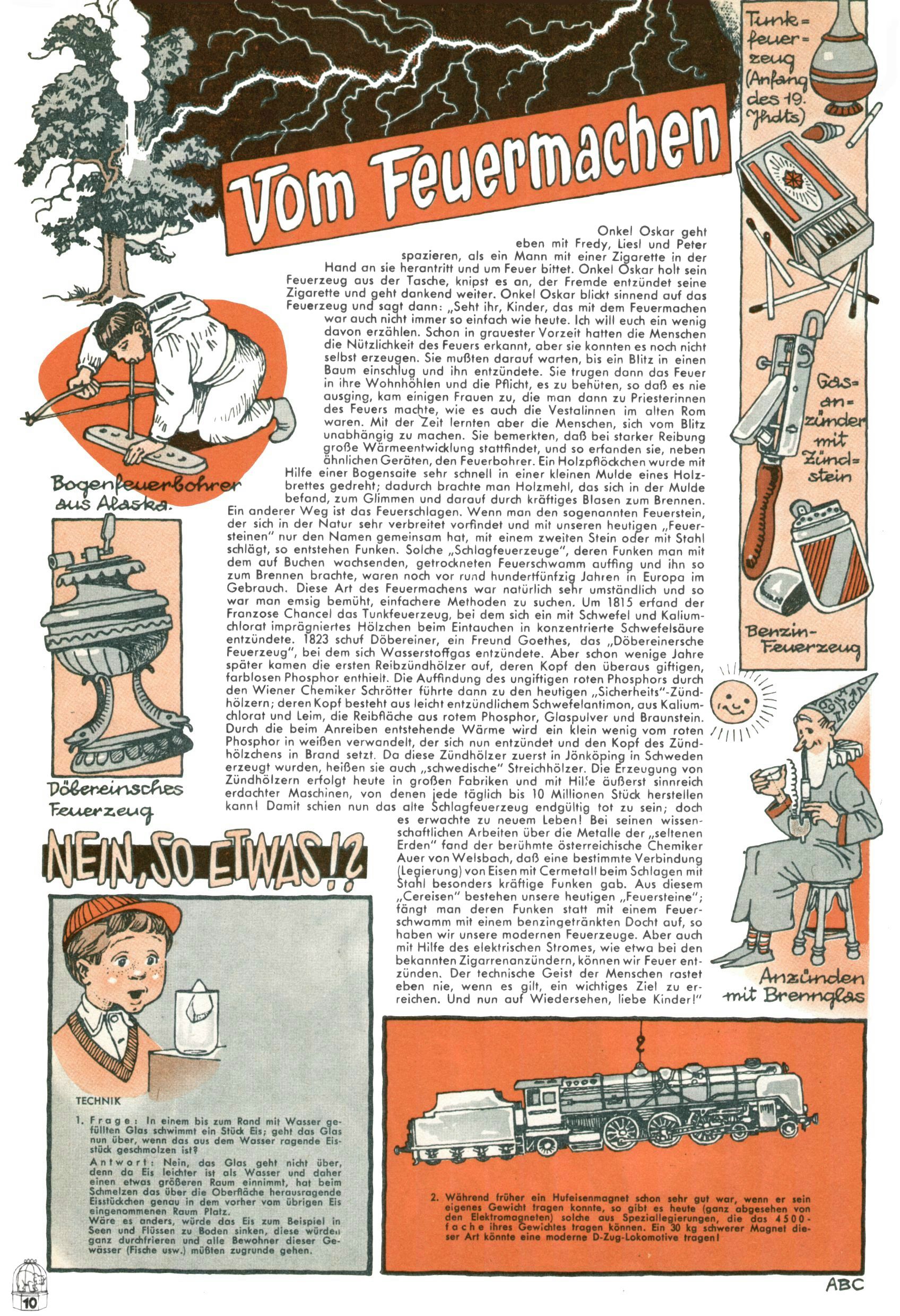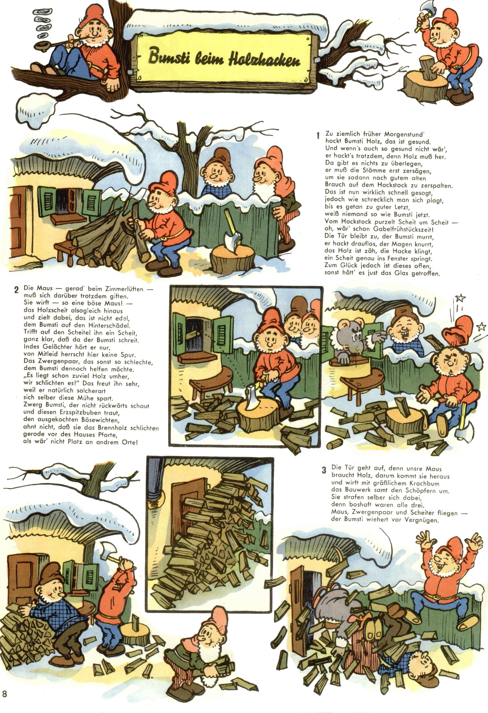 1952 – Der Erfolg hält an Wem Erfolg zuteil wird, der hat wenig Anlass, sein Konzept zu ändern. Und das war in gewisser Weise auch gut so bei allen inhaltlichen Schwächen der Beiträge in der Wunderwelt 1952. Der Erfolg der Zeitung wurde in erster Linie von der grafischen Umsetzung getragen; die lieblichen Bilder einer heilen Märchenwelt ließen über die oft flauen, pädagogisch teilweise sogar fragwürdigen Texte hinwegsehen. Elfriede Vavrovsky schrieb fast alle Texte und Rosl Warzilek zeichnete immer mehr Titelbilder und Mittelmärchen. ABC Peter Paul Prinz hatte Ende 1951 Meister Hokus als komischen Widerpart vom Zauberlehrling Willibald entdeckt und perfektionierte diesen Dualismus nun immer mehr. Meister Hokus avancierte zur regelmäßigen Lachnummer. Dafür überließ ABC vorübergehend Teja Aicher die Gestaltung der technischen Seite, dessen Zwerg Bumsti ebenfalls bereits untrennbar mit der Wunderwelt verbunden schien und längst zum Markenzeichen aufgestiegen war. Seine ko(s)mischen Superhelden Piff und Paff hatten jedoch allmählich genug von den Menschen und kehrten der Erde den Rücken zu. Für den Einsatz im Schulunterricht wurden weiterhin von Elfriede Vavrovsky erstellte politische und geografische Daten und Karten gedruckt, was gerne angenommen wurde, denn teure Atlanten gab es 1952 noch wenige, als viele politische Grenzen gar nicht endgültig geklärt schienen. |