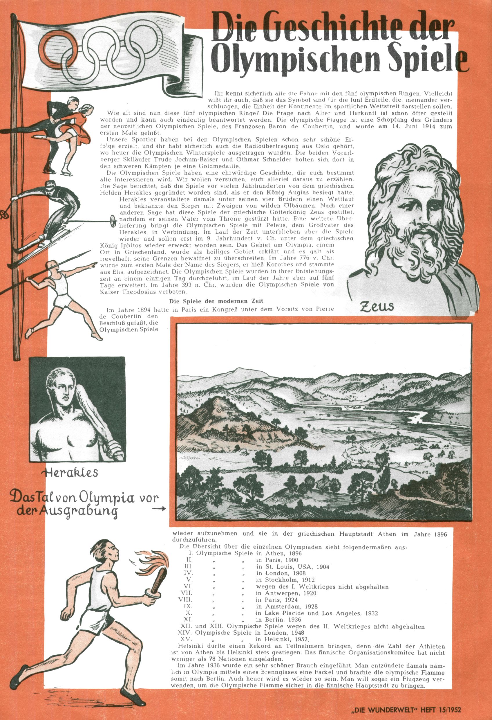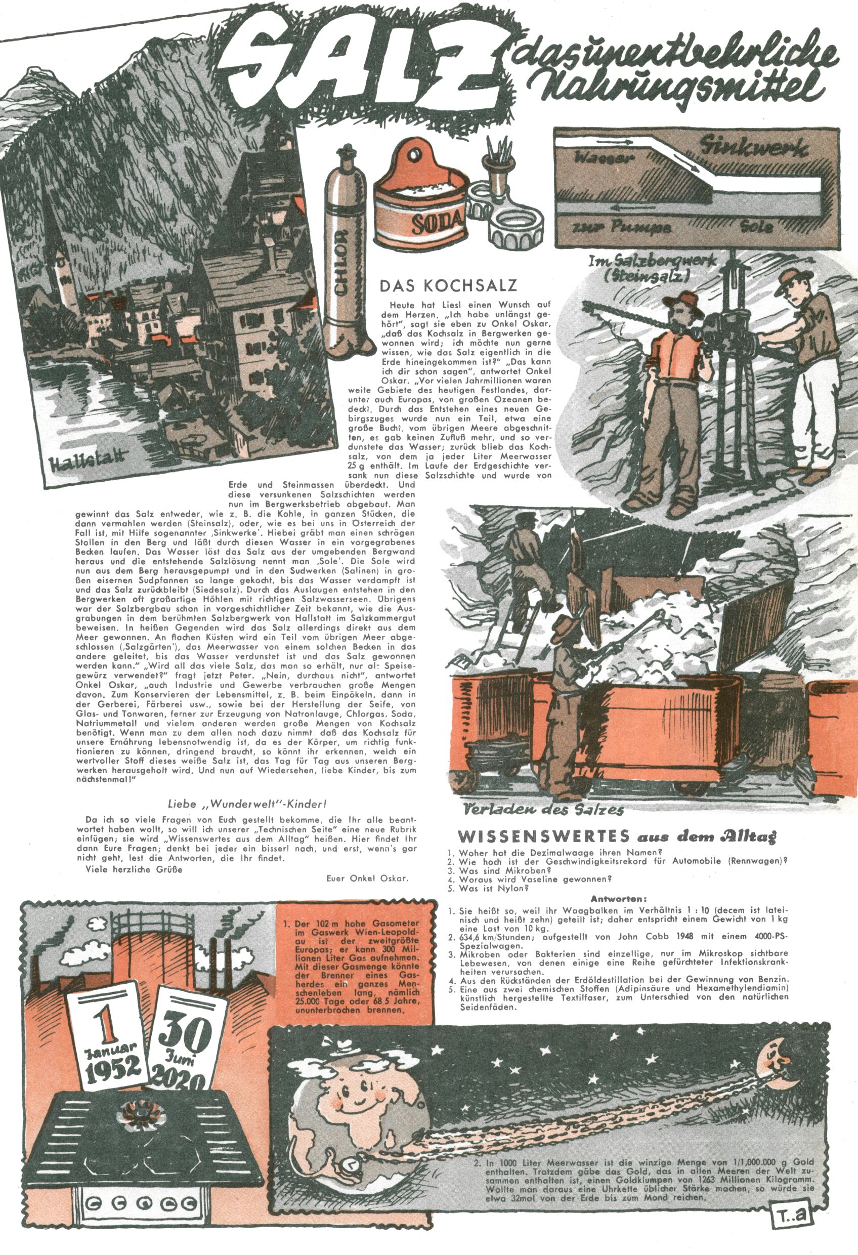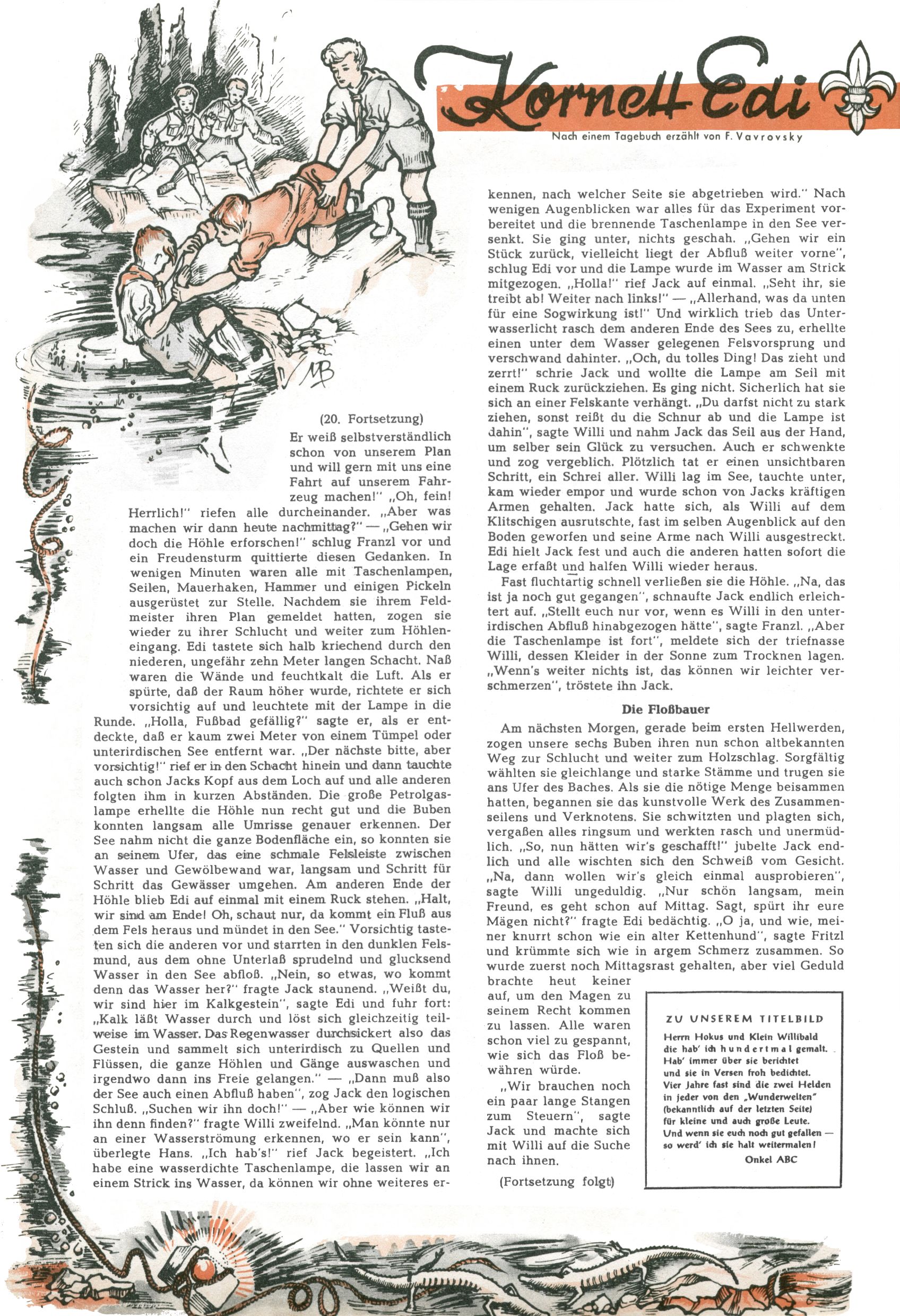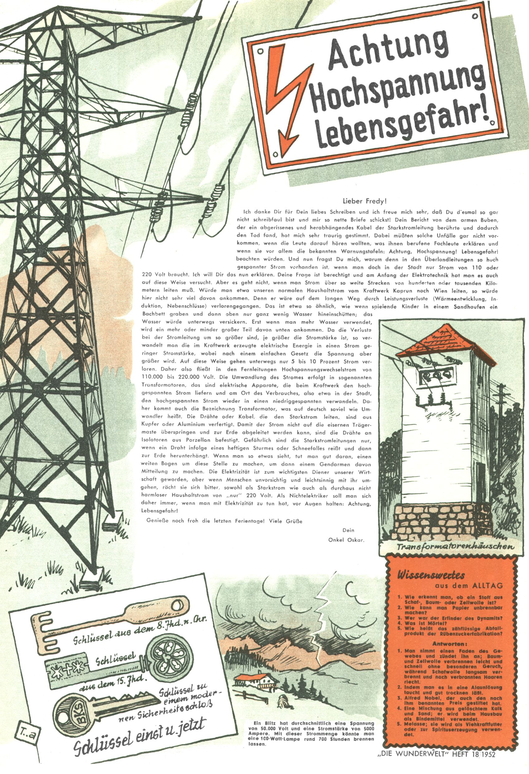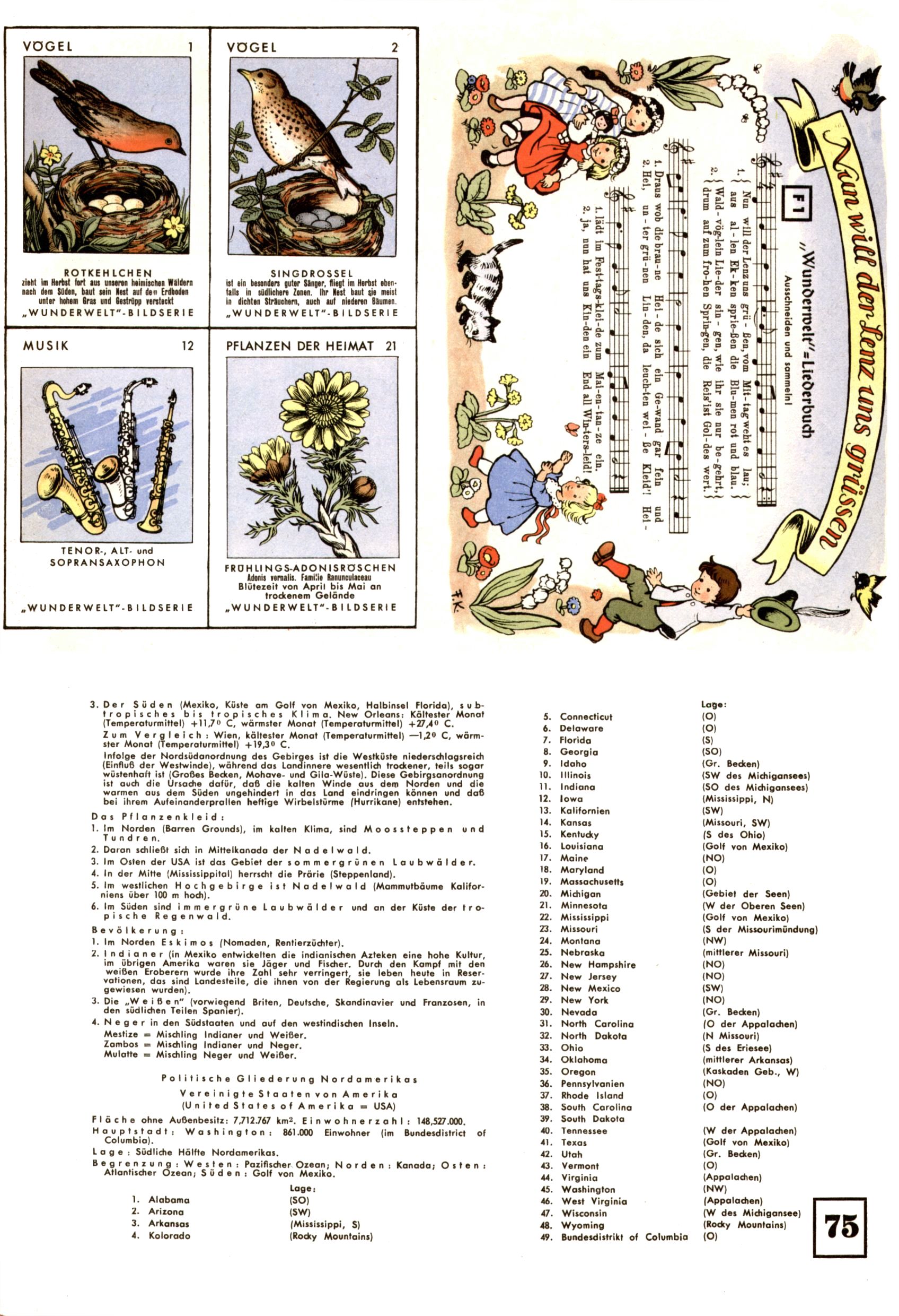 1952 – Der Erfolg hält an Wem Erfolg zuteil wird, der hat wenig Anlass, sein Konzept zu ändern. Und das war in gewisser Weise auch gut so bei allen inhaltlichen Schwächen der Beiträge in der Wunderwelt 1952. Der Erfolg der Zeitung wurde in erster Linie von der grafischen Umsetzung getragen; die lieblichen Bilder einer heilen Märchenwelt ließen über die oft flauen, pädagogisch teilweise sogar fragwürdigen Texte hinwegsehen. Elfriede Vavrovsky schrieb fast alle Texte und Rosl Warzilek zeichnete immer mehr Titelbilder und Mittelmärchen. ABC Peter Paul Prinz hatte Ende 1951 Meister Hokus als komischen Widerpart vom Zauberlehrling Willibald entdeckt und perfektionierte diesen Dualismus nun immer mehr. Meister Hokus avancierte zur regelmäßigen Lachnummer. Dafür überließ ABC vorübergehend Teja Aicher die Gestaltung der technischen Seite, dessen Zwerg Bumsti ebenfalls bereits untrennbar mit der Wunderwelt verbunden schien und längst zum Markenzeichen aufgestiegen war. Seine ko(s)mischen Superhelden Piff und Paff hatten jedoch allmählich genug von den Menschen und kehrten der Erde den Rücken zu. Für den Einsatz im Schulunterricht wurden weiterhin von Elfriede Vavrovsky erstellte politische und geografische Daten und Karten gedruckt, was gerne angenommen wurde, denn teure Atlanten gab es 1952 noch wenige, als viele politische Grenzen gar nicht endgültig geklärt schienen. |