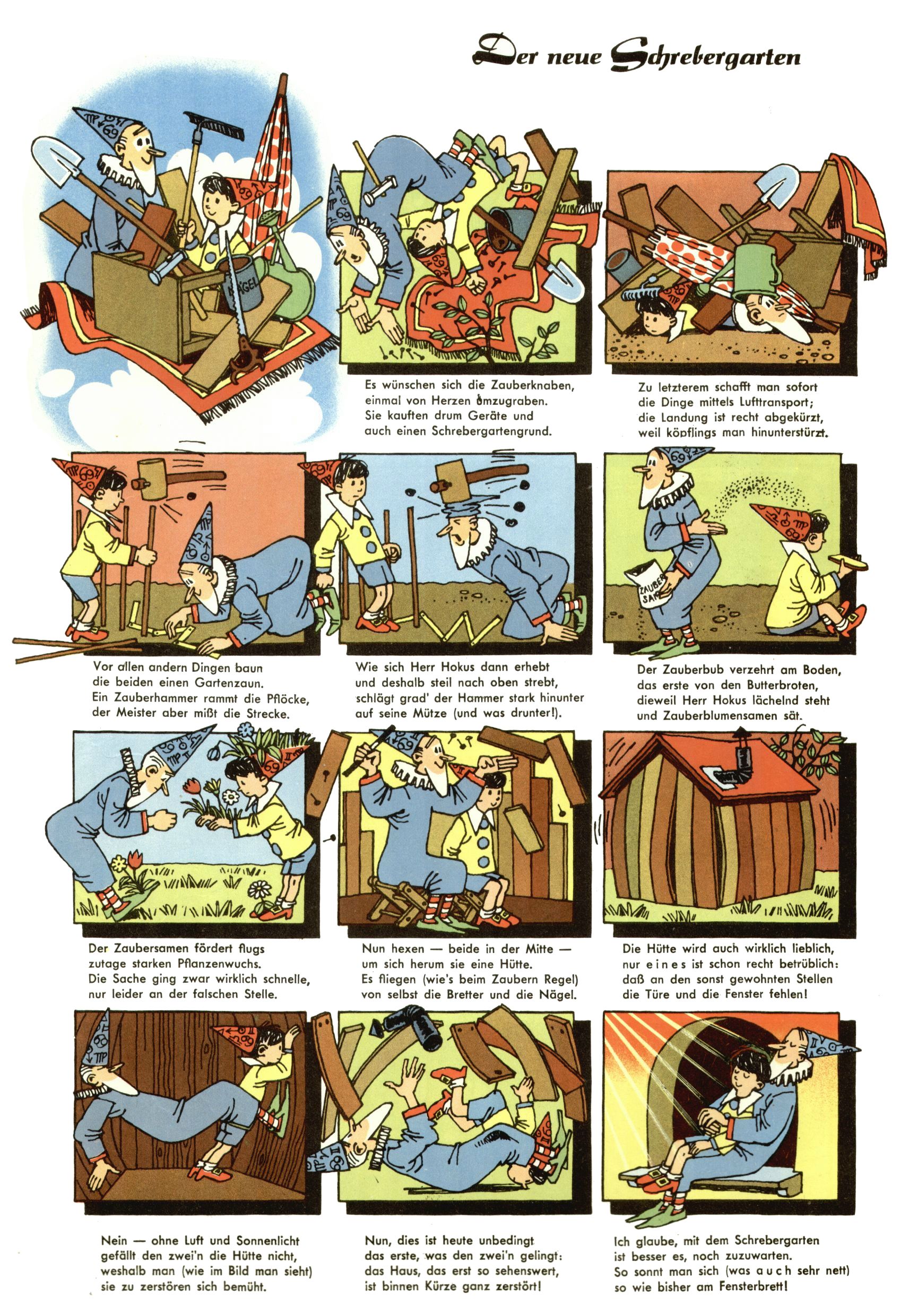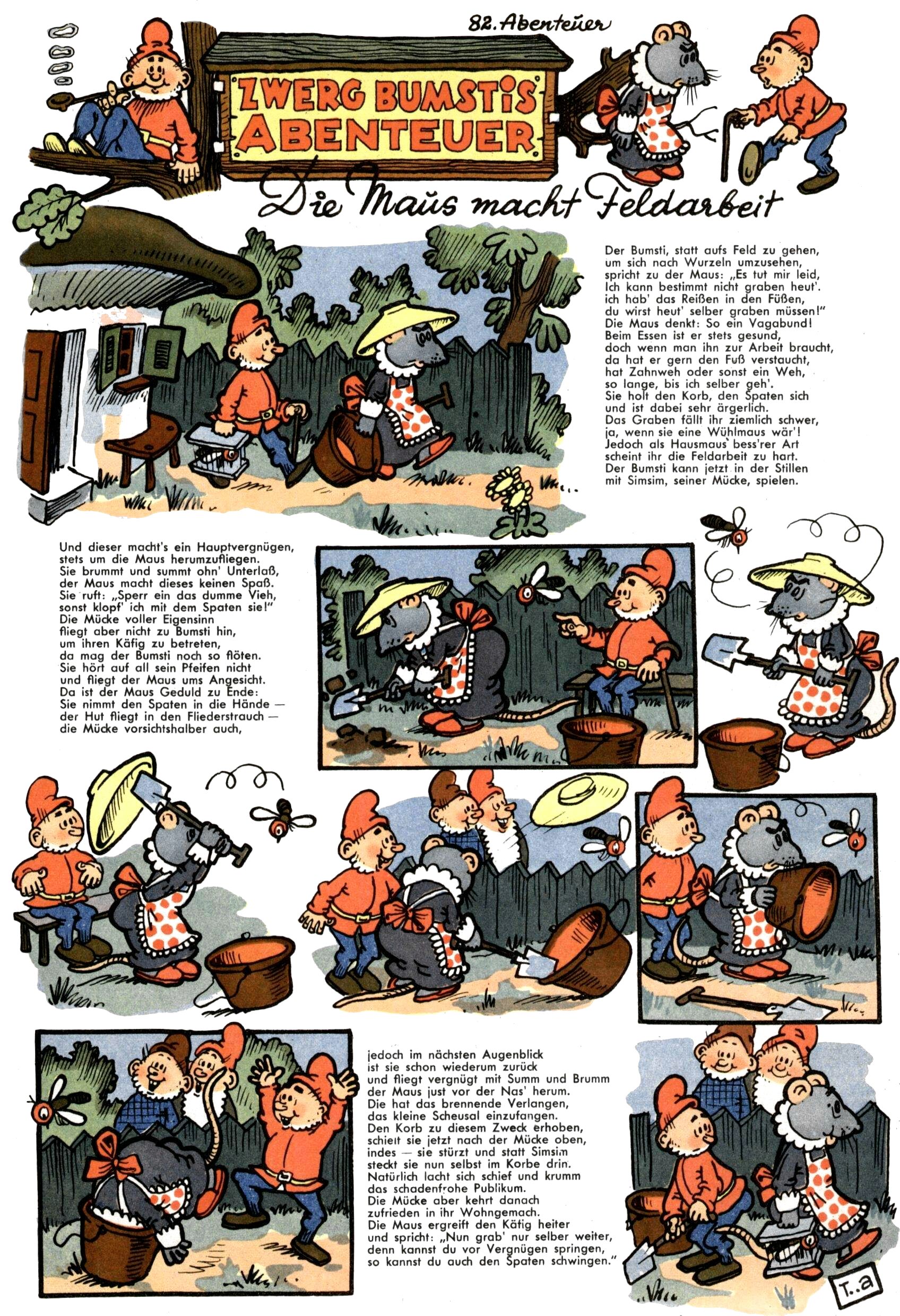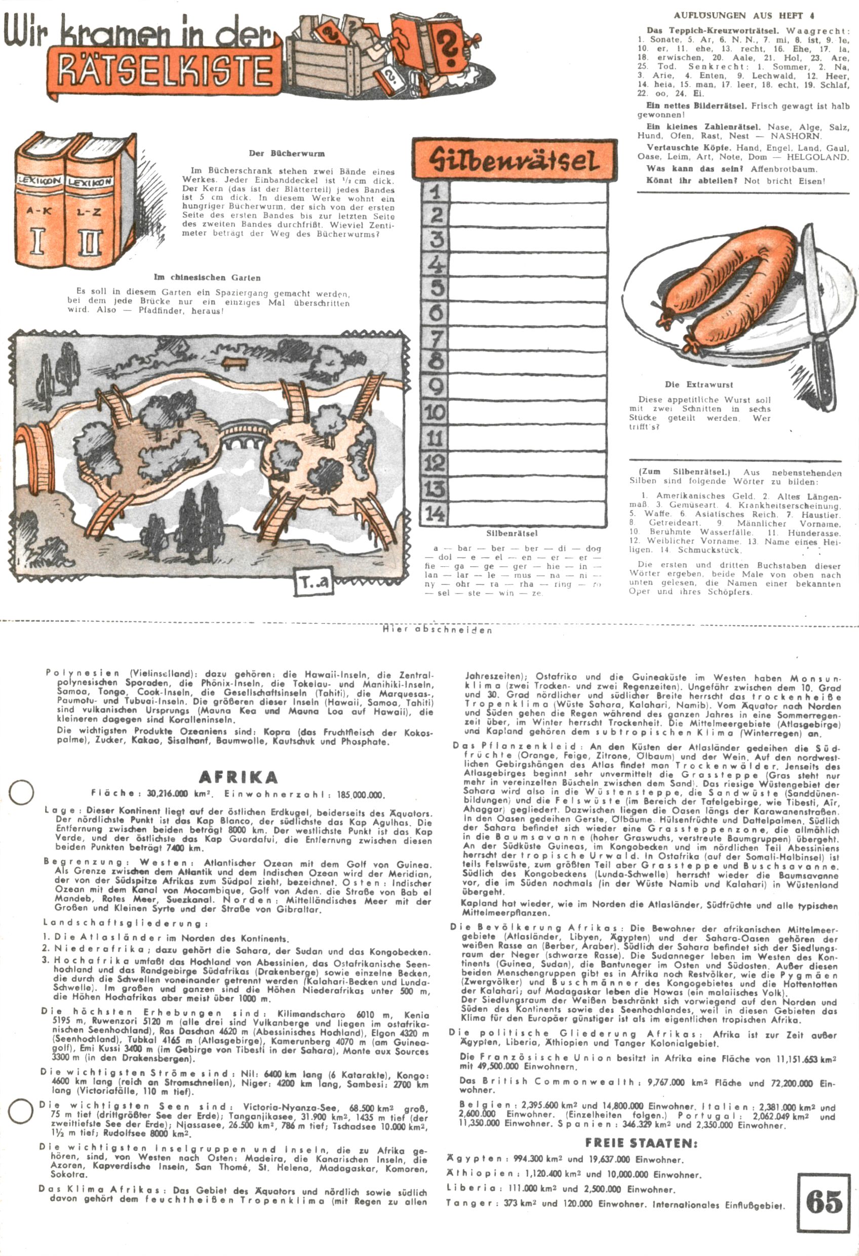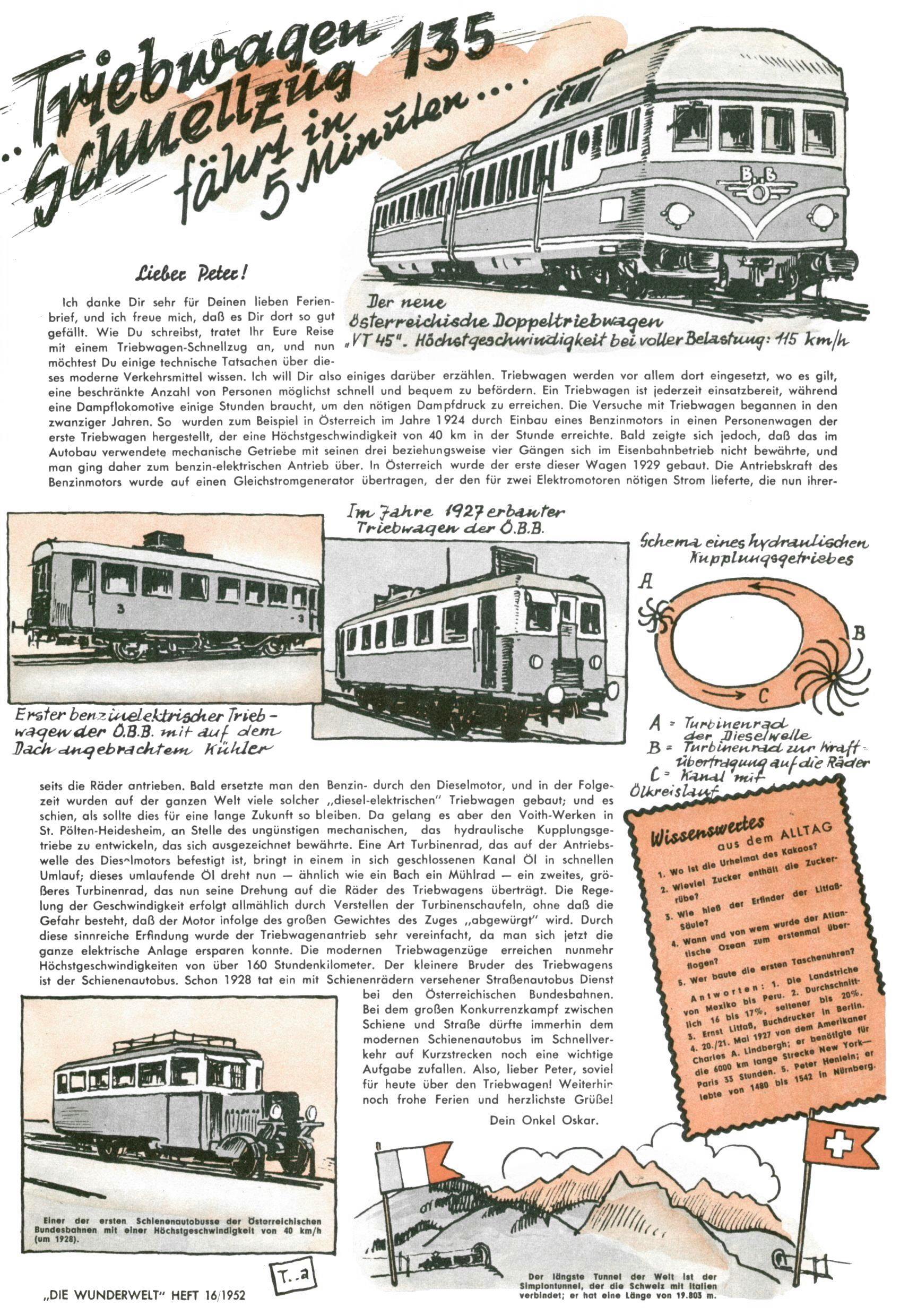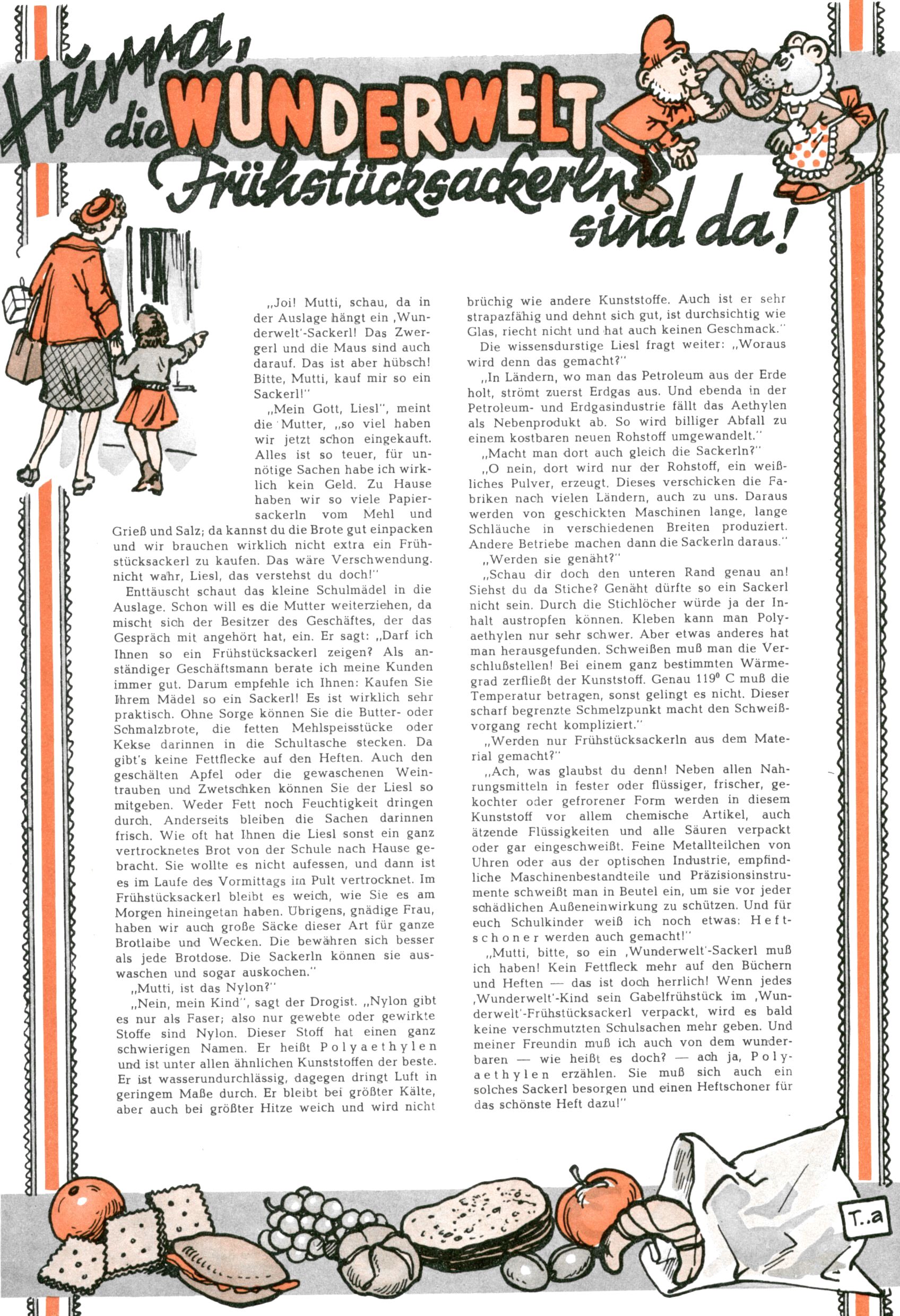 1952 – Der Erfolg hält an Wem Erfolg zuteil wird, der hat wenig Anlass, sein Konzept zu ändern. Und das war in gewisser Weise auch gut so bei allen inhaltlichen Schwächen der Beiträge in der Wunderwelt 1952. Der Erfolg der Zeitung wurde in erster Linie von der grafischen Umsetzung getragen; die lieblichen Bilder einer heilen Märchenwelt ließen über die oft flauen, pädagogisch teilweise sogar fragwürdigen Texte hinwegsehen. Elfriede Vavrovsky schrieb fast alle Texte und Rosl Warzilek zeichnete immer mehr Titelbilder und Mittelmärchen. ABC Peter Paul Prinz hatte Ende 1951 Meister Hokus als komischen Widerpart vom Zauberlehrling Willibald entdeckt und perfektionierte diesen Dualismus nun immer mehr. Meister Hokus avancierte zur regelmäßigen Lachnummer. Dafür überließ ABC vorübergehend Teja Aicher die Gestaltung der technischen Seite, dessen Zwerg Bumsti ebenfalls bereits untrennbar mit der Wunderwelt verbunden schien und längst zum Markenzeichen aufgestiegen war. Seine ko(s)mischen Superhelden Piff und Paff hatten jedoch allmählich genug von den Menschen und kehrten der Erde den Rücken zu. Für den Einsatz im Schulunterricht wurden weiterhin von Elfriede Vavrovsky erstellte politische und geografische Daten und Karten gedruckt, was gerne angenommen wurde, denn teure Atlanten gab es 1952 noch wenige, als viele politische Grenzen gar nicht endgültig geklärt schienen. |