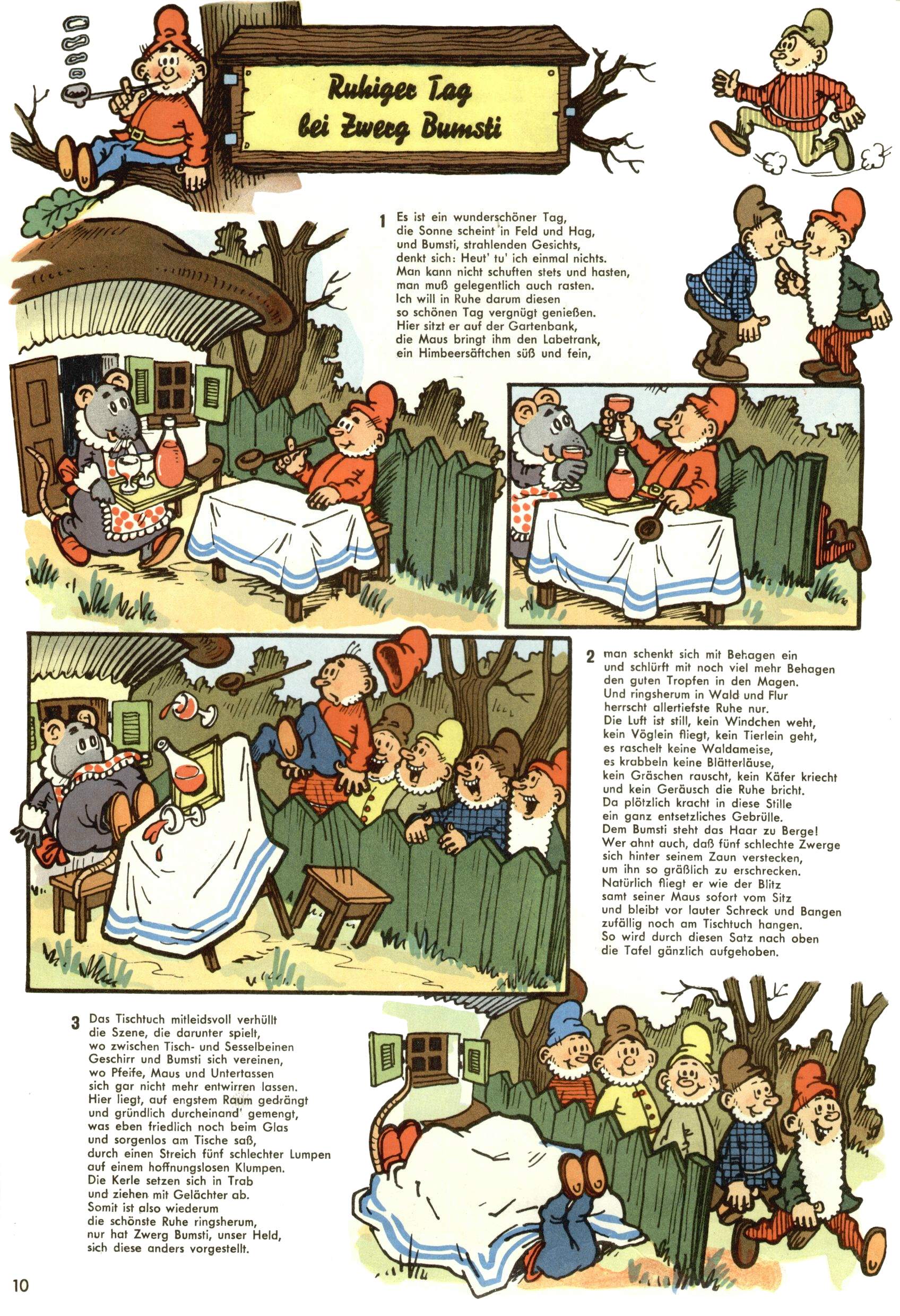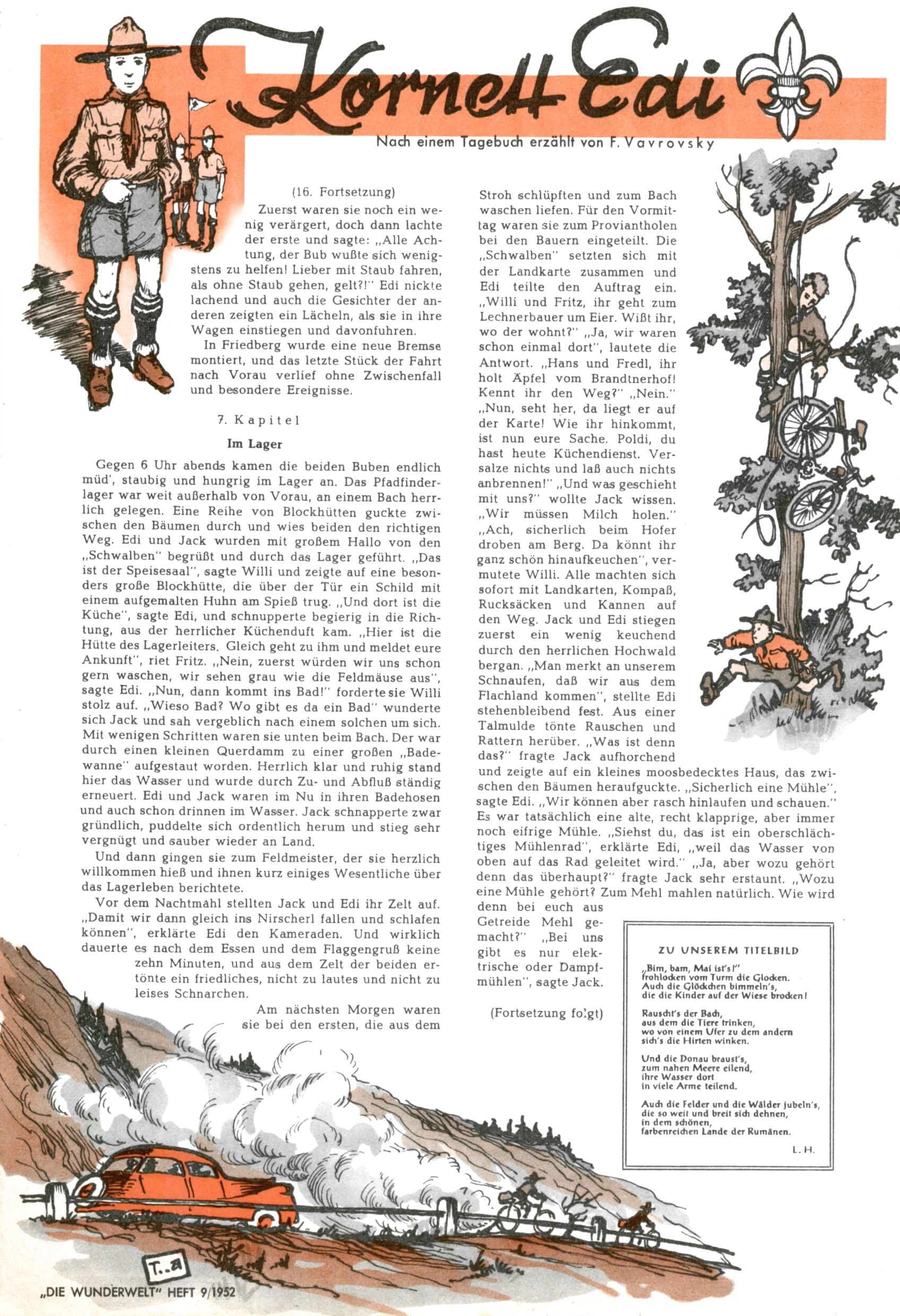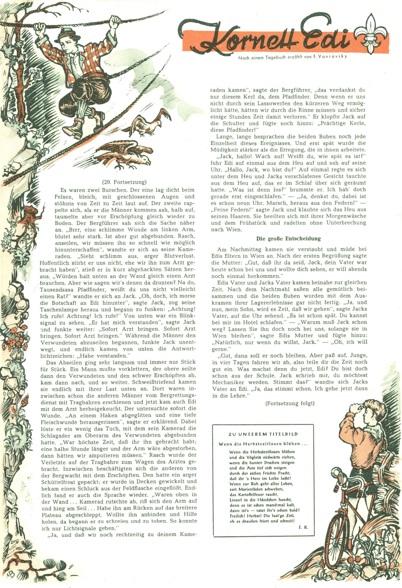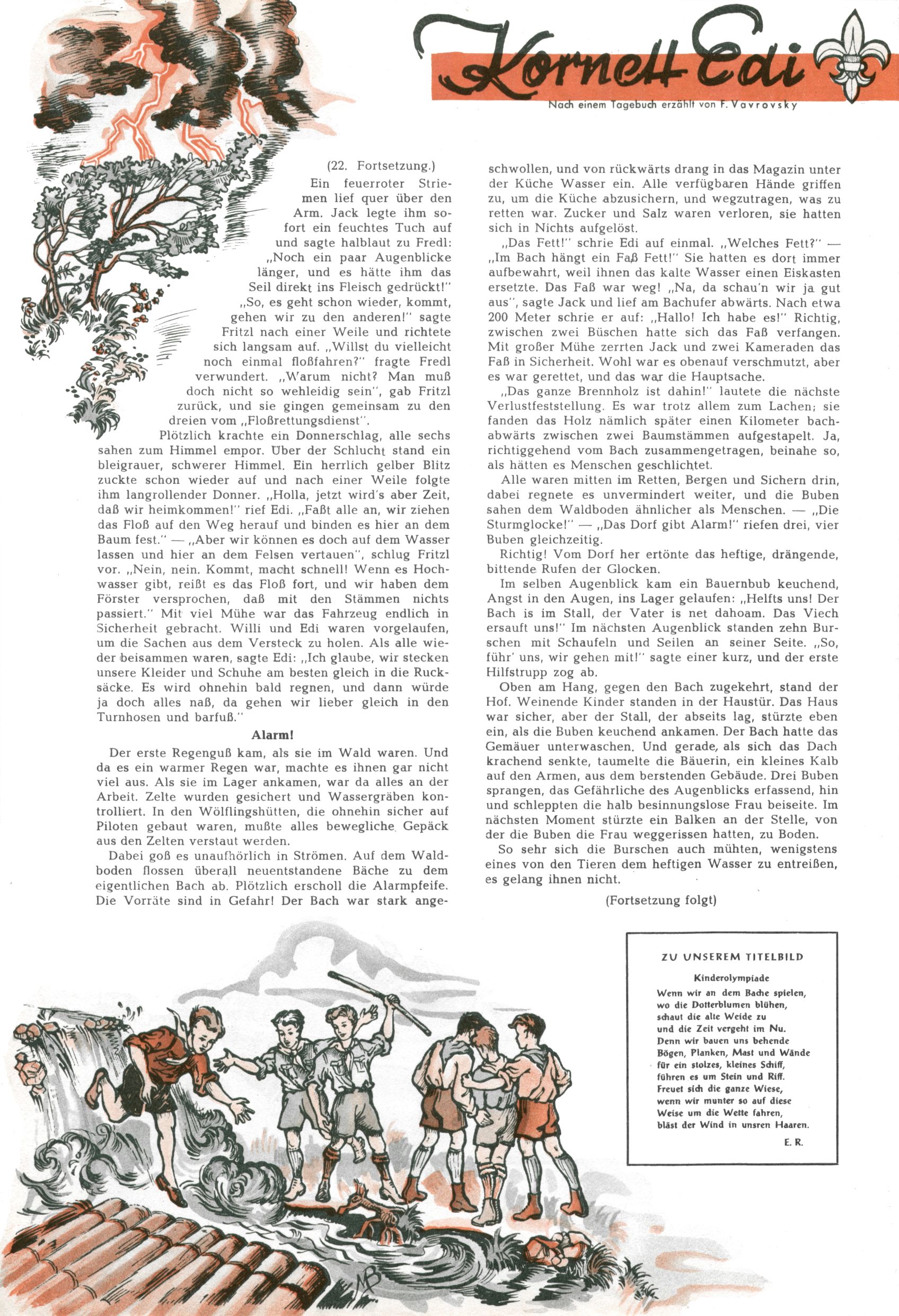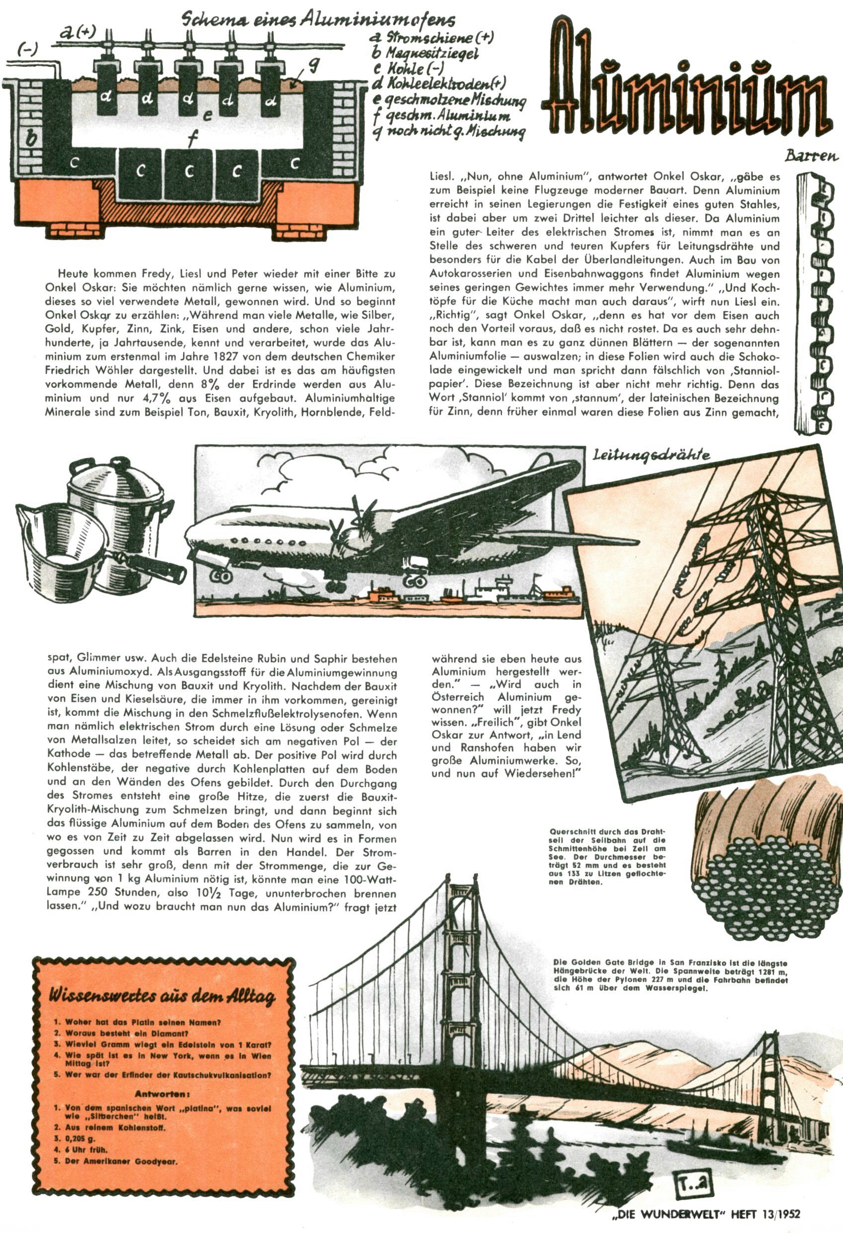 1952 – Der Erfolg hält an Wem Erfolg zuteil wird, der hat wenig Anlass, sein Konzept zu ändern. Und das war in gewisser Weise auch gut so bei allen inhaltlichen Schwächen der Beiträge in der Wunderwelt 1952. Der Erfolg der Zeitung wurde in erster Linie von der grafischen Umsetzung getragen; die lieblichen Bilder einer heilen Märchenwelt ließen über die oft flauen, pädagogisch teilweise sogar fragwürdigen Texte hinwegsehen. Elfriede Vavrovsky schrieb fast alle Texte und Rosl Warzilek zeichnete immer mehr Titelbilder und Mittelmärchen. ABC Peter Paul Prinz hatte Ende 1951 Meister Hokus als komischen Widerpart vom Zauberlehrling Willibald entdeckt und perfektionierte diesen Dualismus nun immer mehr. Meister Hokus avancierte zur regelmäßigen Lachnummer. Dafür überließ ABC vorübergehend Teja Aicher die Gestaltung der technischen Seite, dessen Zwerg Bumsti ebenfalls bereits untrennbar mit der Wunderwelt verbunden schien und längst zum Markenzeichen aufgestiegen war. Seine ko(s)mischen Superhelden Piff und Paff hatten jedoch allmählich genug von den Menschen und kehrten der Erde den Rücken zu. Für den Einsatz im Schulunterricht wurden weiterhin von Elfriede Vavrovsky erstellte politische und geografische Daten und Karten gedruckt, was gerne angenommen wurde, denn teure Atlanten gab es 1952 noch wenige, als viele politische Grenzen gar nicht endgültig geklärt schienen. |