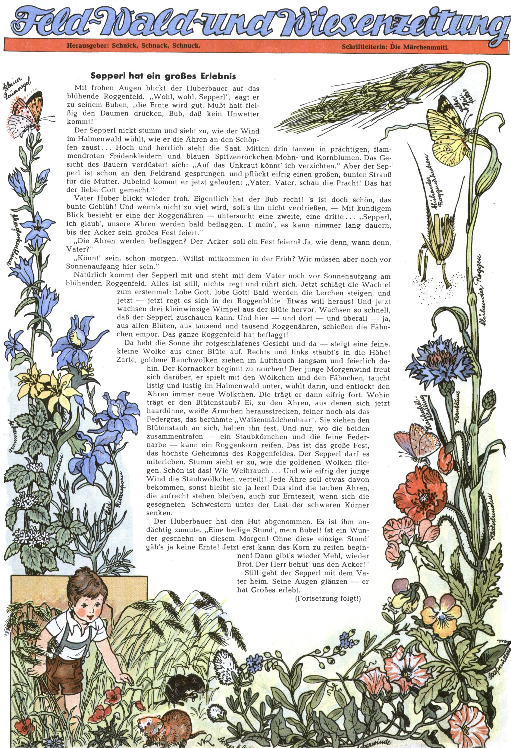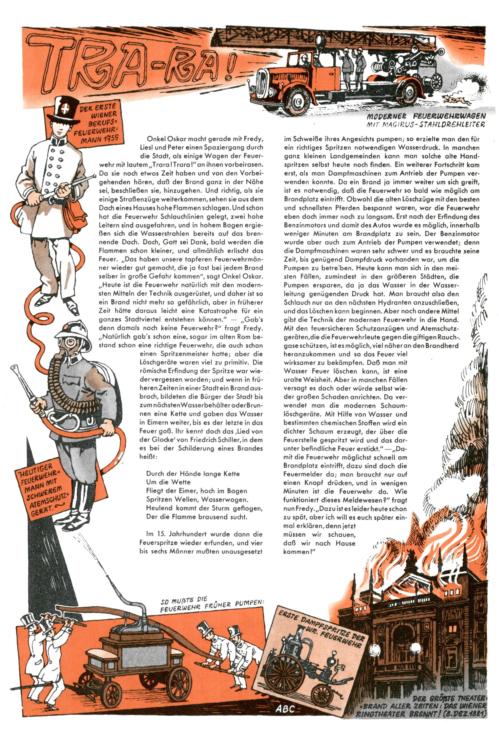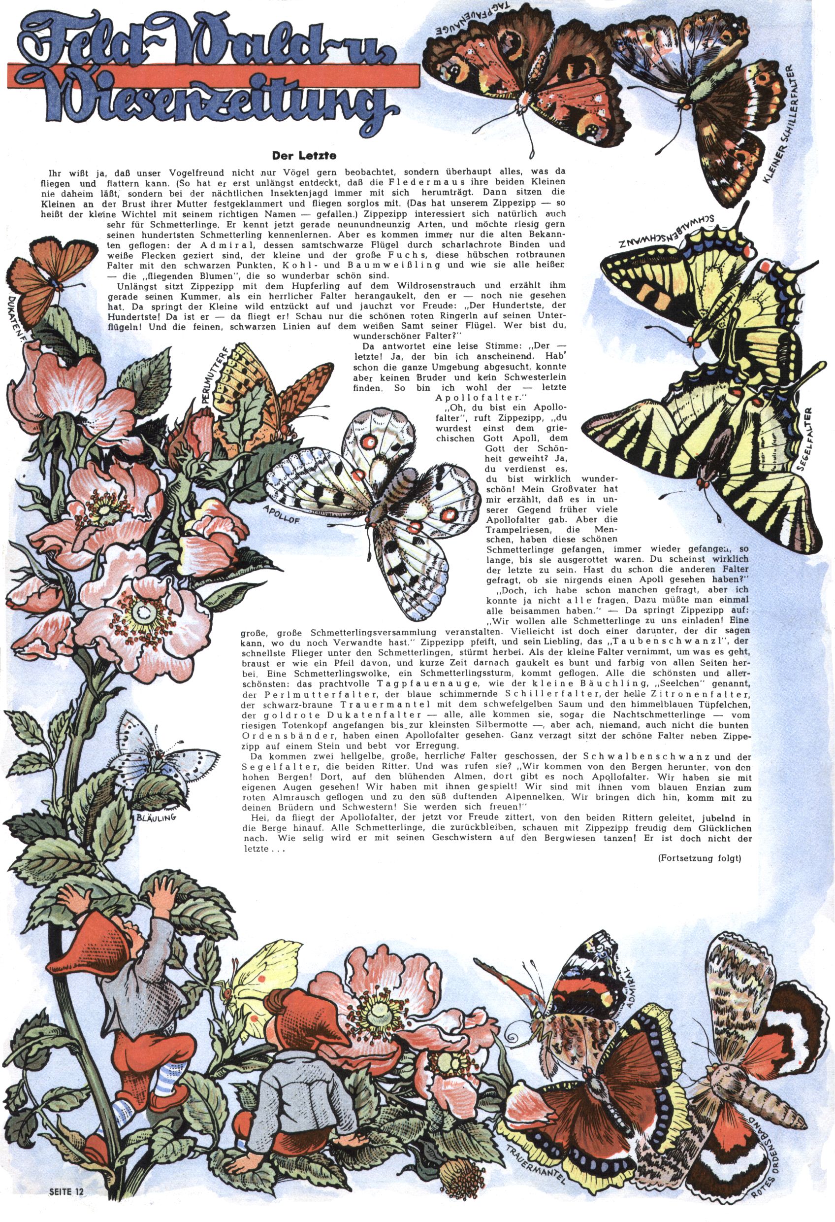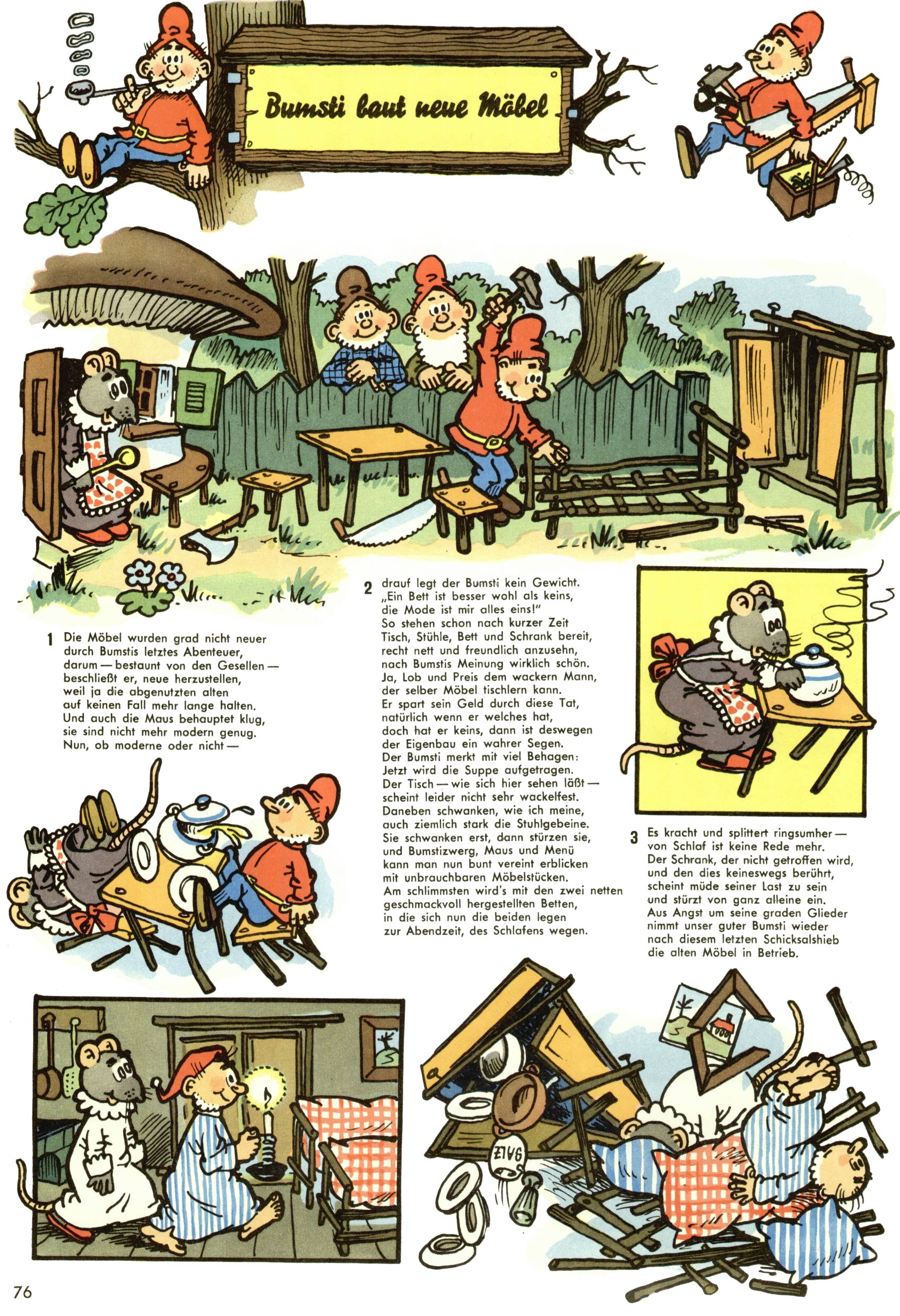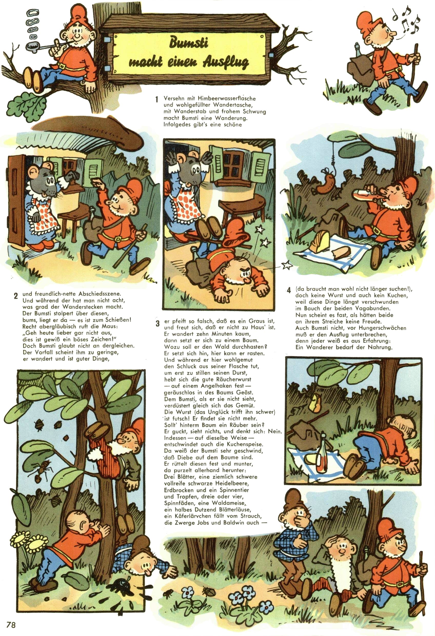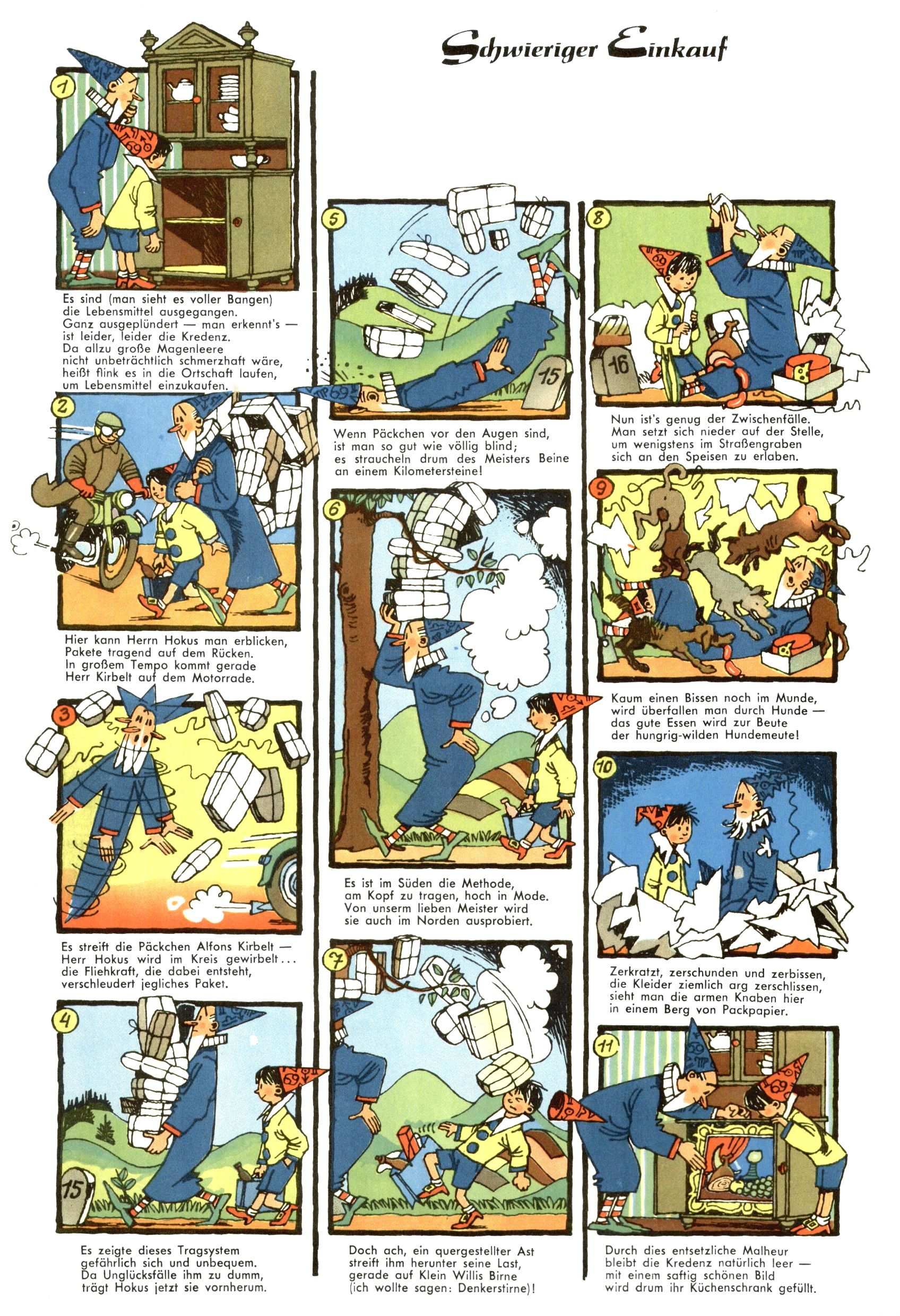 1953 – Alles beim Alten Wie lange darf man sich auf einem Erfolgskonzept ausruhen? Auch 1953 gab es keine offensichtlichen Änderungen am Layout der Zeitung. Zwar wurde Elfriede Vavrovsky teilweise durch andere Autoren abgelöst und erstmals kam Friedrich Bauer zum Zug, der bisher nur als Rätselonkel in Erscheinung getreten war. Allerdings ist anzunehmen, dass eine ganze Reihe unsignierter Erzählungen früherer Hefte ebenfalls der Feder von fb entstammen. ABC Peter Paul Prinz übernahm neuerlich die Illustration der technischen Seiten. Sein Willibald erschien ab sofort in 3 Spalten anstelle von 4 Zeilen, was ihm wesentlich mehr Gestaltungsfreiheit bot. Teja Aicher erfand die Clowns Benjamin und Kasimir nachdem ABC mit seiner Miniserie Zipferling, der lustige Kasperl bereits ein halbes Jahr zuvor durchaus mit Lachern punkten hatte können. Benjamin und Kasimir erschienen 1953 in jedem 2. Heft; nach dem Abdanken von Piff und Paff dann in jeder Ausgabe. Vom Aufbau her ähnelte die Serie dem Erfolgscartoon Willibald, der Zauberlehrling, ohne jedoch (aufgrund ihrer allzu "beschränkten" Möglichkeiten) an den Erfolg des Zauberlehrlings anknüpfen zu können. Nach dem Abschluss der Atlas-Daten und Karten erfand Annelies Umlauf Lamatsch weitere realitätsfremde Geschichten über die Natur und im Speziellen über Blumen. Eine medizinisch-biologische Spalte über den menschlichen Körper von Ewald Seifert war hingegen sachlicher und informativ. Ein kurzzeitiger Neuzugang bei den Grafikern war Hedwig Zumtobel. Sie wurde jedoch bald von Luzia Adelsberger abgelöst, die sich über Jahre hindurch als Zeichnerin etablierte. Friederike Nekut übernahm die Bastelseite für Mädchen. Die Kolumne Die Puppenschneiderin wurde mit Unser Hausmütterchen ergänzt, wodurch das handwerkliche Angebot für Mädchen erweitert werden konnte. Eine wesentliche Änderung am Titelblatt gab es 1953 aber doch: Endlich hatte man dem Erfolg von Zwerg Bumsti Rechnung getragen und ihn ins Logo erhoben. Er löste dort den Zwerg Bums aus dem Jahr 1948 in seiner Gondel ab, der zwar als Namenspatron für Zwerg Bumsti hergehalten hatte, mit dem es ansonsten aber keine Gemeinsamkeiten gab. |