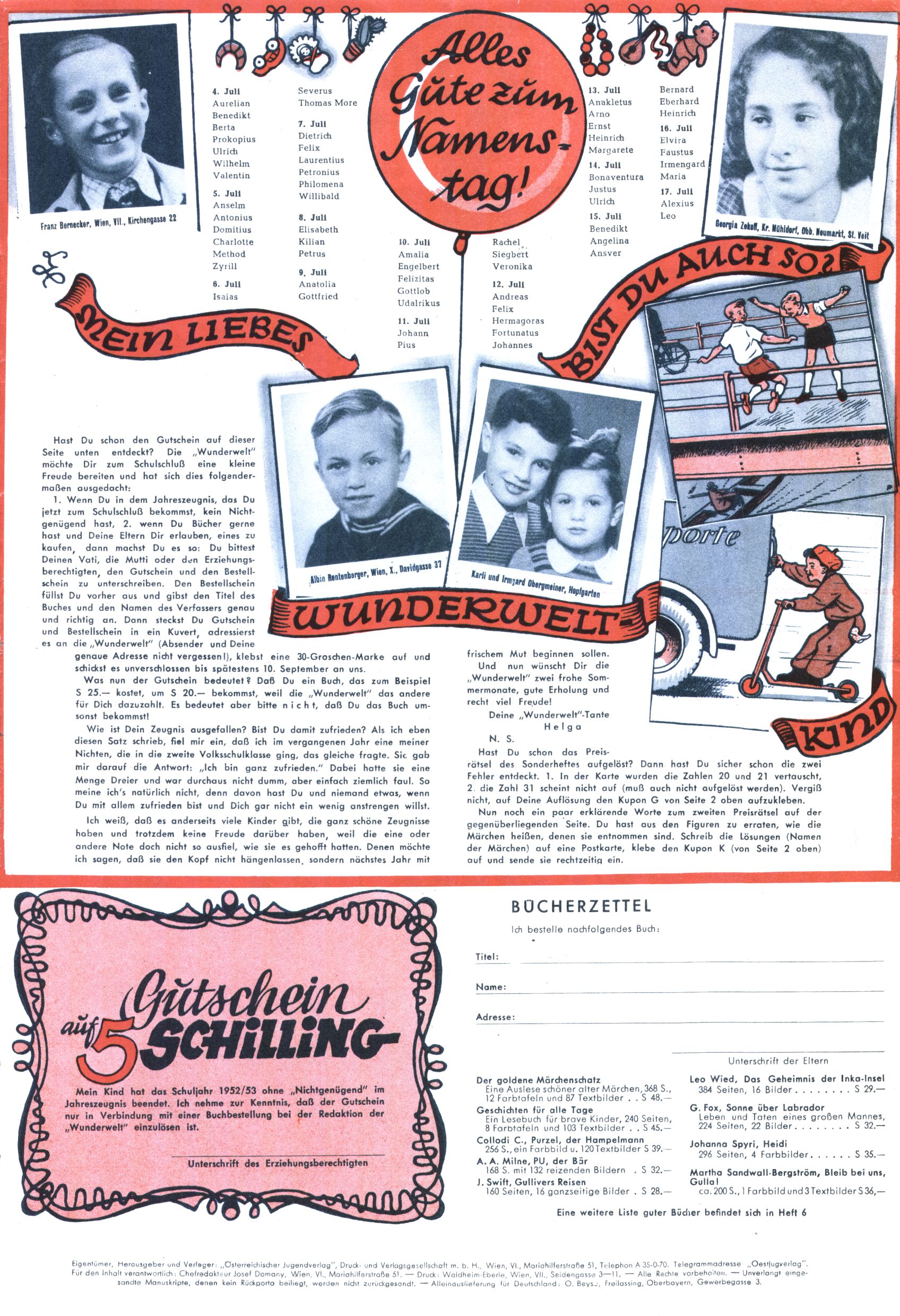 WUNDERWELT HEFTE 1953 |