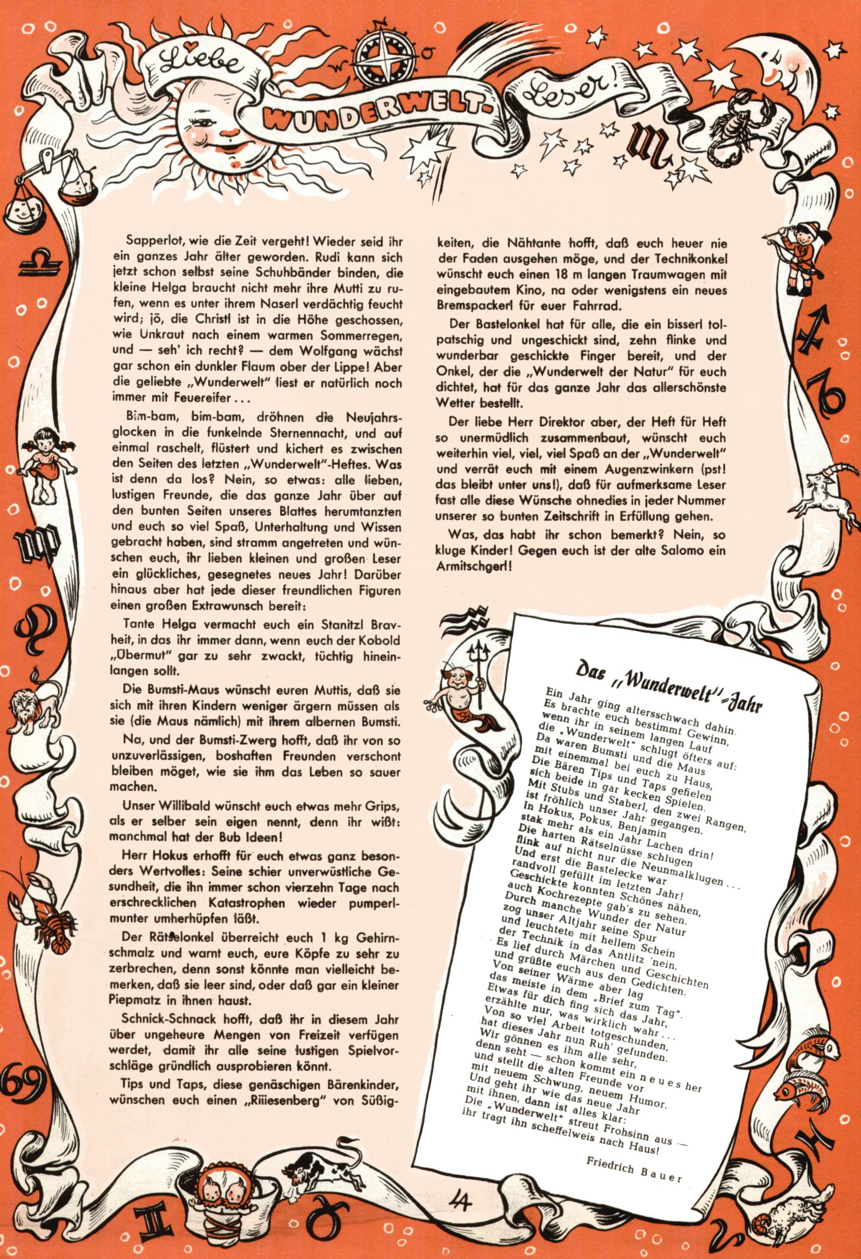 Liebe Wunderwelt-Leser / Das Wunderwelt-Jahr (fb=Friedrich Bauer + LA) |