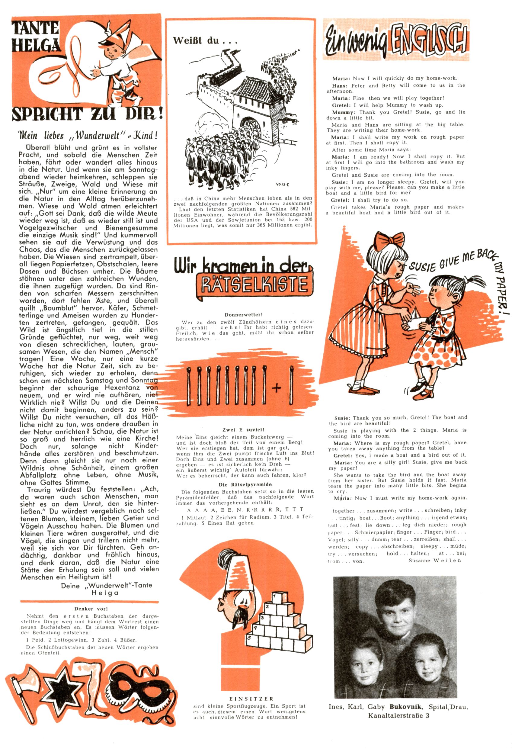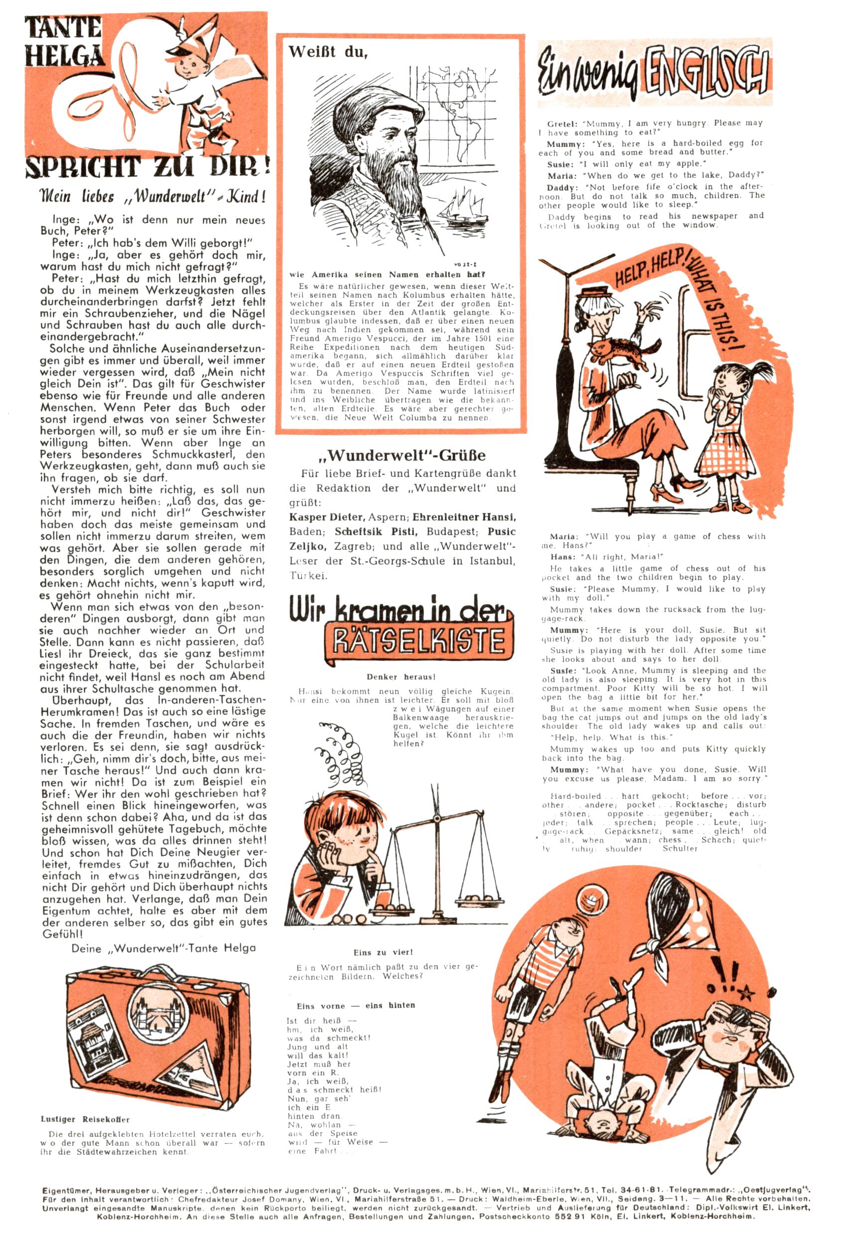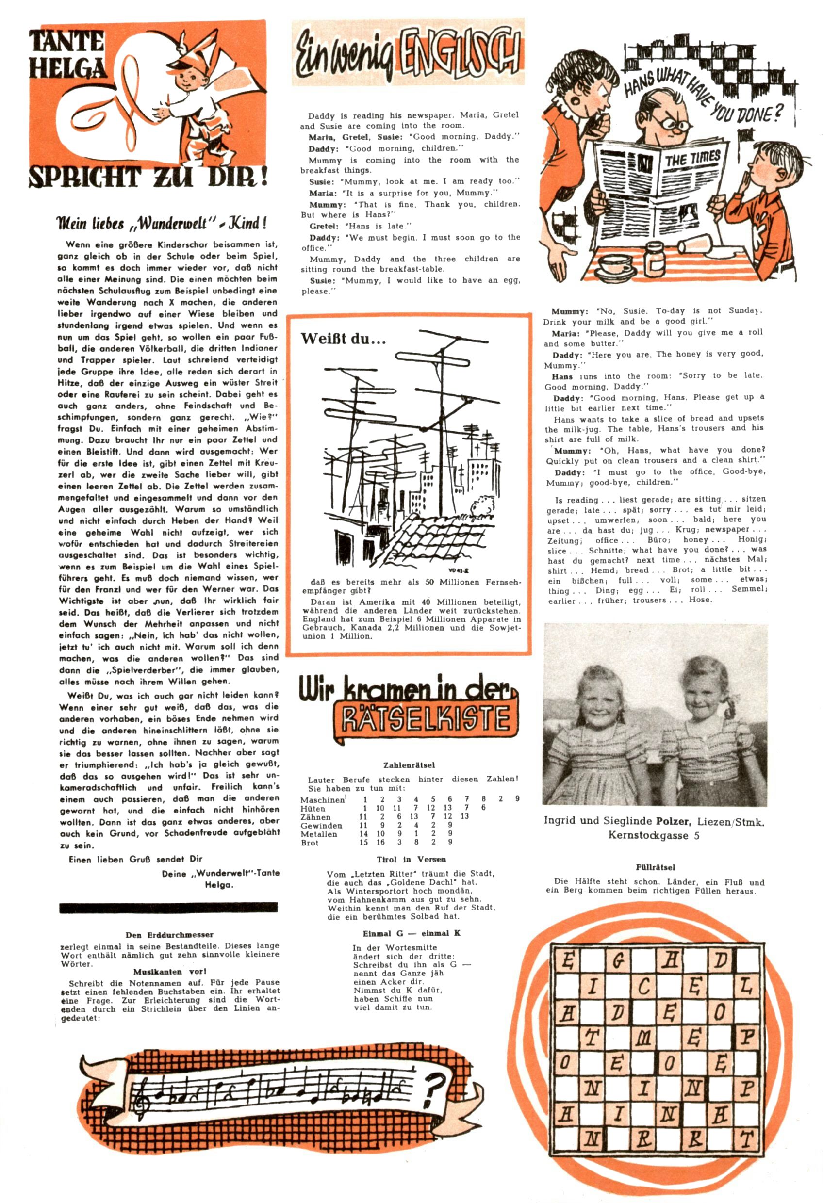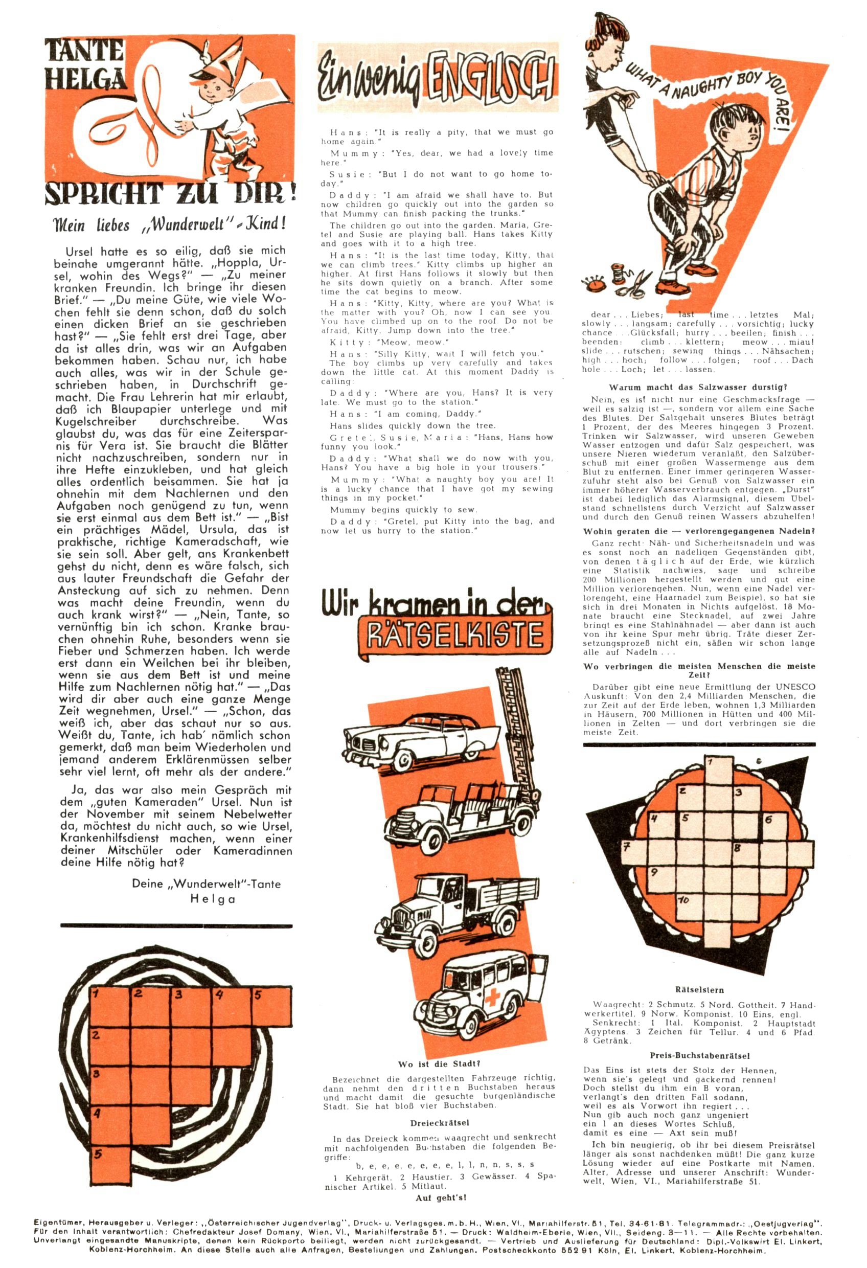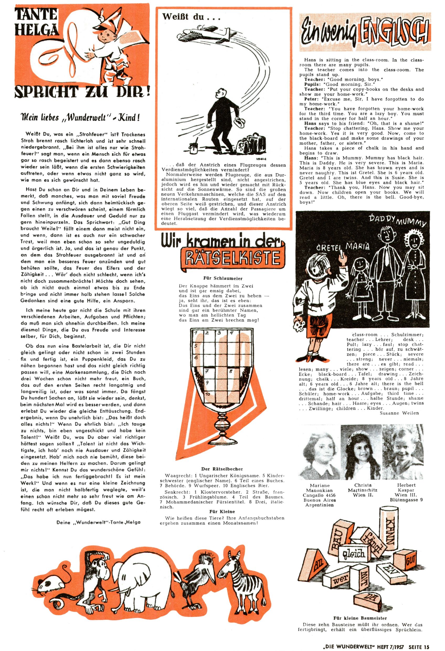 Meine lieben Ww-Leser / Englisch / Rätselkiste (EV=Elfriede Vavrovsky / ABC) |