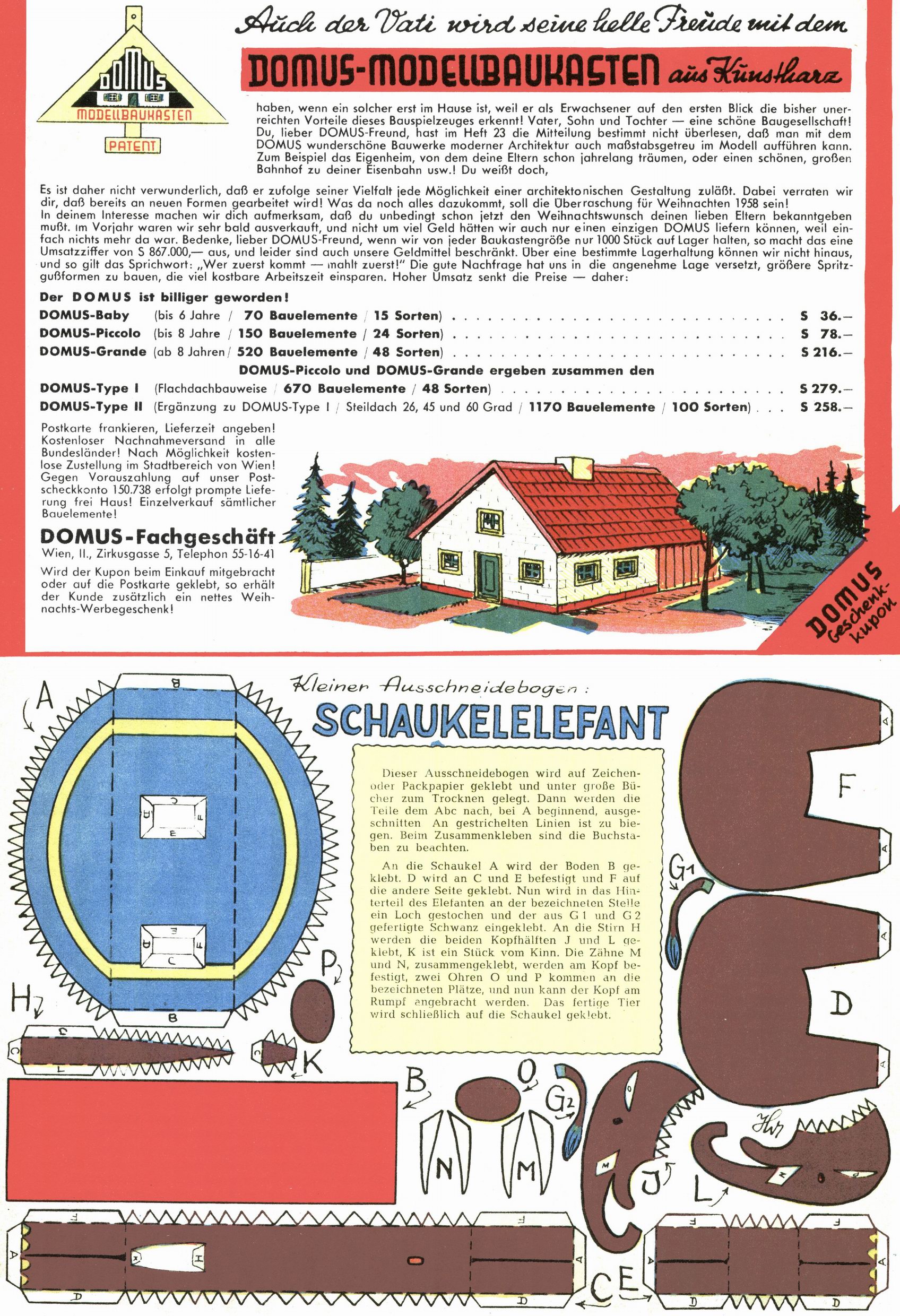 Domus-Werbung / Schaukelelefant (Ausschneidebogen) (HW) |