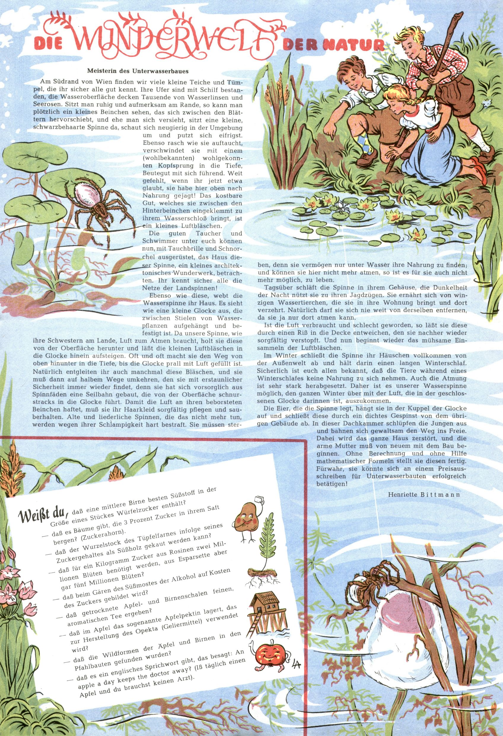 Die Ww der Natur - Meisterin des Unterwasserbaus (Spinne) (Henriette Bittmann + LA) |