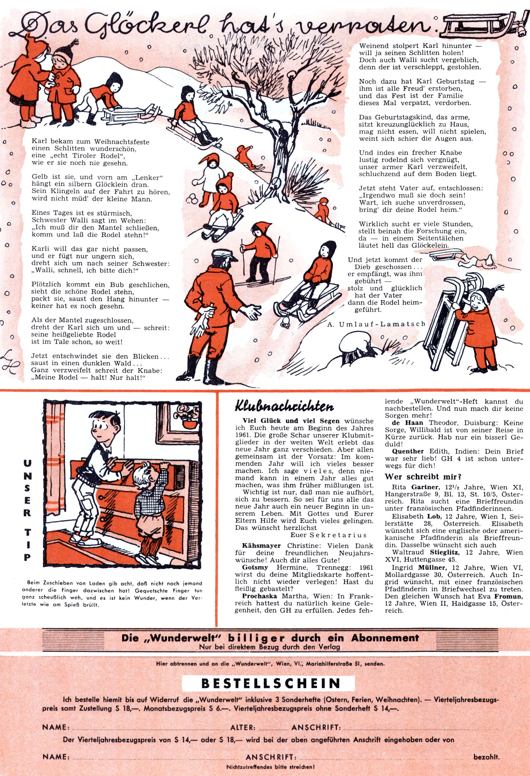 Das Glöckerl hat's verraten / Klubnachrichten (AUL=Annelies Umlauf-Lamatsch + LH / TA) |