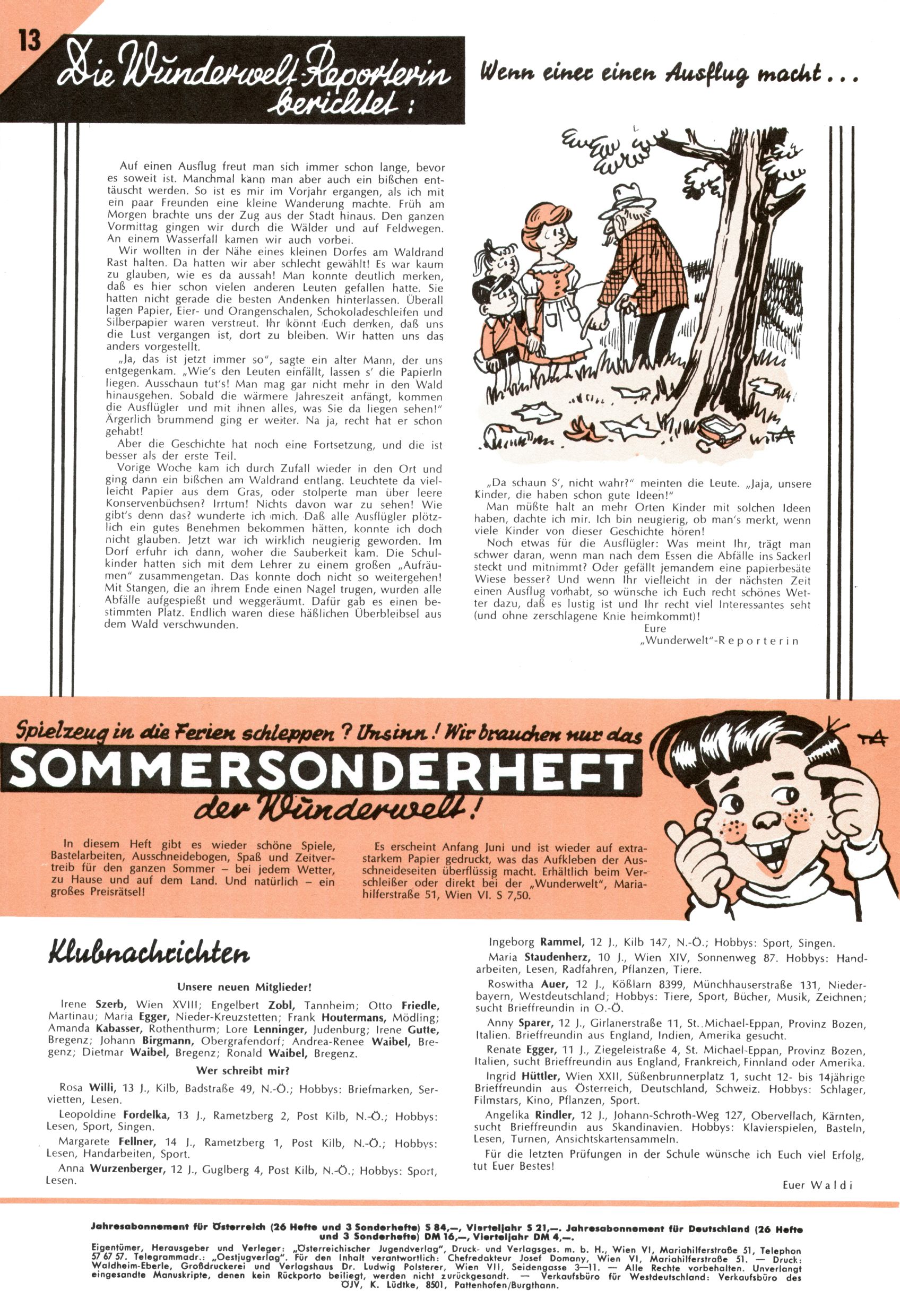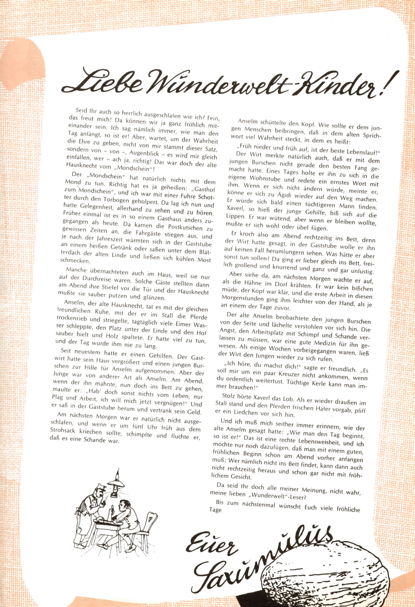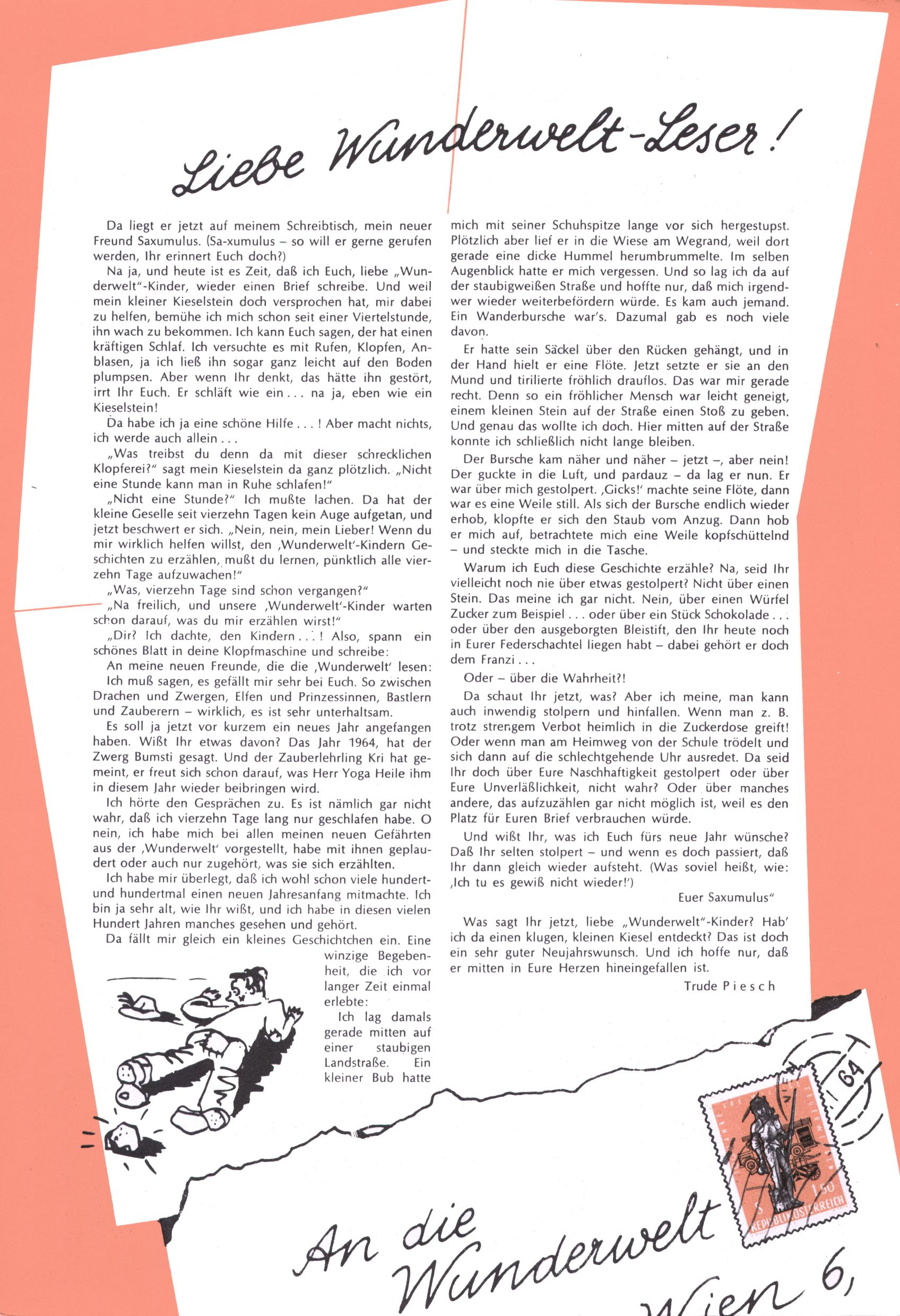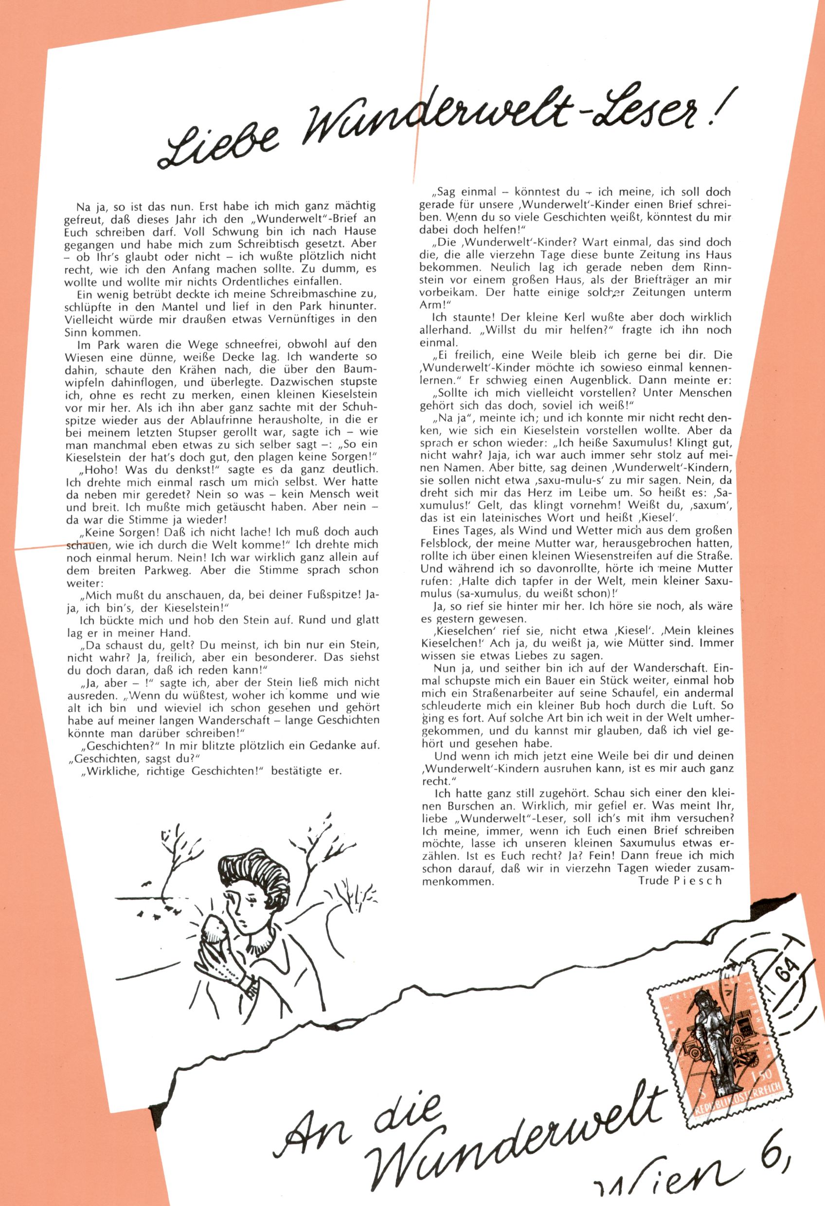Liebe Wunderwelt-Leser! (Trude Piesch) |