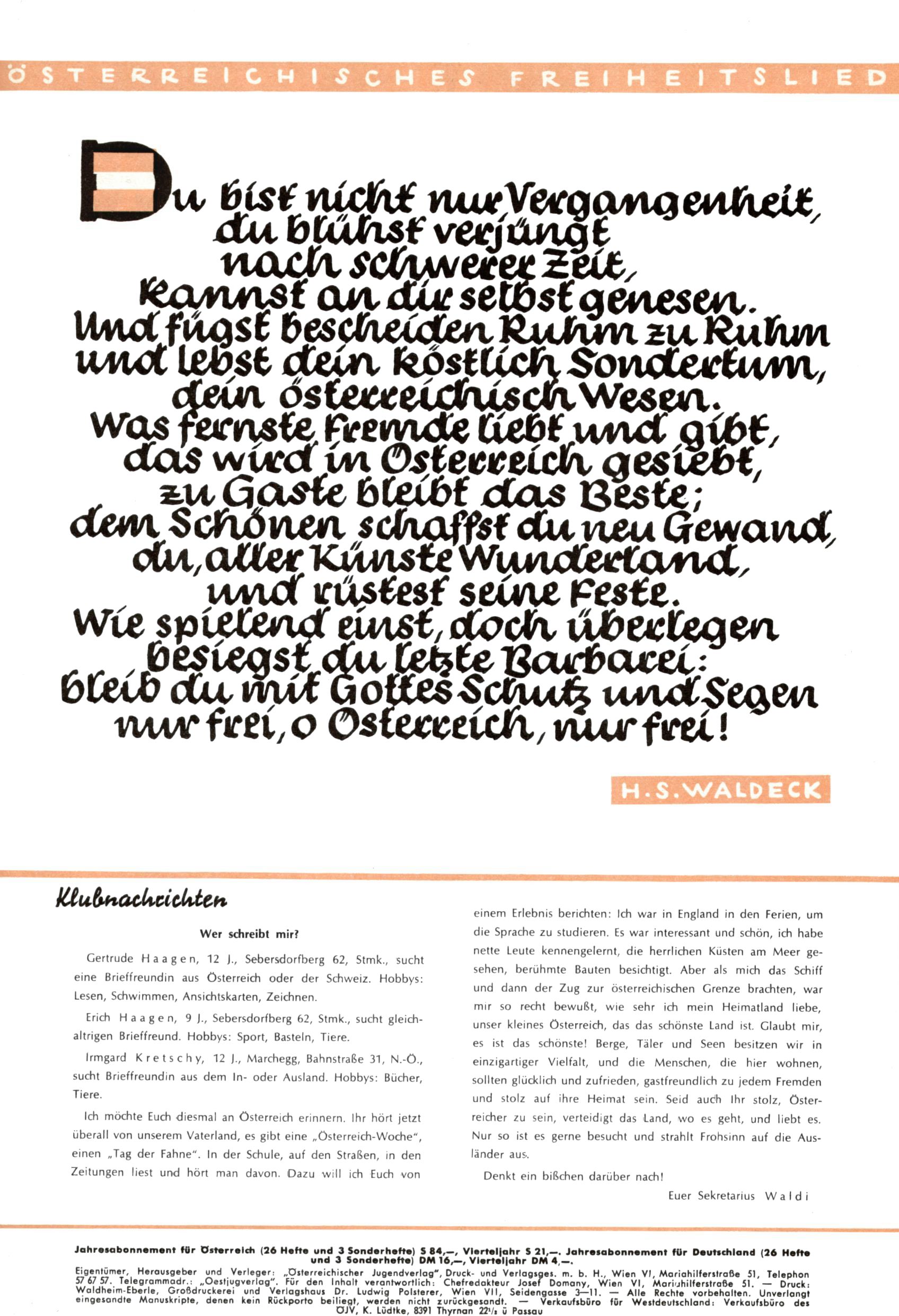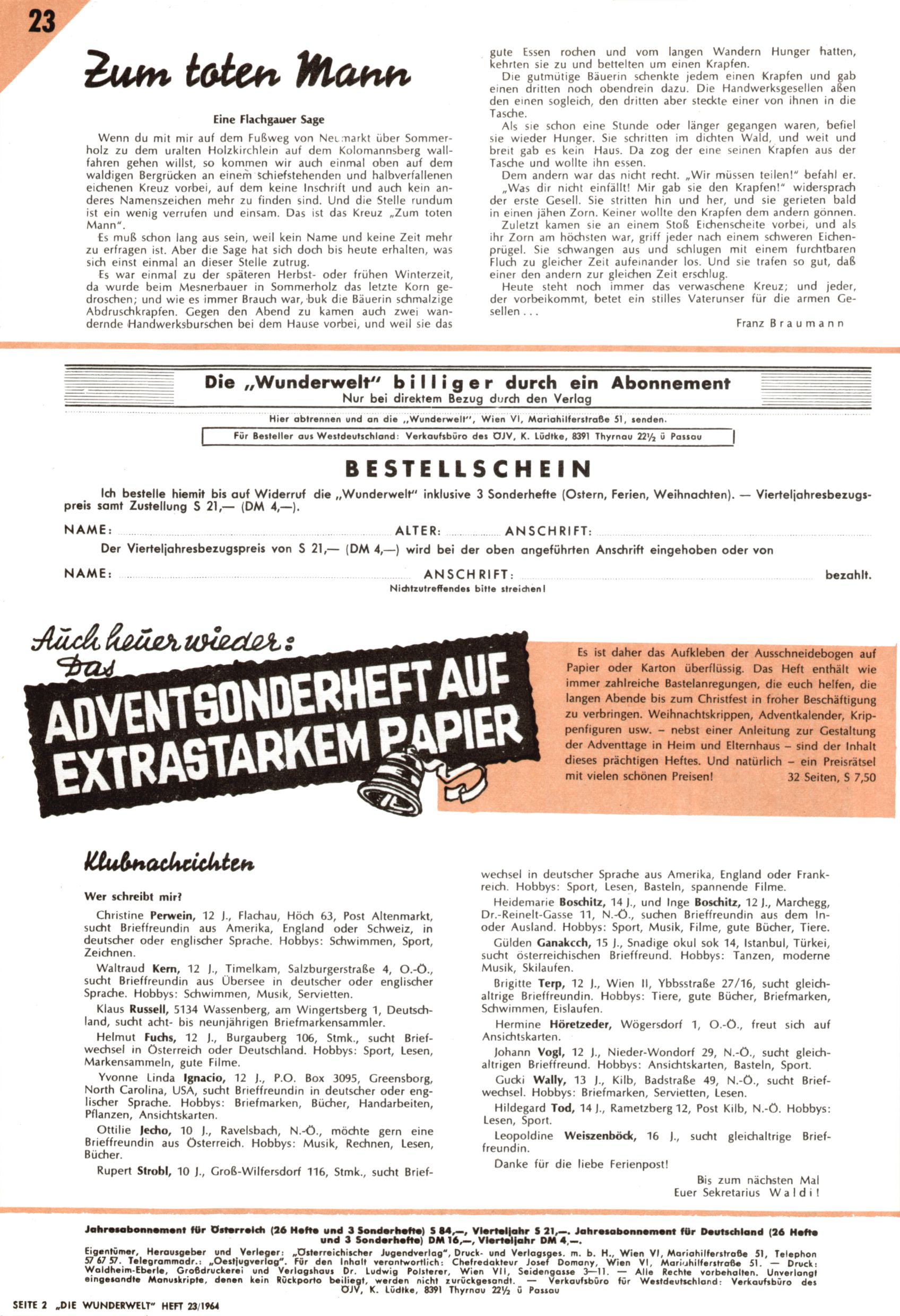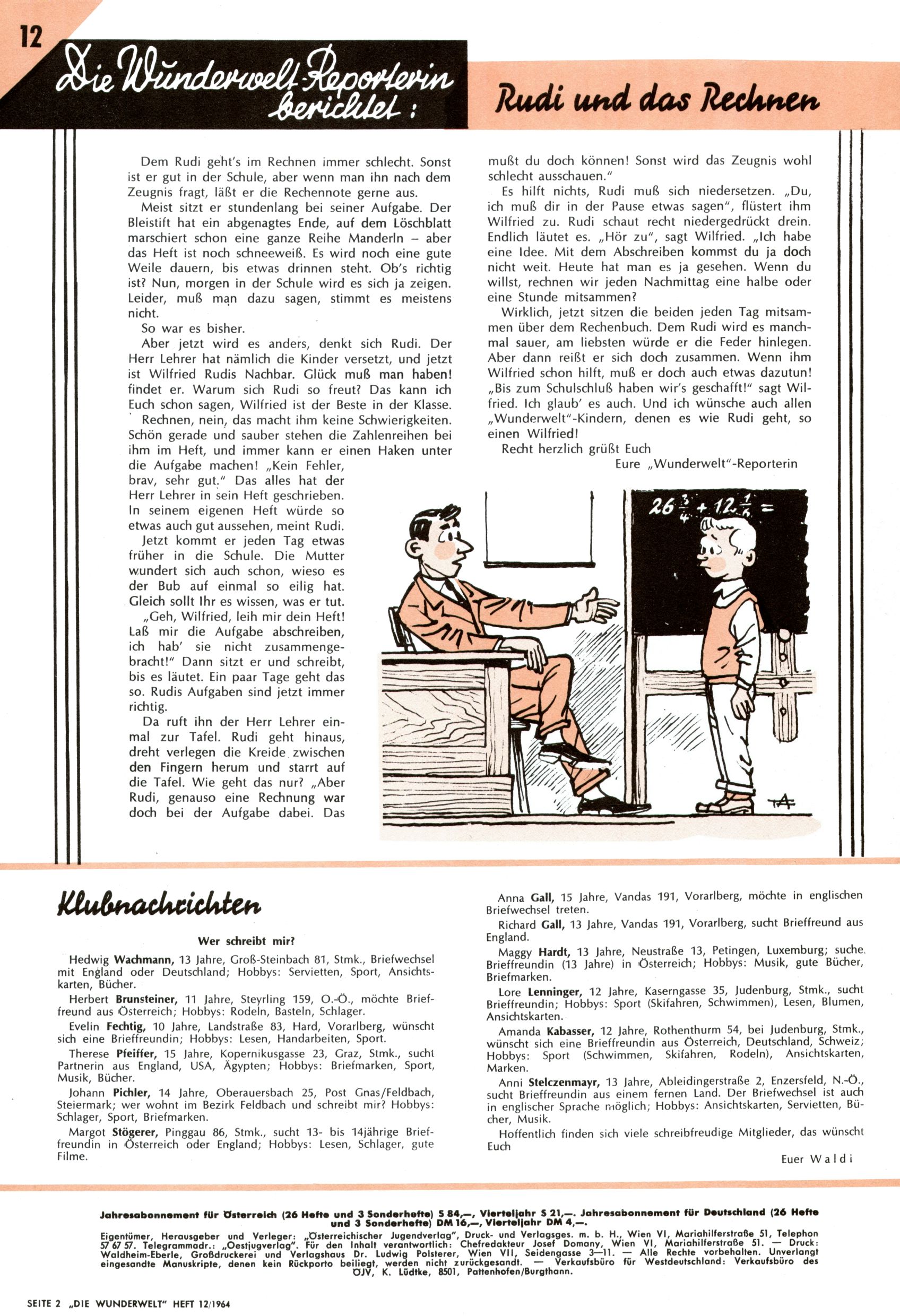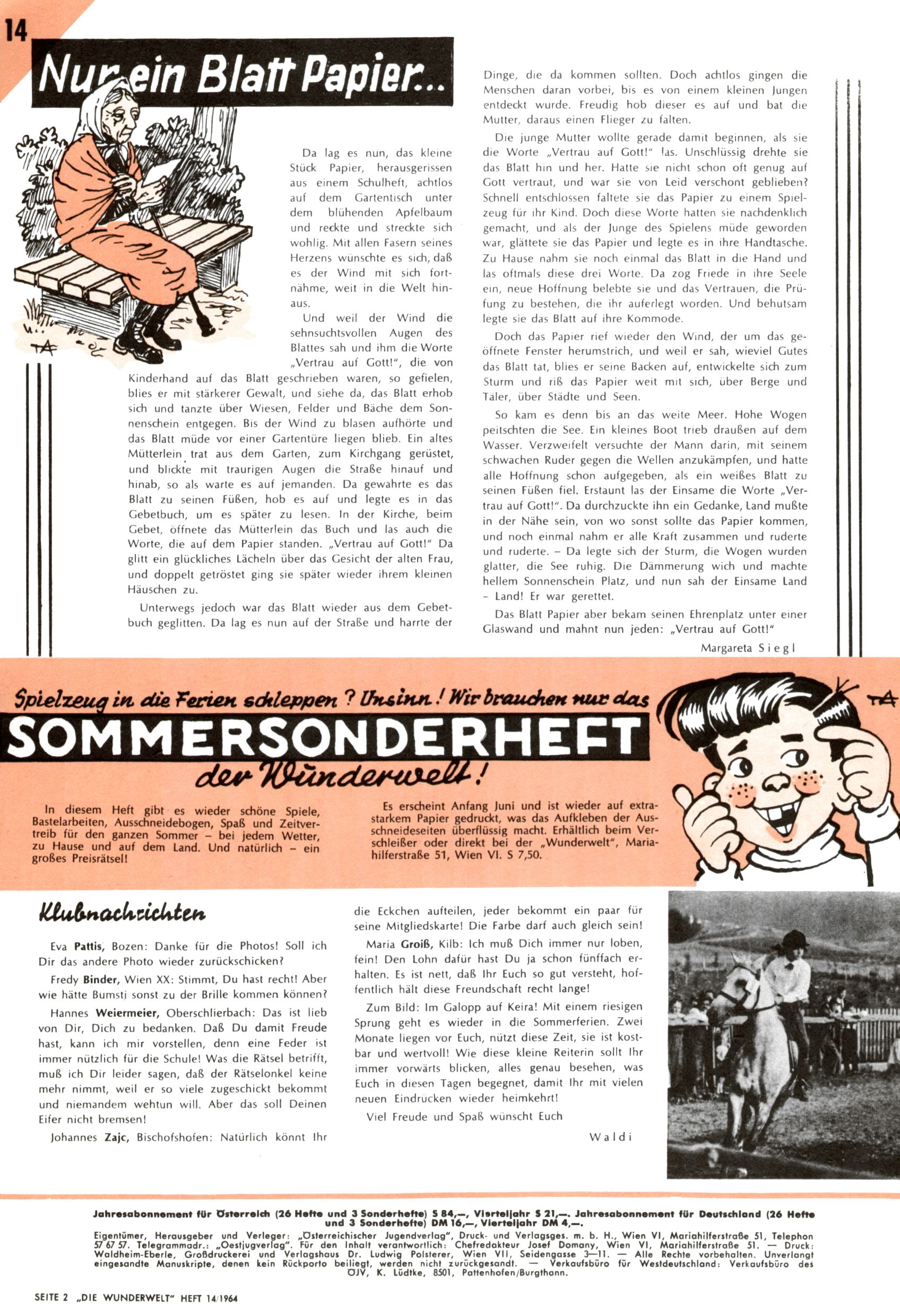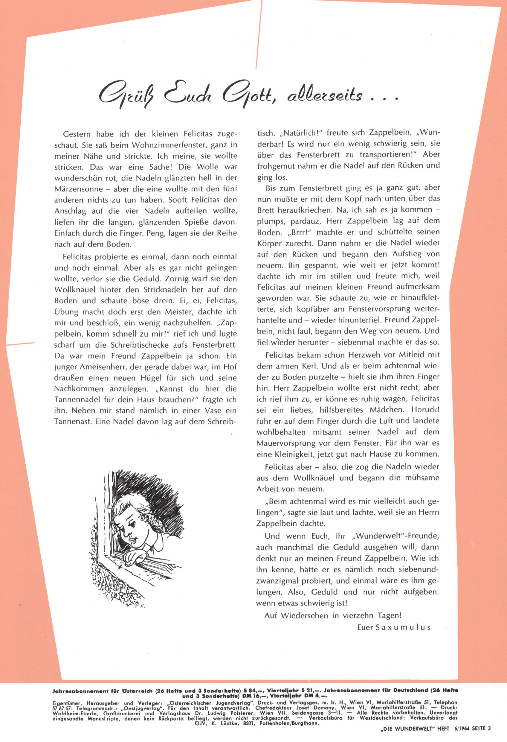 Liebe Wunderwelt-Leser! (Trude Piesch) |