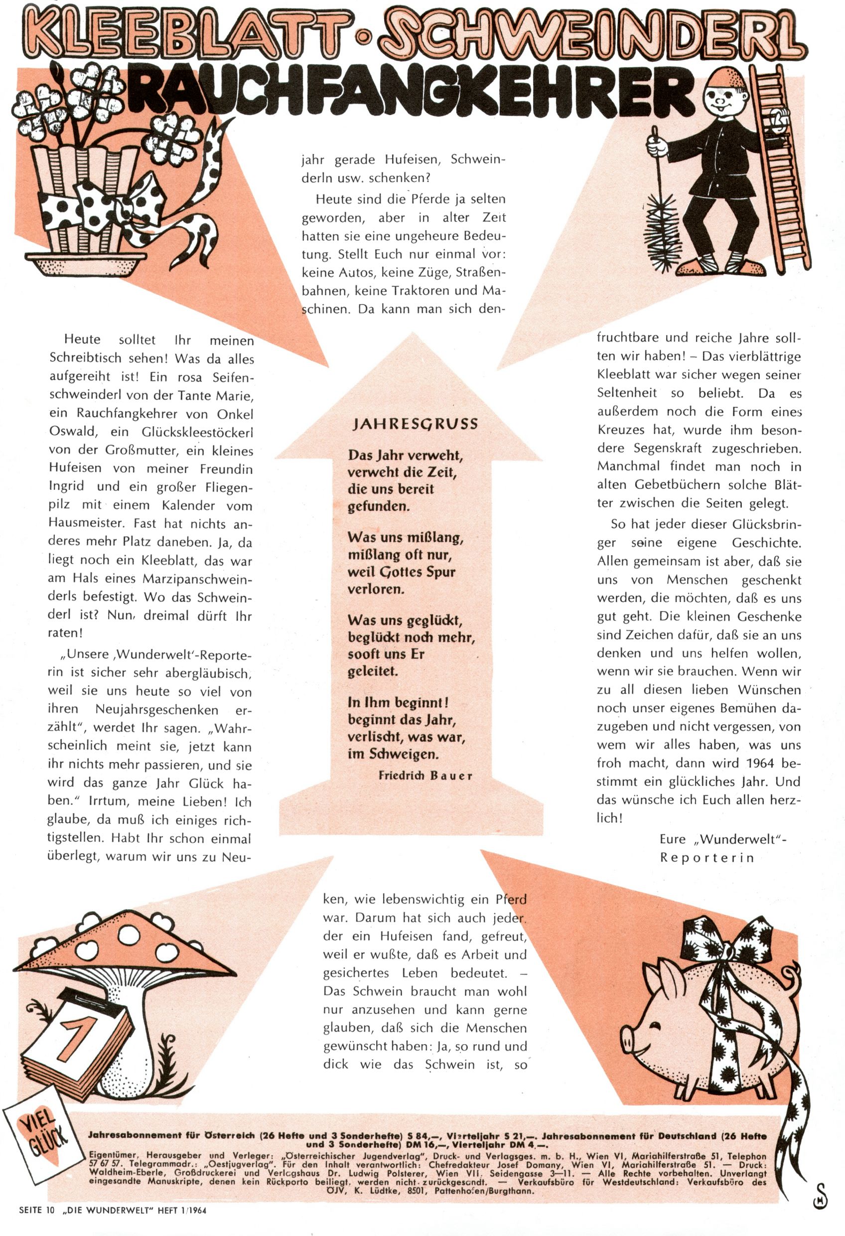 Kleeblatt, Schweinderl, Rauchfangkehrer / Jahresgruß (fb + MS) |
