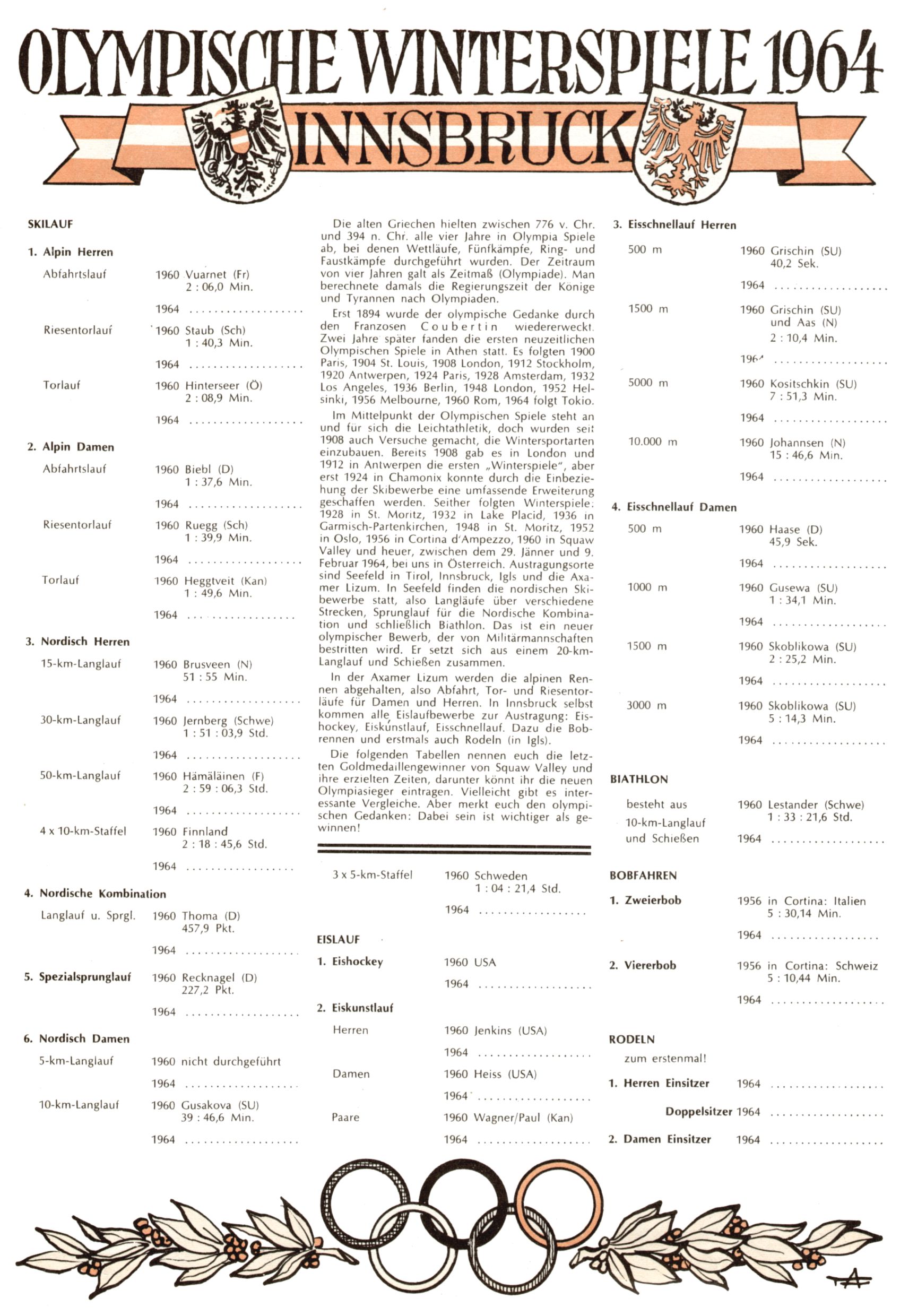 Olympische Winterspiele 1964 Innsbruck (TA) |