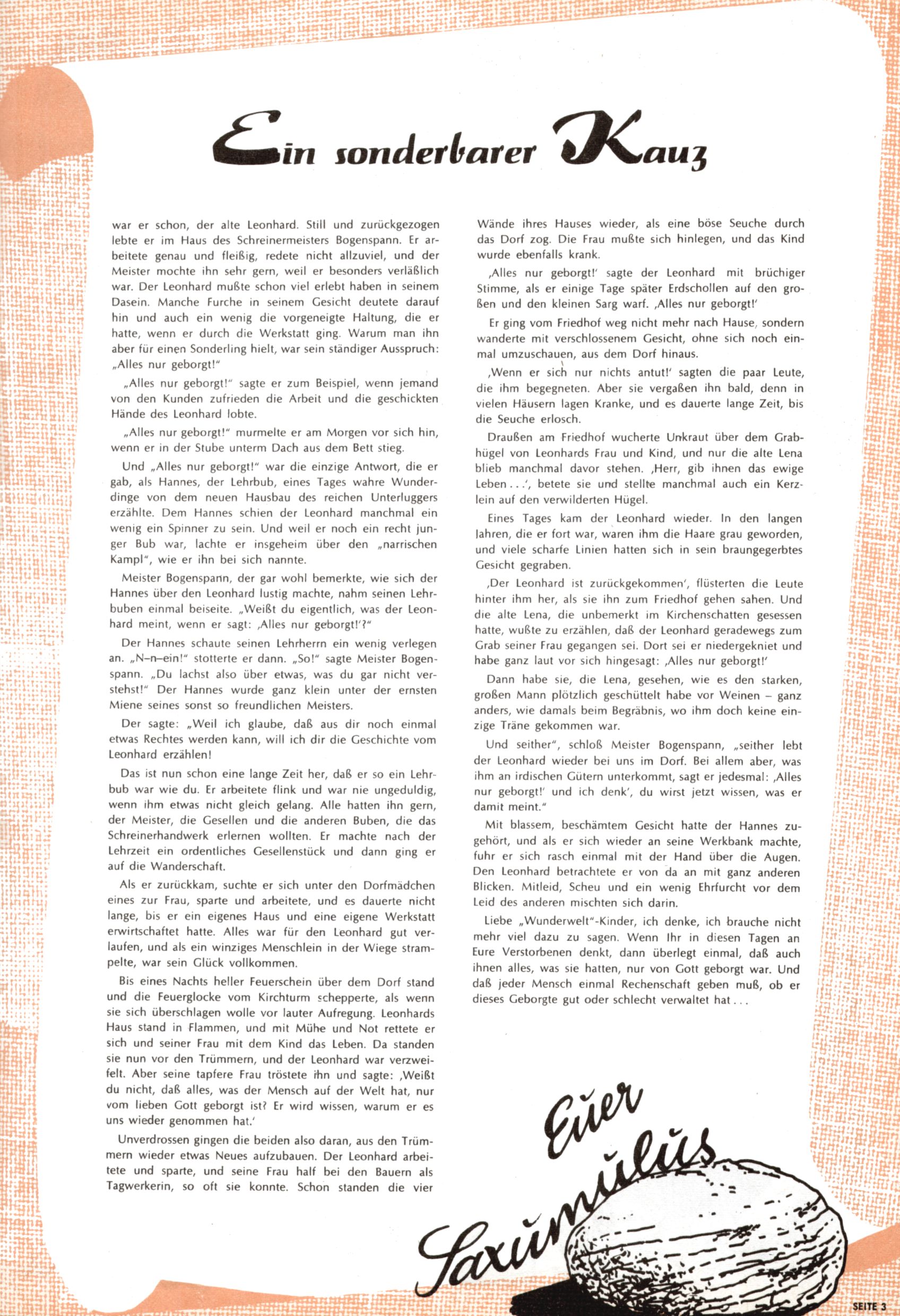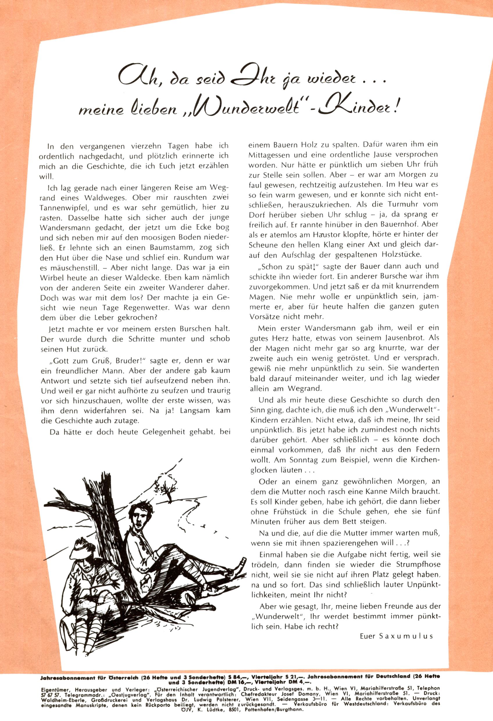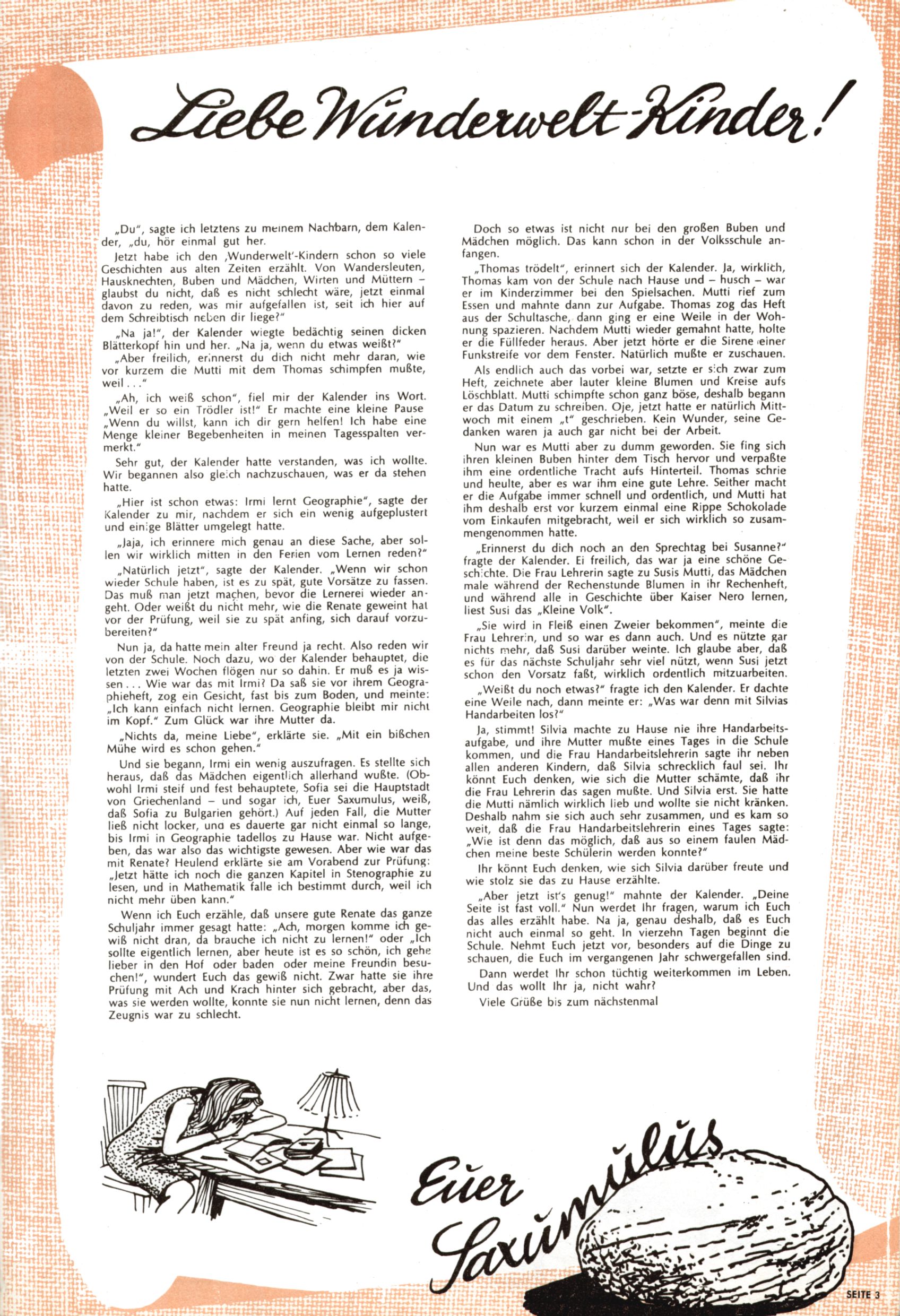 Saxumulus - Liebe Wunderwelt-Leser! (Trude Piesch) |