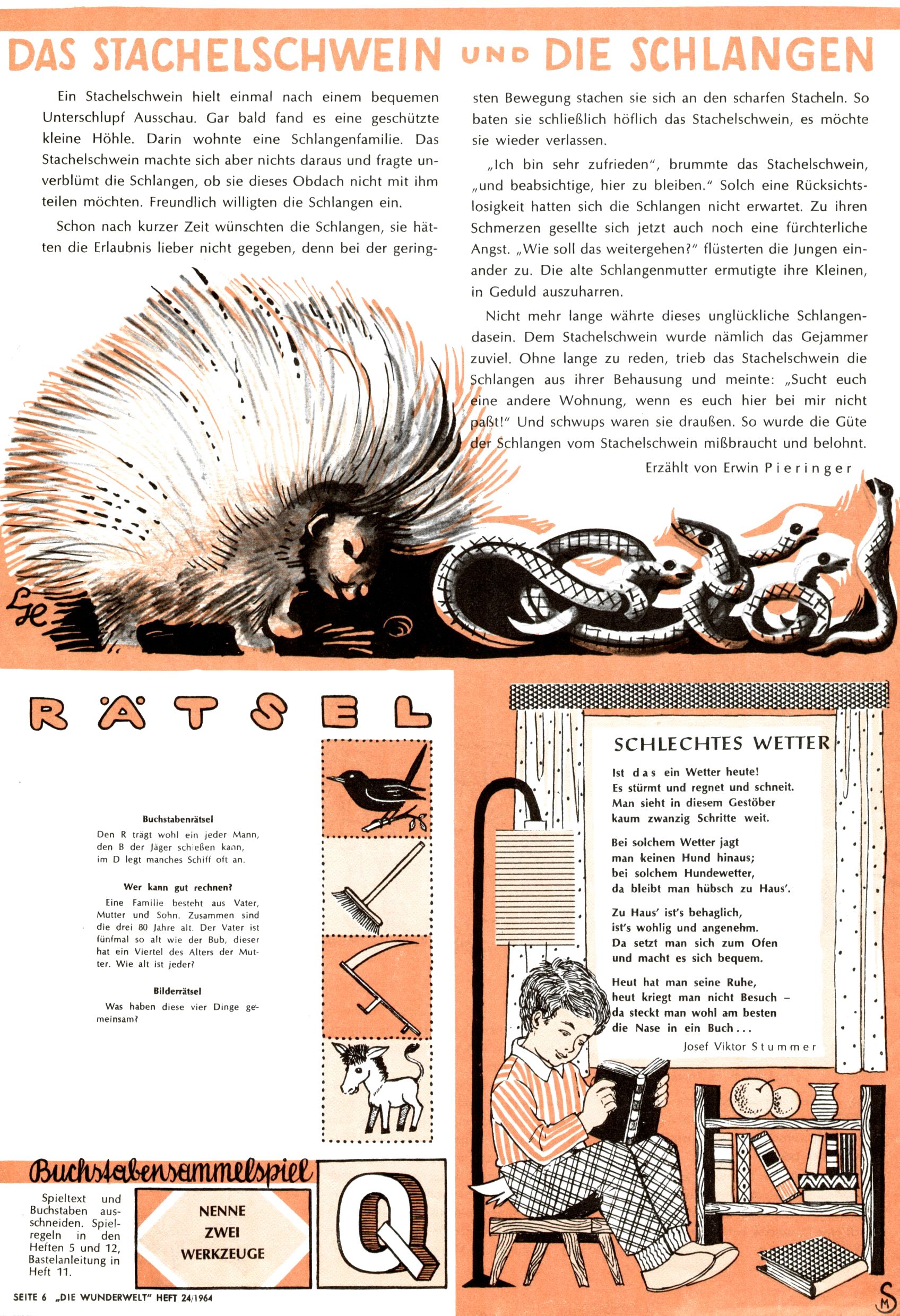 Stachelschwein und Schlangen / Rätsel / Schlechtes Wetter (EP / MS / Josef V. Stummer) |