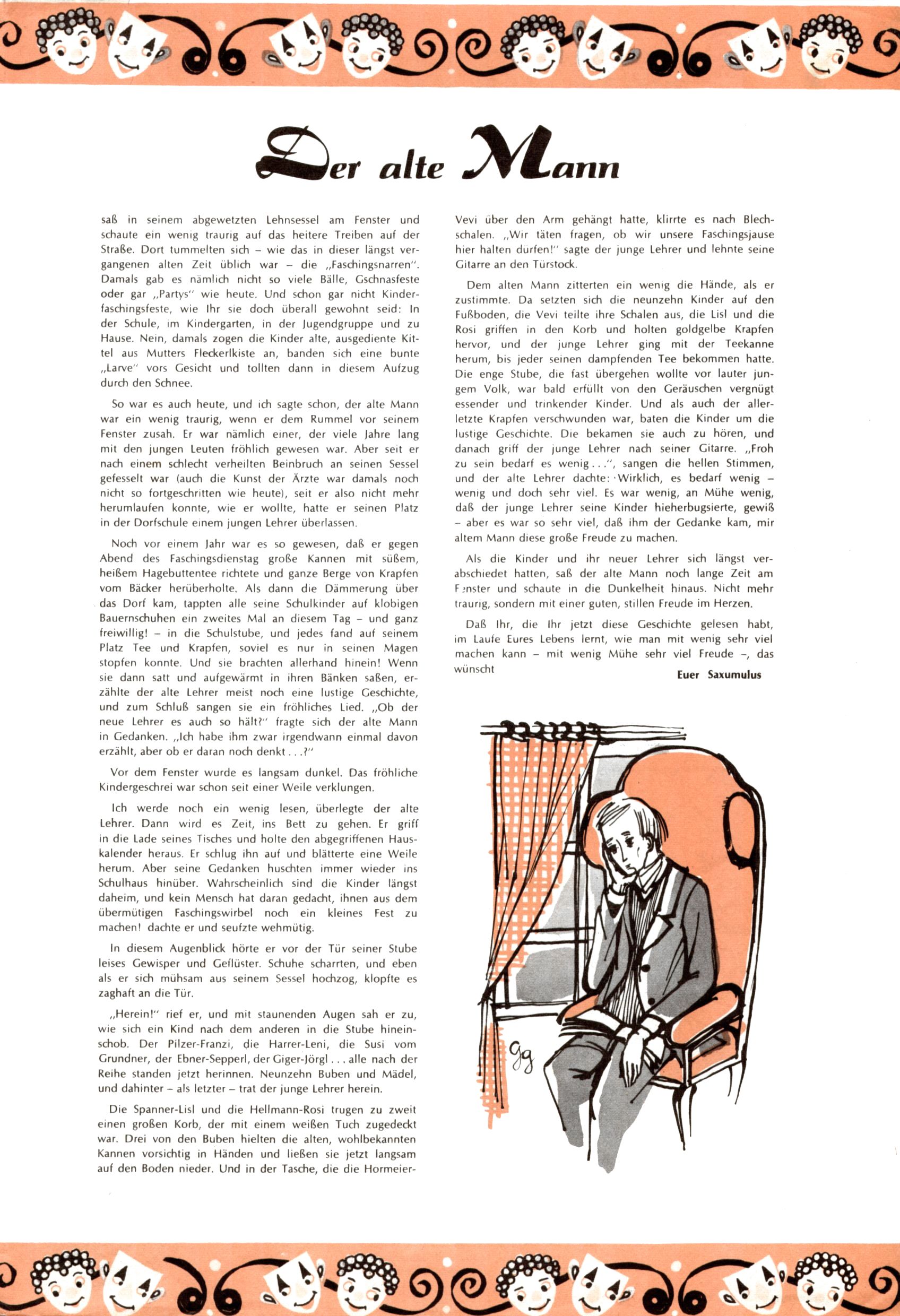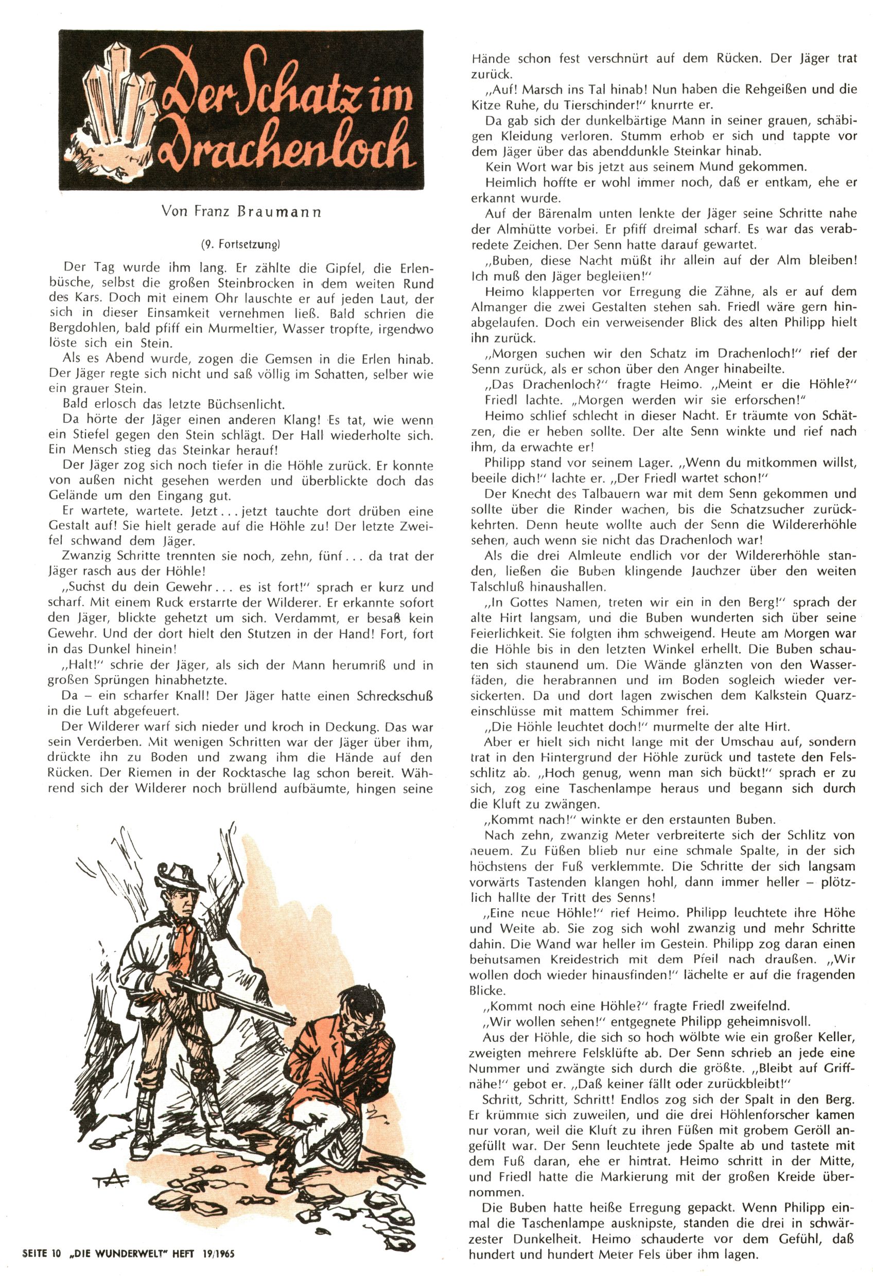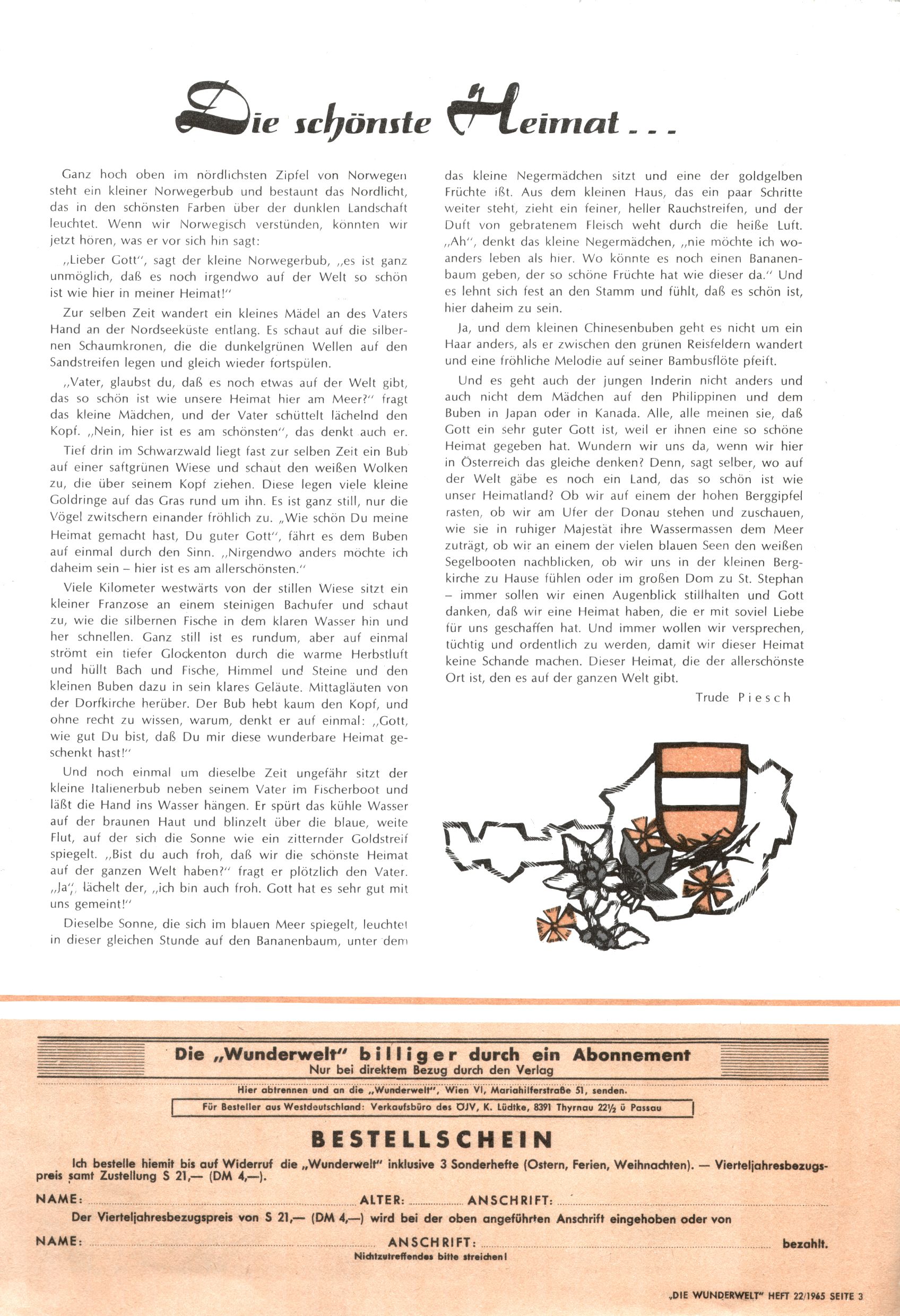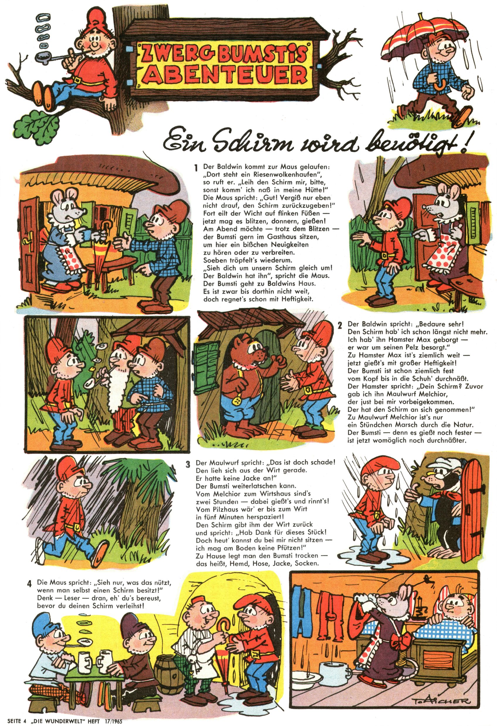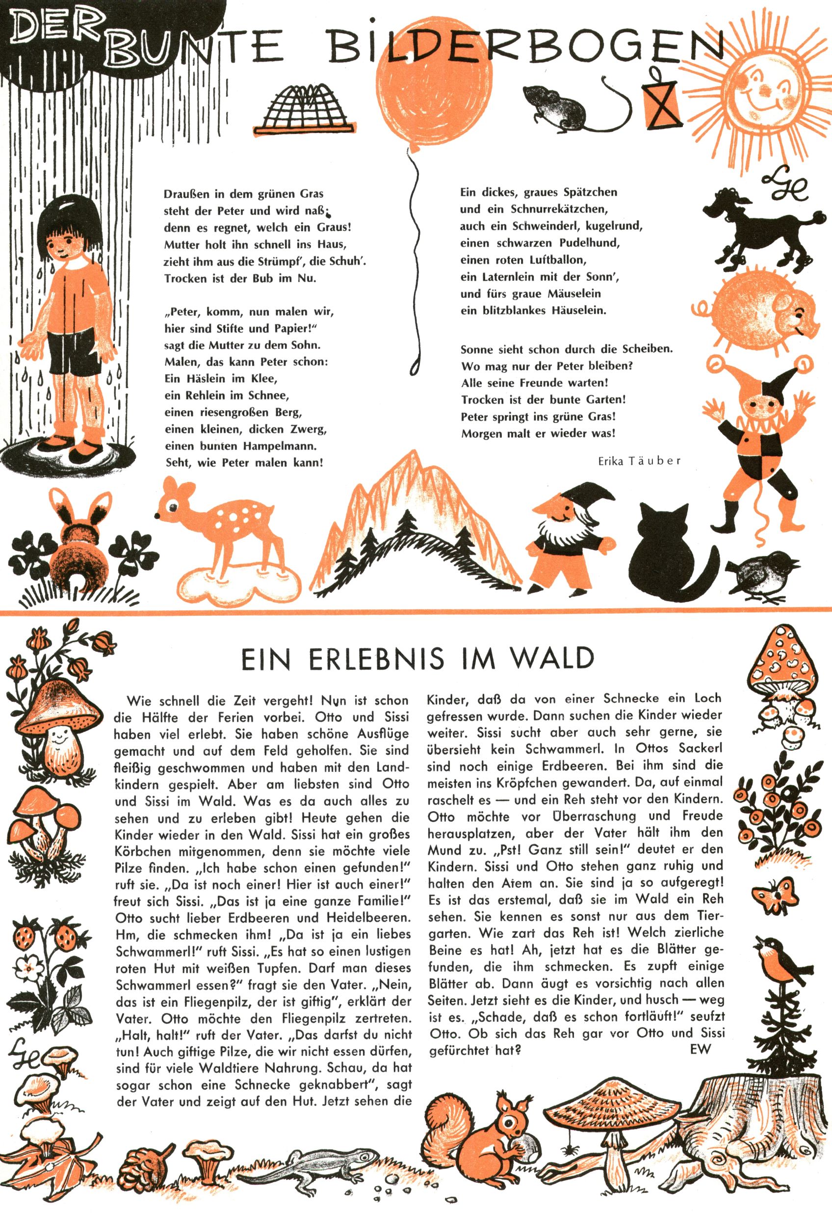 1965 - Die Zeichen der Zeit ignorieren In den Sonderheften hatte man längst umgestellt. In den Standardheften klammerte man sich mit Händen und Füßen an das Altbewährte. Ein einziges Mal bekam Gudrun Groh-Götzinger 1965 die Chance, ihren modenernen Zeichenstil in einem Mittelmärchen umsetzen zu können. Teja Aicher setzte seine Nachbildungen historischer Gebäude fort und startete eine neue Serie über Bauernhöfe in Österreich. Neben seinen beiden Comicserien Zwerg Bumsti und Kri, der Zauberlehrling gestaltete er nach wie vor die Technikseite. Zusammen mit Rosl Warzilek, die nach 5 Jahren Pause erstmals wieder regelmäßig Titelseiten entwerfen durfte, war er für mehr als 50 Prozenz des Heftinhalts verantwortlich. Monica Skidelsky hatte sich ganz auf die Bastelarbeiten für Mädchen verlagert. Daneben waren nach wie vor Lisbeth Hölzl und Gudrun Groh-Götzinger im Einsatz. |