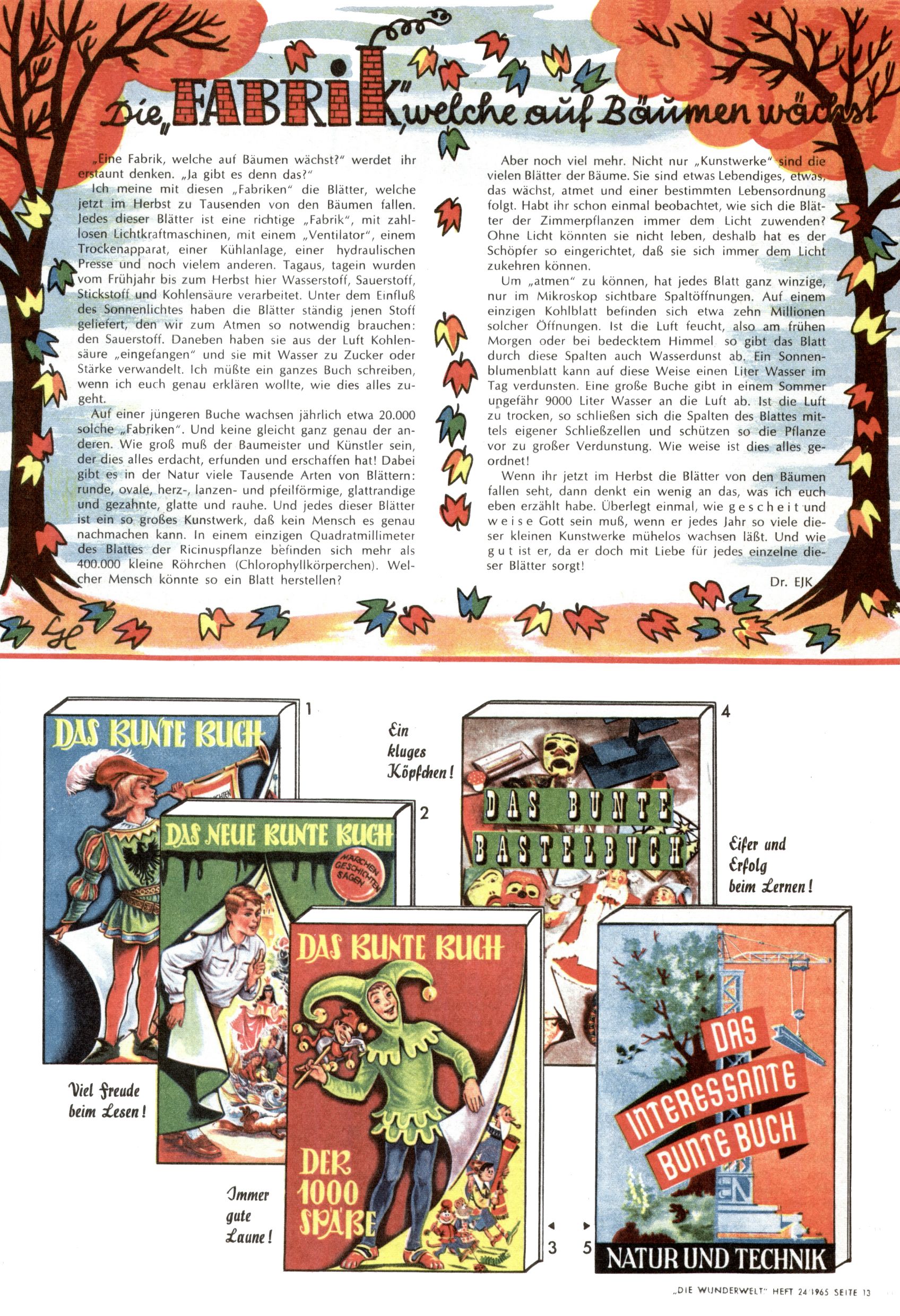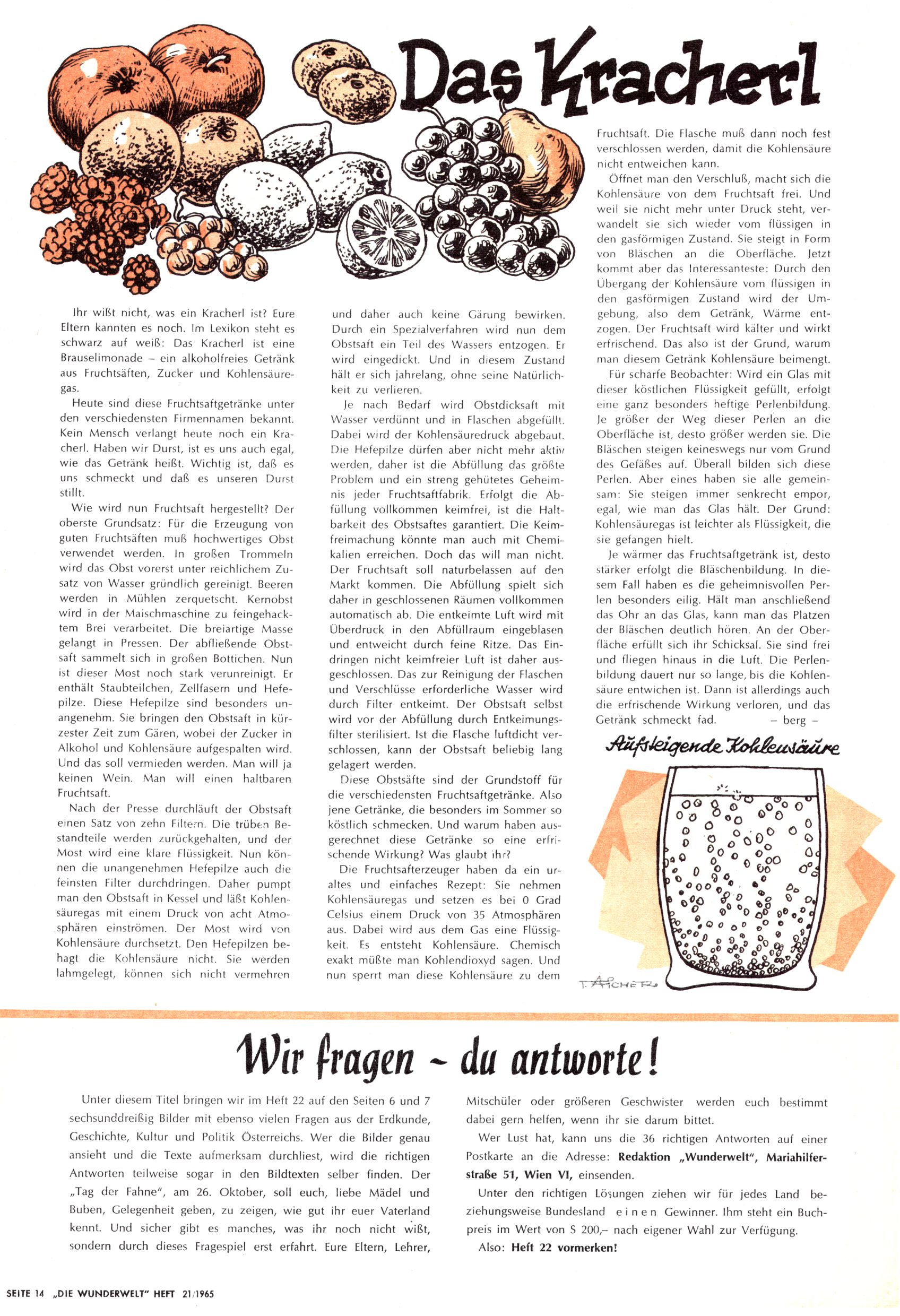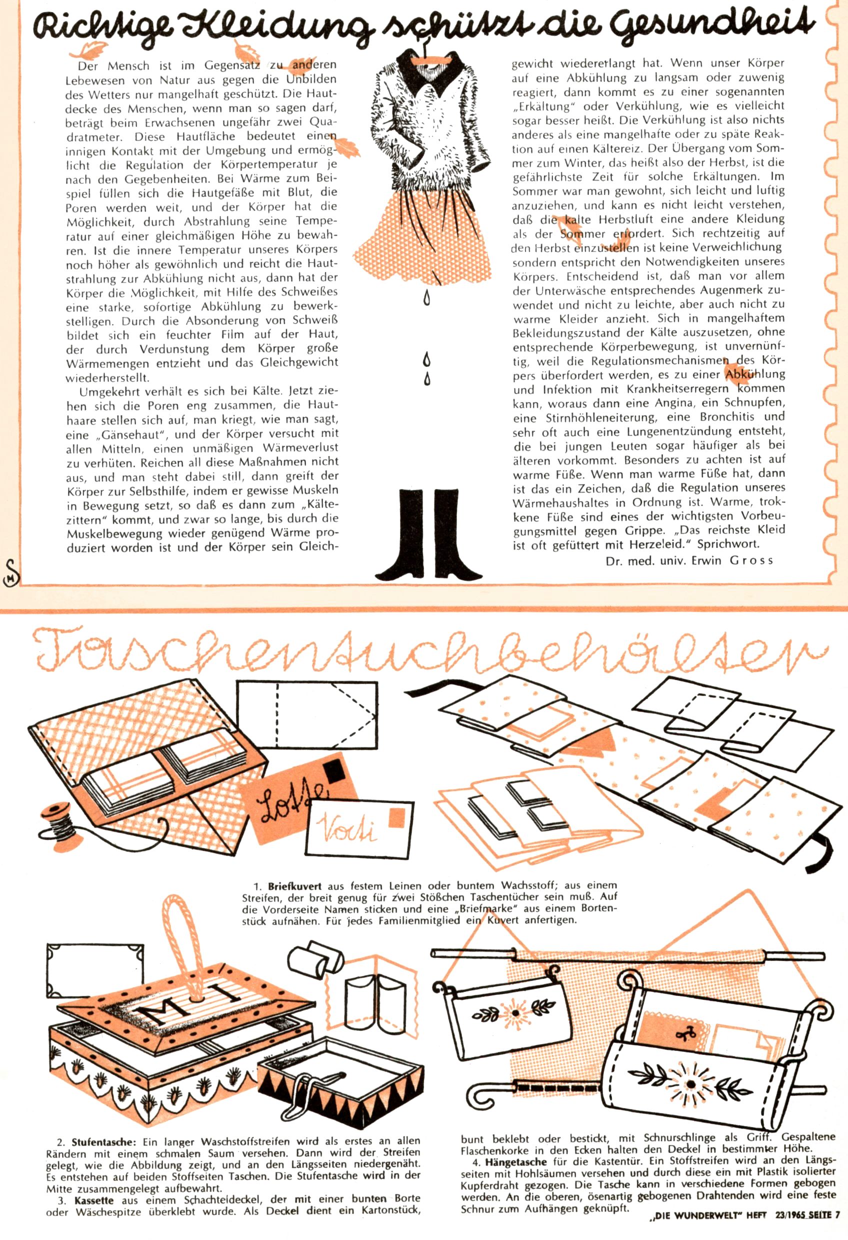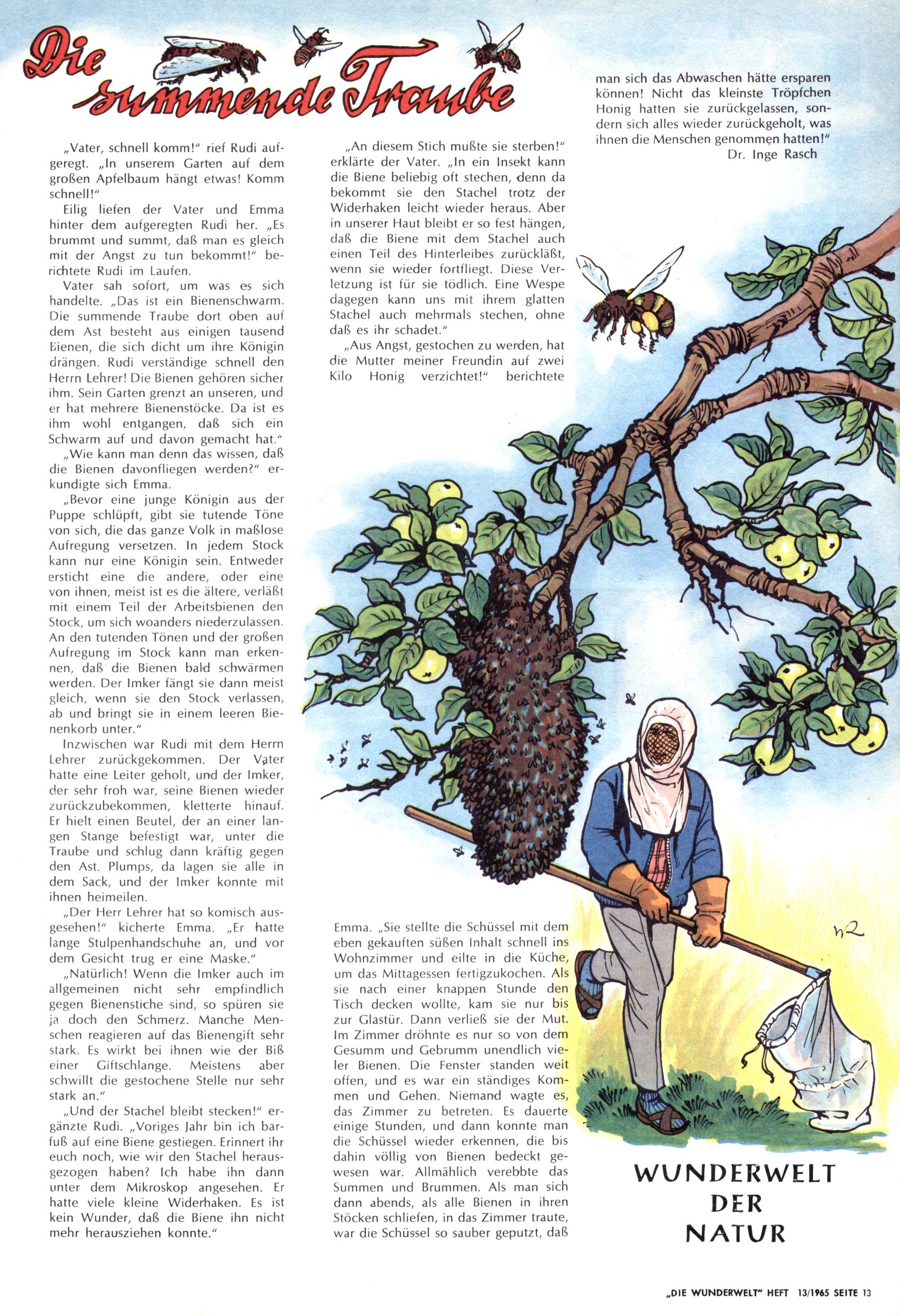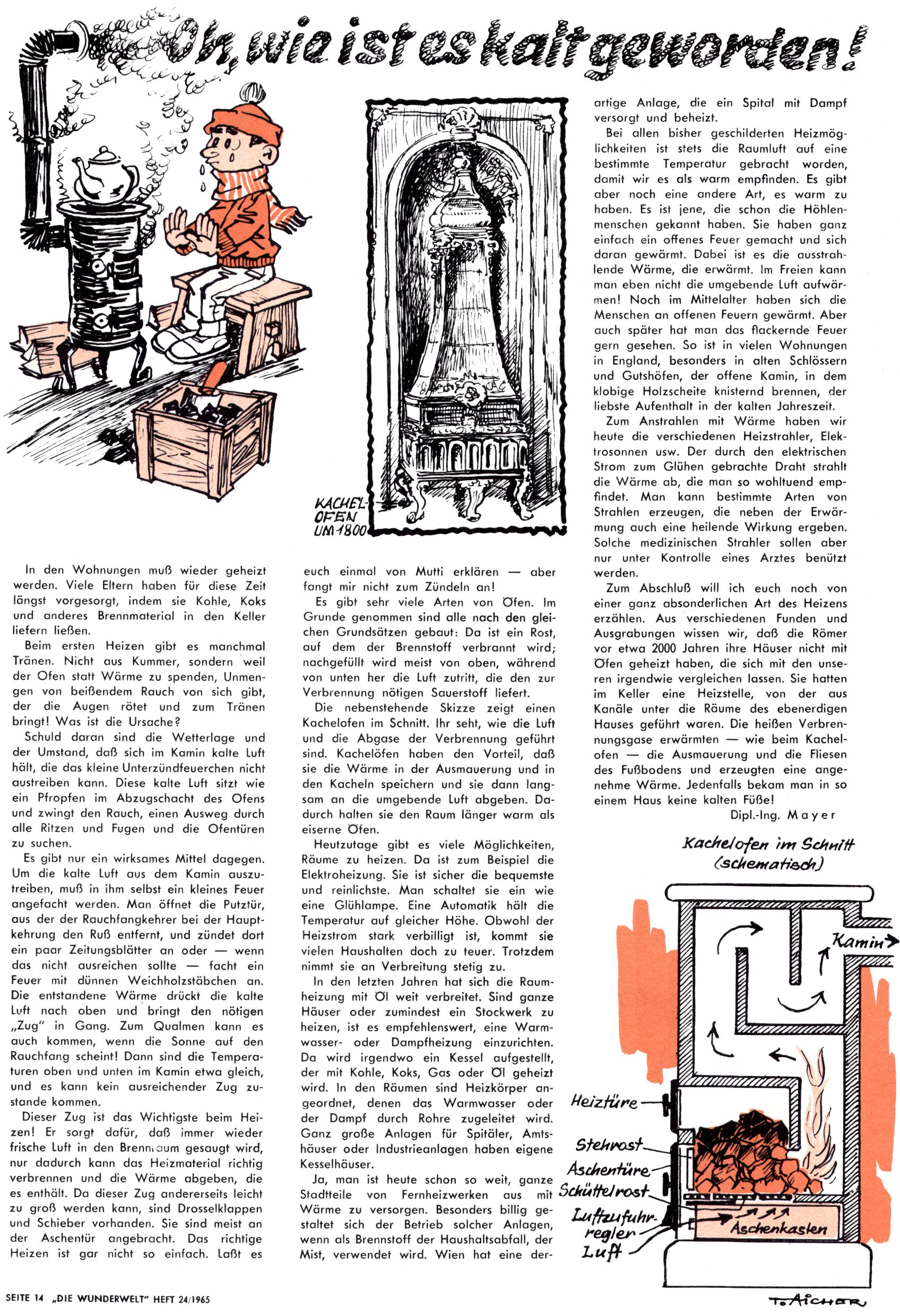1965 - Die Zeichen der Zeit ignorieren In den Sonderheften hatte man längst umgestellt. In den Standardheften klammerte man sich mit Händen und Füßen an das Altbewährte. Ein einziges Mal bekam Gudrun Groh-Götzinger 1965 die Chance, ihren modenernen Zeichenstil in einem Mittelmärchen umsetzen zu können. Teja Aicher setzte seine Nachbildungen historischer Gebäude fort und startete eine neue Serie über Bauernhöfe in Österreich. Neben seinen beiden Comicserien Zwerg Bumsti und Kri, der Zauberlehrling gestaltete er nach wie vor die Technikseite. Zusammen mit Rosl Warzilek, die nach 5 Jahren Pause erstmals wieder regelmäßig Titelseiten entwerfen durfte, war er für mehr als 50 Prozenz des Heftinhalts verantwortlich. Monica Skidelsky hatte sich ganz auf die Bastelarbeiten für Mädchen verlagert. Daneben waren nach wie vor Lisbeth Hölzl und Gudrun Groh-Götzinger im Einsatz. |