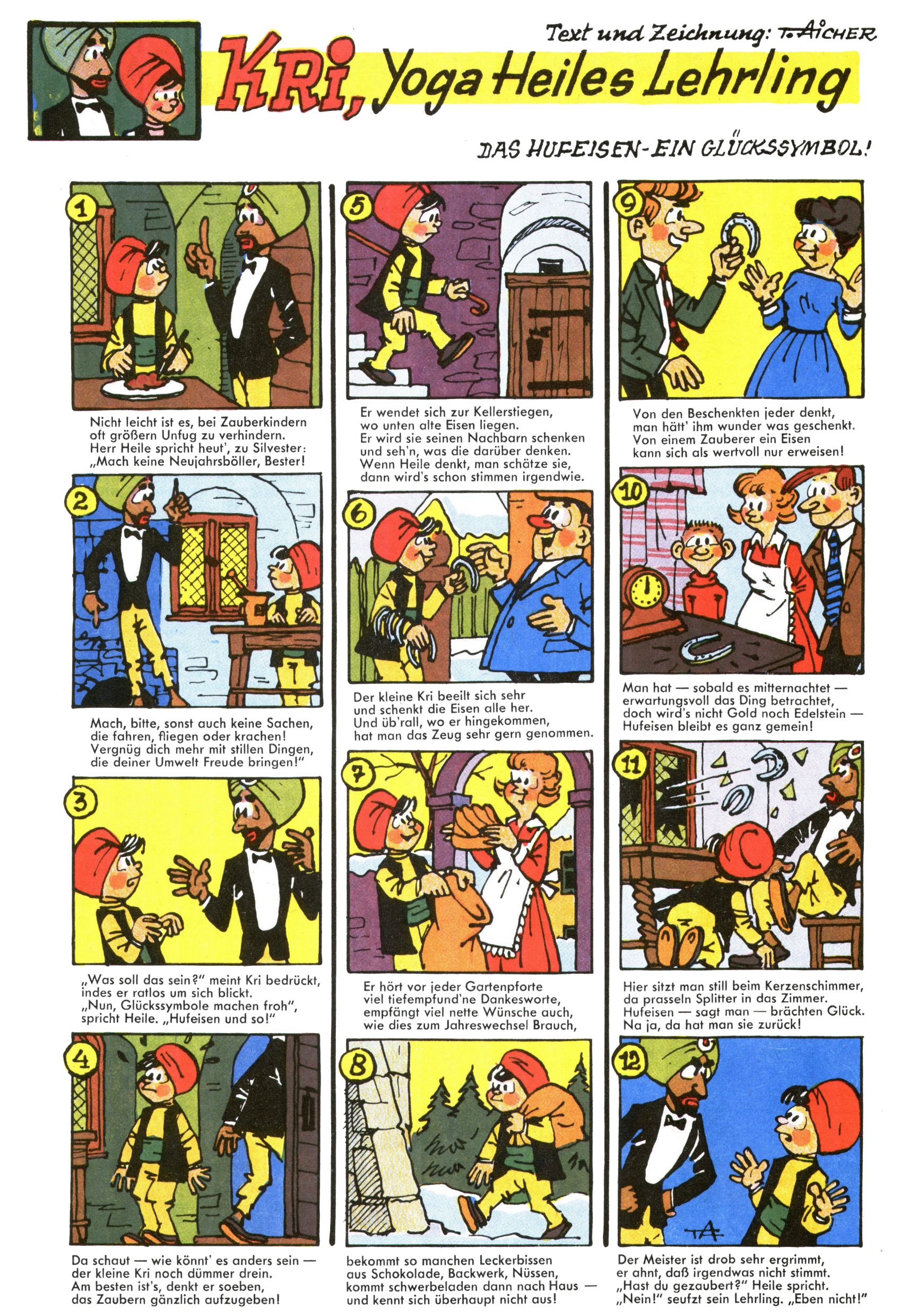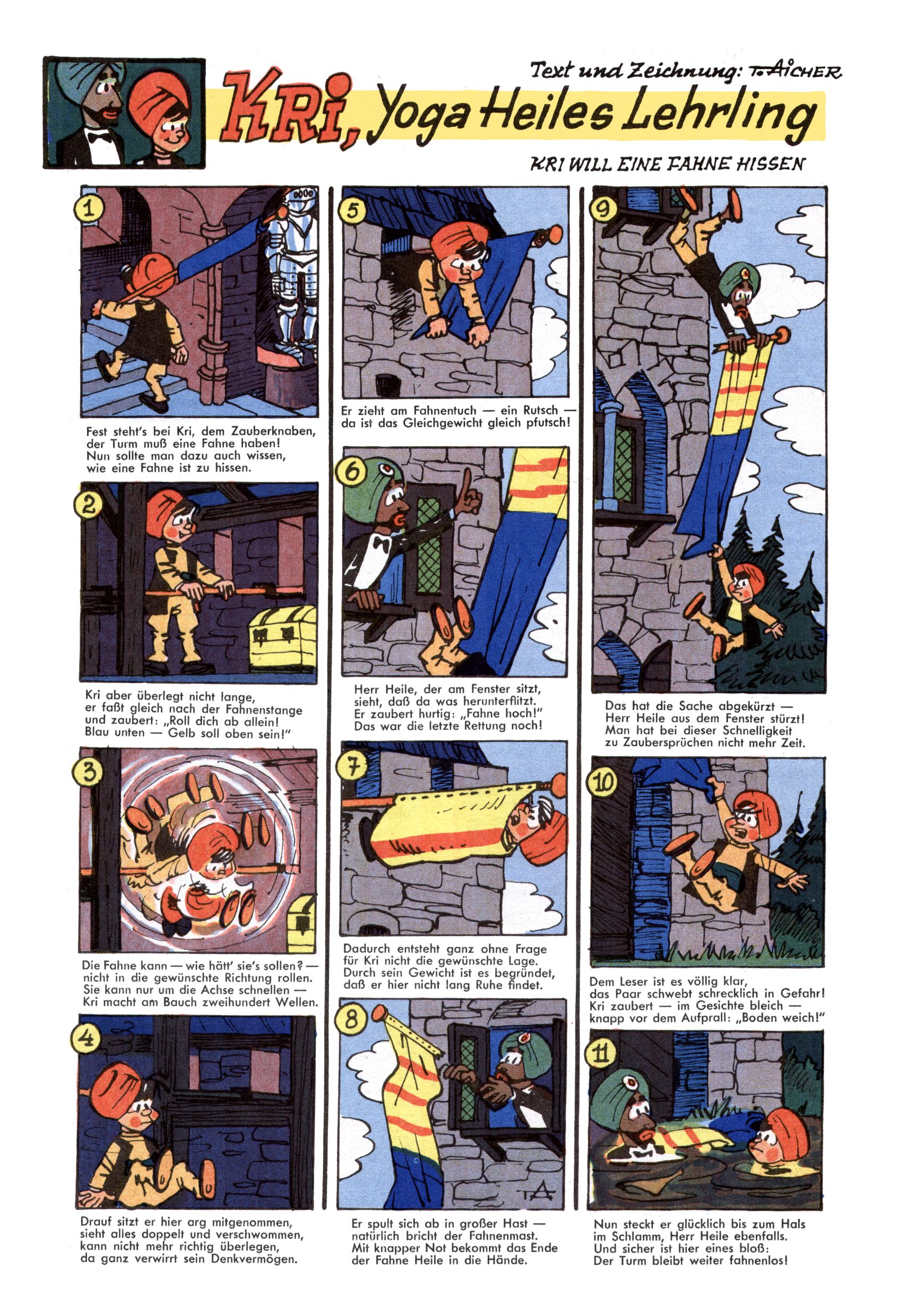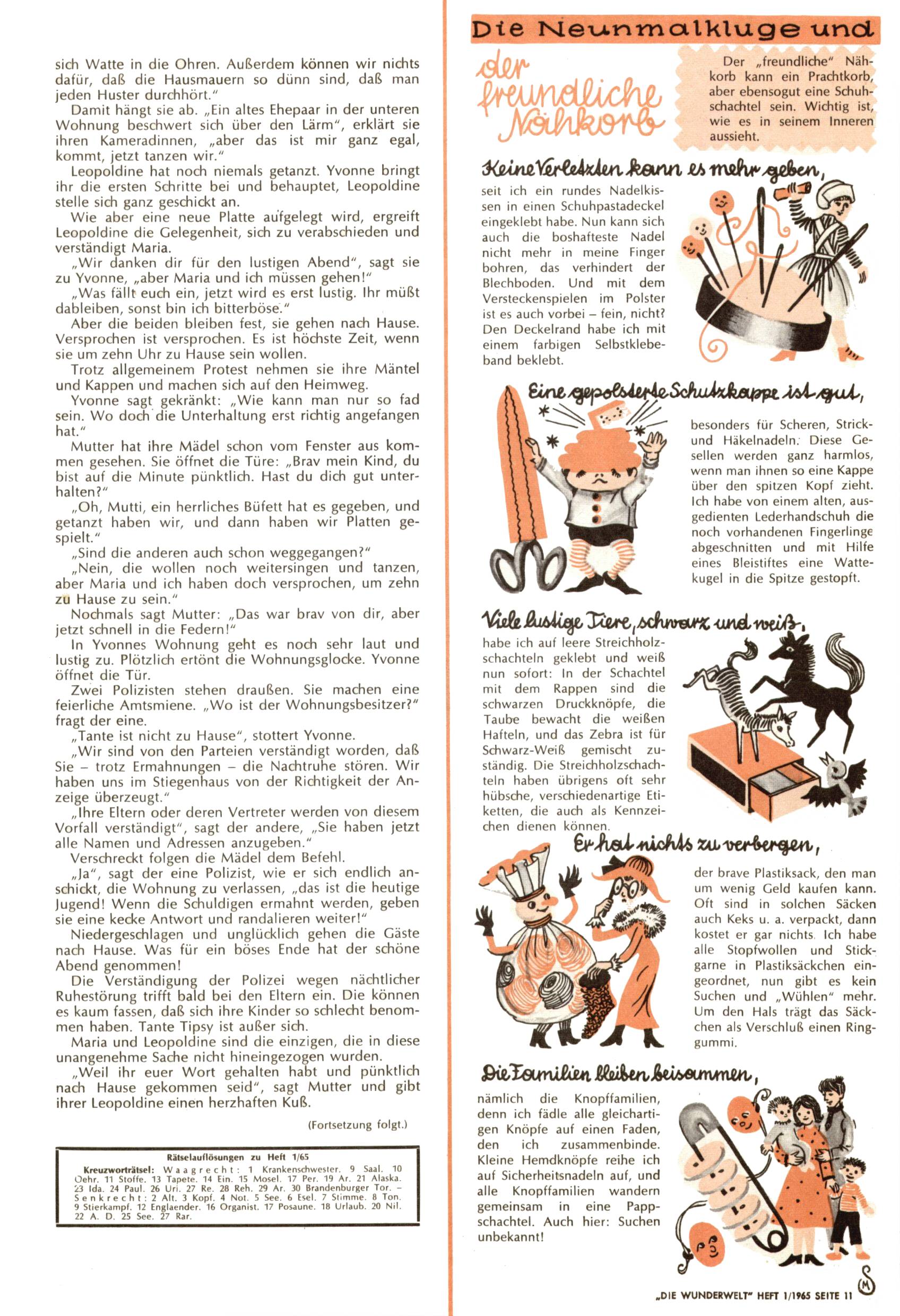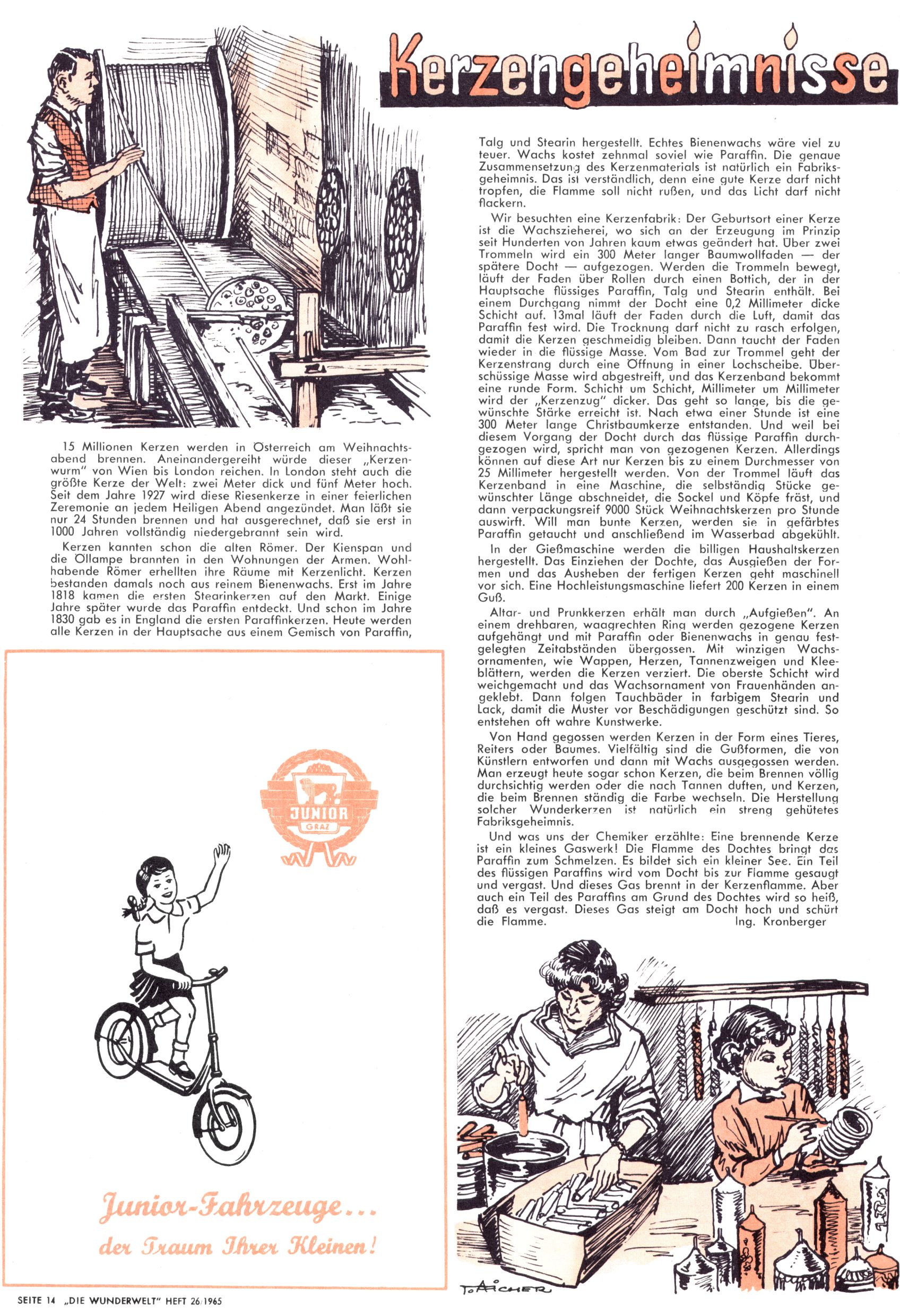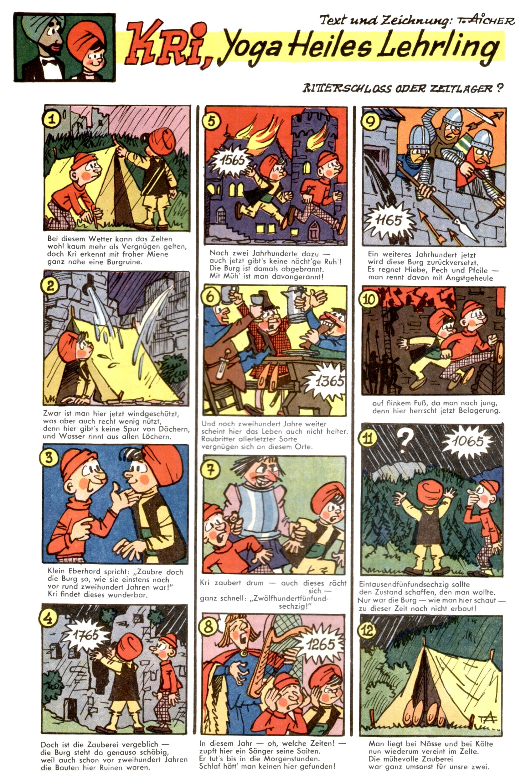 1965 - Die Zeichen der Zeit ignorieren In den Sonderheften hatte man längst umgestellt. In den Standardheften klammerte man sich mit Händen und Füßen an das Altbewährte. Ein einziges Mal bekam Gudrun Groh-Götzinger 1965 die Chance, ihren modenernen Zeichenstil in einem Mittelmärchen umsetzen zu können. Teja Aicher setzte seine Nachbildungen historischer Gebäude fort und startete eine neue Serie über Bauernhöfe in Österreich. Neben seinen beiden Comicserien Zwerg Bumsti und Kri, der Zauberlehrling gestaltete er nach wie vor die Technikseite. Zusammen mit Rosl Warzilek, die nach 5 Jahren Pause erstmals wieder regelmäßig Titelseiten entwerfen durfte, war er für mehr als 50 Prozenz des Heftinhalts verantwortlich. Monica Skidelsky hatte sich ganz auf die Bastelarbeiten für Mädchen verlagert. Daneben waren nach wie vor Lisbeth Hölzl und Gudrun Groh-Götzinger im Einsatz. |