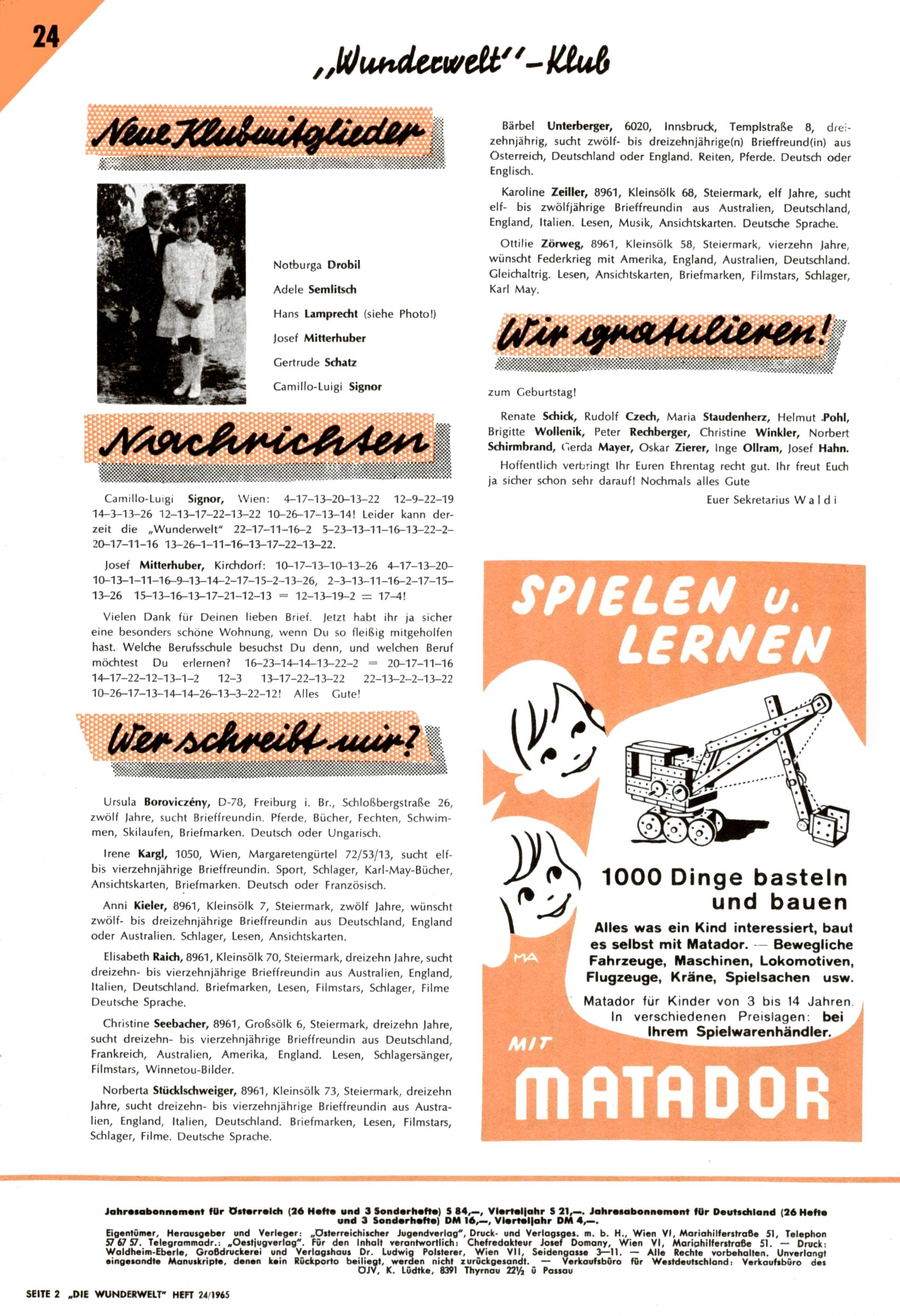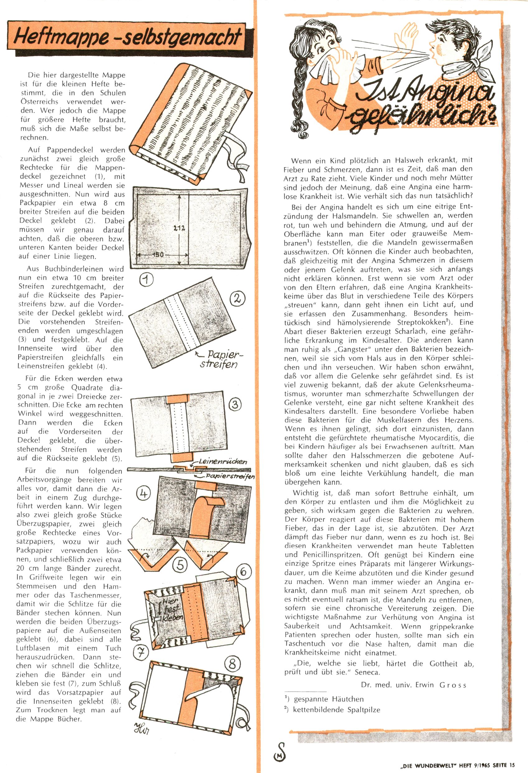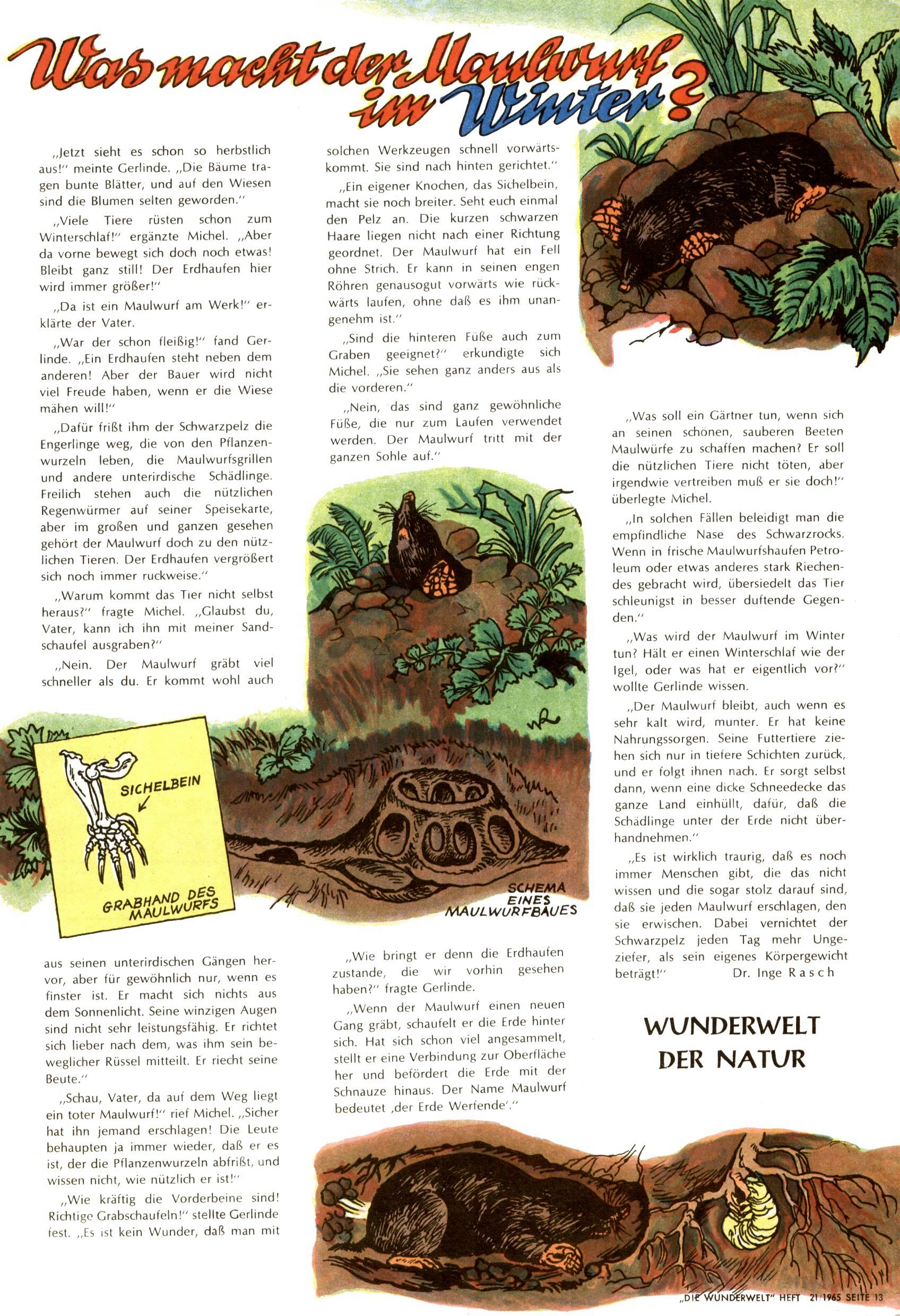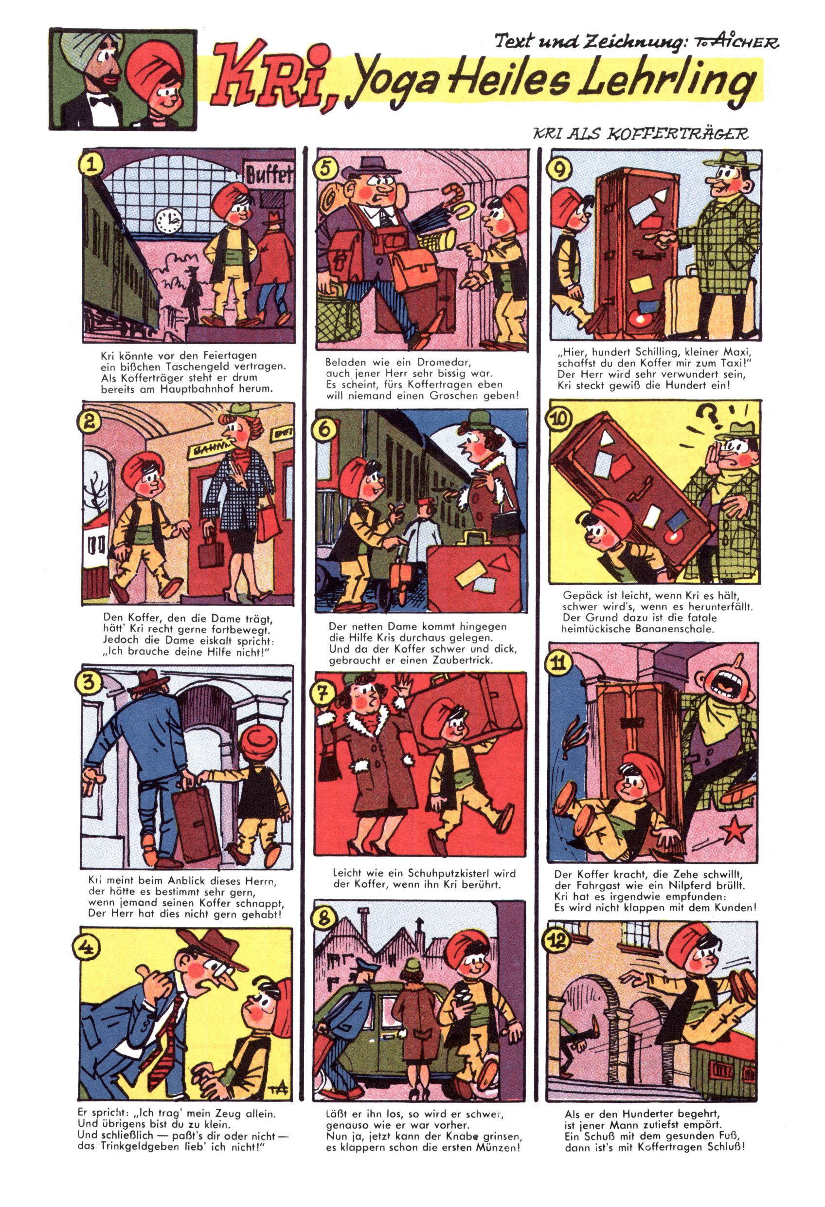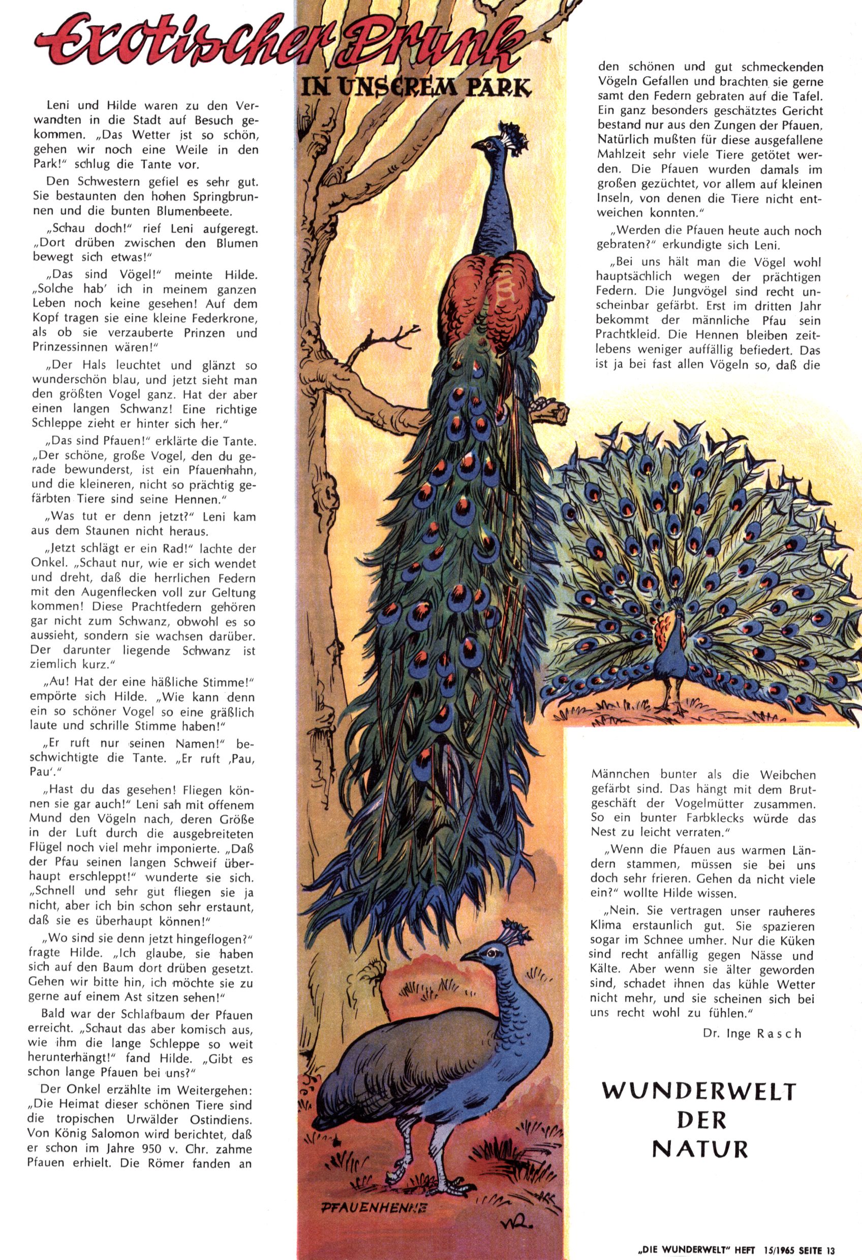 1965 - Die Zeichen der Zeit ignorieren In den Sonderheften hatte man längst umgestellt. In den Standardheften klammerte man sich mit Händen und Füßen an das Altbewährte. Ein einziges Mal bekam Gudrun Groh-Götzinger 1965 die Chance, ihren modenernen Zeichenstil in einem Mittelmärchen umsetzen zu können. Teja Aicher setzte seine Nachbildungen historischer Gebäude fort und startete eine neue Serie über Bauernhöfe in Österreich. Neben seinen beiden Comicserien Zwerg Bumsti und Kri, der Zauberlehrling gestaltete er nach wie vor die Technikseite. Zusammen mit Rosl Warzilek, die nach 5 Jahren Pause erstmals wieder regelmäßig Titelseiten entwerfen durfte, war er für mehr als 50 Prozenz des Heftinhalts verantwortlich. Monica Skidelsky hatte sich ganz auf die Bastelarbeiten für Mädchen verlagert. Daneben waren nach wie vor Lisbeth Hölzl und Gudrun Groh-Götzinger im Einsatz. |