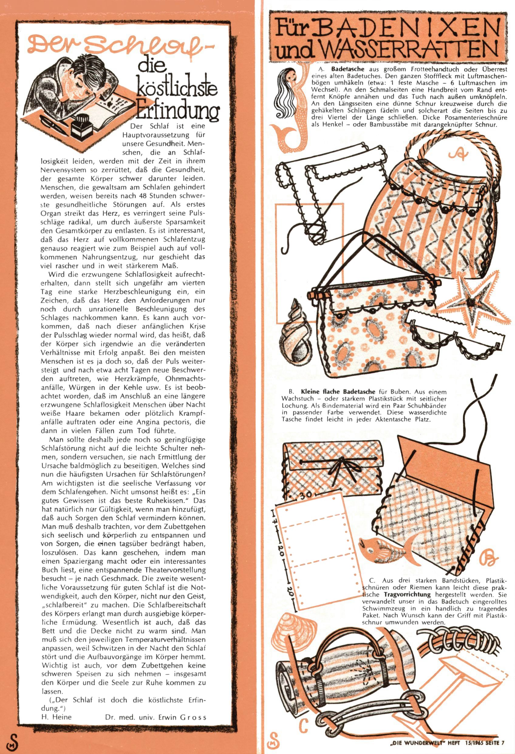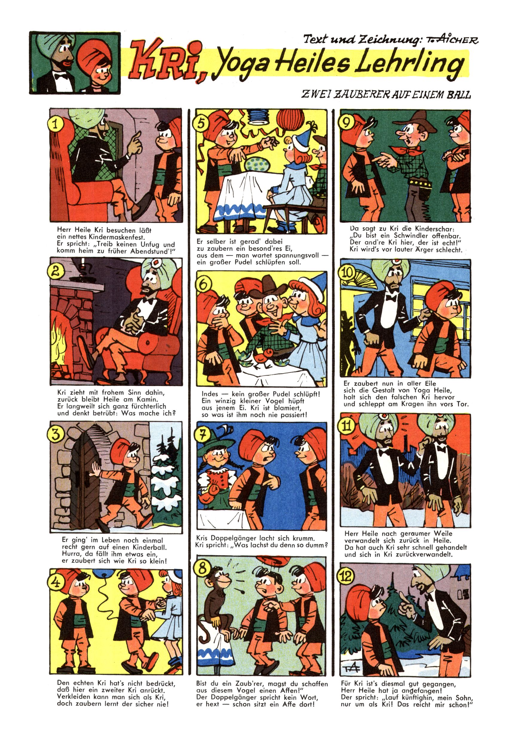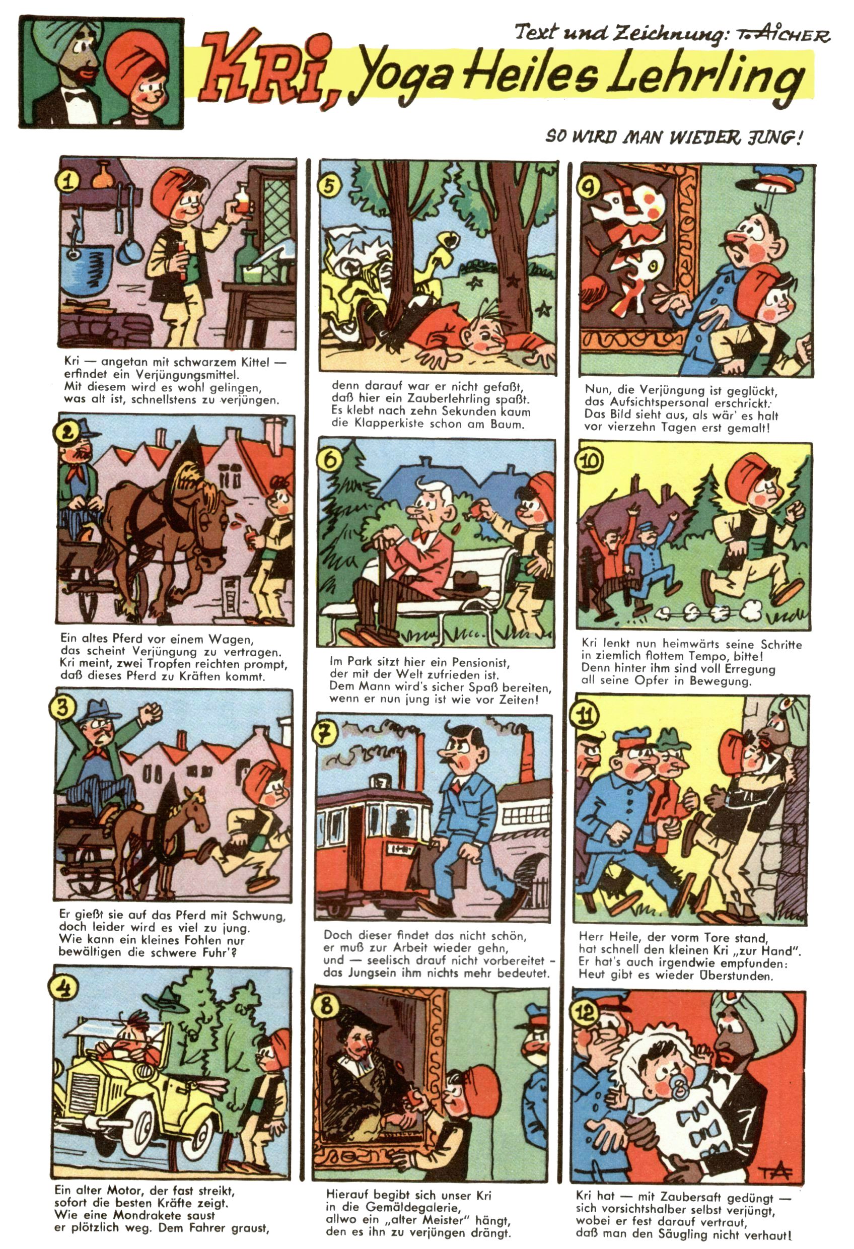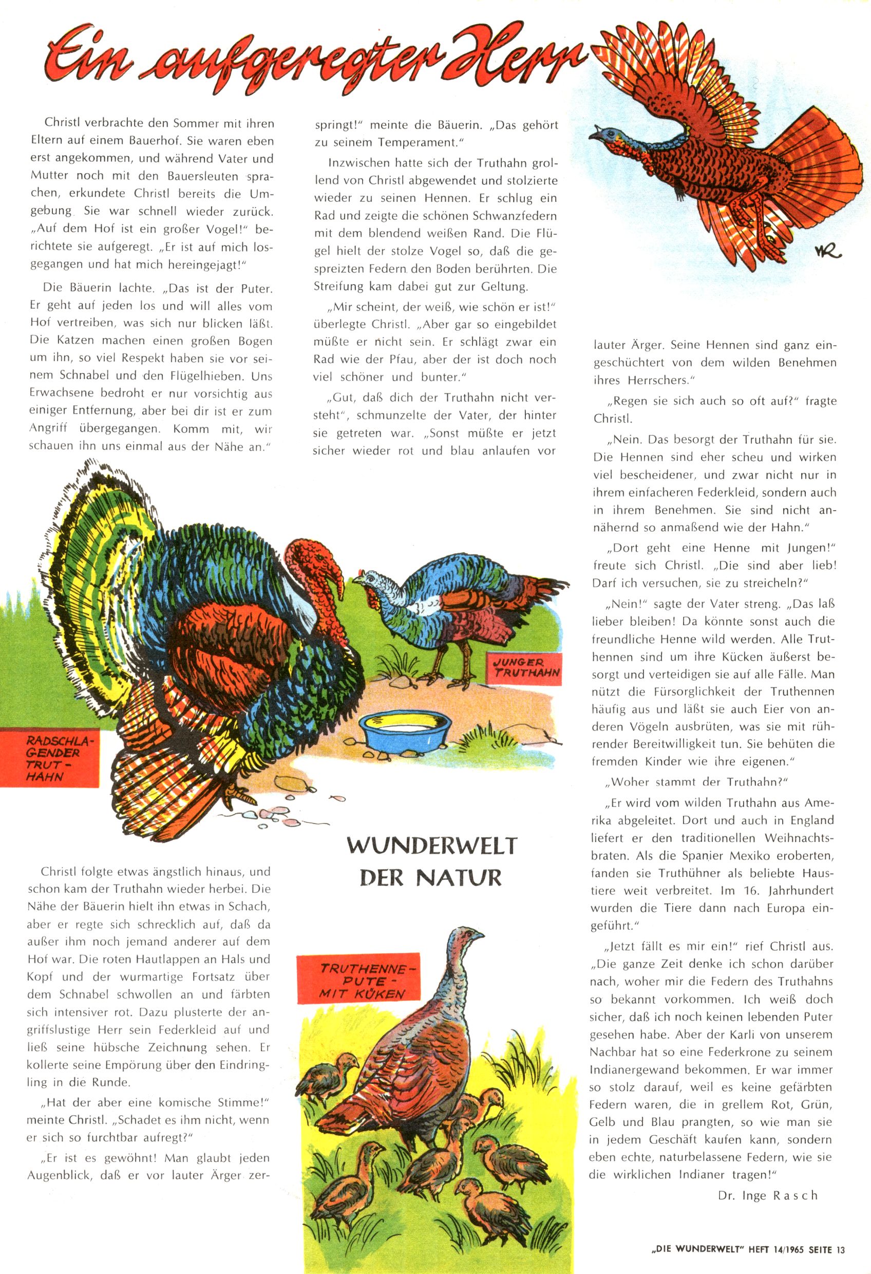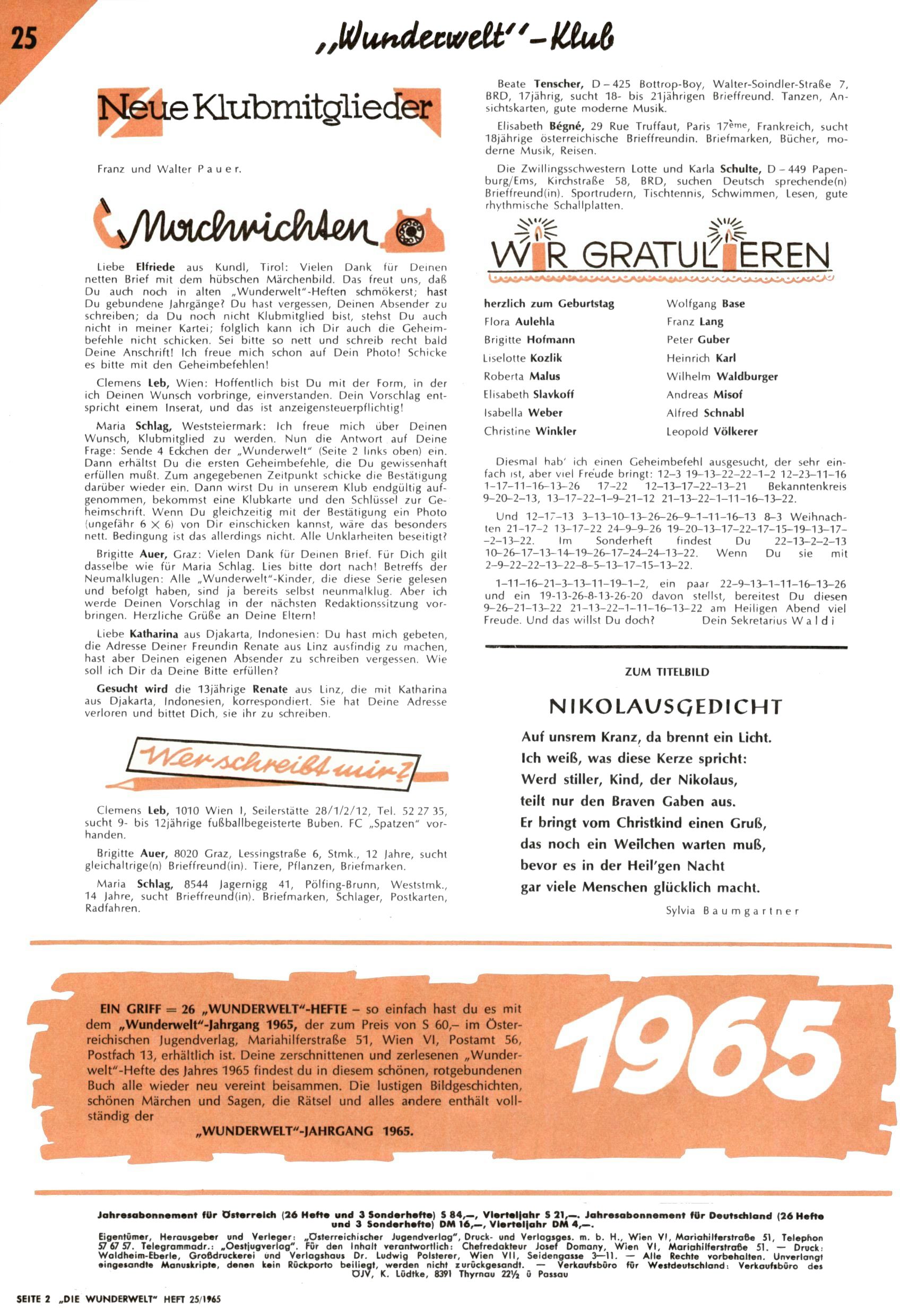 1965 - Die Zeichen der Zeit ignorieren In den Sonderheften hatte man längst umgestellt. In den Standardheften klammerte man sich mit Händen und Füßen an das Altbewährte. Ein einziges Mal bekam Gudrun Groh-Götzinger 1965 die Chance, ihren modenernen Zeichenstil in einem Mittelmärchen umsetzen zu können. Teja Aicher setzte seine Nachbildungen historischer Gebäude fort und startete eine neue Serie über Bauernhöfe in Österreich. Neben seinen beiden Comicserien Zwerg Bumsti und Kri, der Zauberlehrling gestaltete er nach wie vor die Technikseite. Zusammen mit Rosl Warzilek, die nach 5 Jahren Pause erstmals wieder regelmäßig Titelseiten entwerfen durfte, war er für mehr als 50 Prozenz des Heftinhalts verantwortlich. Monica Skidelsky hatte sich ganz auf die Bastelarbeiten für Mädchen verlagert. Daneben waren nach wie vor Lisbeth Hölzl und Gudrun Groh-Götzinger im Einsatz. |