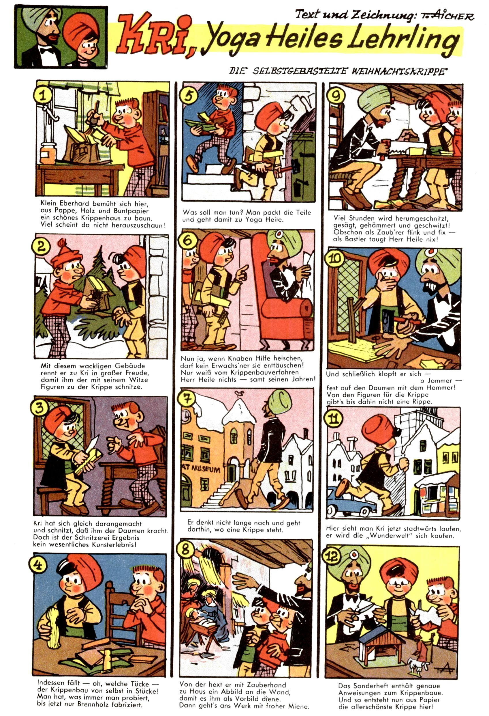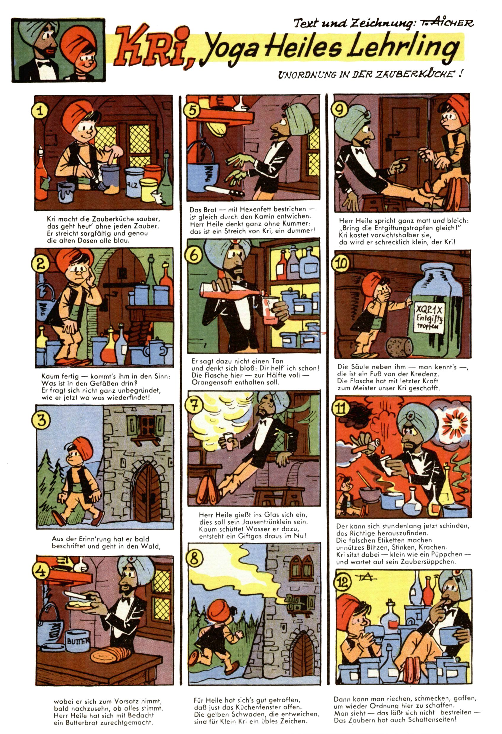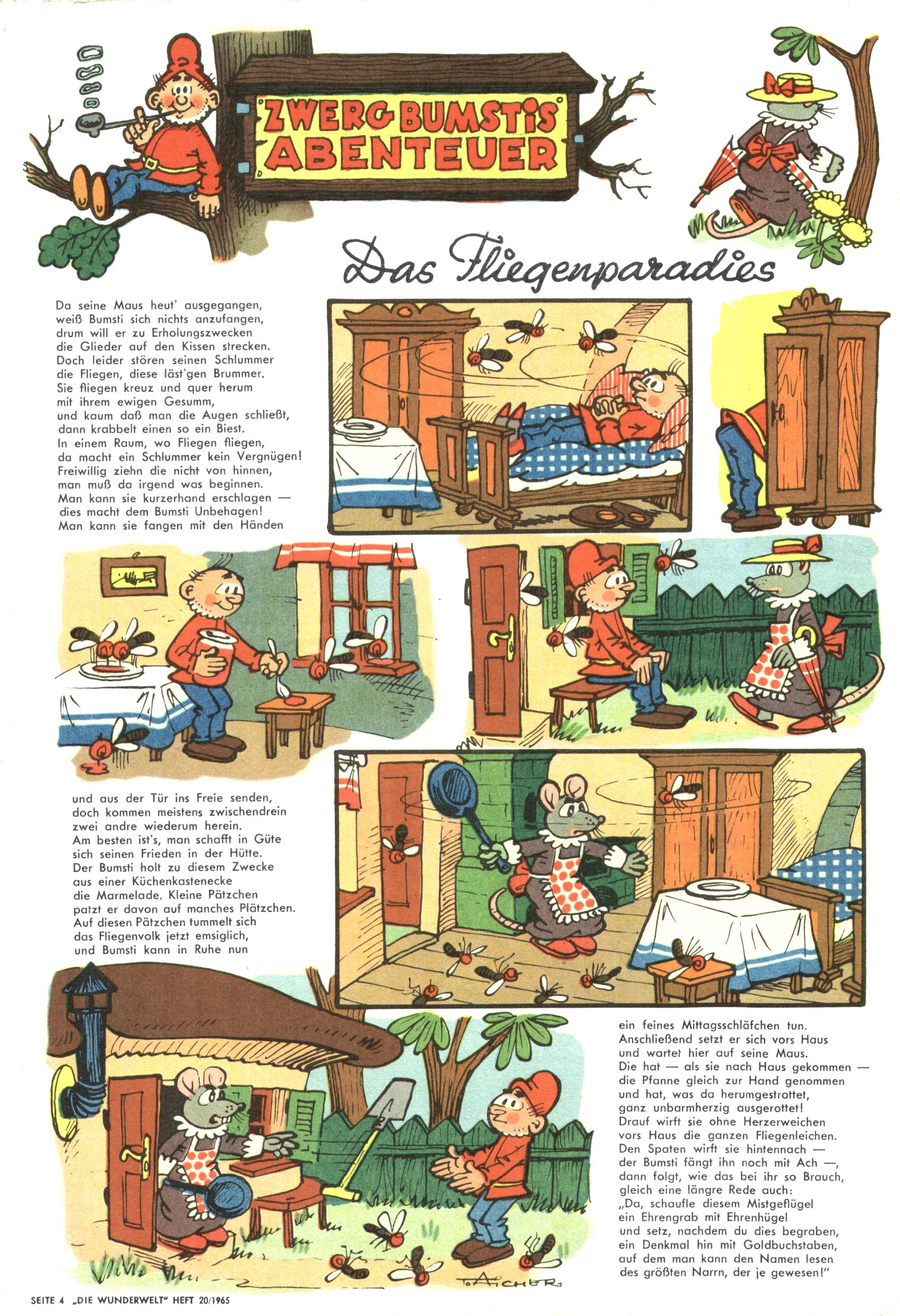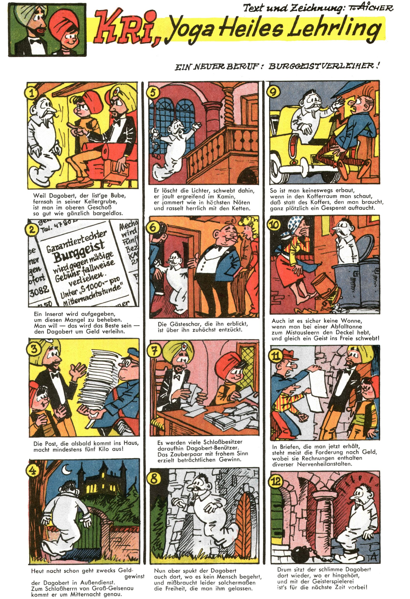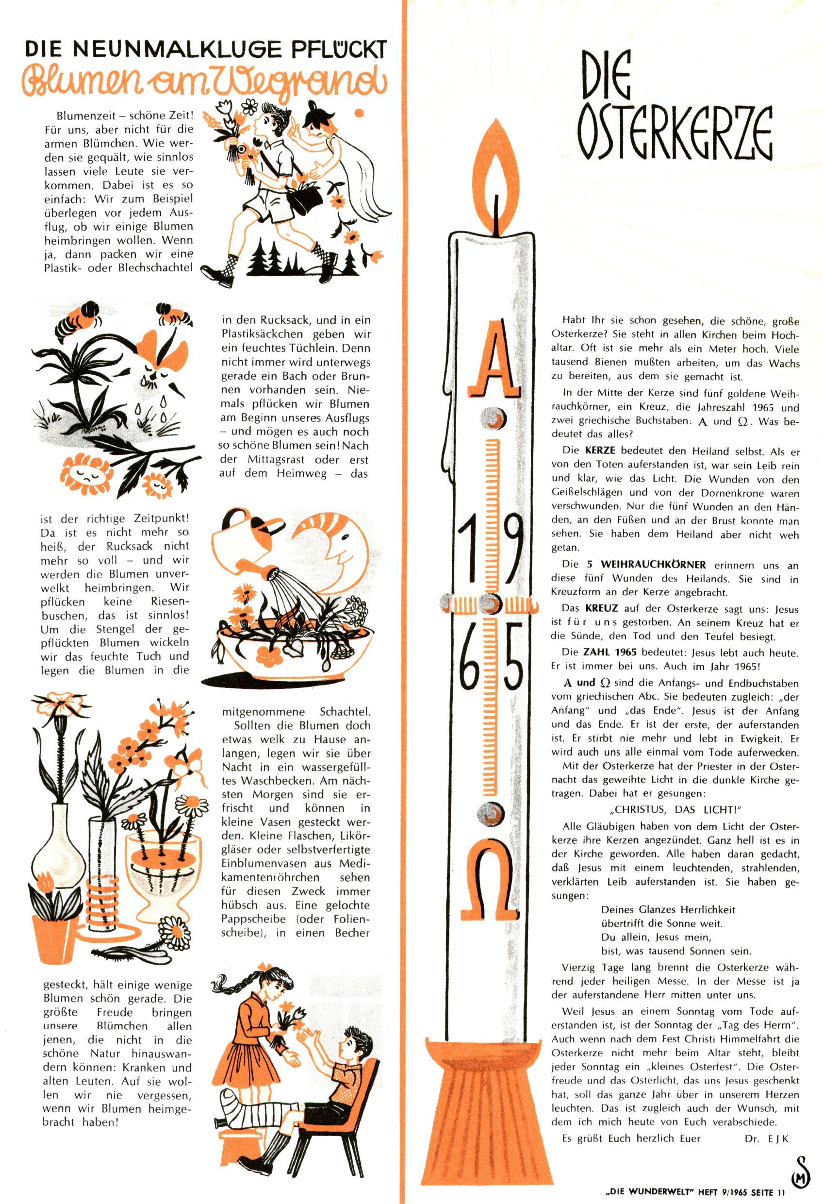 1965 - Die Zeichen der Zeit ignorieren In den Sonderheften hatte man längst umgestellt. In den Standardheften klammerte man sich mit Händen und Füßen an das Altbewährte. Ein einziges Mal bekam Gudrun Groh-Götzinger 1965 die Chance, ihren modenernen Zeichenstil in einem Mittelmärchen umsetzen zu können. Teja Aicher setzte seine Nachbildungen historischer Gebäude fort und startete eine neue Serie über Bauernhöfe in Österreich. Neben seinen beiden Comicserien Zwerg Bumsti und Kri, der Zauberlehrling gestaltete er nach wie vor die Technikseite. Zusammen mit Rosl Warzilek, die nach 5 Jahren Pause erstmals wieder regelmäßig Titelseiten entwerfen durfte, war er für mehr als 50 Prozenz des Heftinhalts verantwortlich. Monica Skidelsky hatte sich ganz auf die Bastelarbeiten für Mädchen verlagert. Daneben waren nach wie vor Lisbeth Hölzl und Gudrun Groh-Götzinger im Einsatz. |