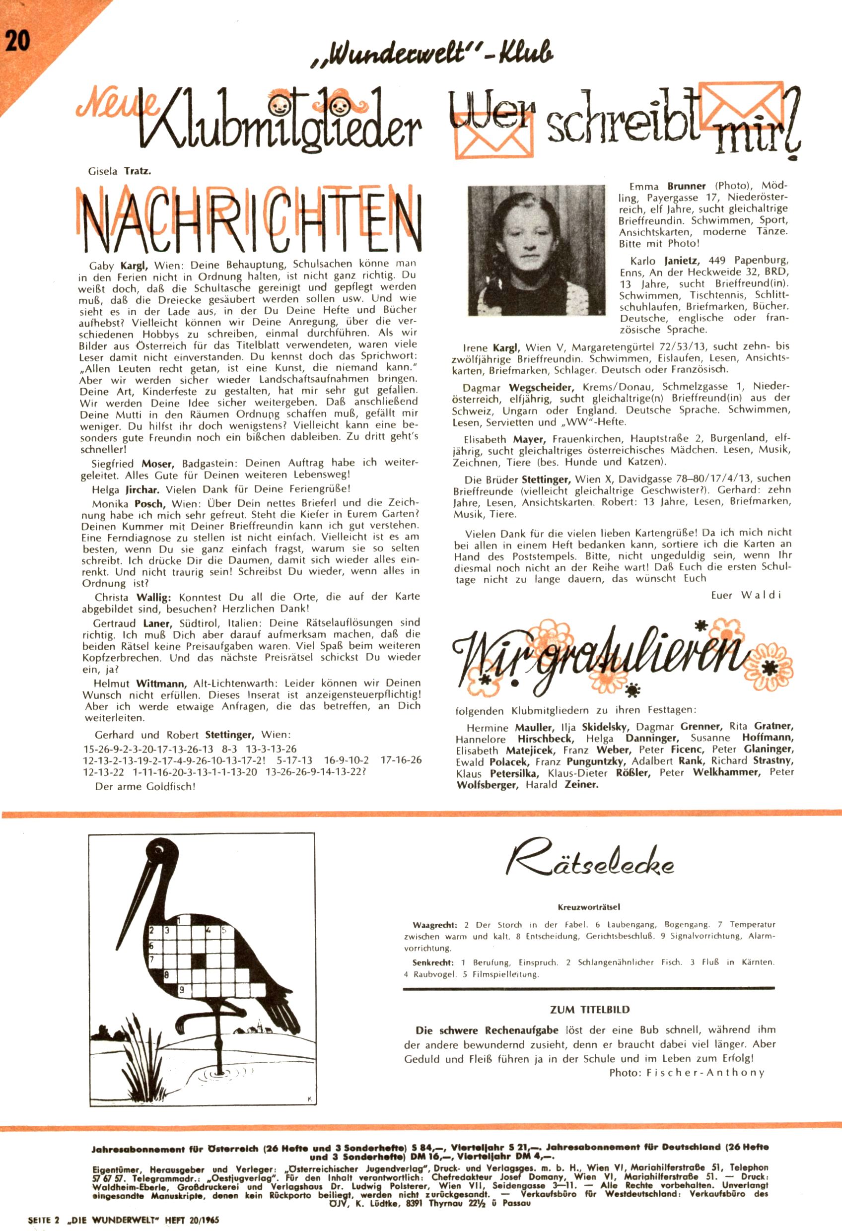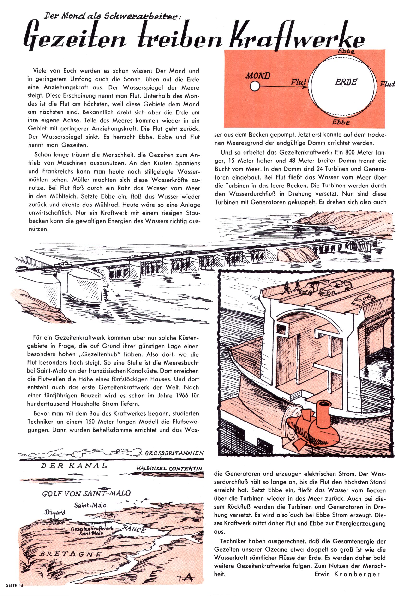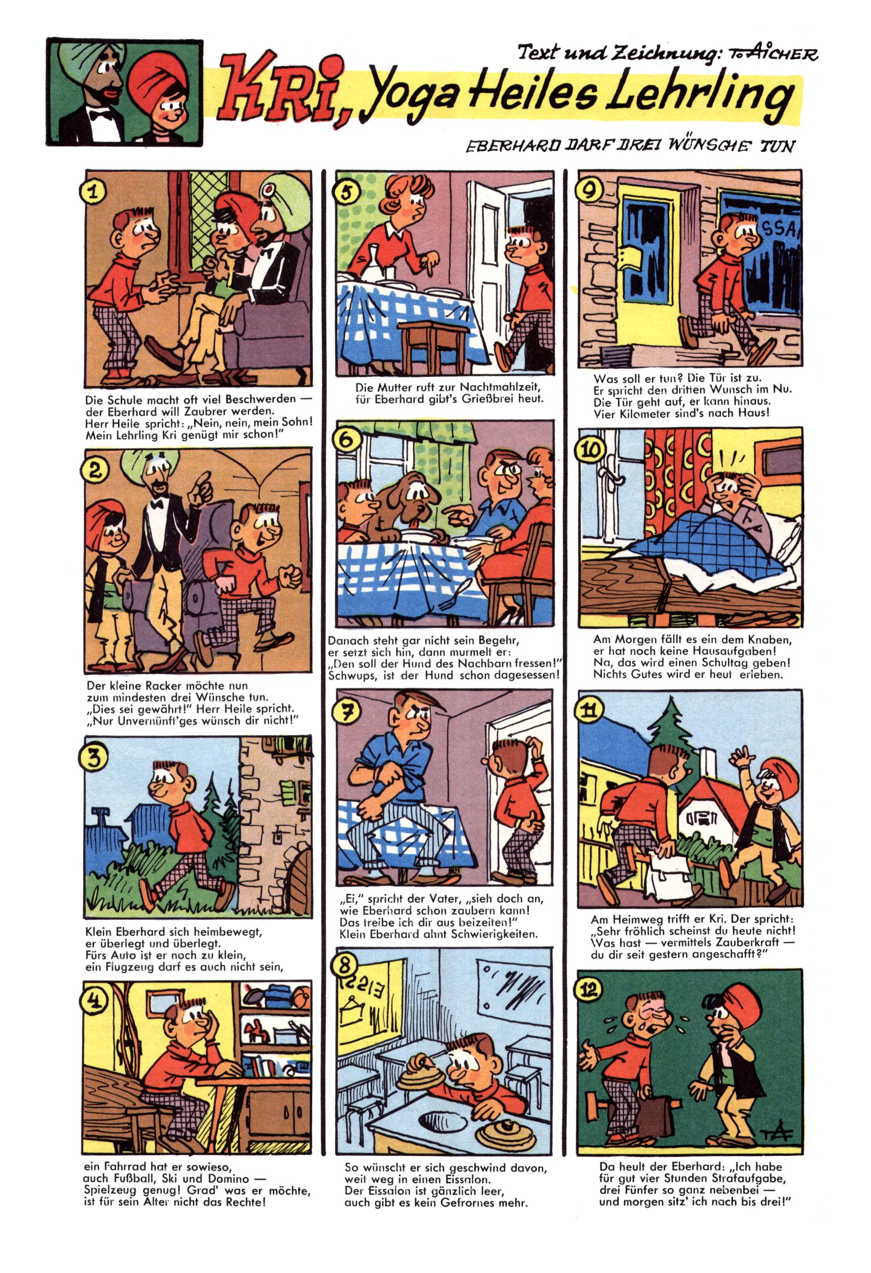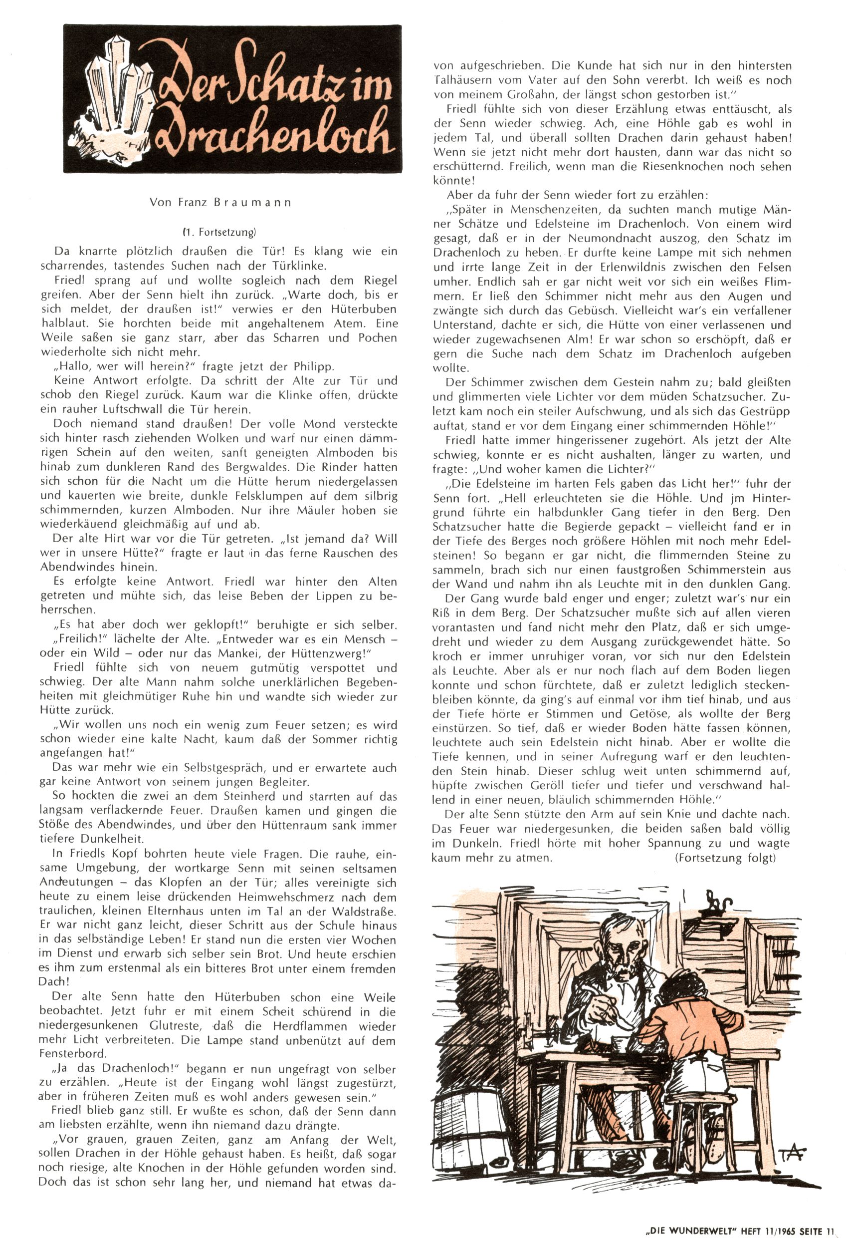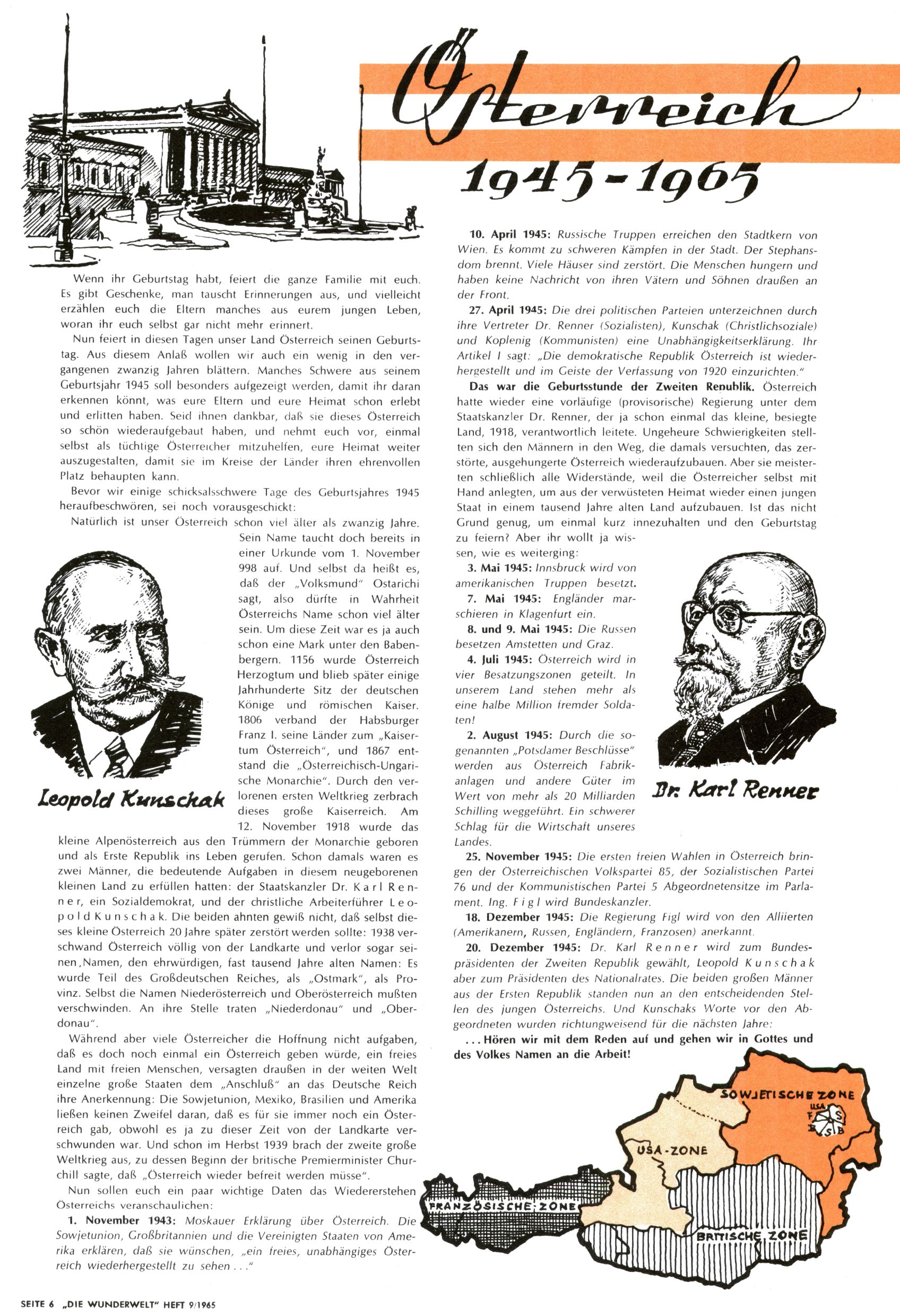 1965 - Die Zeichen der Zeit ignorieren In den Sonderheften hatte man längst umgestellt. In den Standardheften klammerte man sich mit Händen und Füßen an das Altbewährte. Ein einziges Mal bekam Gudrun Groh-Götzinger 1965 die Chance, ihren modenernen Zeichenstil in einem Mittelmärchen umsetzen zu können. Teja Aicher setzte seine Nachbildungen historischer Gebäude fort und startete eine neue Serie über Bauernhöfe in Österreich. Neben seinen beiden Comicserien Zwerg Bumsti und Kri, der Zauberlehrling gestaltete er nach wie vor die Technikseite. Zusammen mit Rosl Warzilek, die nach 5 Jahren Pause erstmals wieder regelmäßig Titelseiten entwerfen durfte, war er für mehr als 50 Prozenz des Heftinhalts verantwortlich. Monica Skidelsky hatte sich ganz auf die Bastelarbeiten für Mädchen verlagert. Daneben waren nach wie vor Lisbeth Hölzl und Gudrun Groh-Götzinger im Einsatz. |