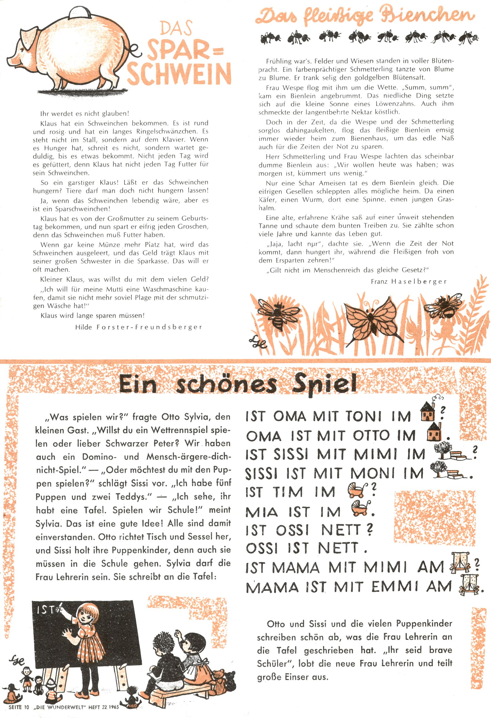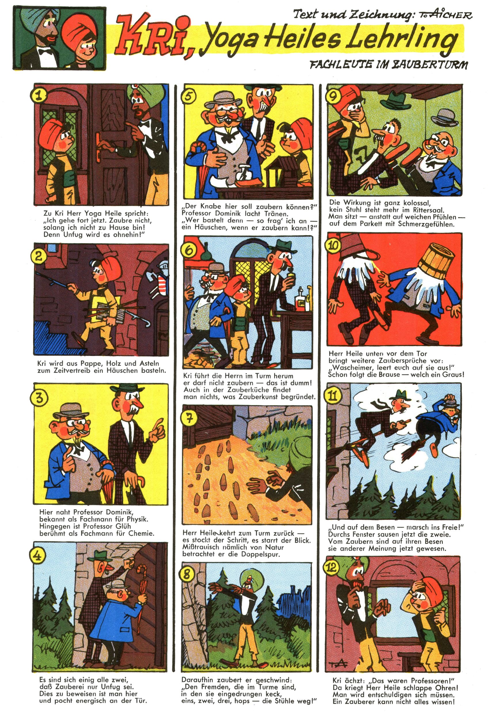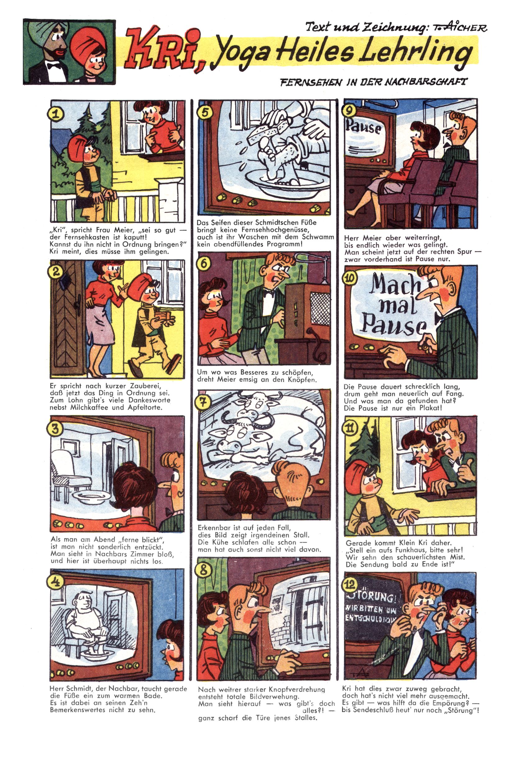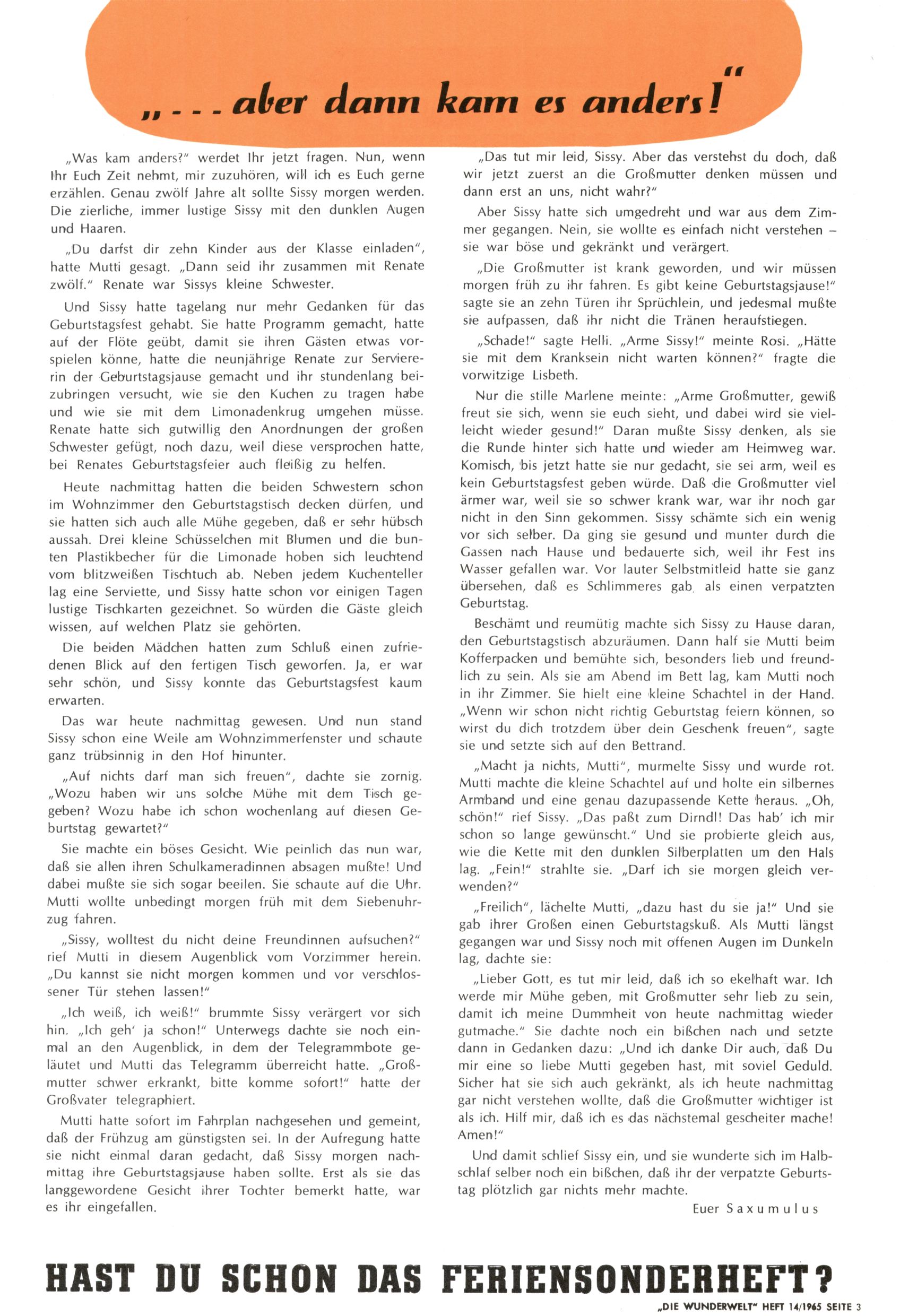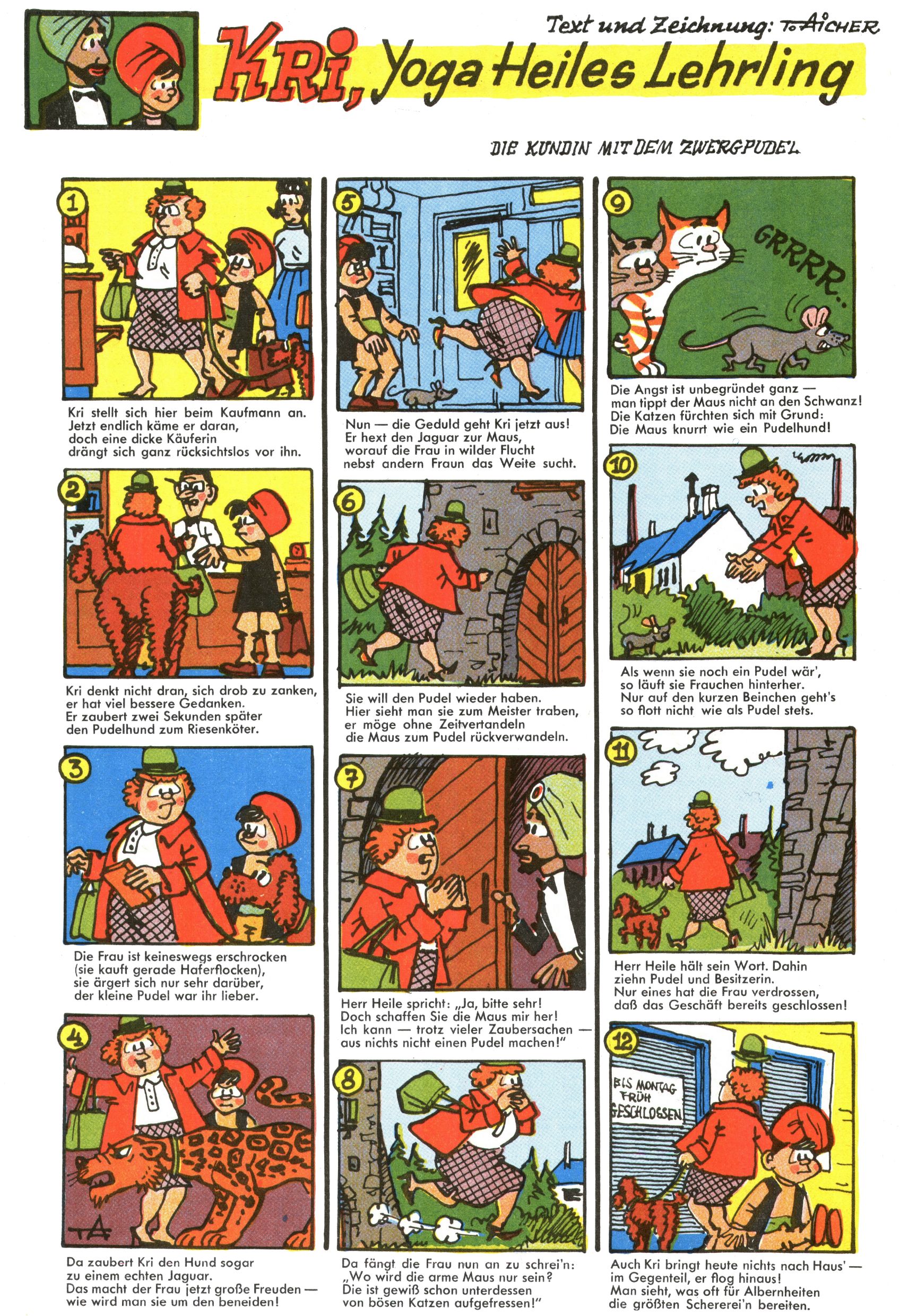 1965 - Die Zeichen der Zeit ignorieren In den Sonderheften hatte man längst umgestellt. In den Standardheften klammerte man sich mit Händen und Füßen an das Altbewährte. Ein einziges Mal bekam Gudrun Groh-Götzinger 1965 die Chance, ihren modenernen Zeichenstil in einem Mittelmärchen umsetzen zu können. Teja Aicher setzte seine Nachbildungen historischer Gebäude fort und startete eine neue Serie über Bauernhöfe in Österreich. Neben seinen beiden Comicserien Zwerg Bumsti und Kri, der Zauberlehrling gestaltete er nach wie vor die Technikseite. Zusammen mit Rosl Warzilek, die nach 5 Jahren Pause erstmals wieder regelmäßig Titelseiten entwerfen durfte, war er für mehr als 50 Prozenz des Heftinhalts verantwortlich. Monica Skidelsky hatte sich ganz auf die Bastelarbeiten für Mädchen verlagert. Daneben waren nach wie vor Lisbeth Hölzl und Gudrun Groh-Götzinger im Einsatz. |