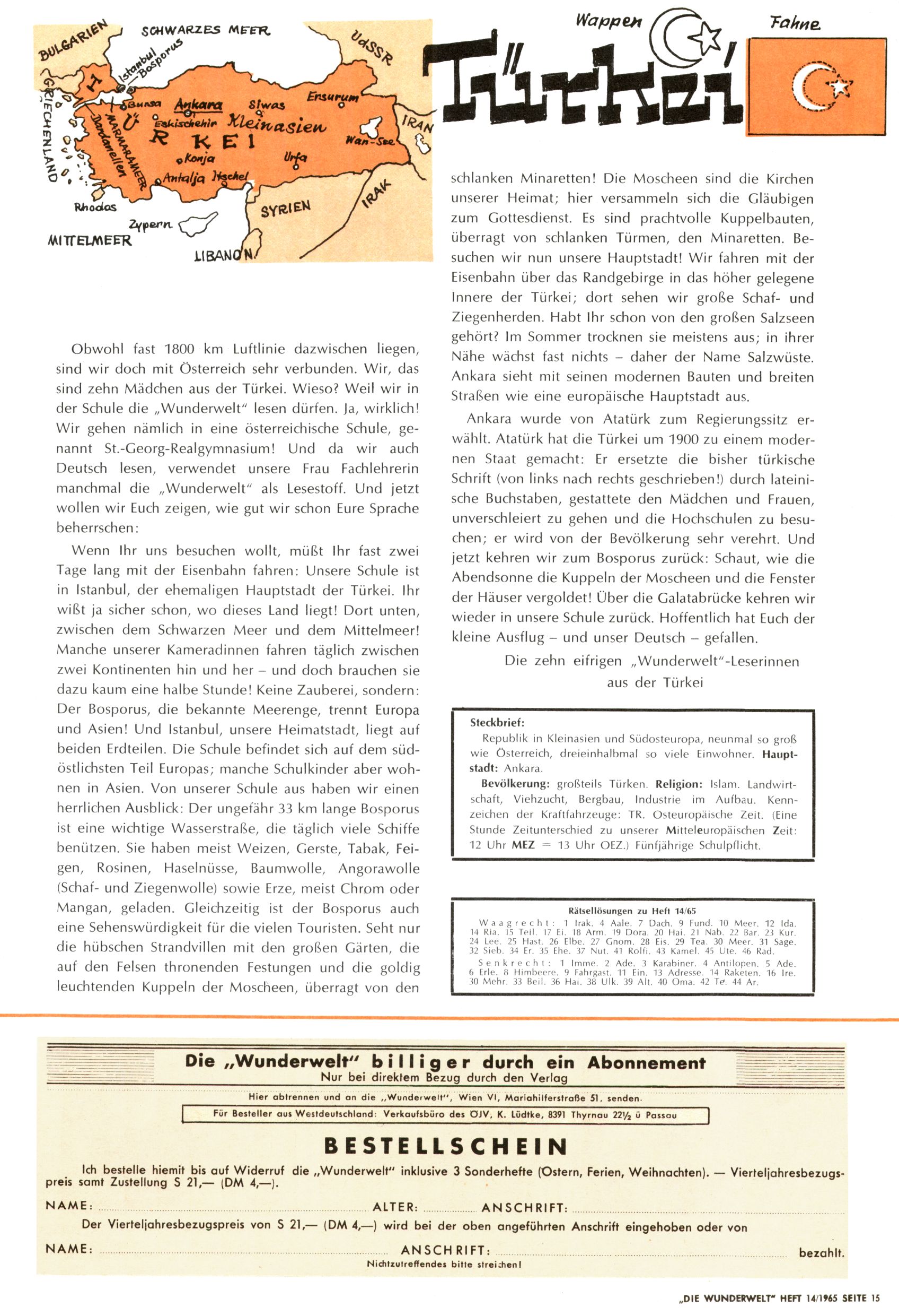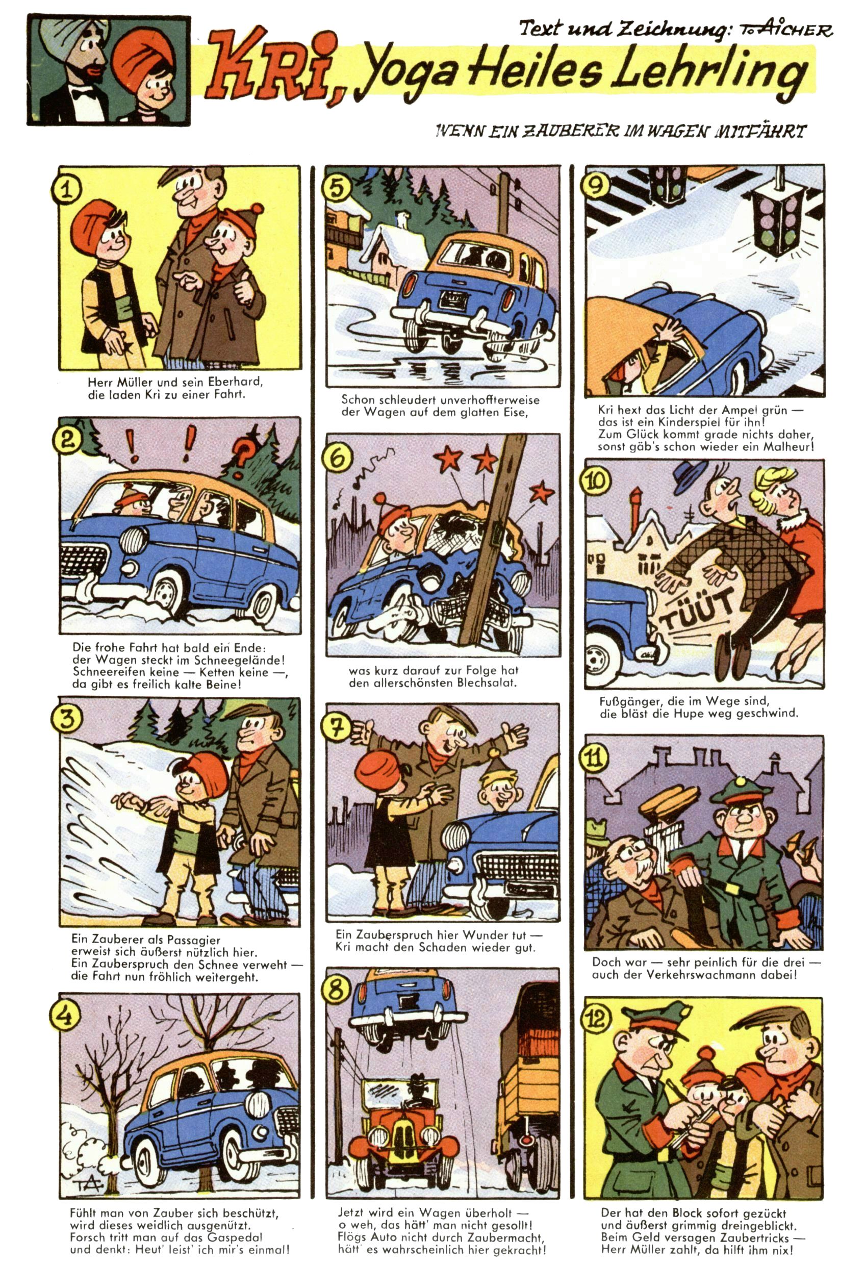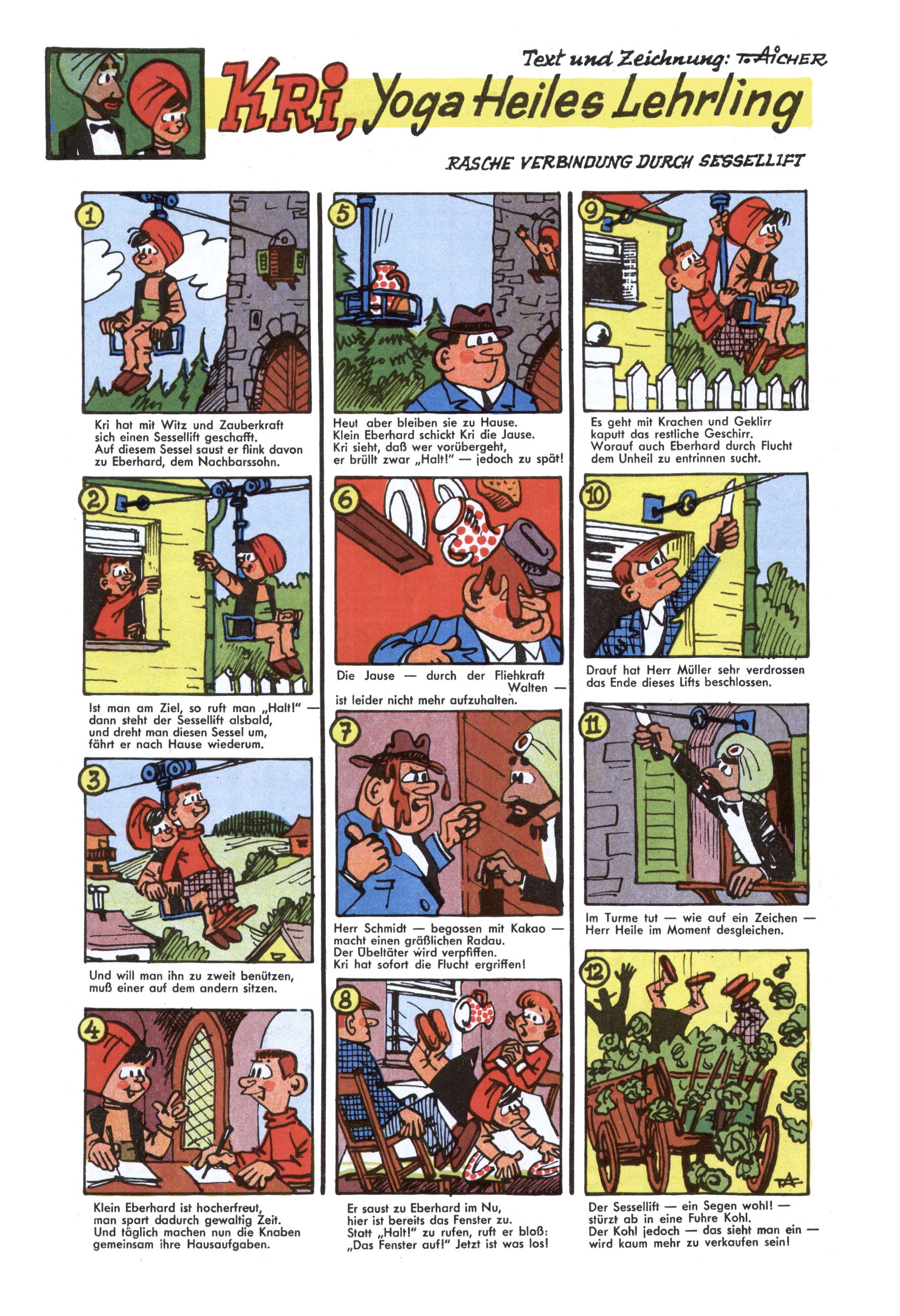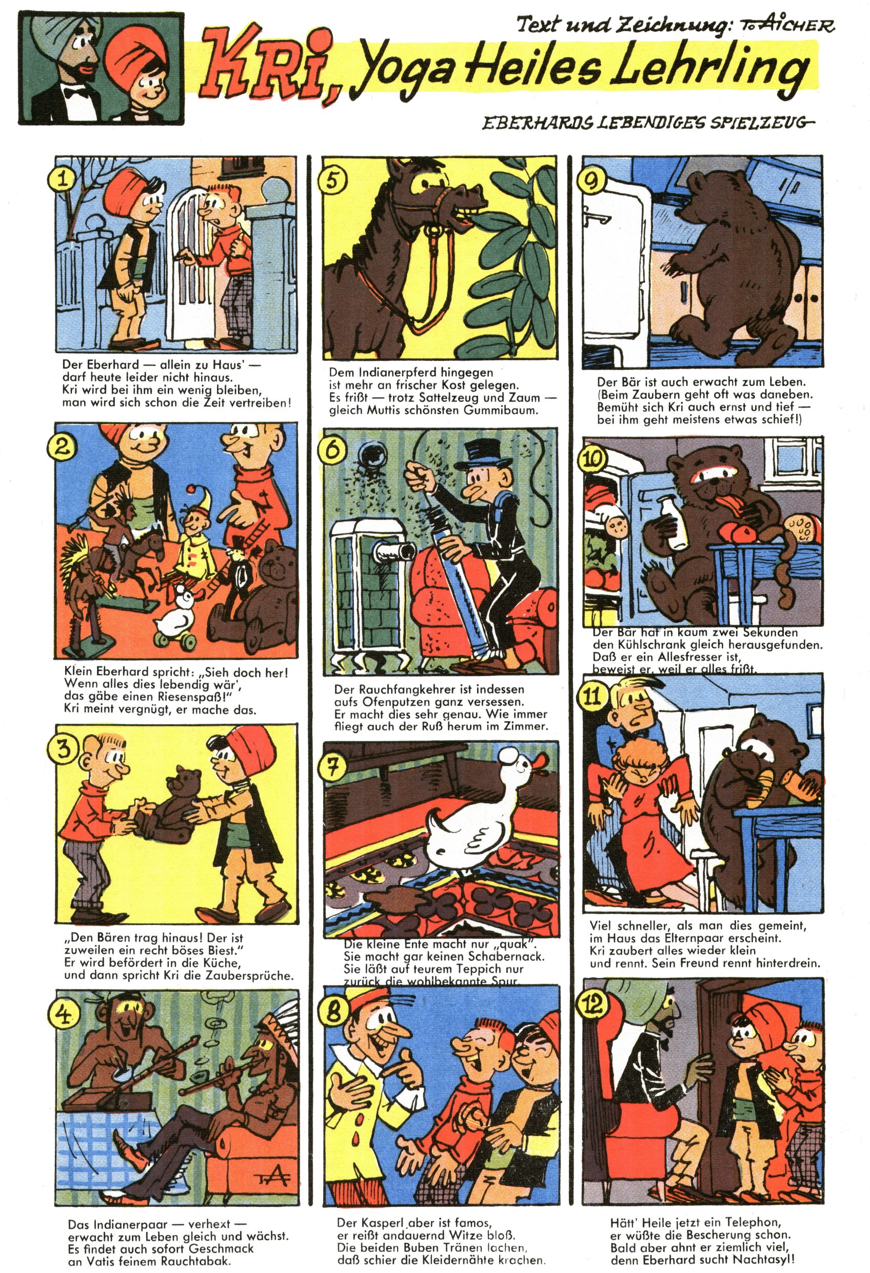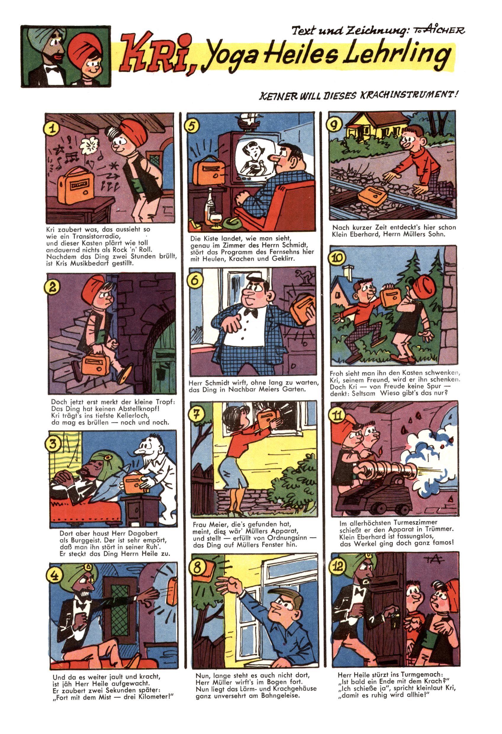 1965 - Die Zeichen der Zeit ignorieren In den Sonderheften hatte man längst umgestellt. In den Standardheften klammerte man sich mit Händen und Füßen an das Altbewährte. Ein einziges Mal bekam Gudrun Groh-Götzinger 1965 die Chance, ihren modenernen Zeichenstil in einem Mittelmärchen umsetzen zu können. Teja Aicher setzte seine Nachbildungen historischer Gebäude fort und startete eine neue Serie über Bauernhöfe in Österreich. Neben seinen beiden Comicserien Zwerg Bumsti und Kri, der Zauberlehrling gestaltete er nach wie vor die Technikseite. Zusammen mit Rosl Warzilek, die nach 5 Jahren Pause erstmals wieder regelmäßig Titelseiten entwerfen durfte, war er für mehr als 50 Prozenz des Heftinhalts verantwortlich. Monica Skidelsky hatte sich ganz auf die Bastelarbeiten für Mädchen verlagert. Daneben waren nach wie vor Lisbeth Hölzl und Gudrun Groh-Götzinger im Einsatz. |