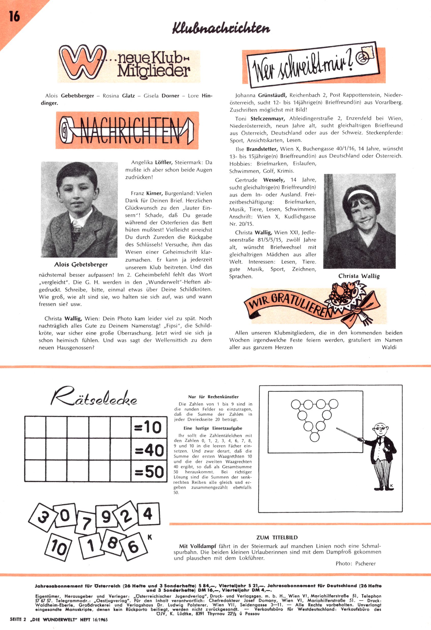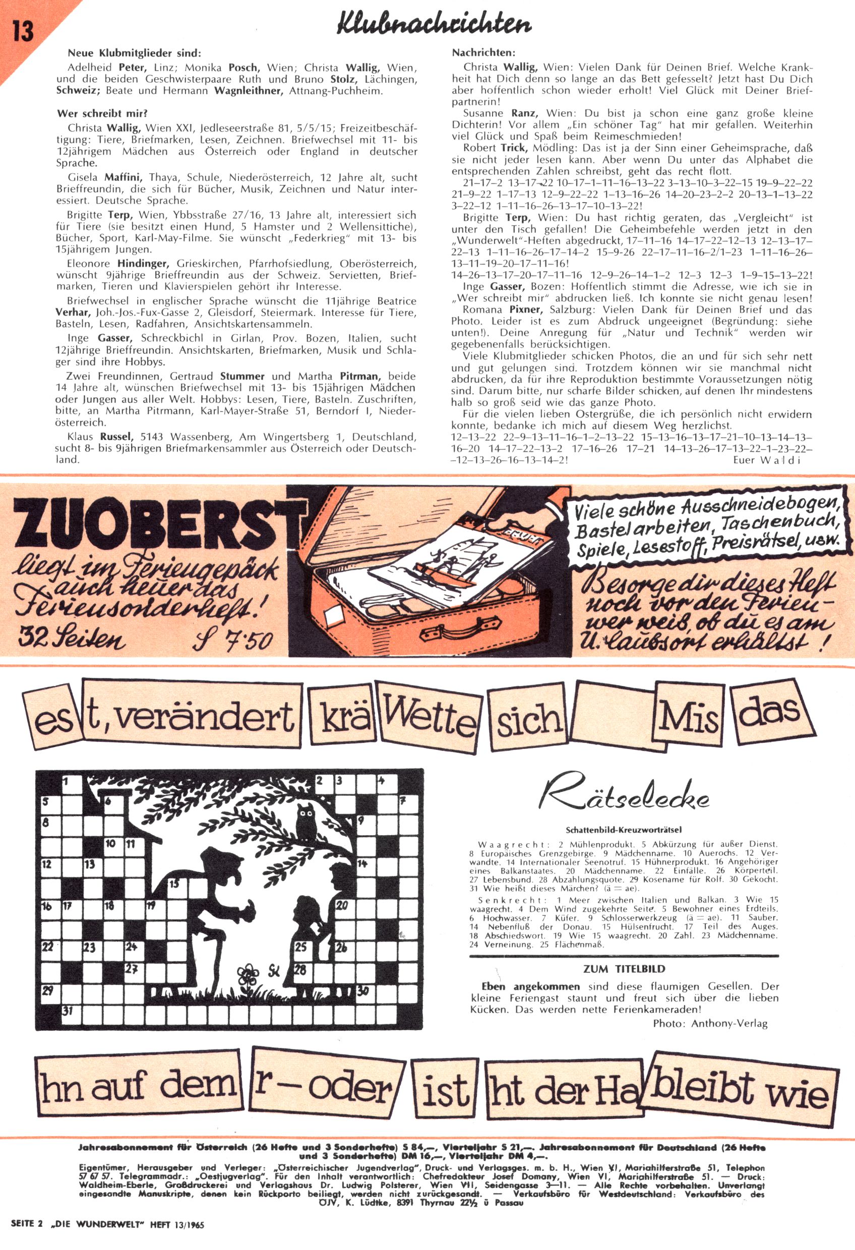 Klubnachrichten / Rätsel (Waldi=Waltraud Domany / CJK) |