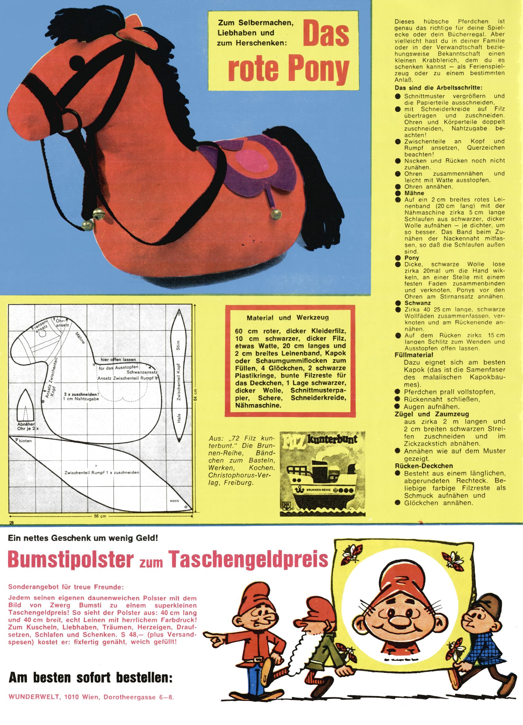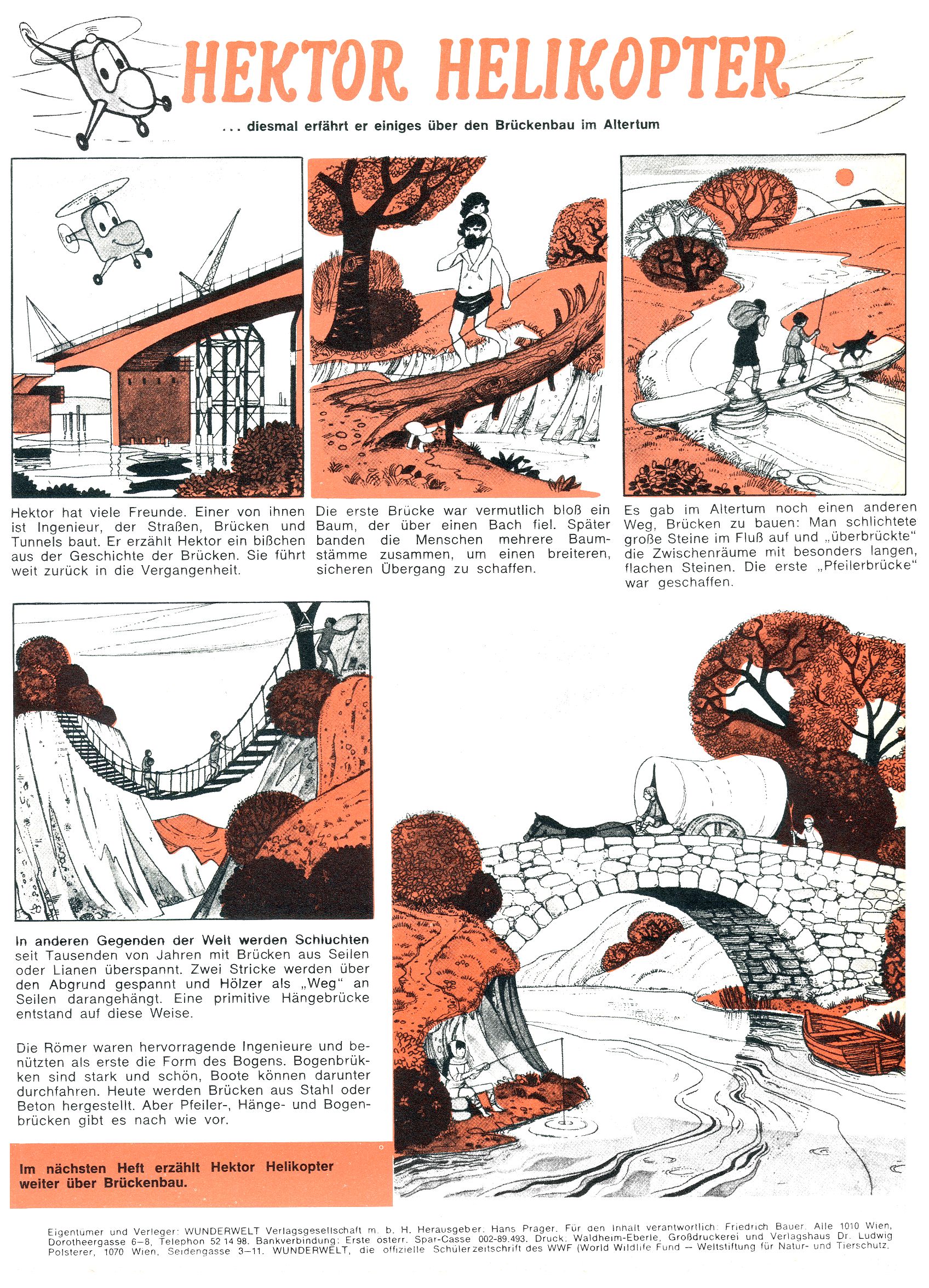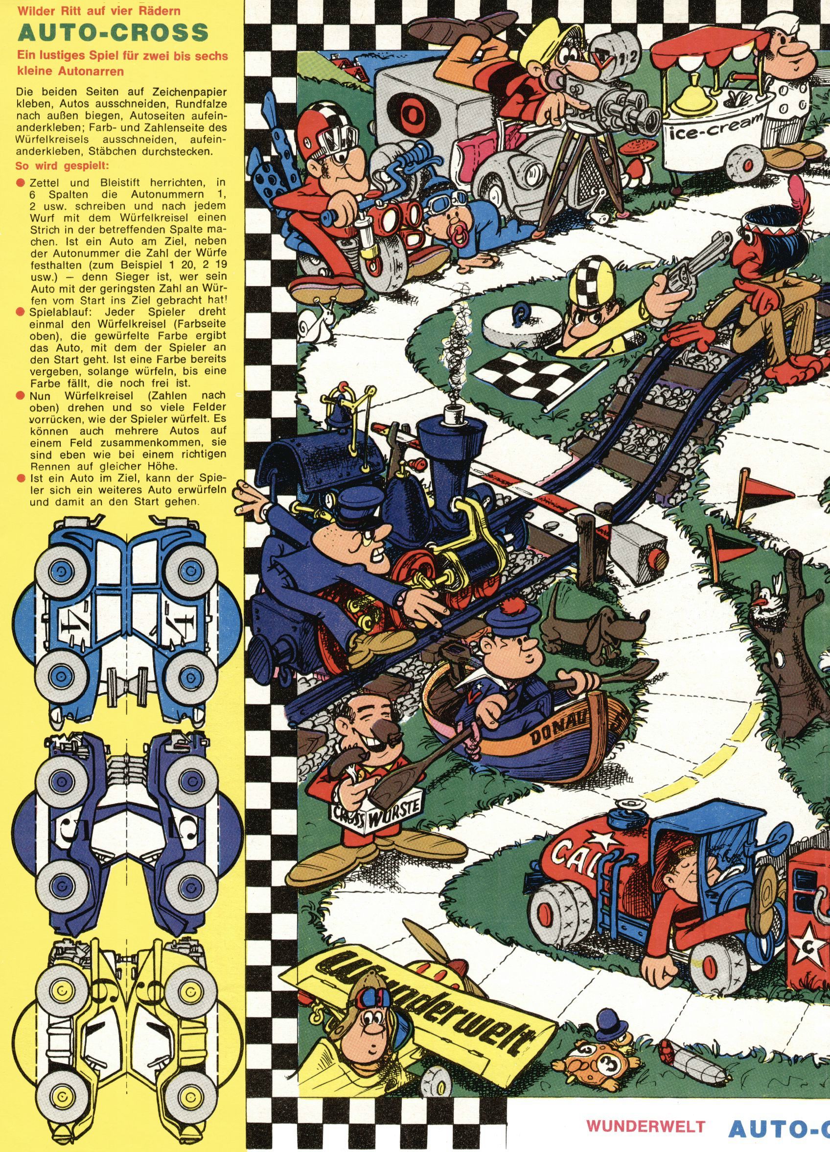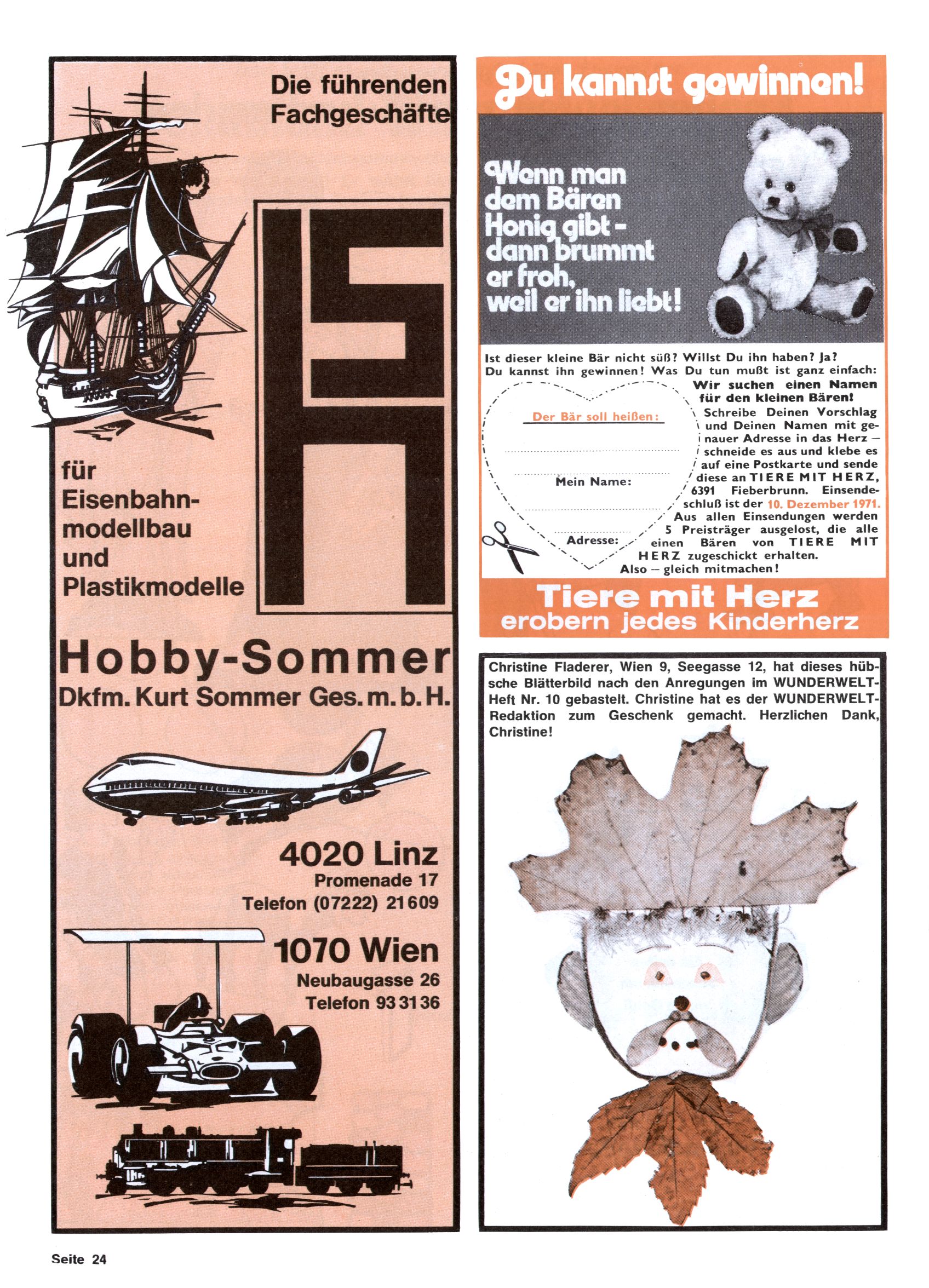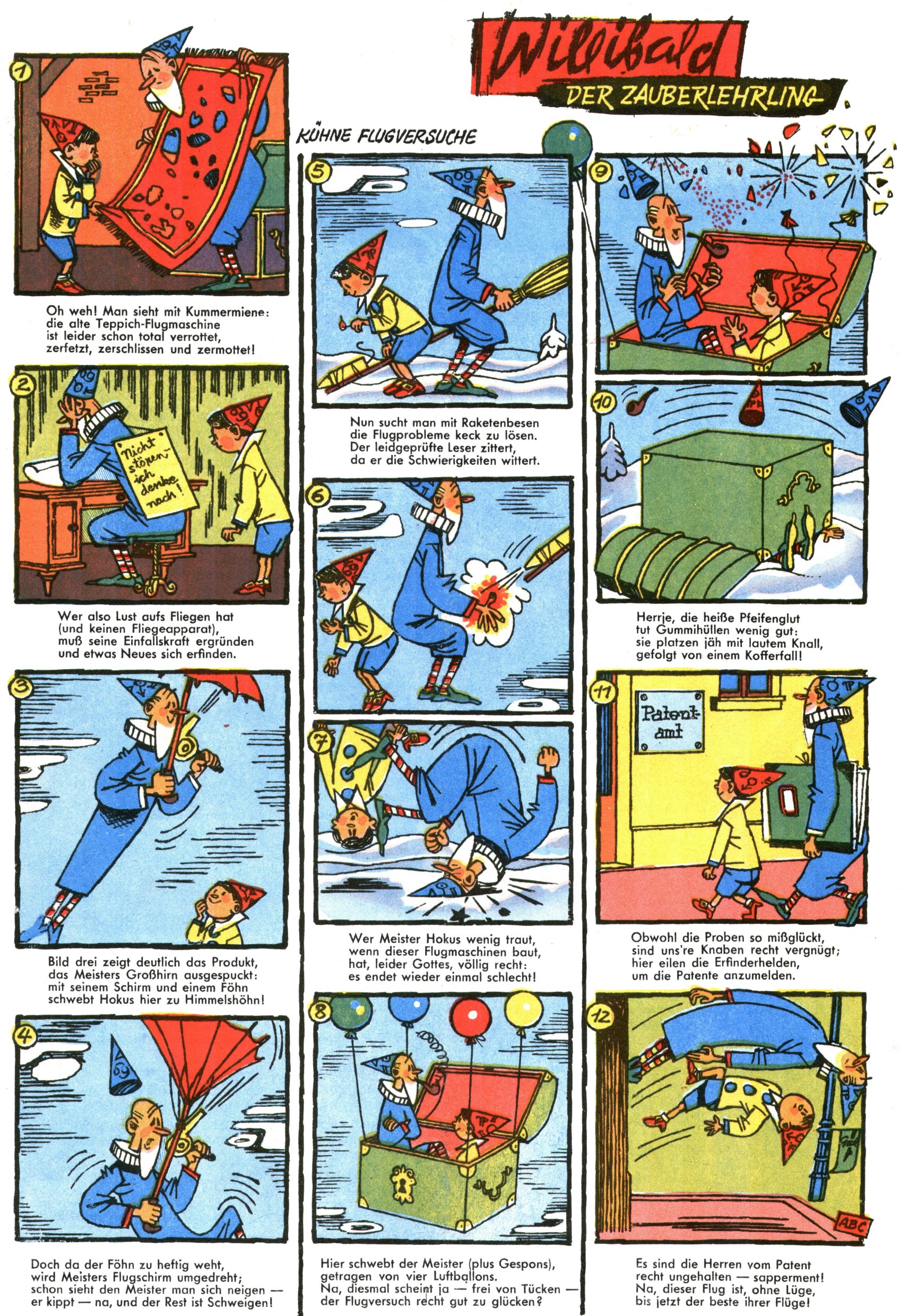 1971 - Rückkehr zur Normalität? 1971 gab es erstmals wieder die geplanten 12 Zeitschriften in einem Jahr. Noch immer war Rosl Warzilek beim Team. Hella Soyka hatte sich mittlerweile eingelebt und auch Christian Raffeiner gehörte bereits dazu. TA Teja Aicher tat, was ihm gerade in den Sinn kam. Im 11. Heft versetzte er seinem Zwerg Bumsti einen neuen Tiefschlag, indem er diesen ab nun durch Sprechblasen kommunizieren ließ. Die Welt von Bumsti war fortan eine andere, in der die Ratten das Sagen hatten. Dies war ganz offensichtlich ein neuer bitterer Zynismus von TA. Aber es sollte noch besser kommen. Mit Perry und Silia schuf TA eine Saubermann-Serie, in der er sich selbst als namenloser Kater die Drecksarbeit machen ließ, während andere den Lohn ernteten. Hätte die Redaktionsleitung TAs Sarkasmus durchschaut, hätte dieser wohl längst seine Sachen packen dürfen. Aber so konnte TA seinen heimlichen Rachefeldzug ungehindert fortsetzen. Die Wunderwelt agierte um 1971 als Sprachrohr des WWF. Neben viel Werbung gab es eine Serie über das auch nicht mehr ganz zeitgemäße Briefmarkensammeln und einen Melodica-Kurs. In einem Akt der Verzweiflung wurde Mitte 1971 nochmals Willibald der Zauberlehrling ins Leben gerufen. Natürlich nur mit alten Abenteuern, denn Willibalds wahrer Meister Peter Paul Prinz hatte der Wunderwelt längst den Rücken gekehrt. Im Advent- und im Weihnachtsheft fand sich dann eine überraschende Anzahl von guten Bastelideen nach alter Tradition. Hatte die Wunderwelt doch noch eine Chance? |
