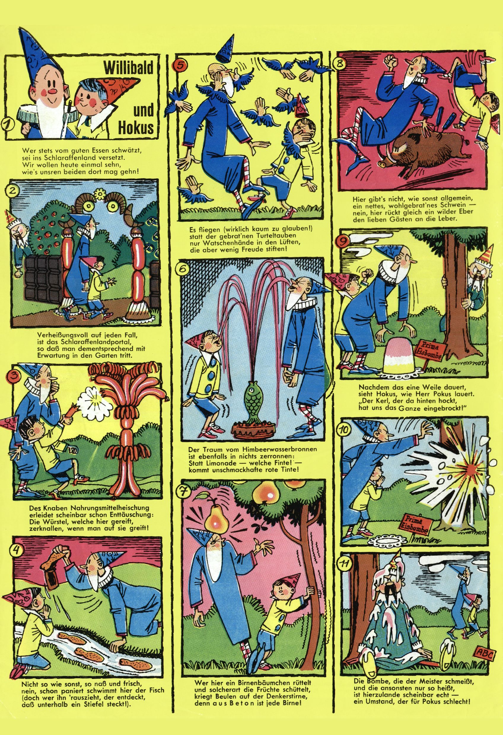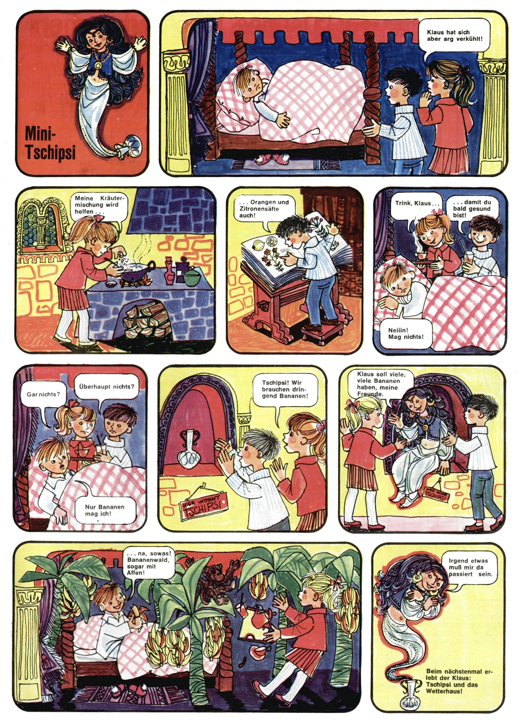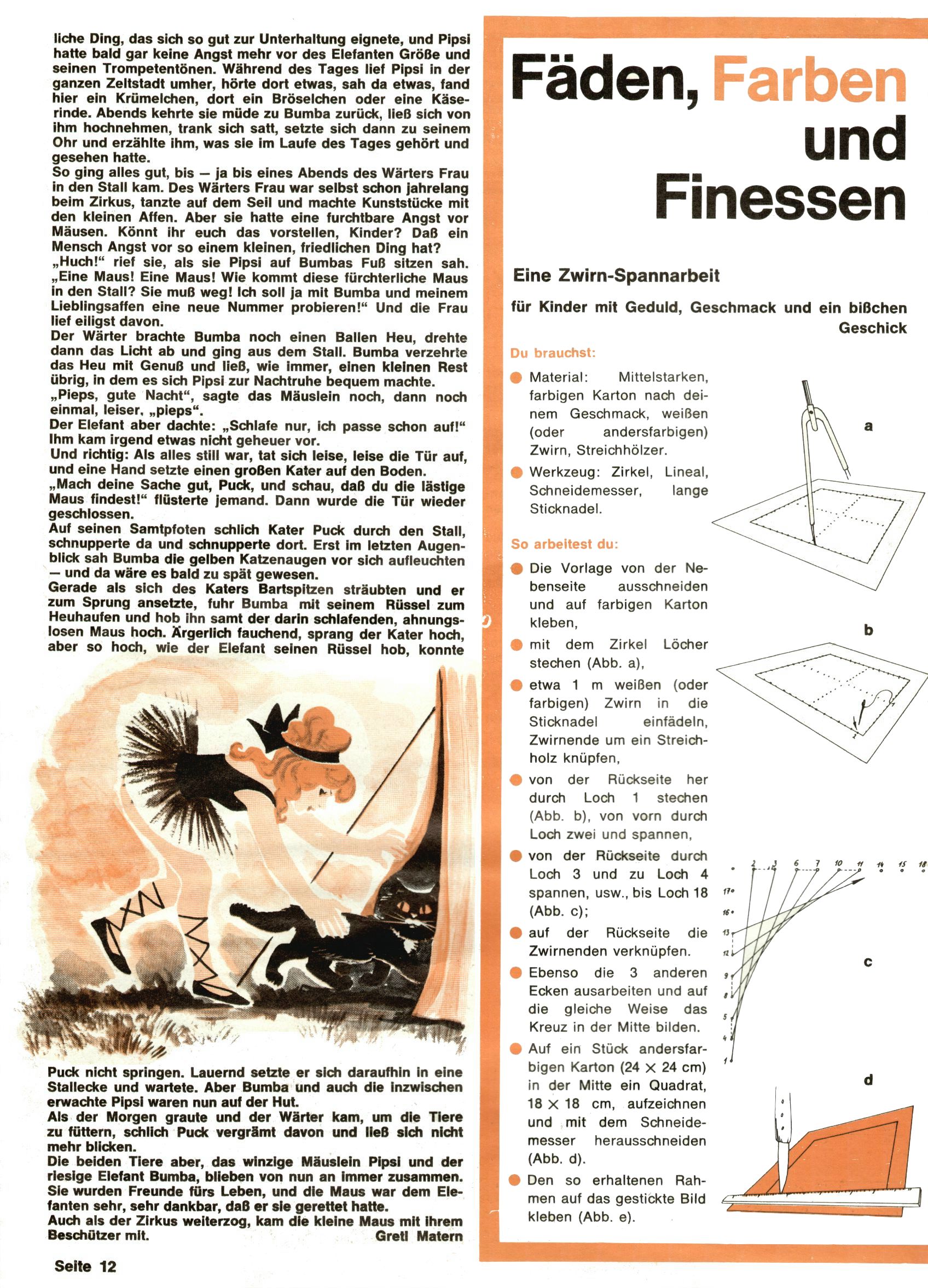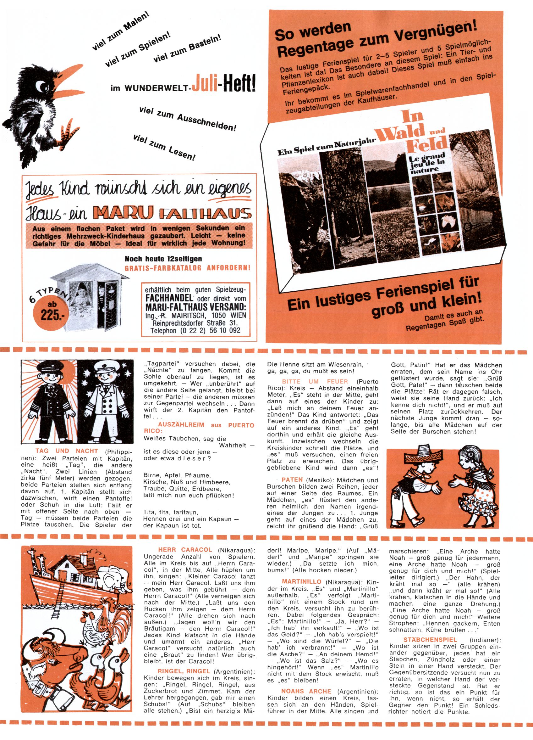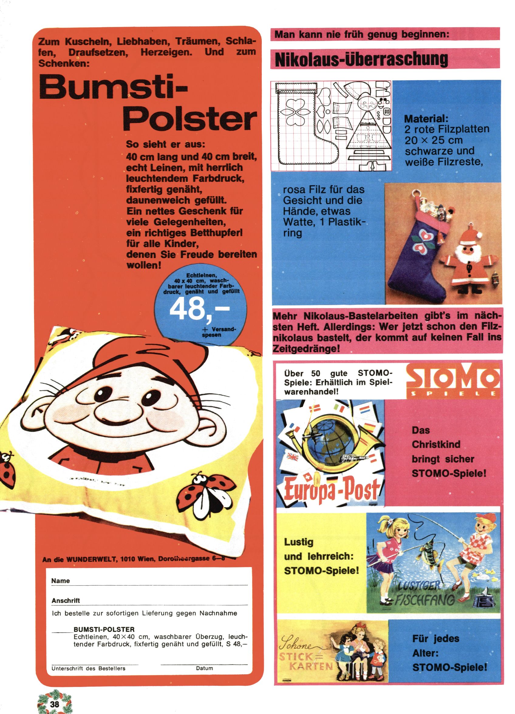 1971 - Rückkehr zur Normalität? 1971 gab es erstmals wieder die geplanten 12 Zeitschriften in einem Jahr. Noch immer war Rosl Warzilek beim Team. Hella Soyka hatte sich mittlerweile eingelebt und auch Christian Raffeiner gehörte bereits dazu. TA Teja Aicher tat, was ihm gerade in den Sinn kam. Im 11. Heft versetzte er seinem Zwerg Bumsti einen neuen Tiefschlag, indem er diesen ab nun durch Sprechblasen kommunizieren ließ. Die Welt von Bumsti war fortan eine andere, in der die Ratten das Sagen hatten. Dies war ganz offensichtlich ein neuer bitterer Zynismus von TA. Aber es sollte noch besser kommen. Mit Perry und Silia schuf TA eine Saubermann-Serie, in der er sich selbst als namenloser Kater die Drecksarbeit machen ließ, während andere den Lohn ernteten. Hätte die Redaktionsleitung TAs Sarkasmus durchschaut, hätte dieser wohl längst seine Sachen packen dürfen. Aber so konnte TA seinen heimlichen Rachefeldzug ungehindert fortsetzen. Die Wunderwelt agierte um 1971 als Sprachrohr des WWF. Neben viel Werbung gab es eine Serie über das auch nicht mehr ganz zeitgemäße Briefmarkensammeln und einen Melodica-Kurs. In einem Akt der Verzweiflung wurde Mitte 1971 nochmals Willibald der Zauberlehrling ins Leben gerufen. Natürlich nur mit alten Abenteuern, denn Willibalds wahrer Meister Peter Paul Prinz hatte der Wunderwelt längst den Rücken gekehrt. Im Advent- und im Weihnachtsheft fand sich dann eine überraschende Anzahl von guten Bastelideen nach alter Tradition. Hatte die Wunderwelt doch noch eine Chance? |