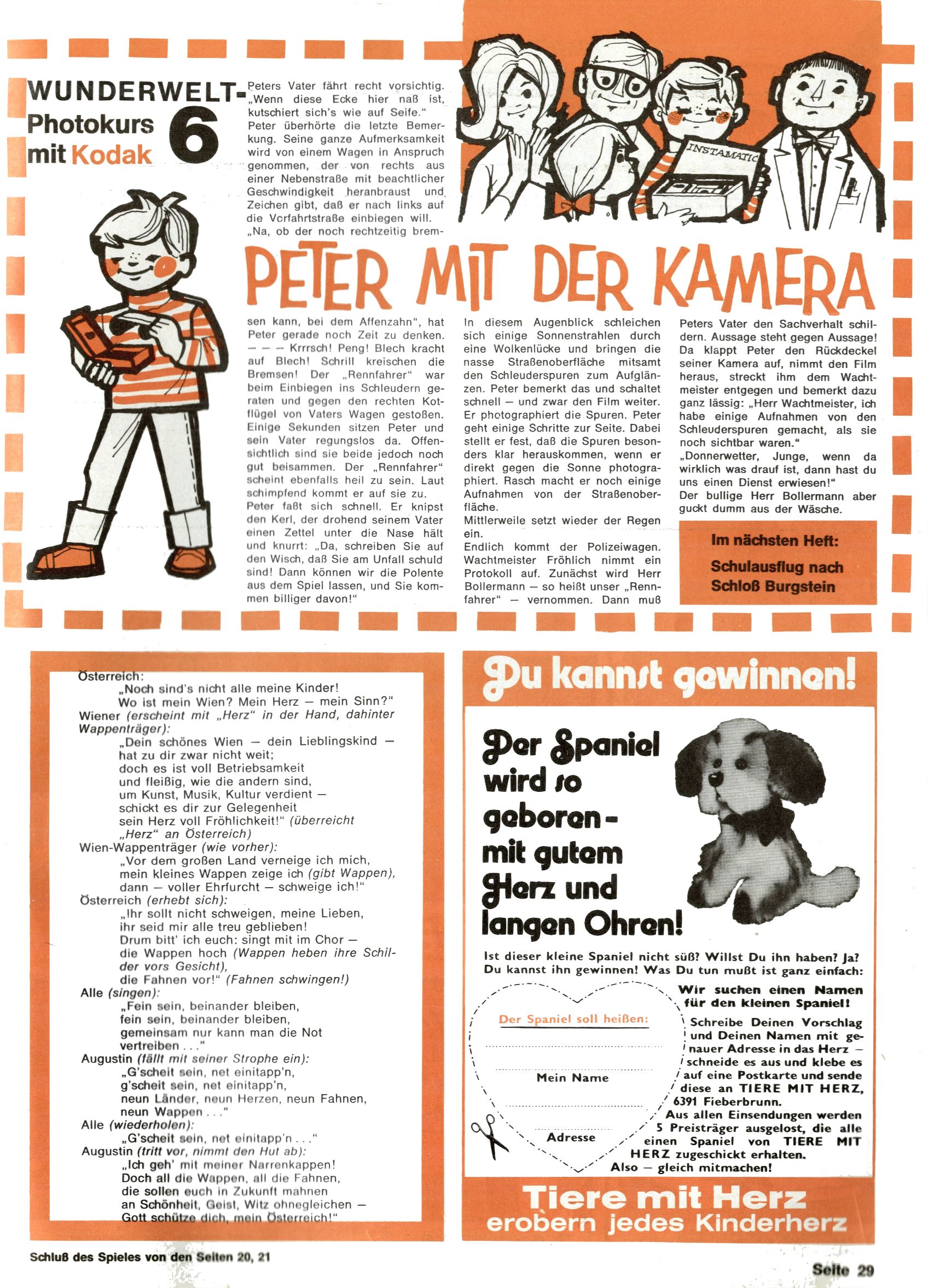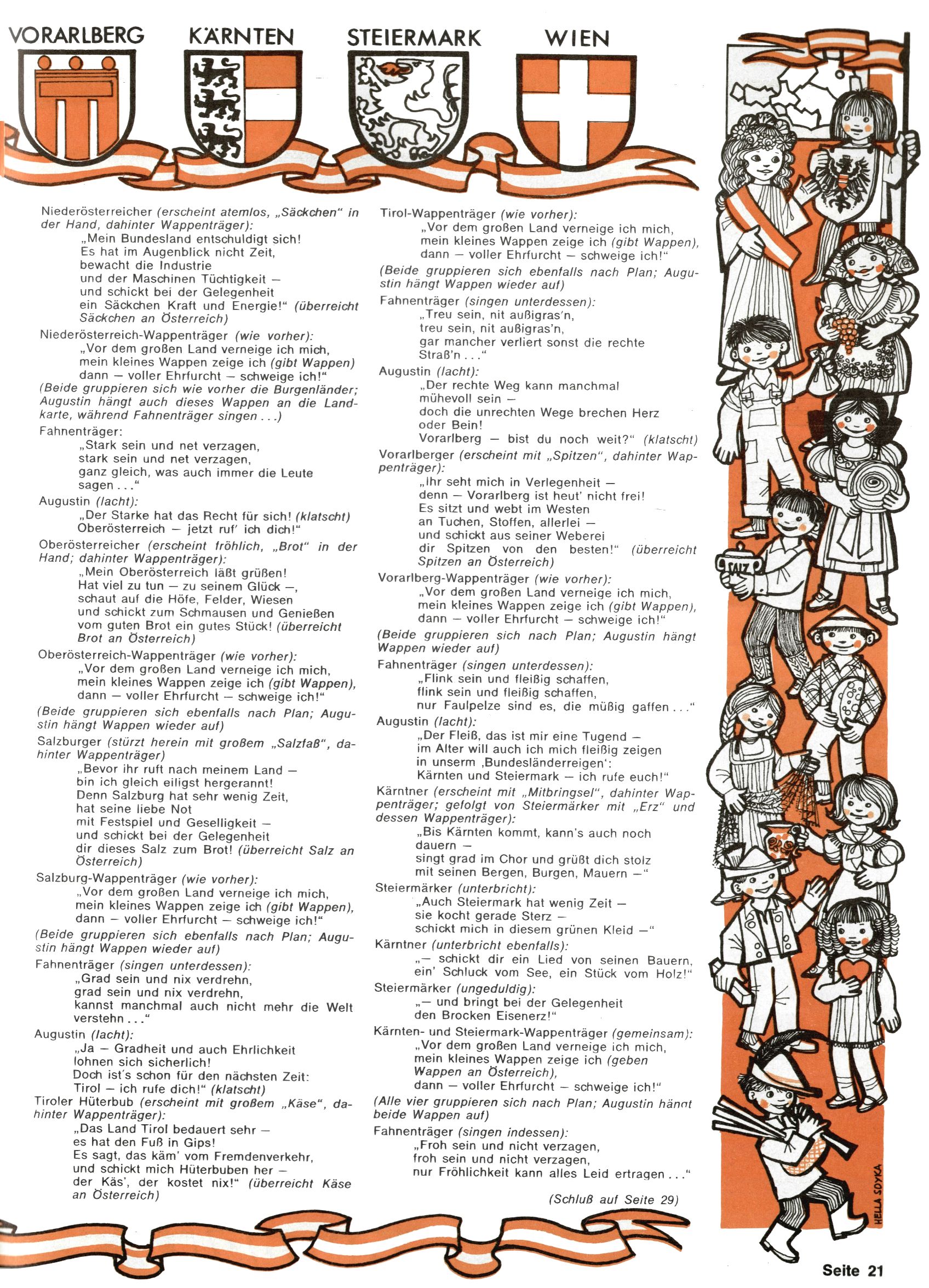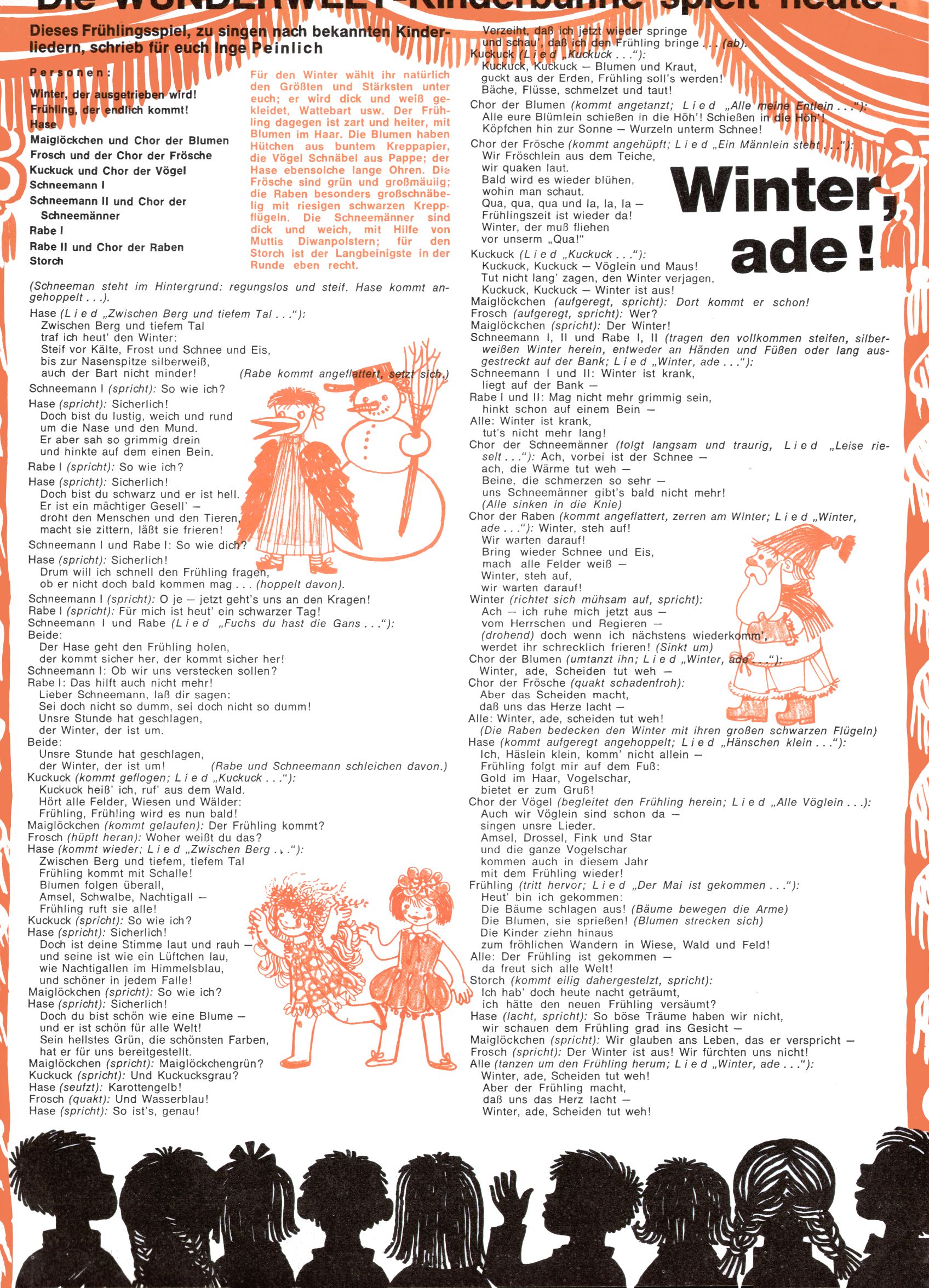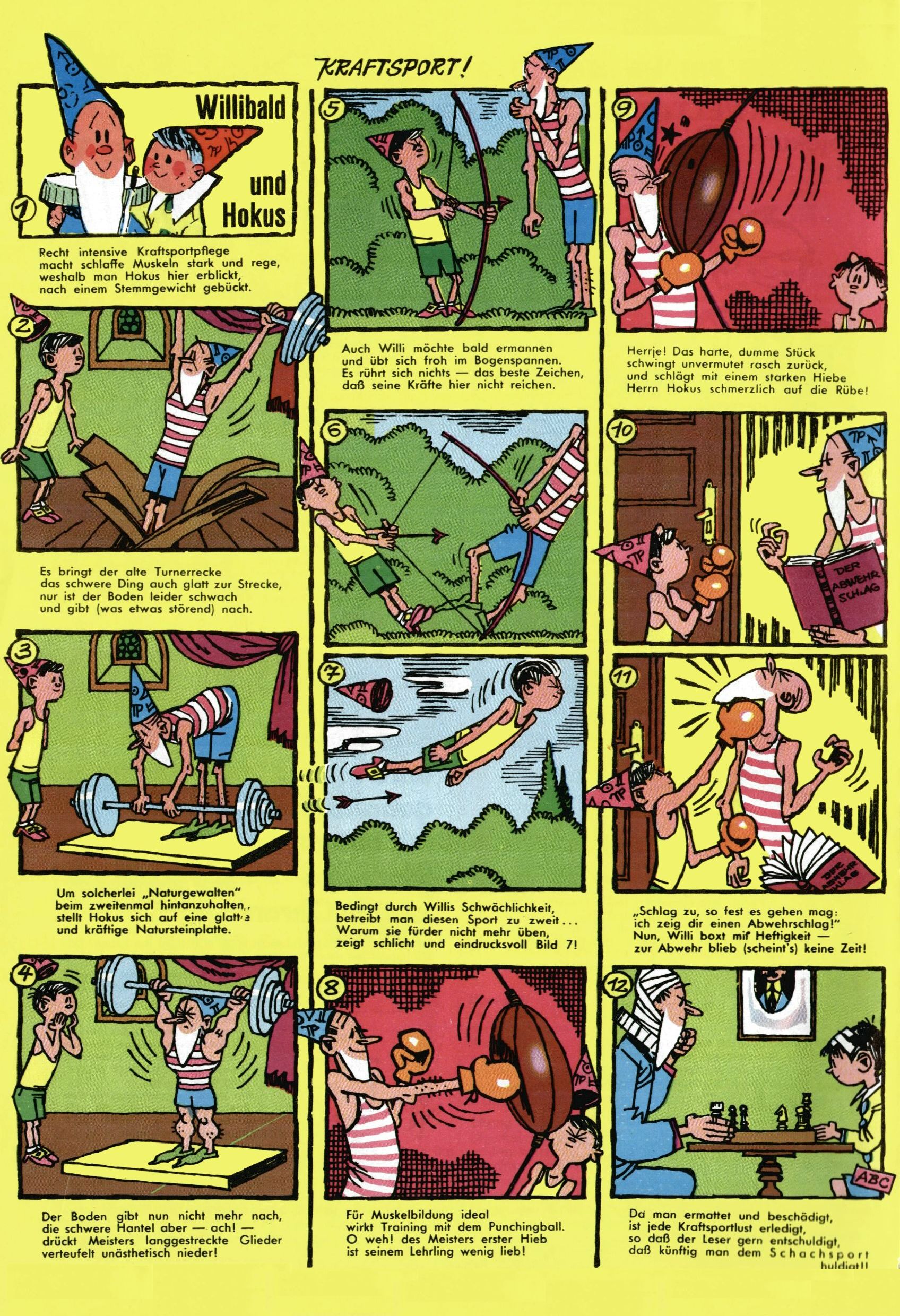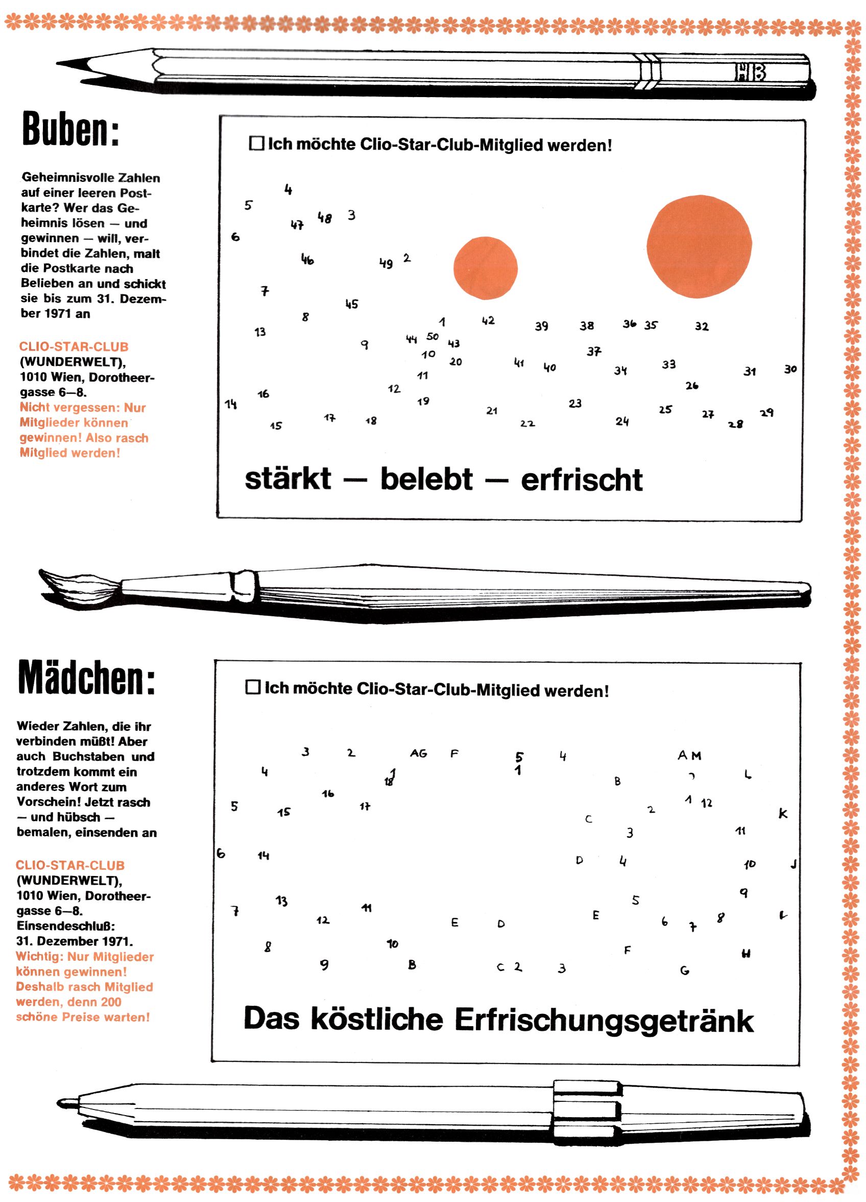 1971 - Rückkehr zur Normalität? 1971 gab es erstmals wieder die geplanten 12 Zeitschriften in einem Jahr. Noch immer war Rosl Warzilek beim Team. Hella Soyka hatte sich mittlerweile eingelebt und auch Christian Raffeiner gehörte bereits dazu. TA Teja Aicher tat, was ihm gerade in den Sinn kam. Im 11. Heft versetzte er seinem Zwerg Bumsti einen neuen Tiefschlag, indem er diesen ab nun durch Sprechblasen kommunizieren ließ. Die Welt von Bumsti war fortan eine andere, in der die Ratten das Sagen hatten. Dies war ganz offensichtlich ein neuer bitterer Zynismus von TA. Aber es sollte noch besser kommen. Mit Perry und Silia schuf TA eine Saubermann-Serie, in der er sich selbst als namenloser Kater die Drecksarbeit machen ließ, während andere den Lohn ernteten. Hätte die Redaktionsleitung TAs Sarkasmus durchschaut, hätte dieser wohl längst seine Sachen packen dürfen. Aber so konnte TA seinen heimlichen Rachefeldzug ungehindert fortsetzen. Die Wunderwelt agierte um 1971 als Sprachrohr des WWF. Neben viel Werbung gab es eine Serie über das auch nicht mehr ganz zeitgemäße Briefmarkensammeln und einen Melodica-Kurs. In einem Akt der Verzweiflung wurde Mitte 1971 nochmals Willibald der Zauberlehrling ins Leben gerufen. Natürlich nur mit alten Abenteuern, denn Willibalds wahrer Meister Peter Paul Prinz hatte der Wunderwelt längst den Rücken gekehrt. Im Advent- und im Weihnachtsheft fand sich dann eine überraschende Anzahl von guten Bastelideen nach alter Tradition. Hatte die Wunderwelt doch noch eine Chance? |