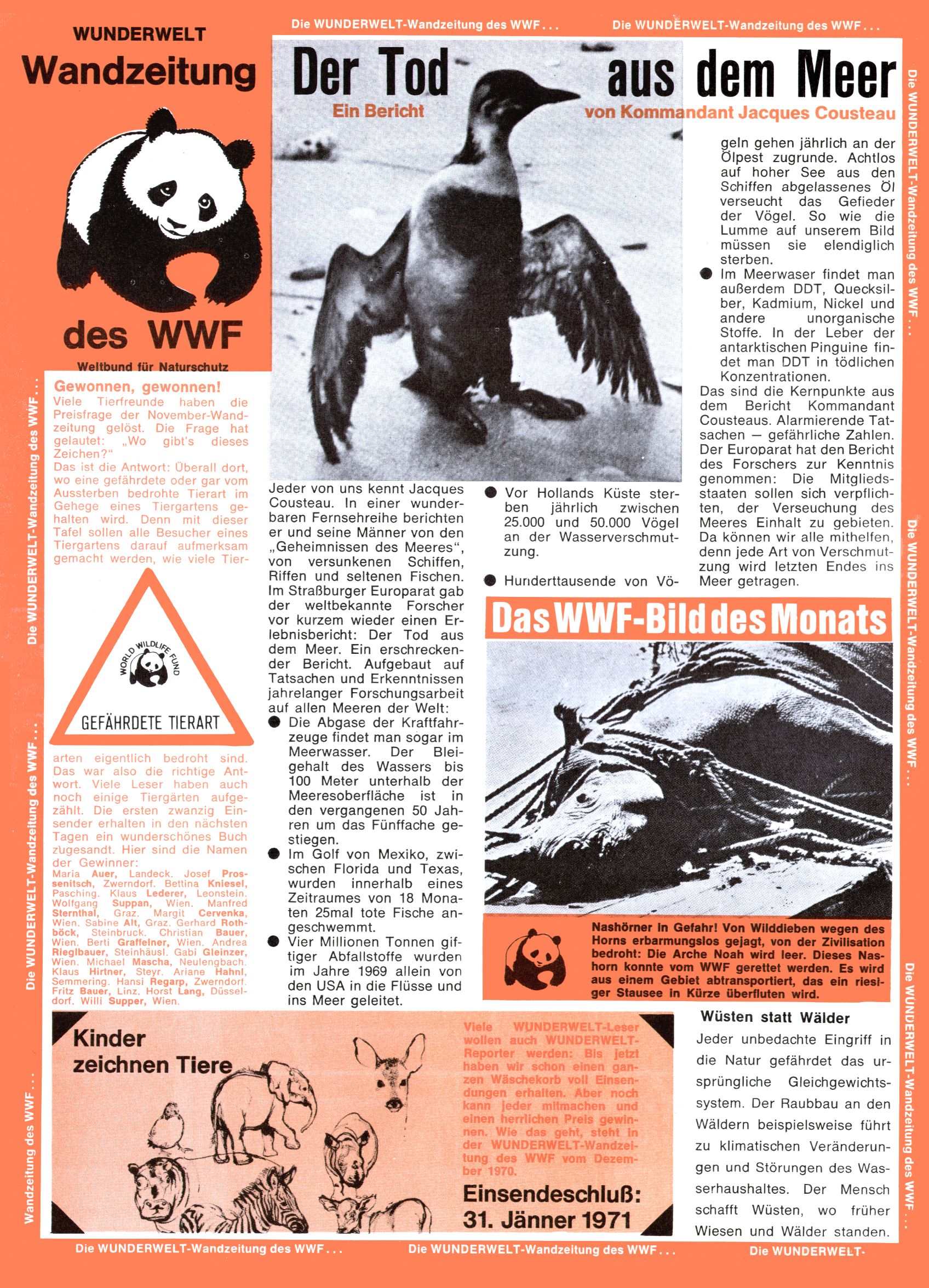 Wandzeitung des WWF / Der Tod aus dem Meer / Kinder zeichnen Tiere |