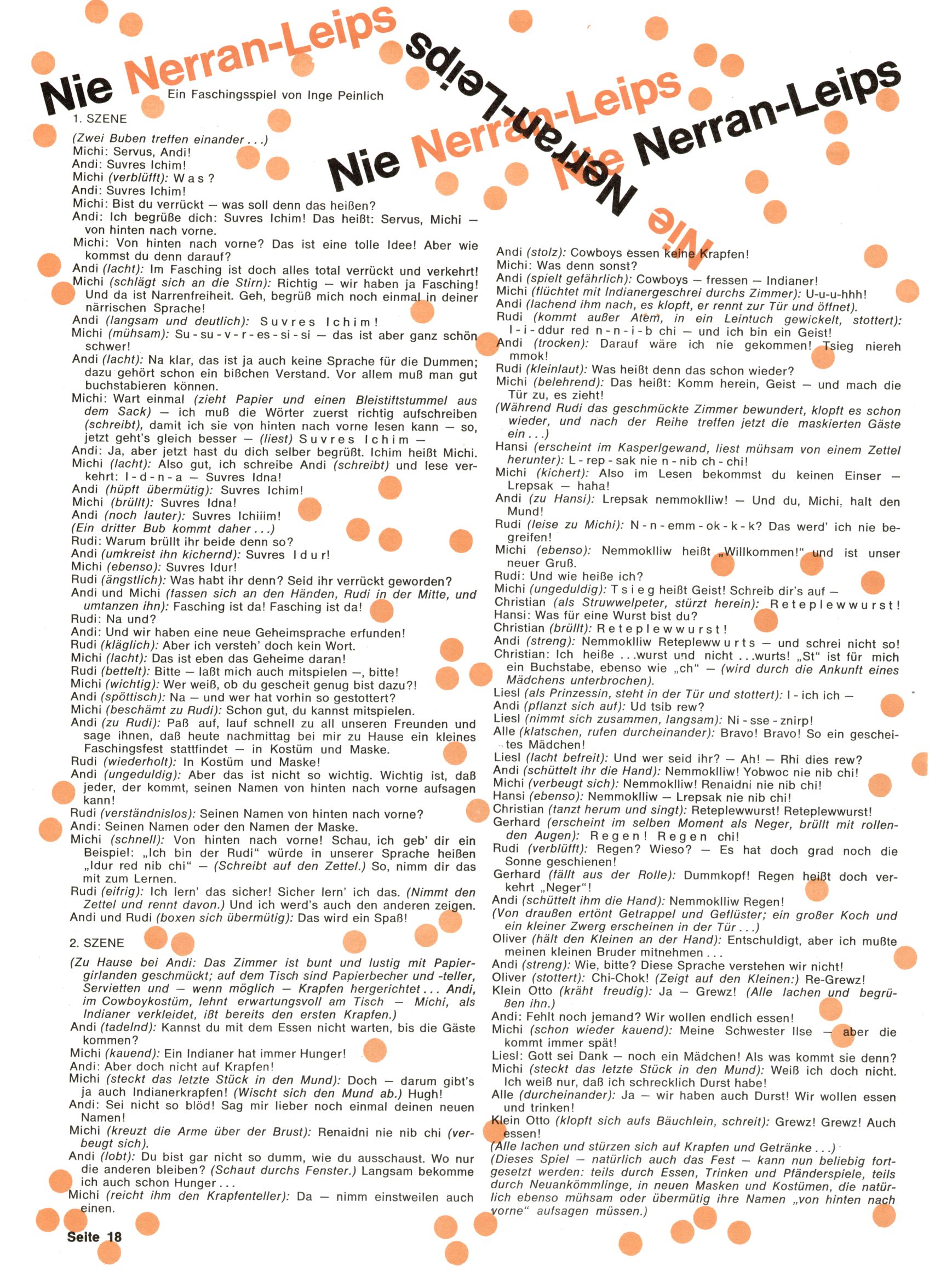 Nie Nerran Leips (Faschingsspiel) (Inge Peinlich) |