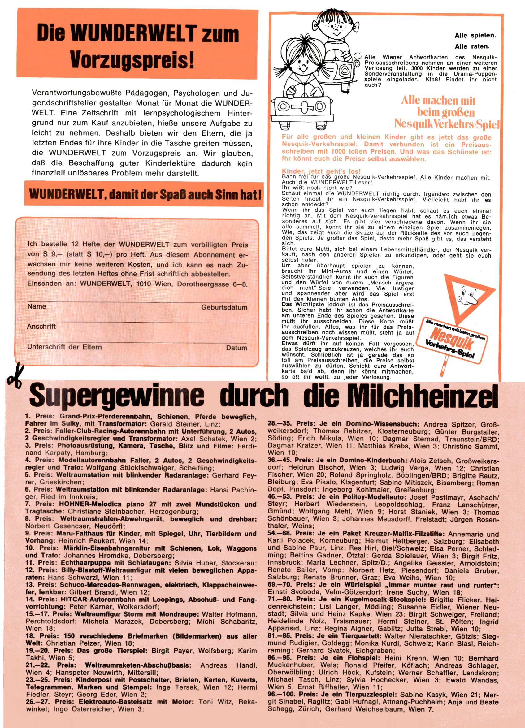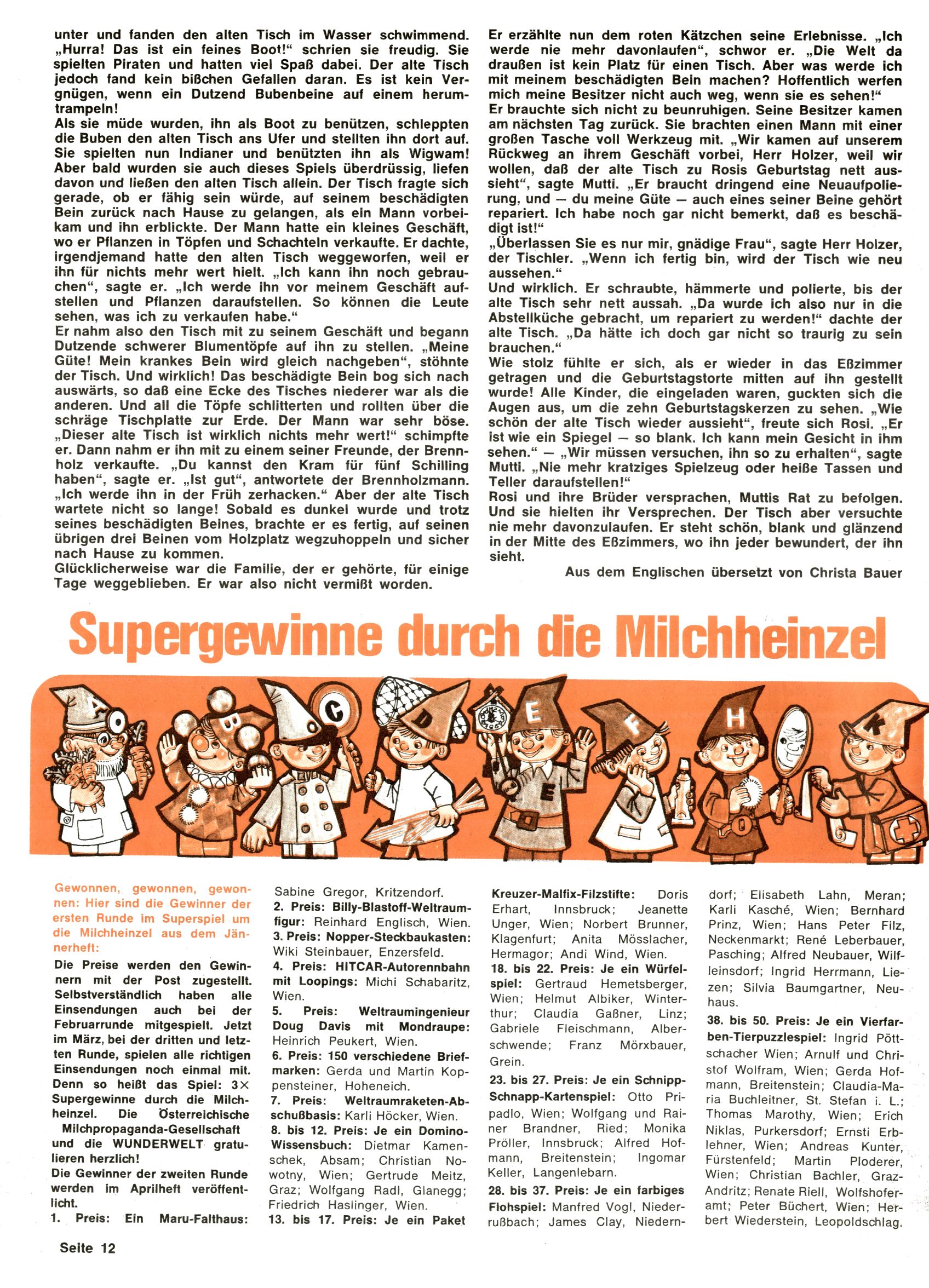 Der laufende Tisch | Milchheinzel-Gewinne (Christa Bauer + WR) |