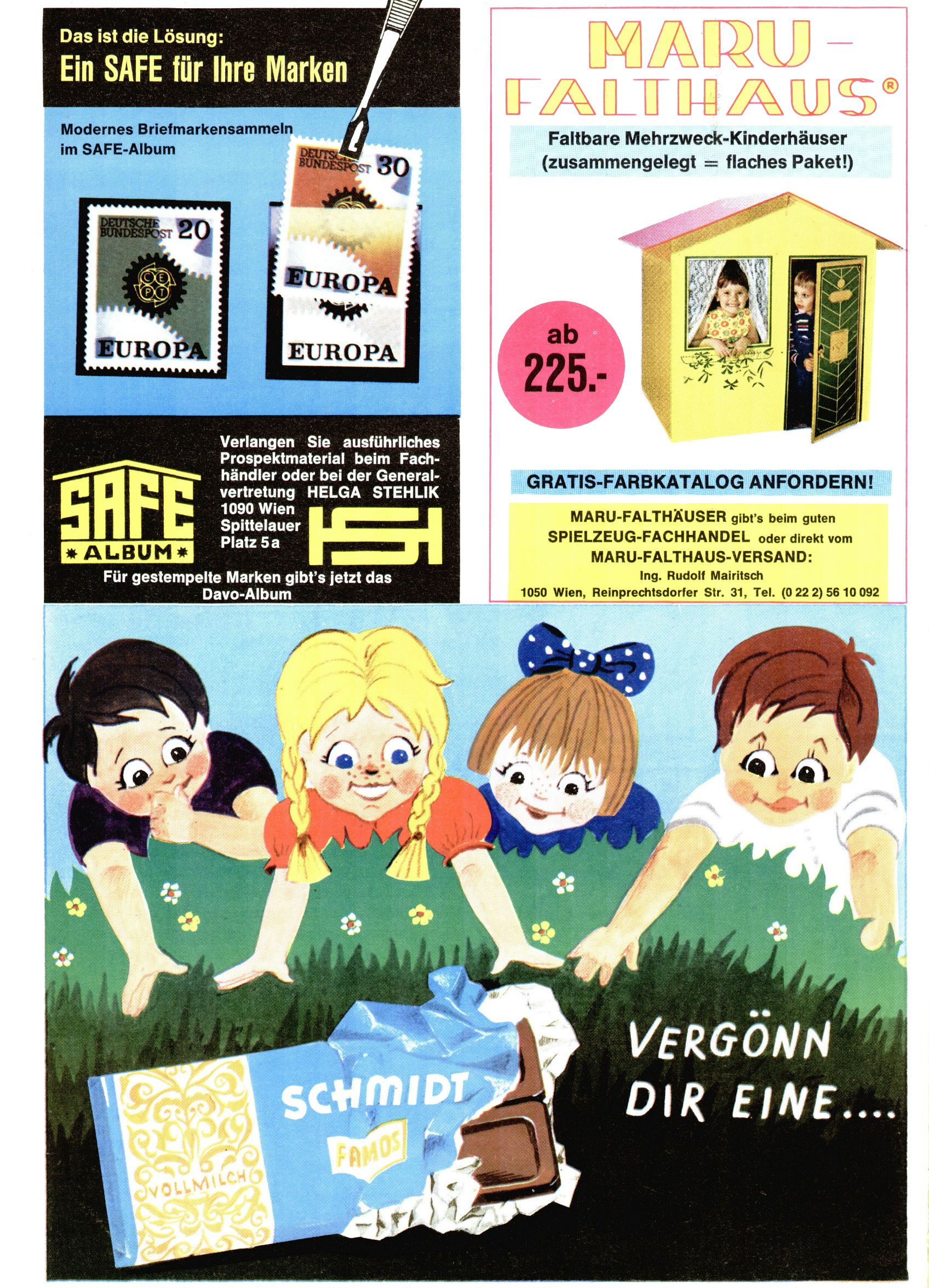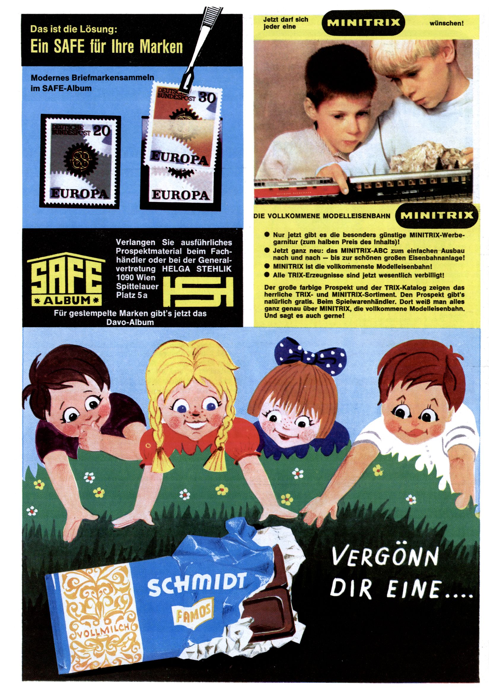 Safe Briefmarken / Minitrix Modelleisenbahnen / Schmidt Schokolade (Werbung) |