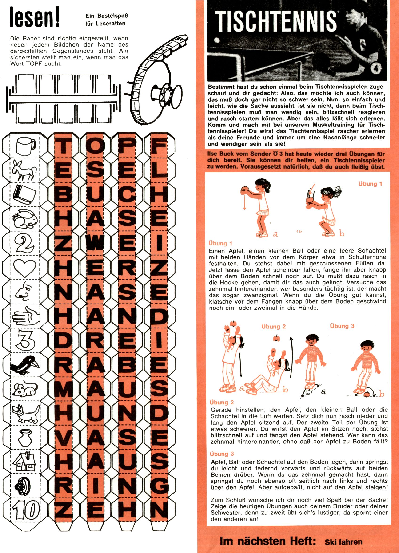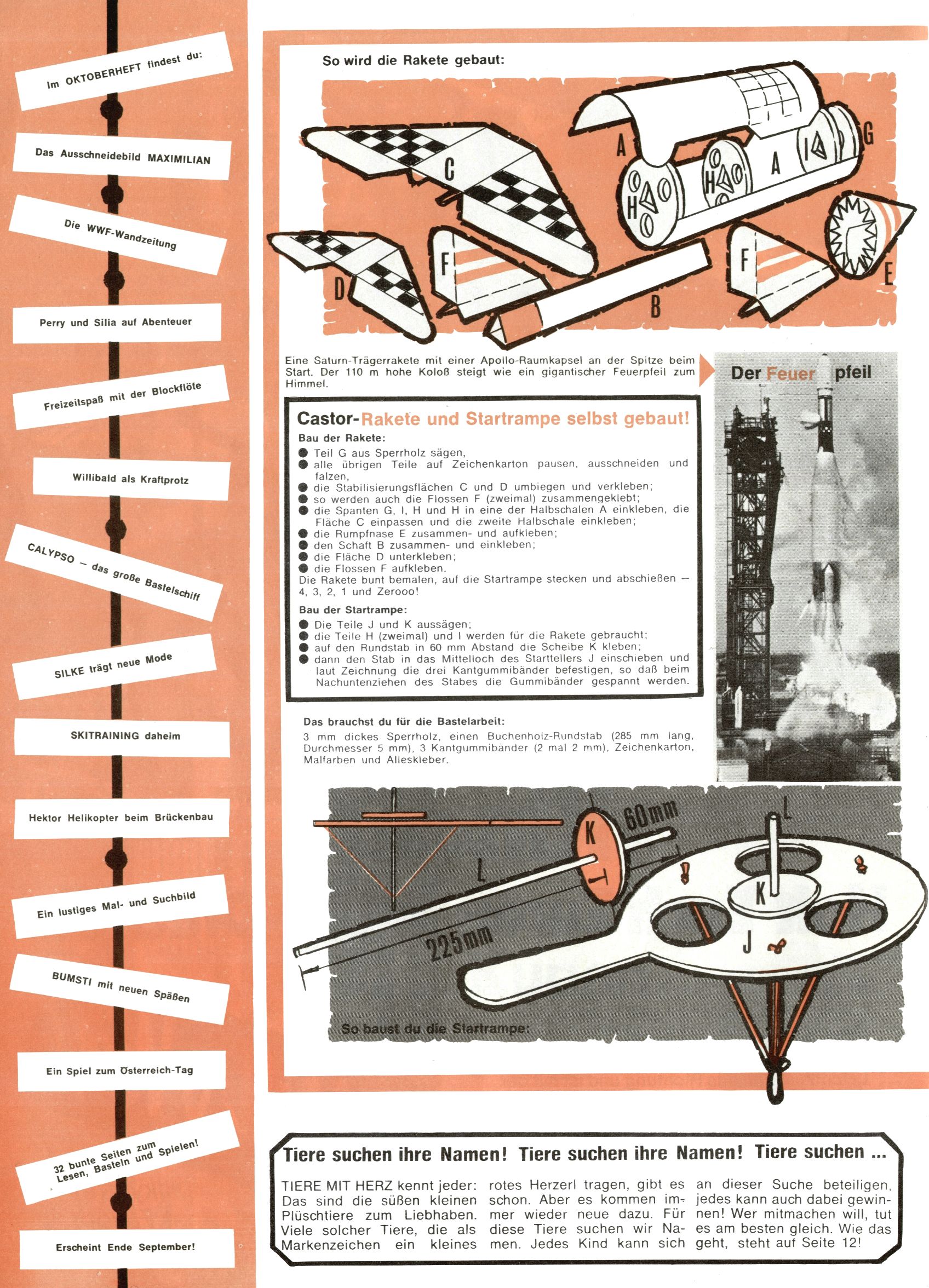 [A]usschneiden | [B]asteln/Handwerken | [C]omic | [E]rzählung/Märchen/Sage | [F]oto/Bild [G]edicht/Lied | [I]nformatives | [N]atur | [R]ätsel | [S]port/Spiel | [T]echnik/Wissen | [W]erbung |