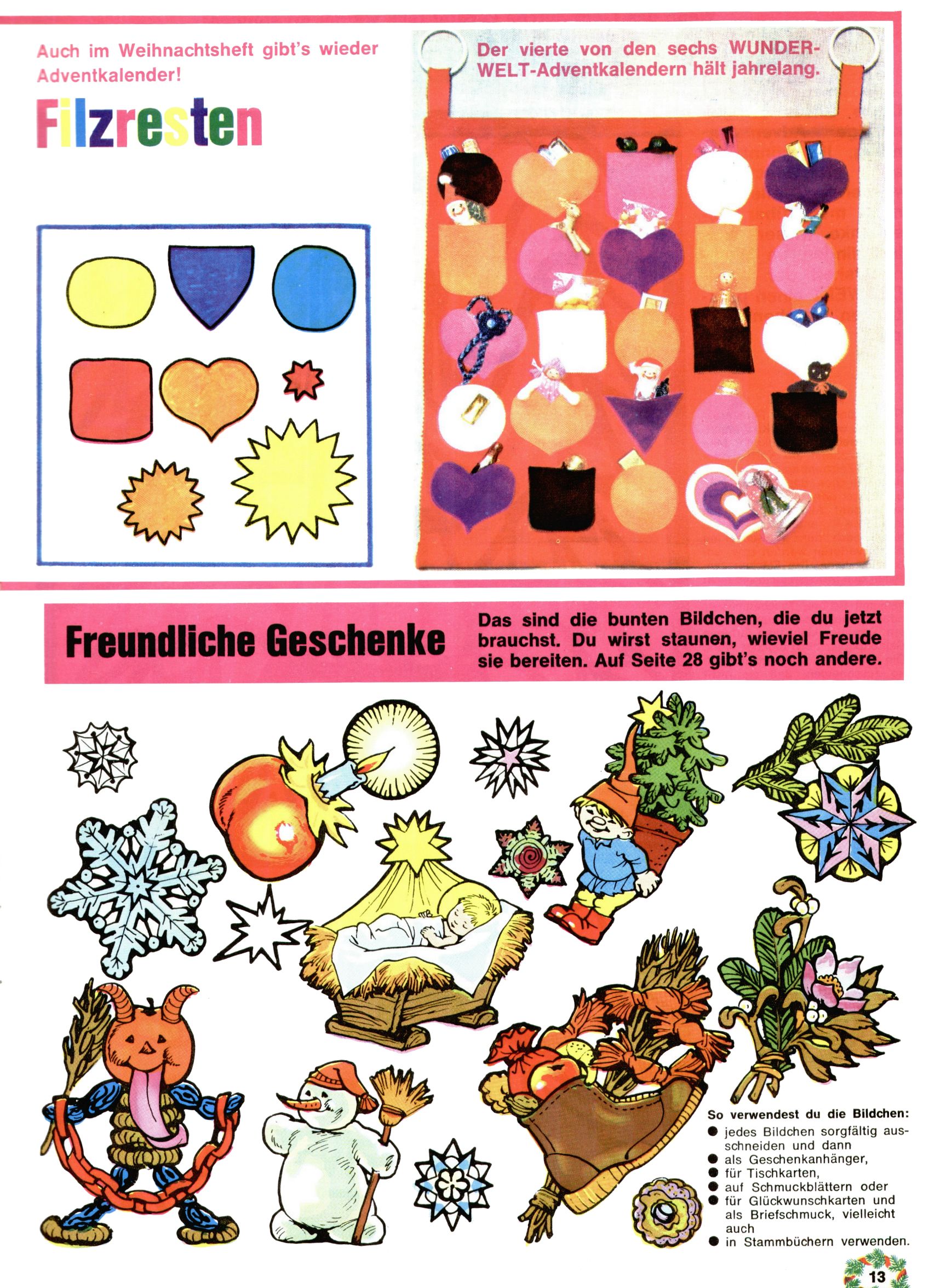 Adventkalender aus Filzresten / Freundliche Geschenke (Ausschneidebilder) [Q2111] |
