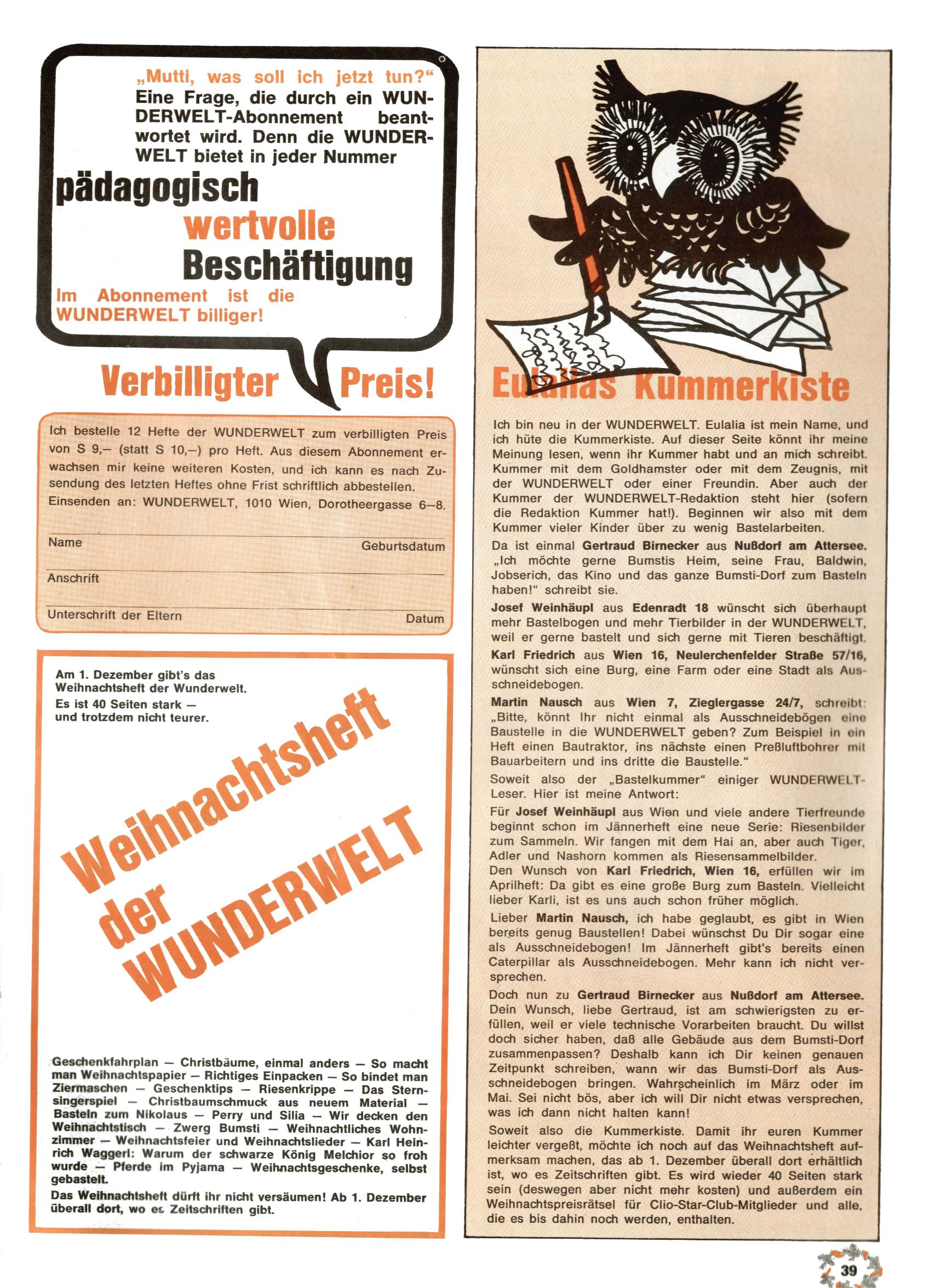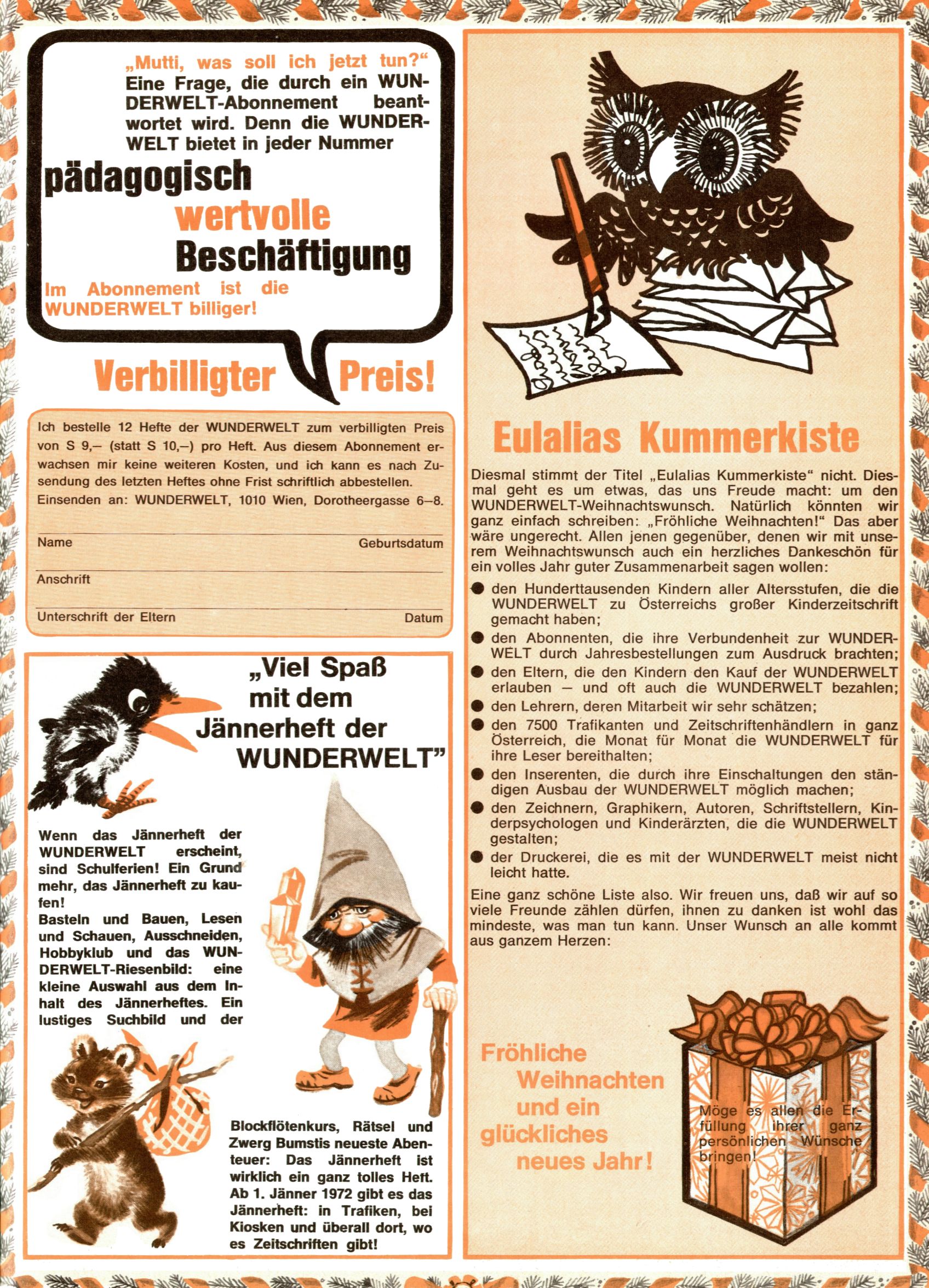 Eulalias Kummerecke / Vorausschau Jännerheft / Wunderwelt-Abonnement [Q2121] |