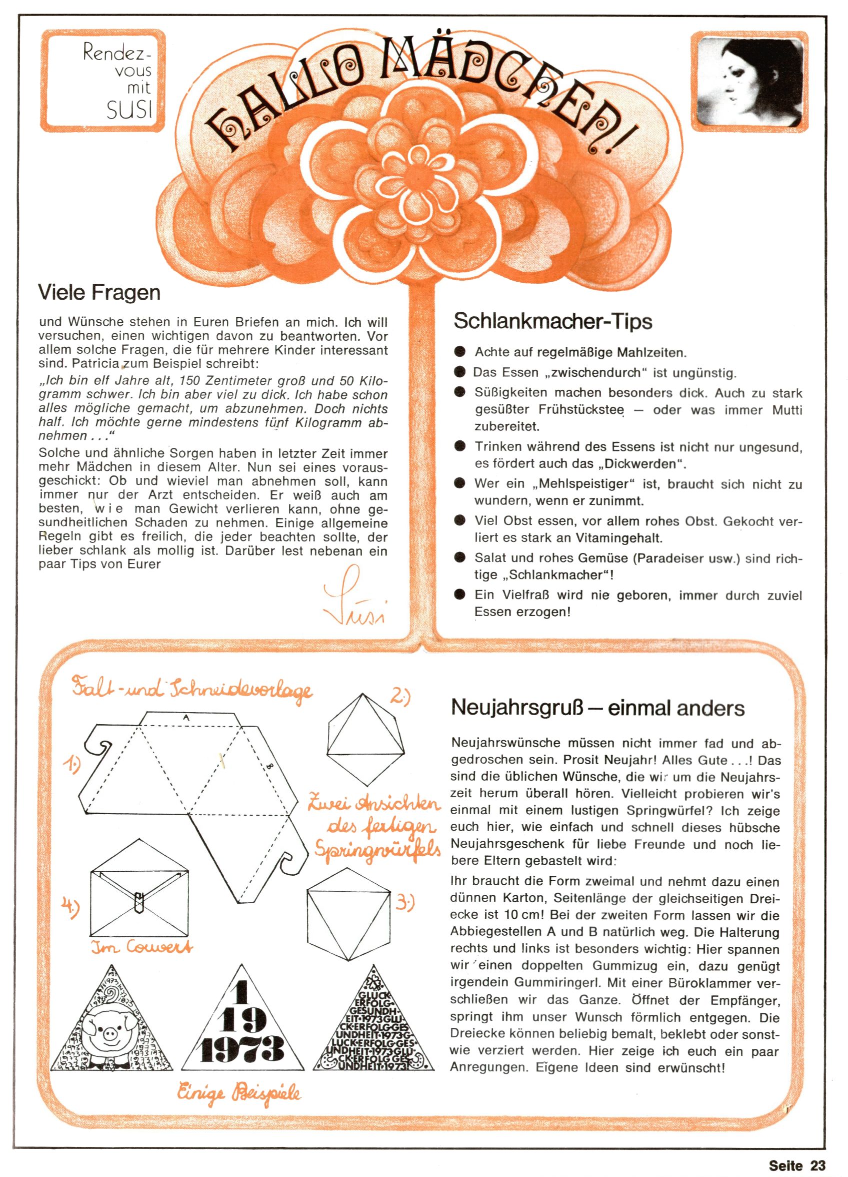 Hallo Mädchen – Viele Fragen + Schlankmacher-Tips + Neujahrsgruß einmal anders |