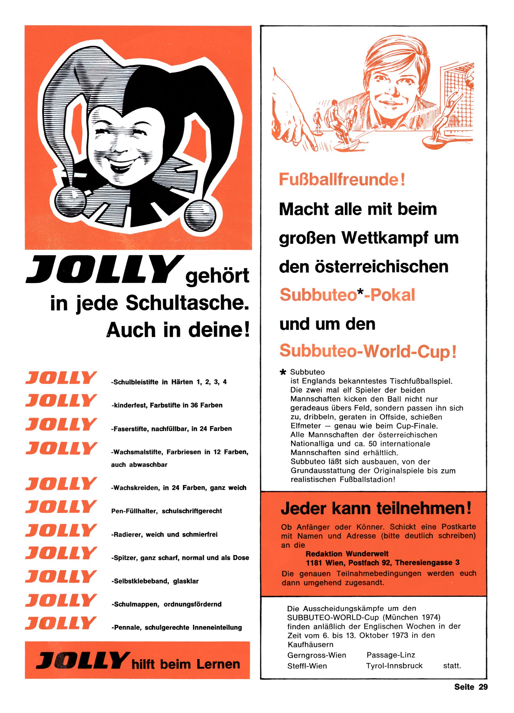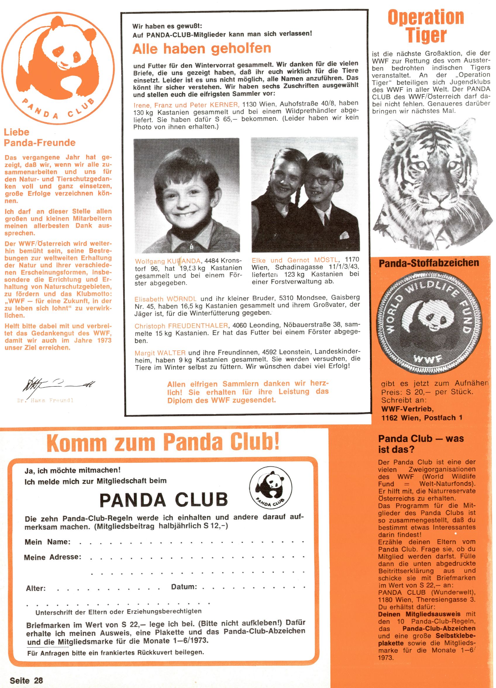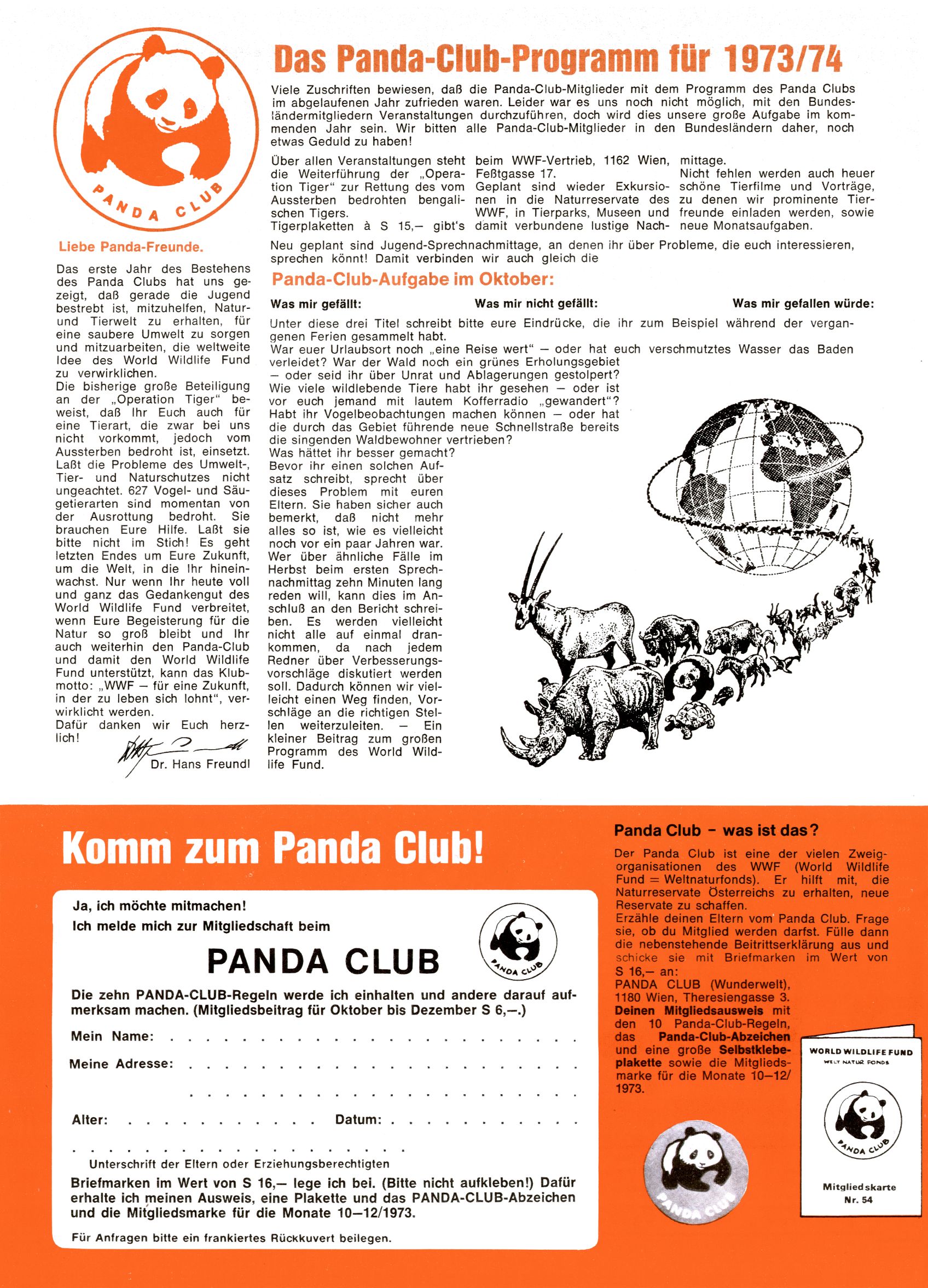Panda Clubprogramm für 1973/74 |