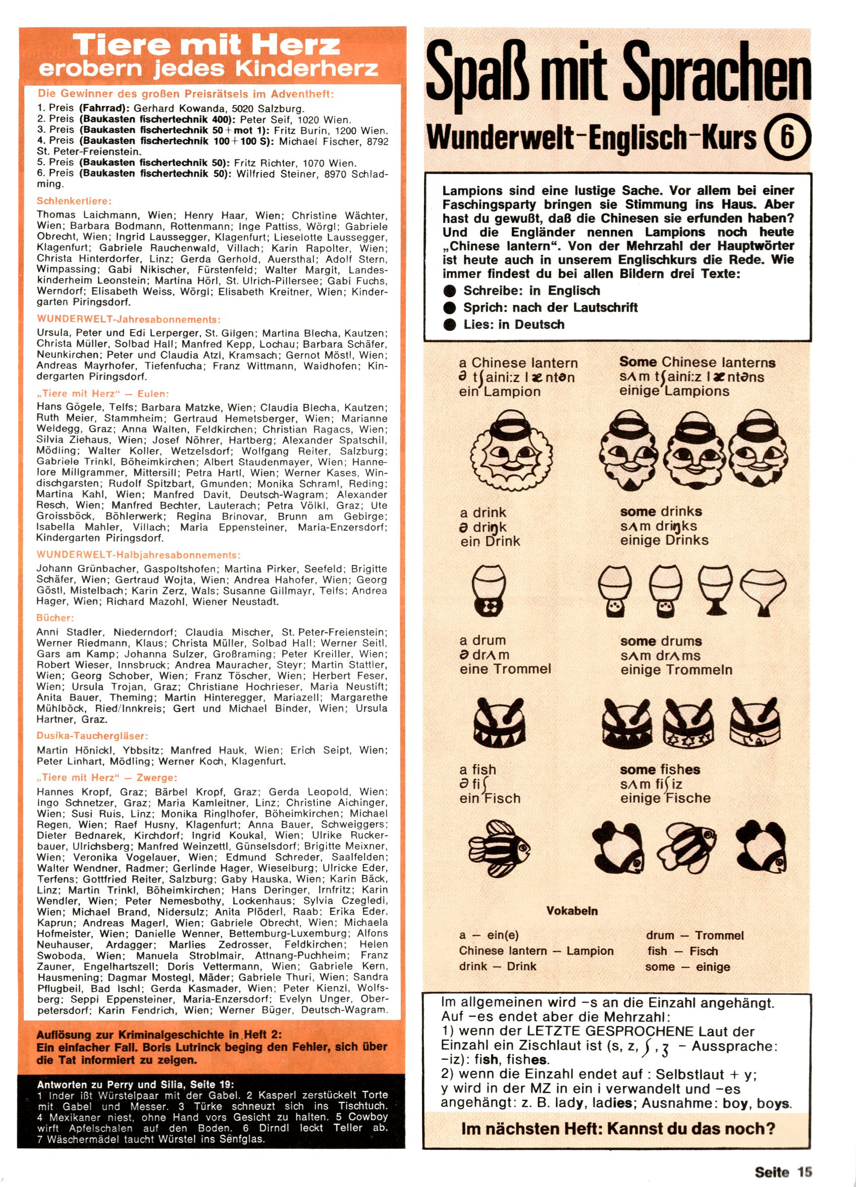 Tiere mit Herz Preisrätsel-Gewinner / Spaß mit Sprachen |