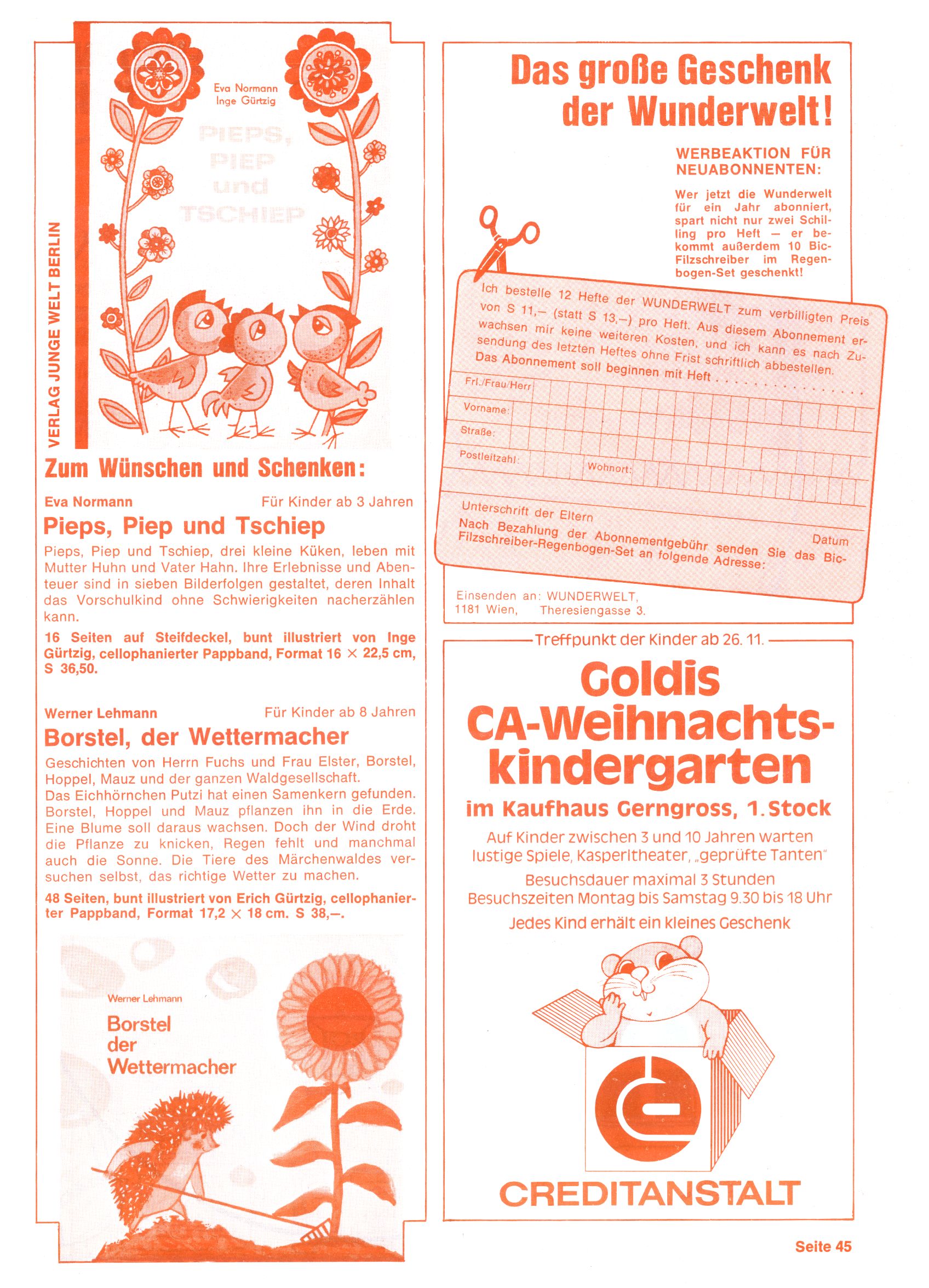 Geschenkideen (Borstel / Pieps, Piep & Tschiep) / WW-Abo / Weihnachtskindergarten |
