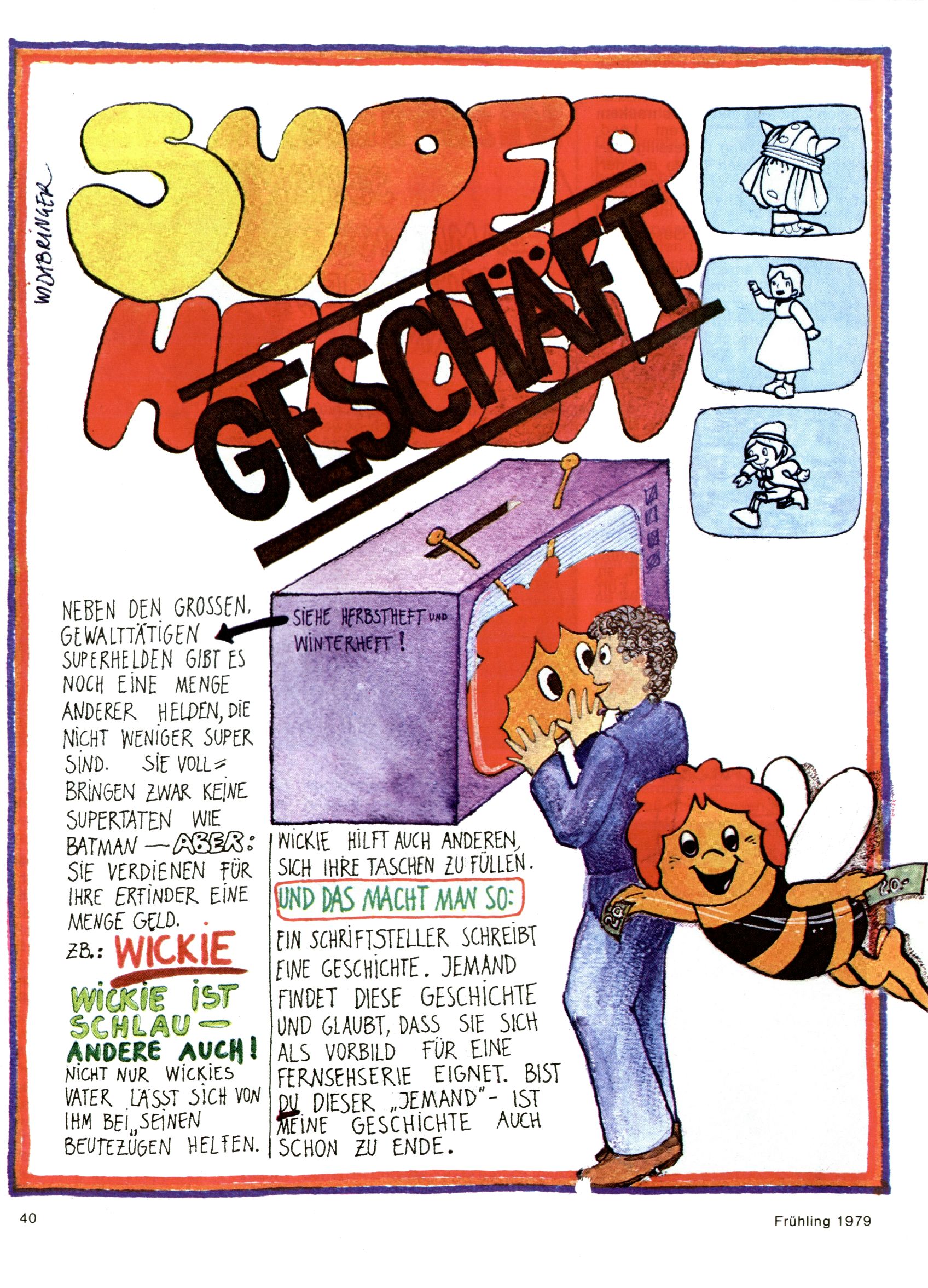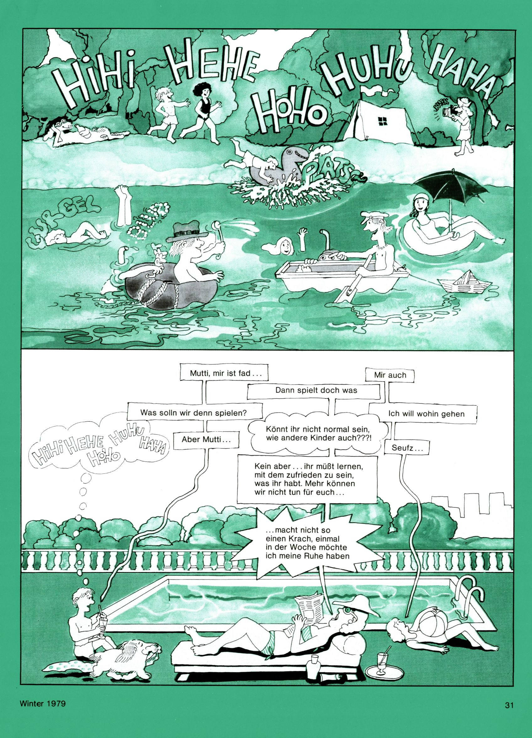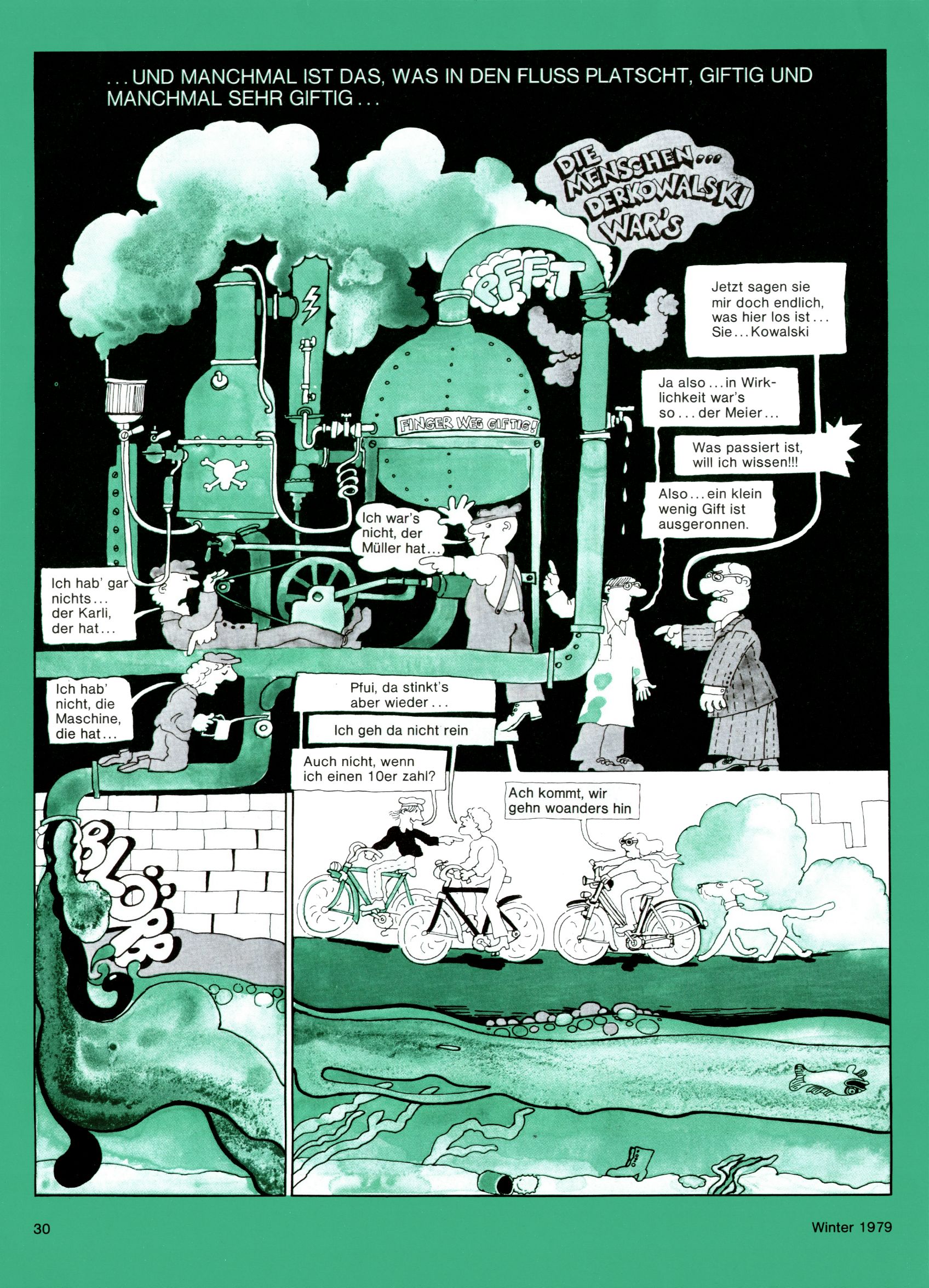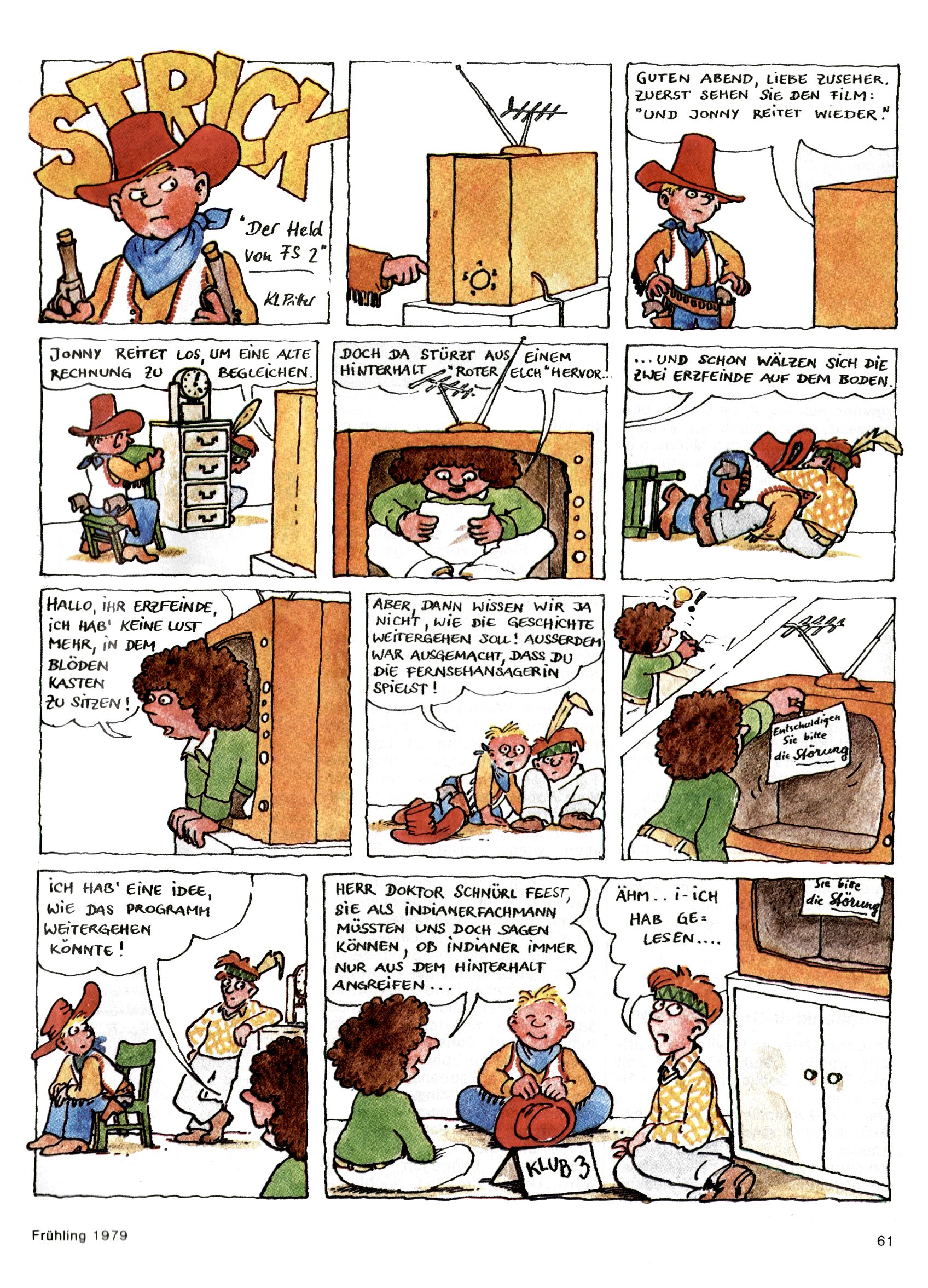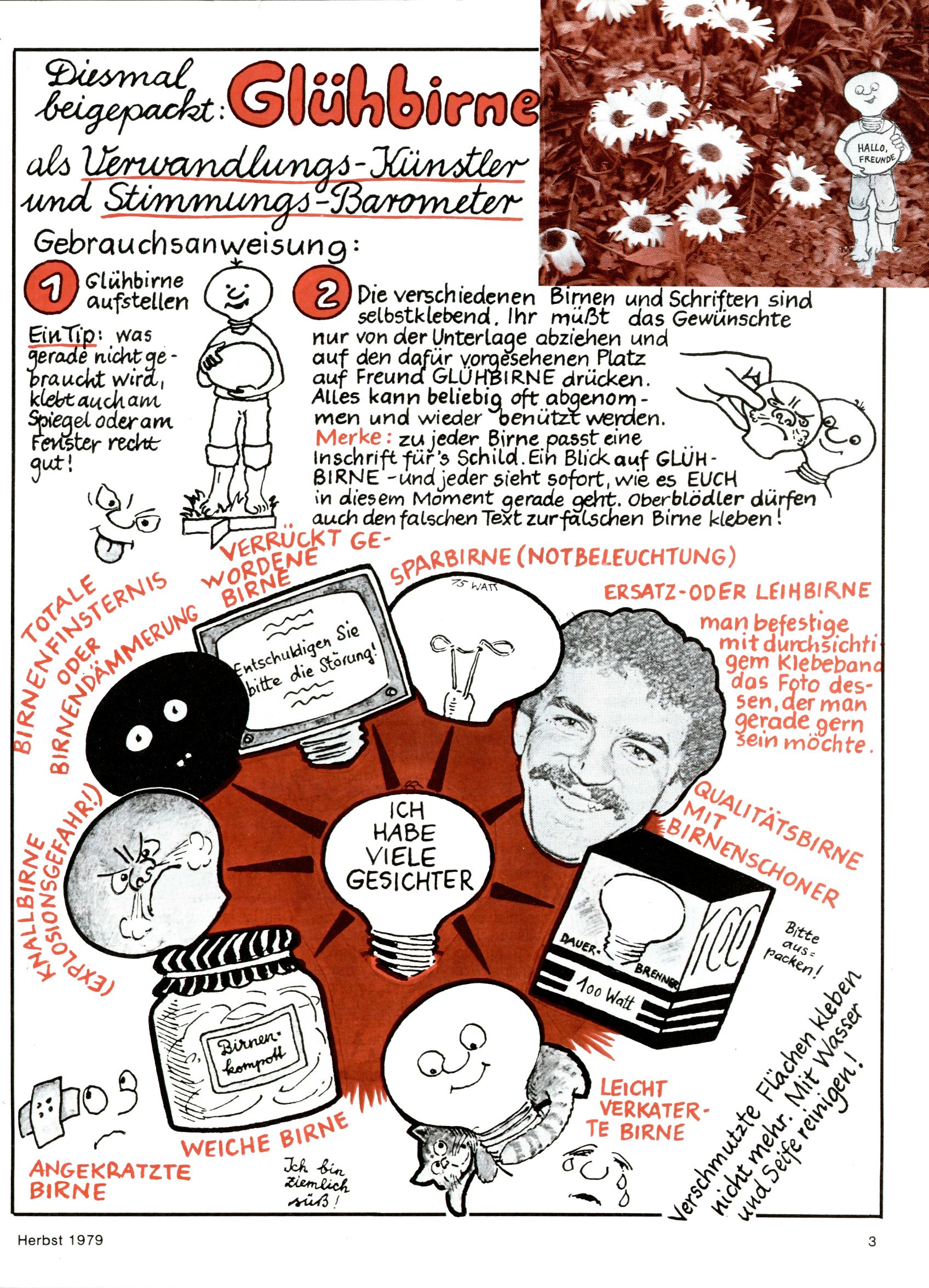 1979 - Zeit für Feinheiten Nachdem man das Grobe geklärt hatte, war es 1979 an der Zeit, der neuen Zeitung einen Schliff zu verpassen. Wilhelm Dabringer begann sich an die Bastelbögen heranzutasten, wenn seine Modelle zunächst auch sehr simpel und nichteinmal in Farbe gestaltet wurden. Die allgemeinen Bastelideen brachten nach wie vor Renate Ludescher und Helga Croy zu Papier. Als erstes echtes Gimmick der Zeitung fand sich zum Jahresausklang eine 2-Minuten-Folien-Schallplatte, nachdem aus der im Sommer mit Fragebogen angekündigten Langspielplatte wohl aus Kostengründen letztlich doch nichts geworden war. Im Herbstheft hatte es aber immerhin bereits eine Art Bastelfigur gegeben ('Glühbirne als Verwandlungskünstler'). Nach der Verabschiedung von Asterix startete Jörg Wollmann gemeinsam mit G. Januszewski die skurrile Umwelt-Cartoon-Fortsetzungsgeschichte Direktor Karl Meidlinger und der Flußgeist. Nach wie vor waren Ernst A. Ekker, Renate Welsh und Wolfgang Ecke die Hauptautoren. Ernst A. Ekker war über alle Jahre hinweg auch immer als Kino-Rezensionist unterwegs. Christine Nöstlinger bekam 1979 ein zweites Gastspielangebot. Immer mehr Reportagen behandelten Umweltthemen - die Aktiv-Umweltspürnasen waren ins Leben gerufen worden. Jugendliche bekamen die Möglichkeit, selbständig unter wissenschaftlicher Anleitung Experimente durchzuführen. Später gründete Ingrid Greisenegger mit Klaus Pitter und Werner Katzmann den Umweltspürnasenclub. Insgesamt wurden 7 Aktivbücher für Umweltspürnasen herausgegeben und ab dem Jahr 2000 sogar nochmals aufgelegt. Mit einem eigenen WunderWelt-Fragebogen versuchte man erstmals, die Meinung der Leser zu hinterfragen, um den weiteren Verlauf der Zeitung den Leserwünschen entsprechend steuern zu können. |